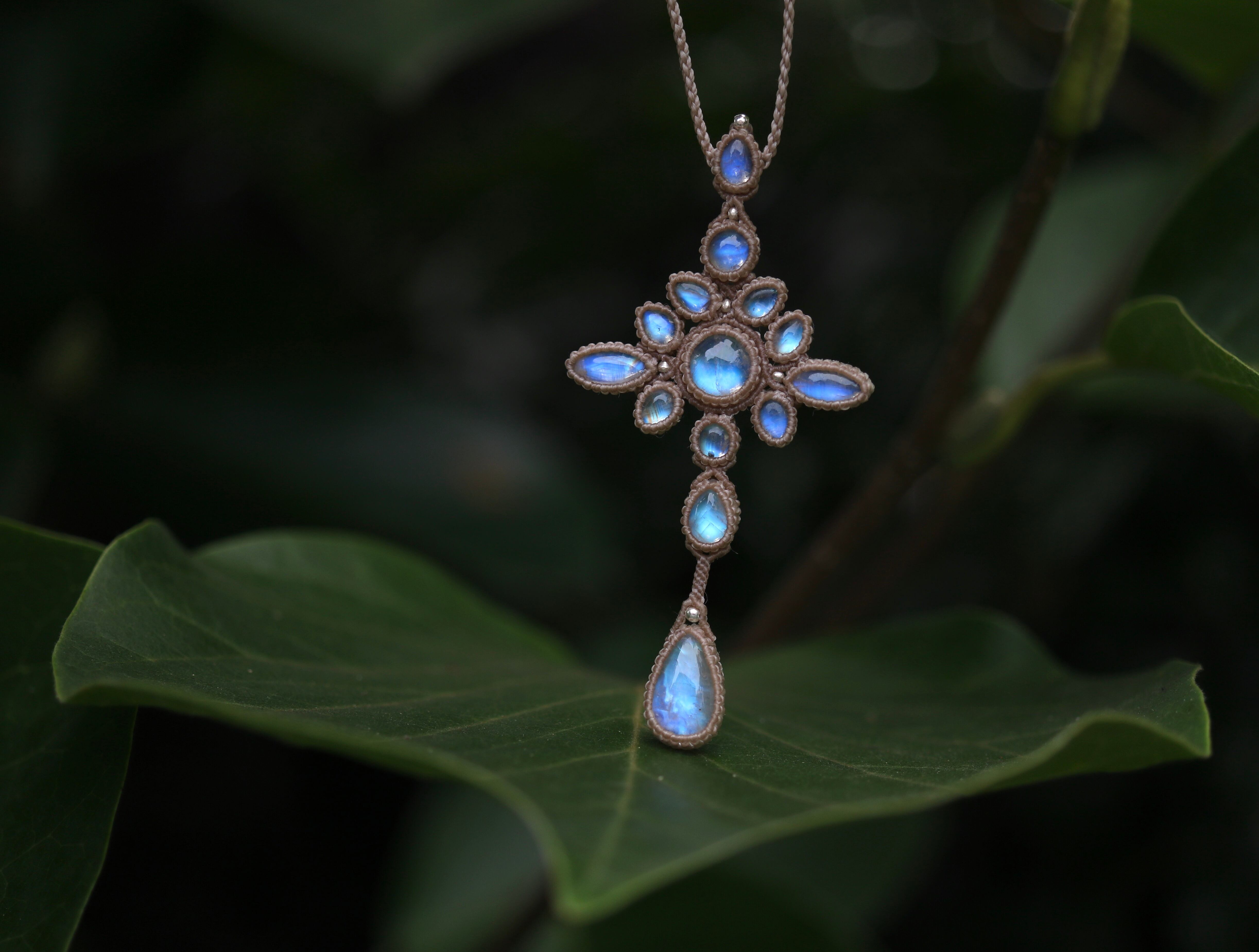 ※ 天然石を包むコードを始めトップ部分に使用したマクラメ編みコードは
