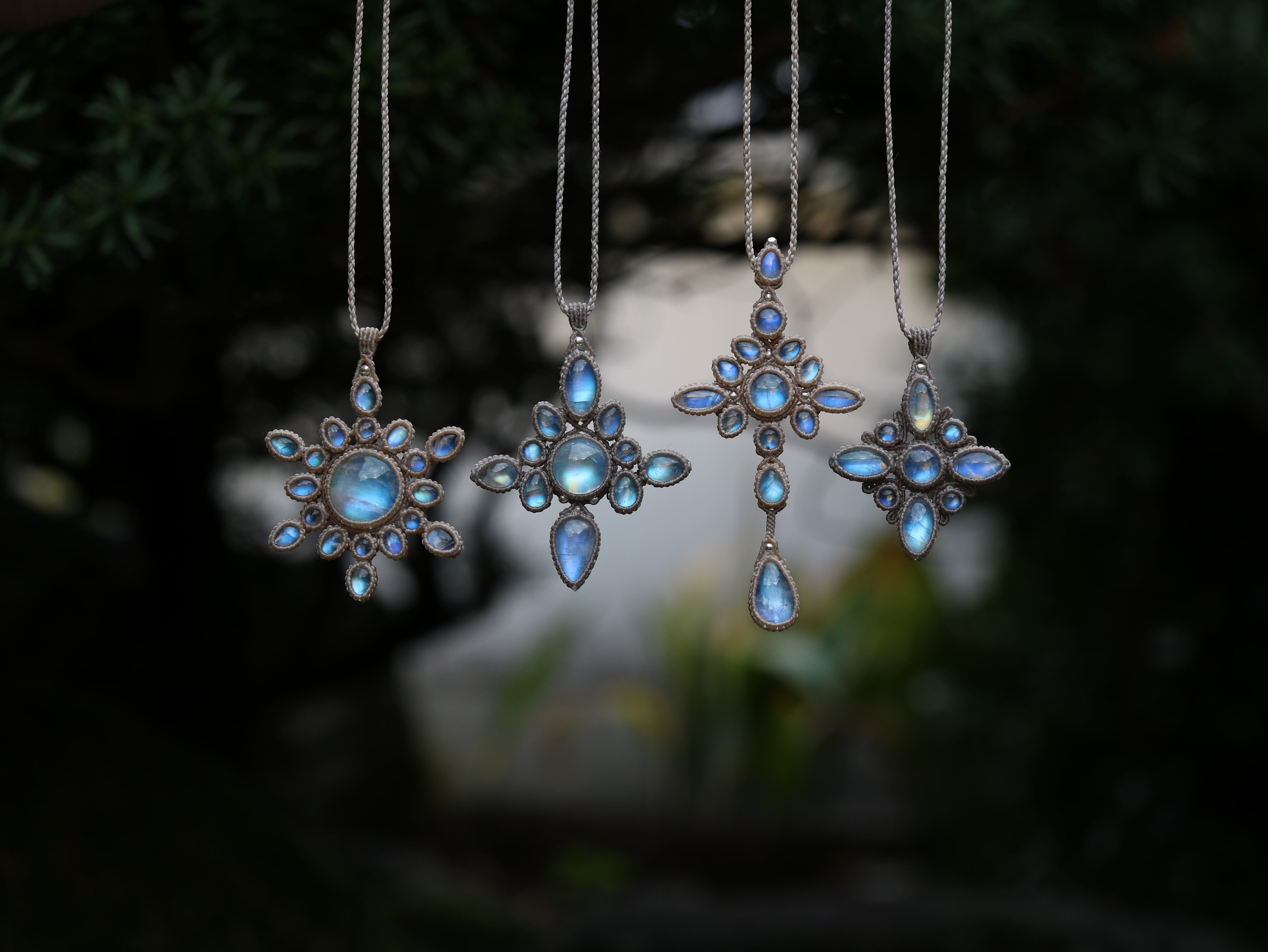 ※ 小粒ムーンストーンを幾何学模様に配置し