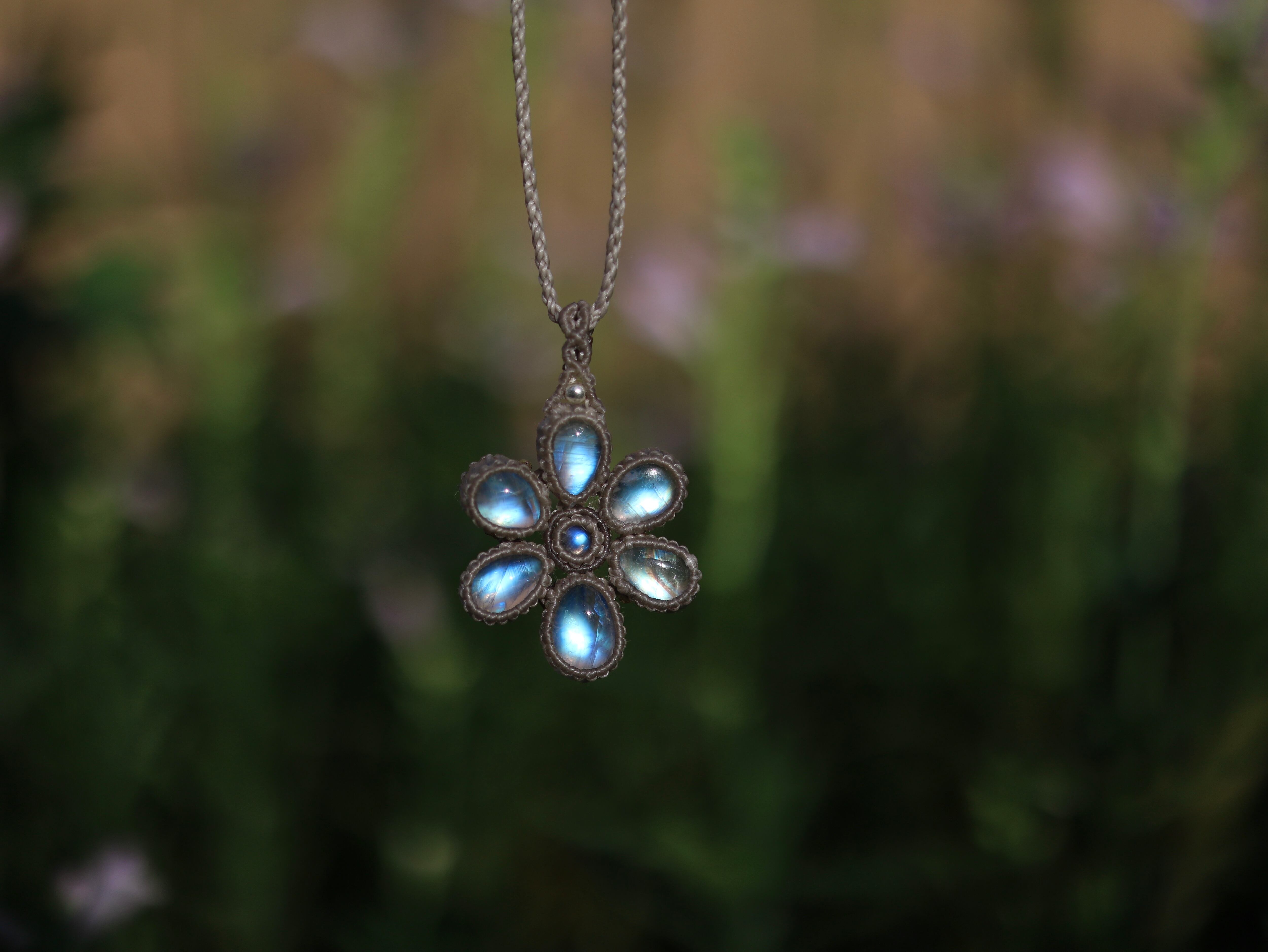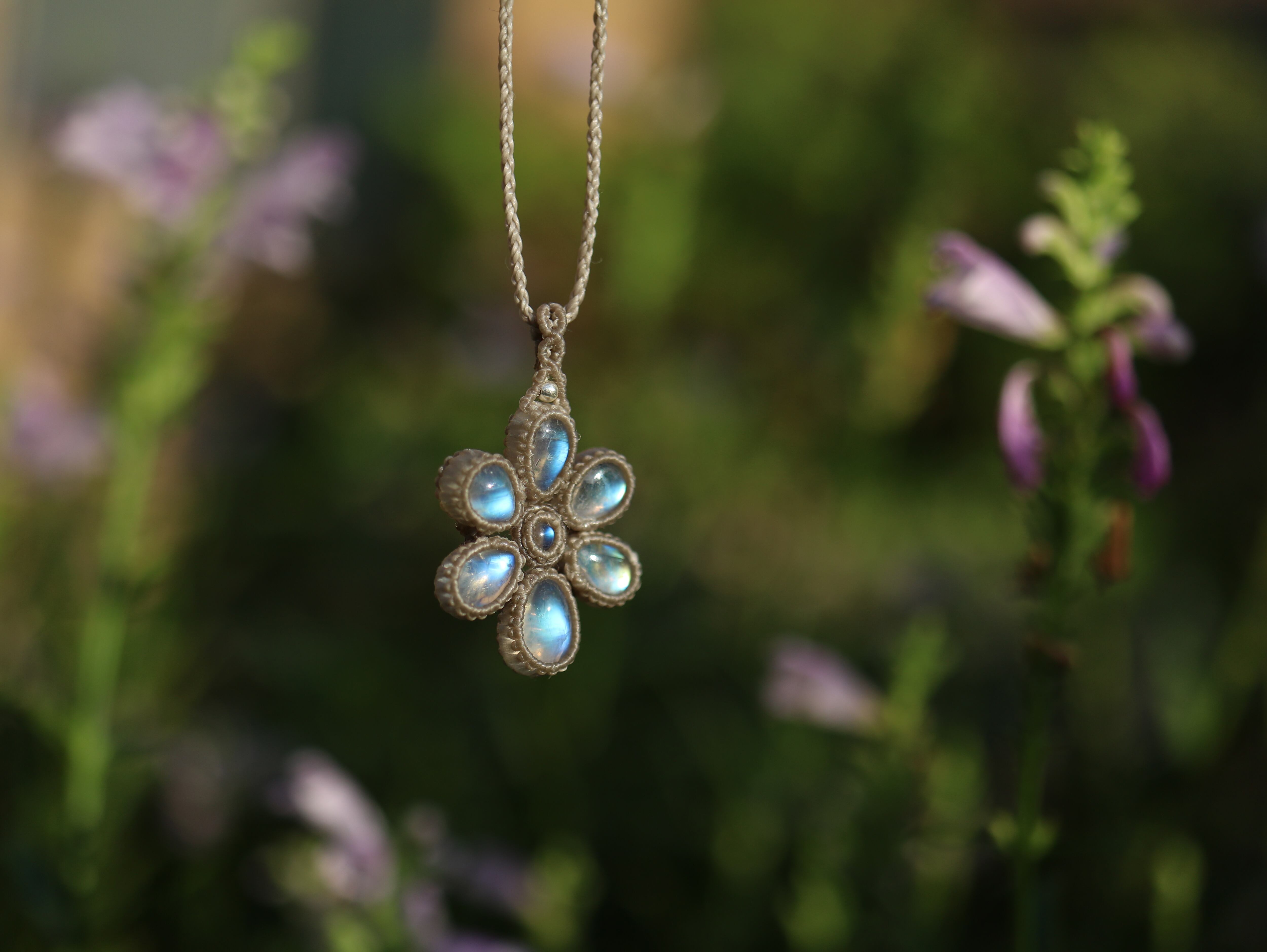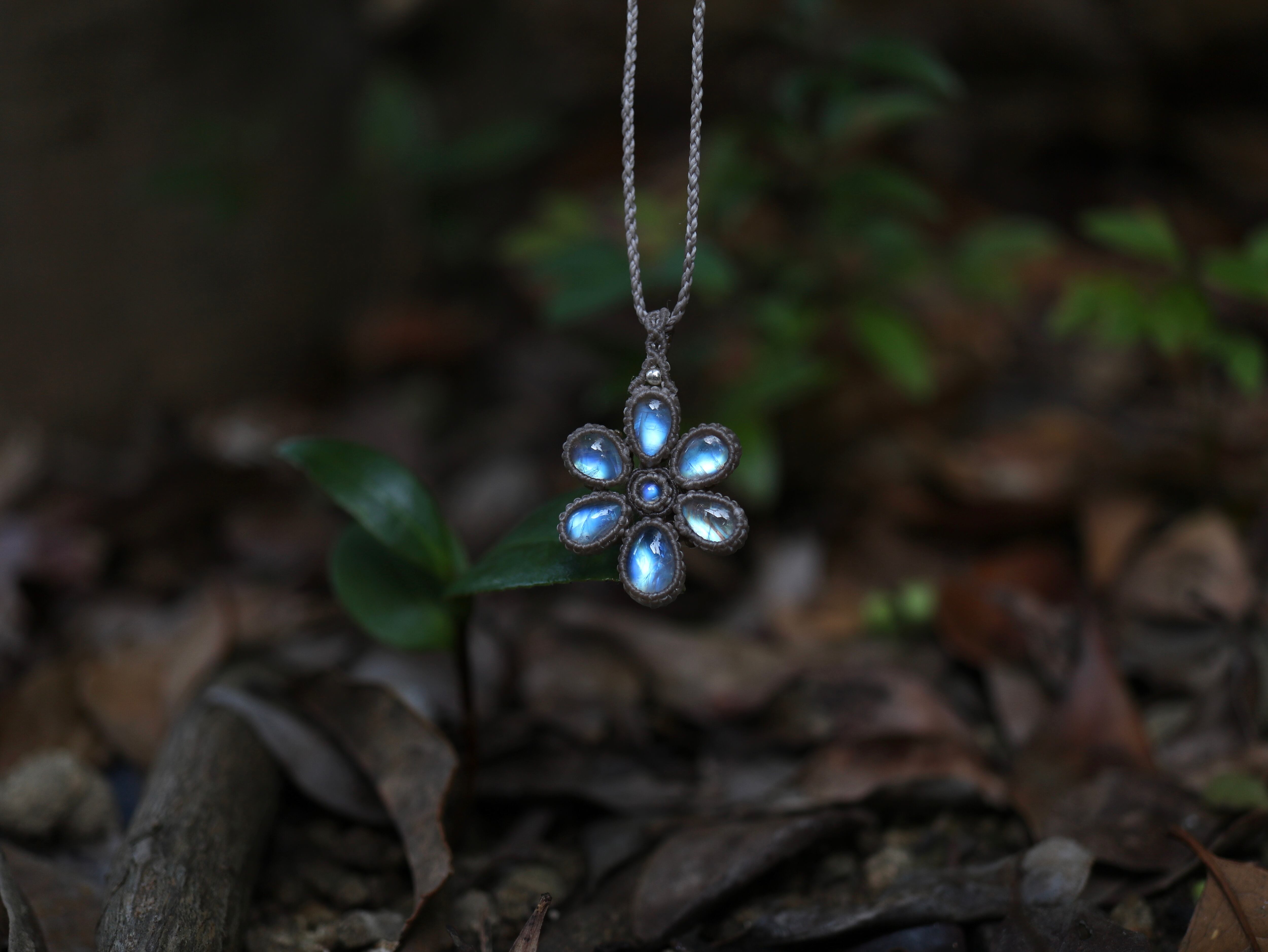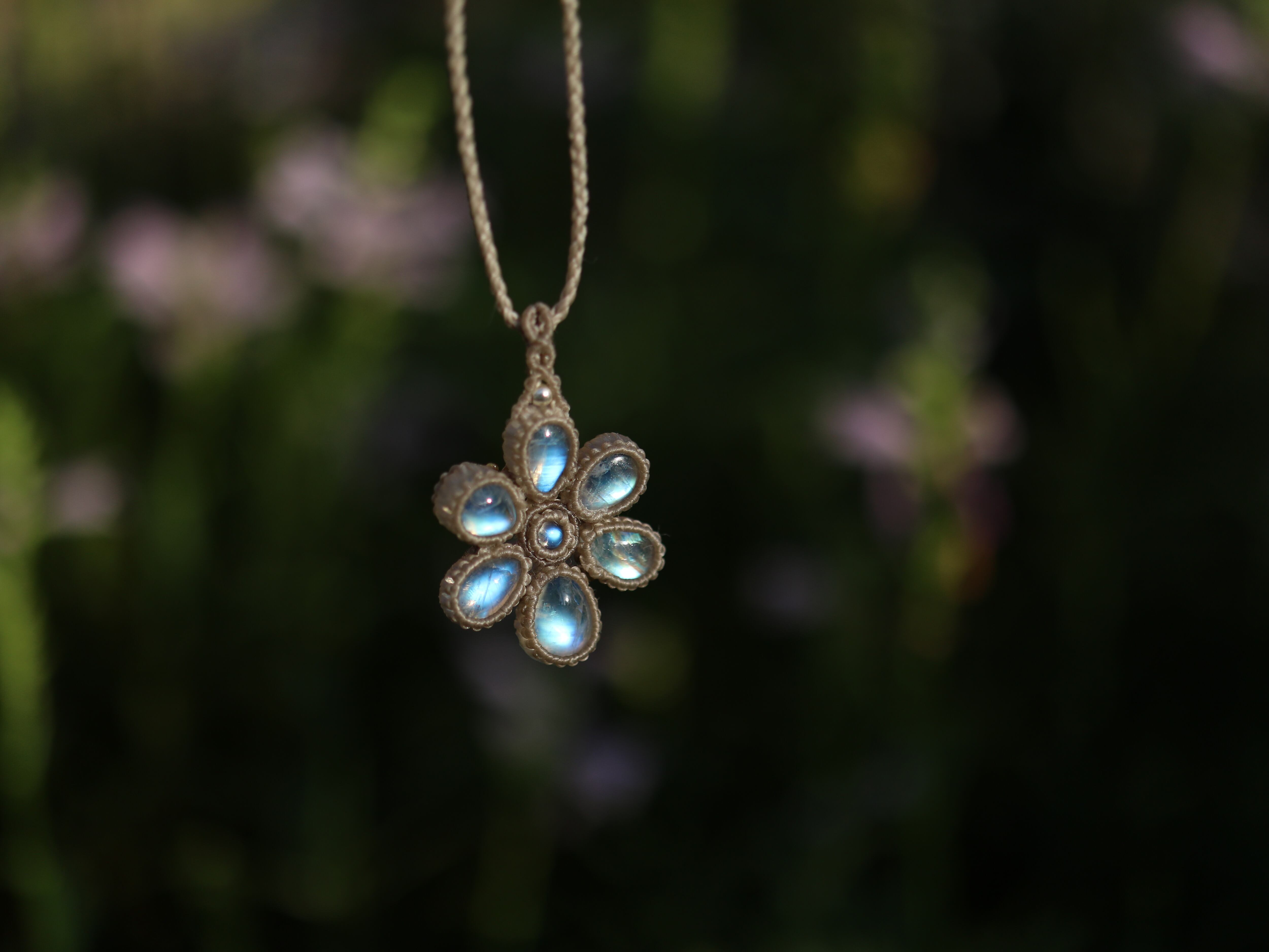 ※ 天然石を包むコードを始めトップ部分に使用したマクラメ編みコードは