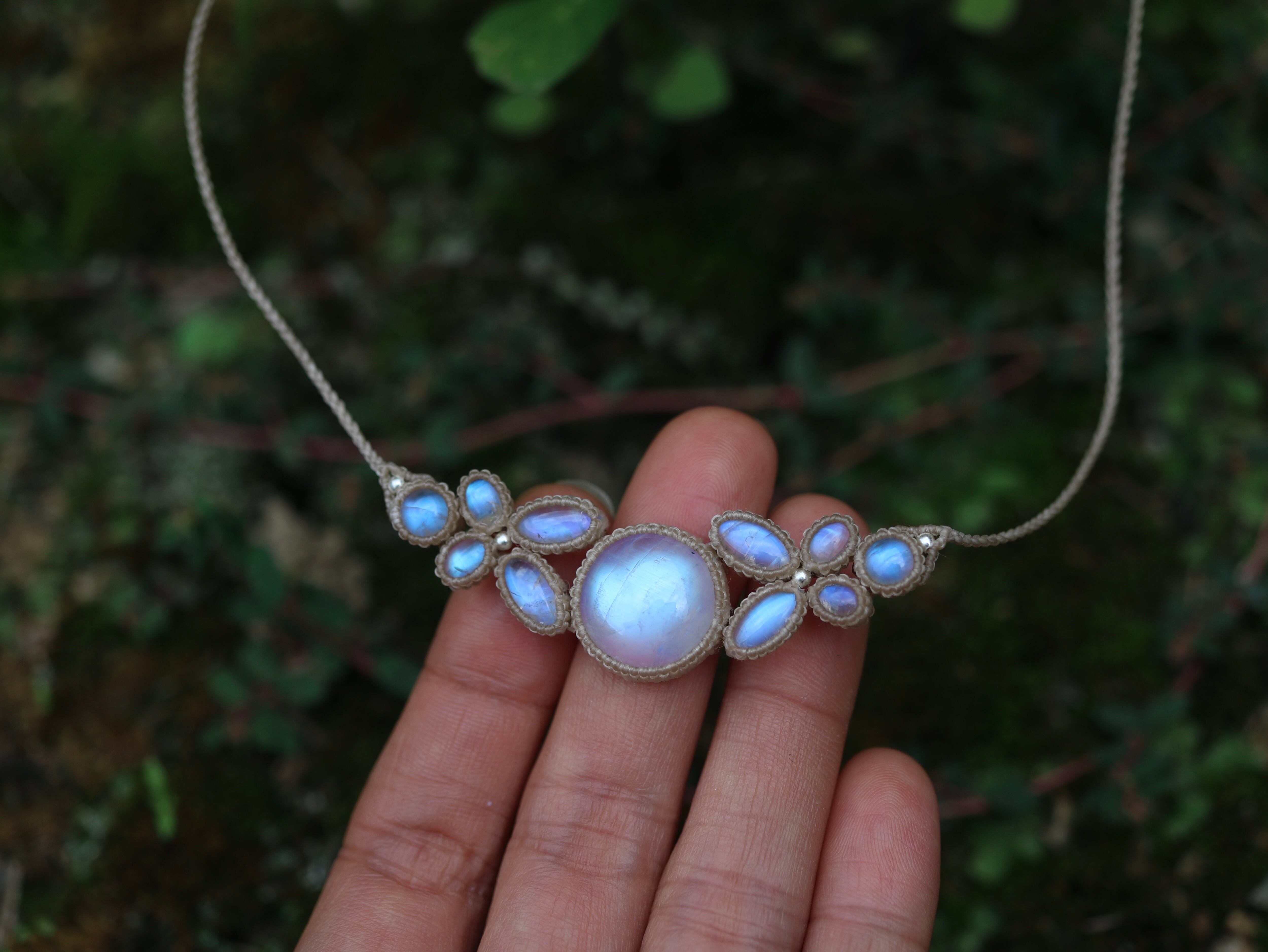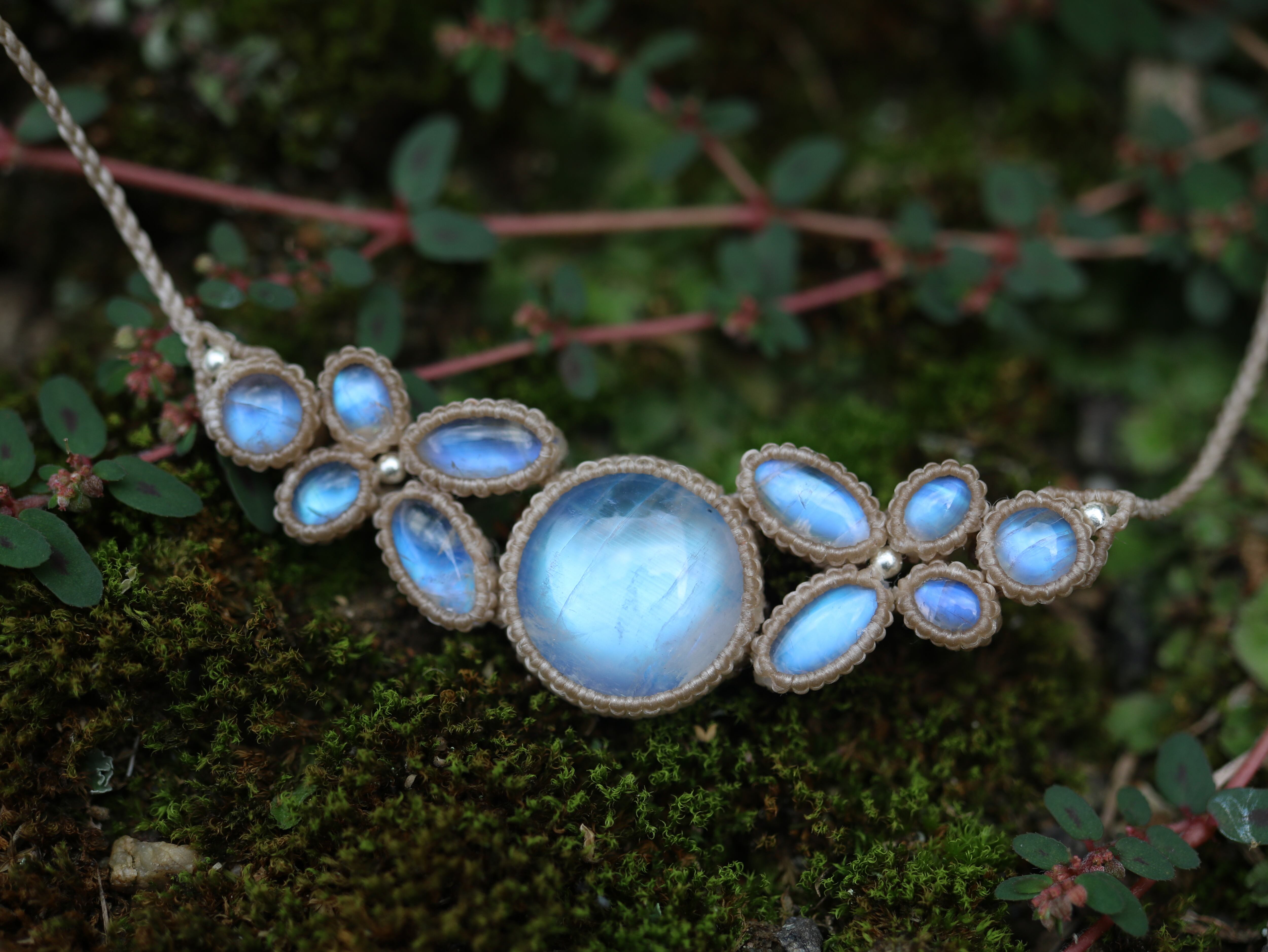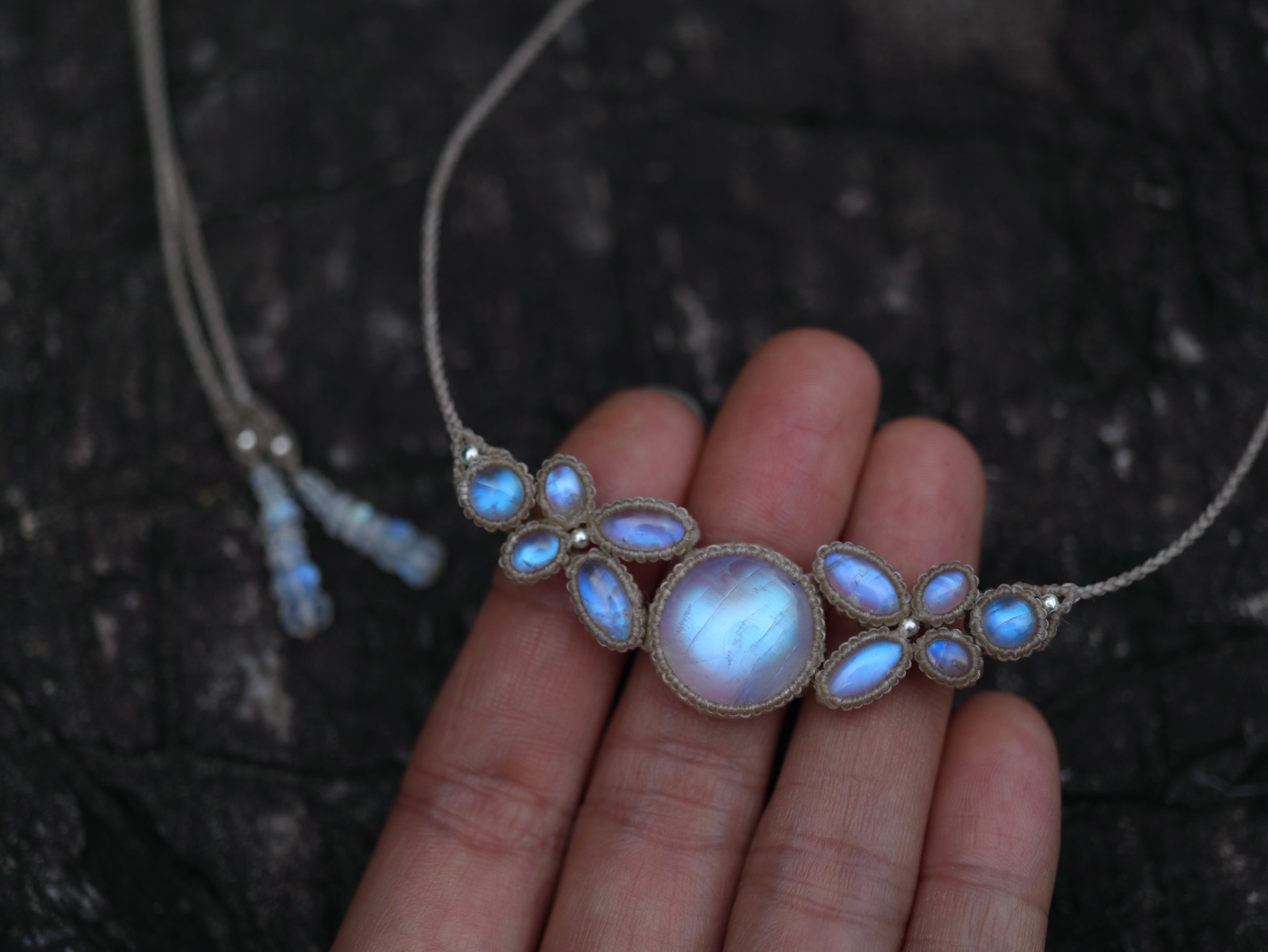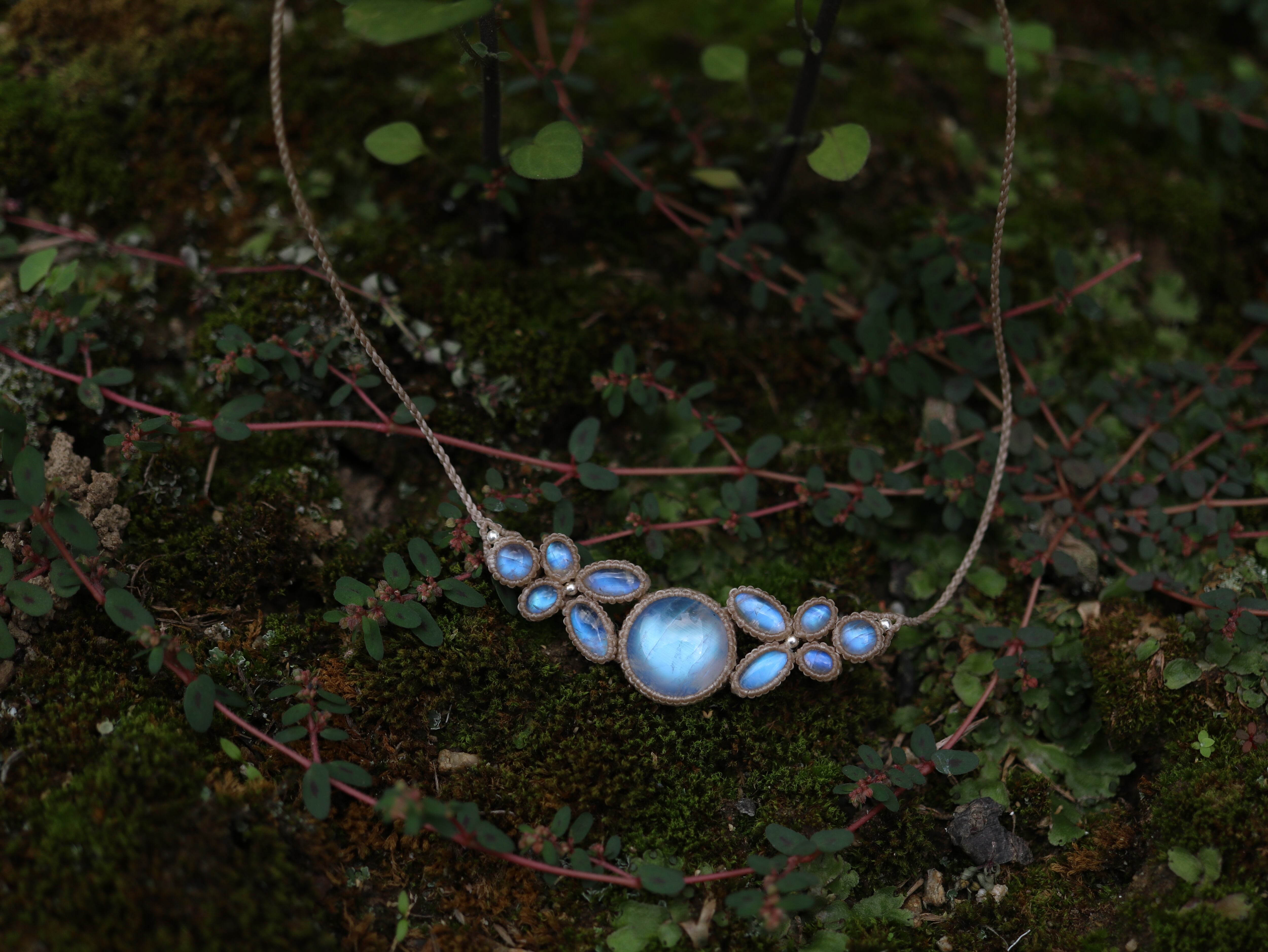 中央のまん丸ムーンストーンは白っぽい光を放ち