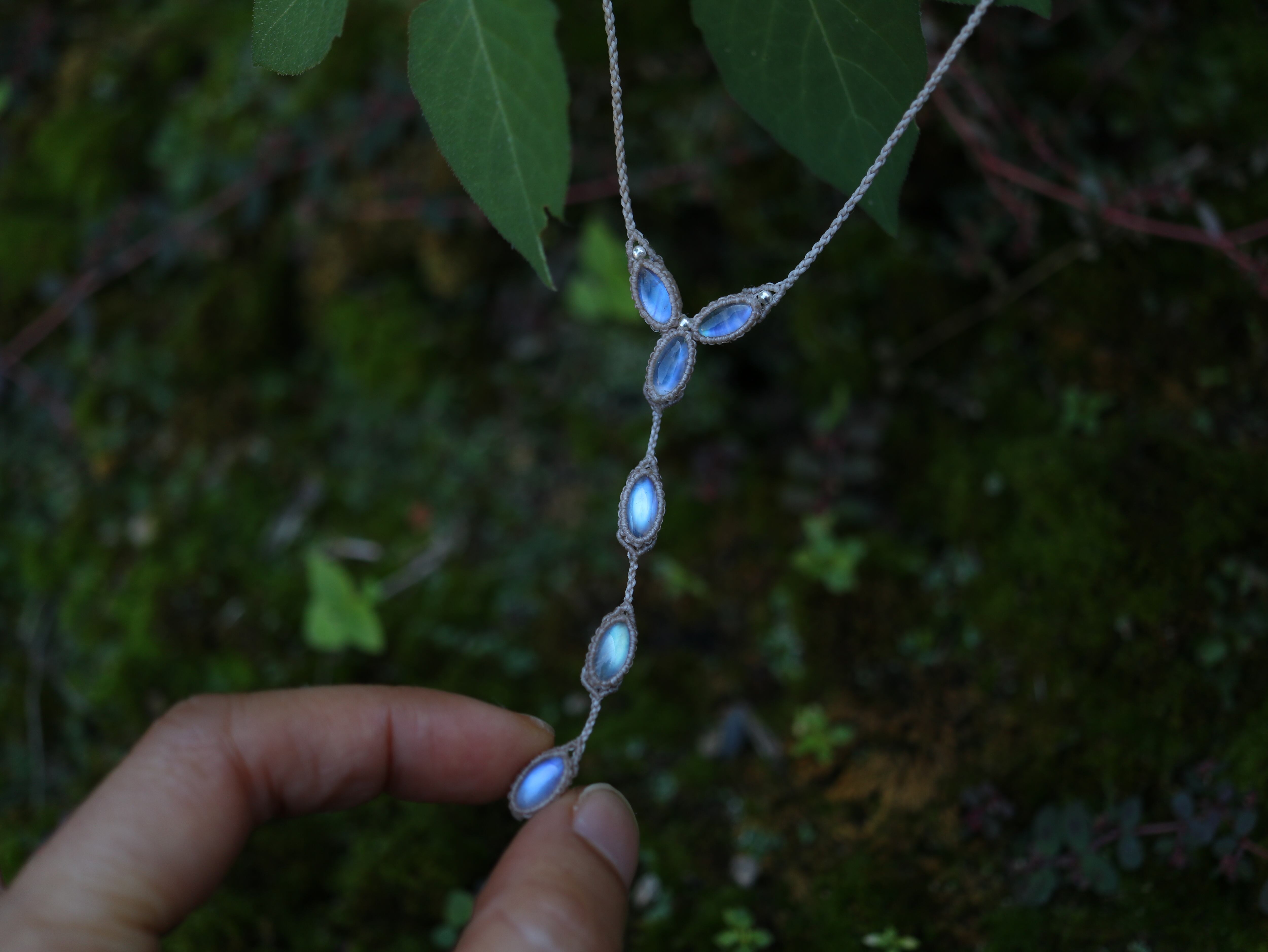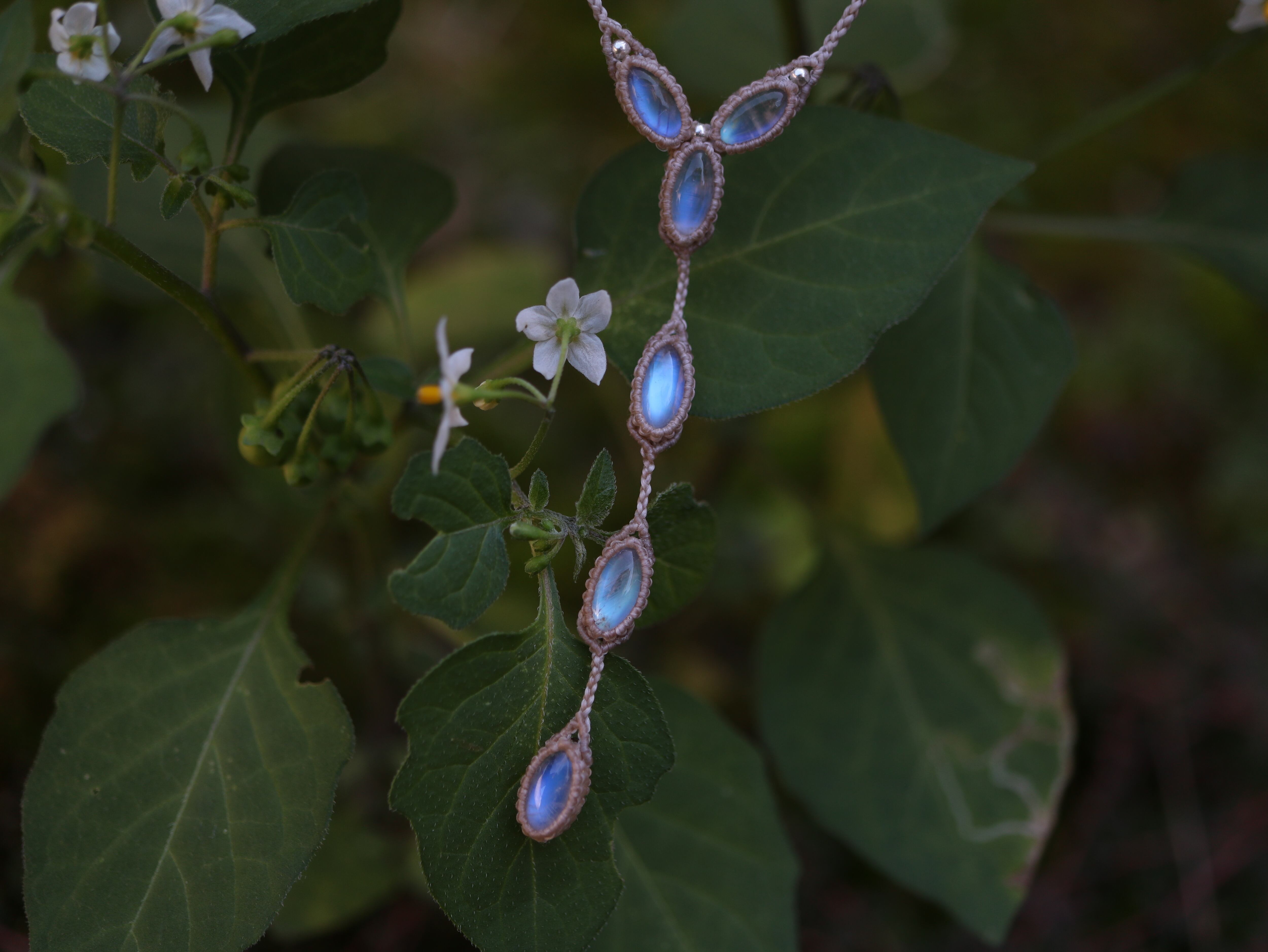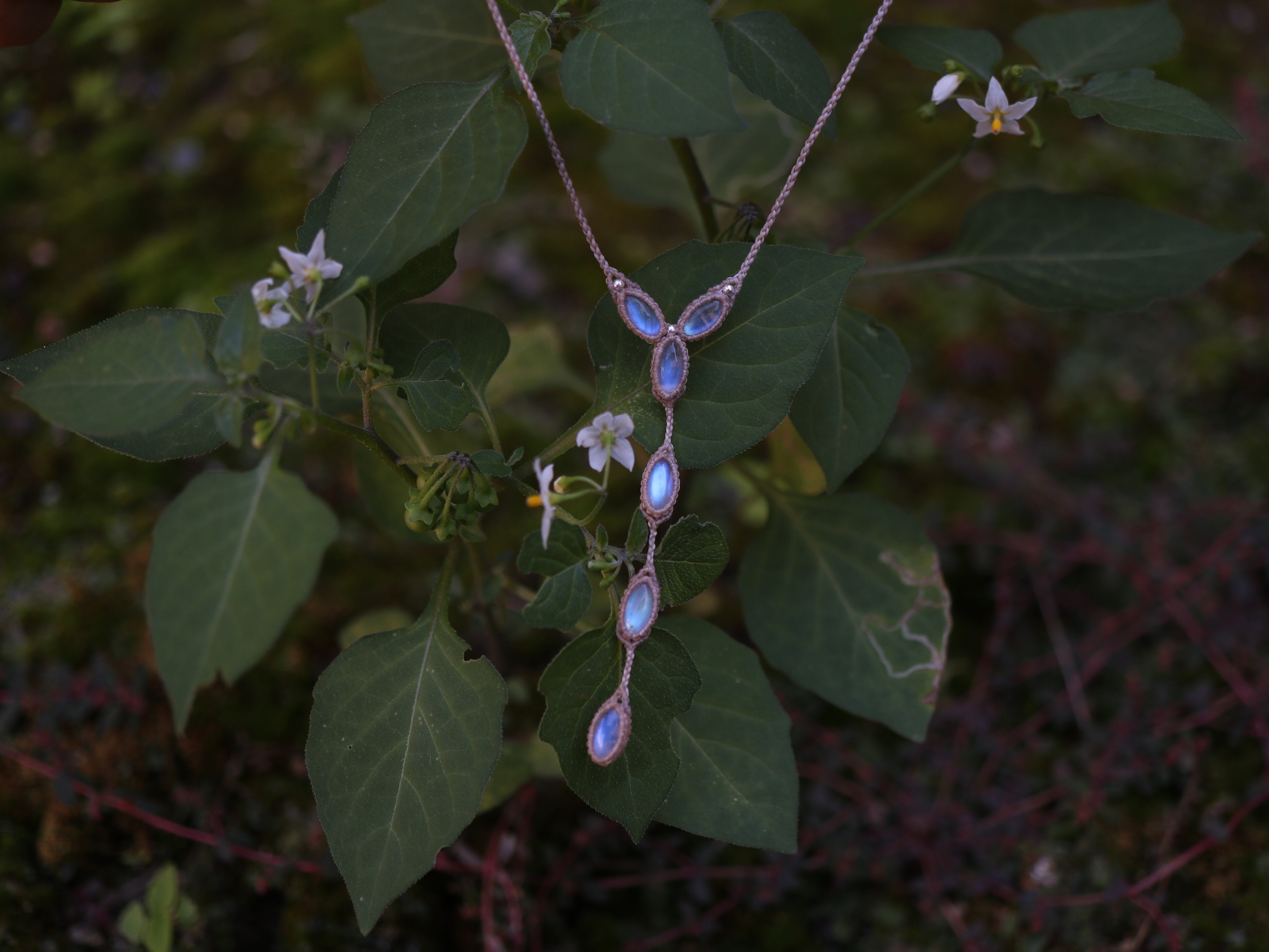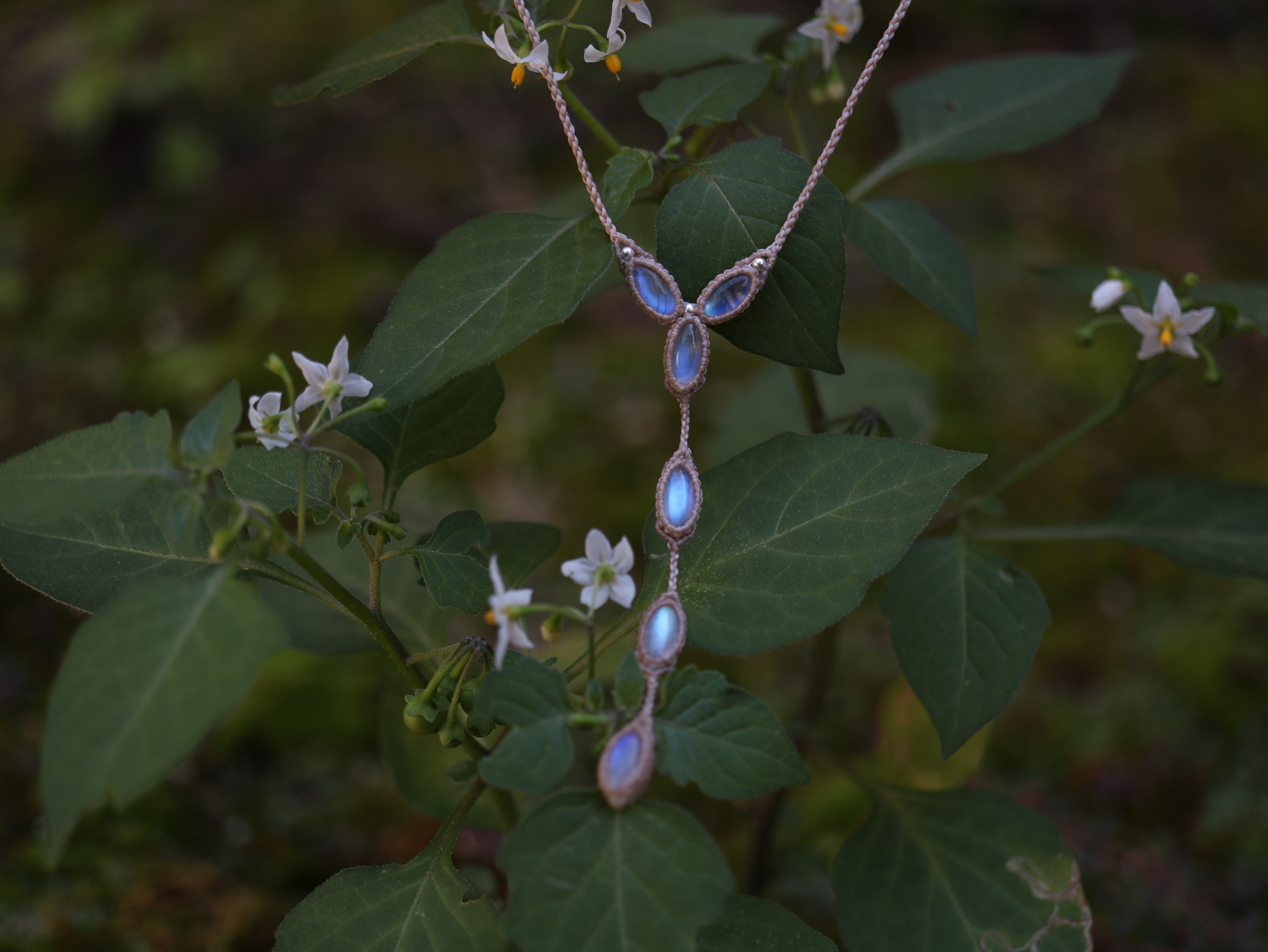 ※ 天然石を包むコードを始めトップ部分に使用したマクラメ編みコードは手縫い糸ほどの細いコードを使い、天然石の表情を引き立てるよう