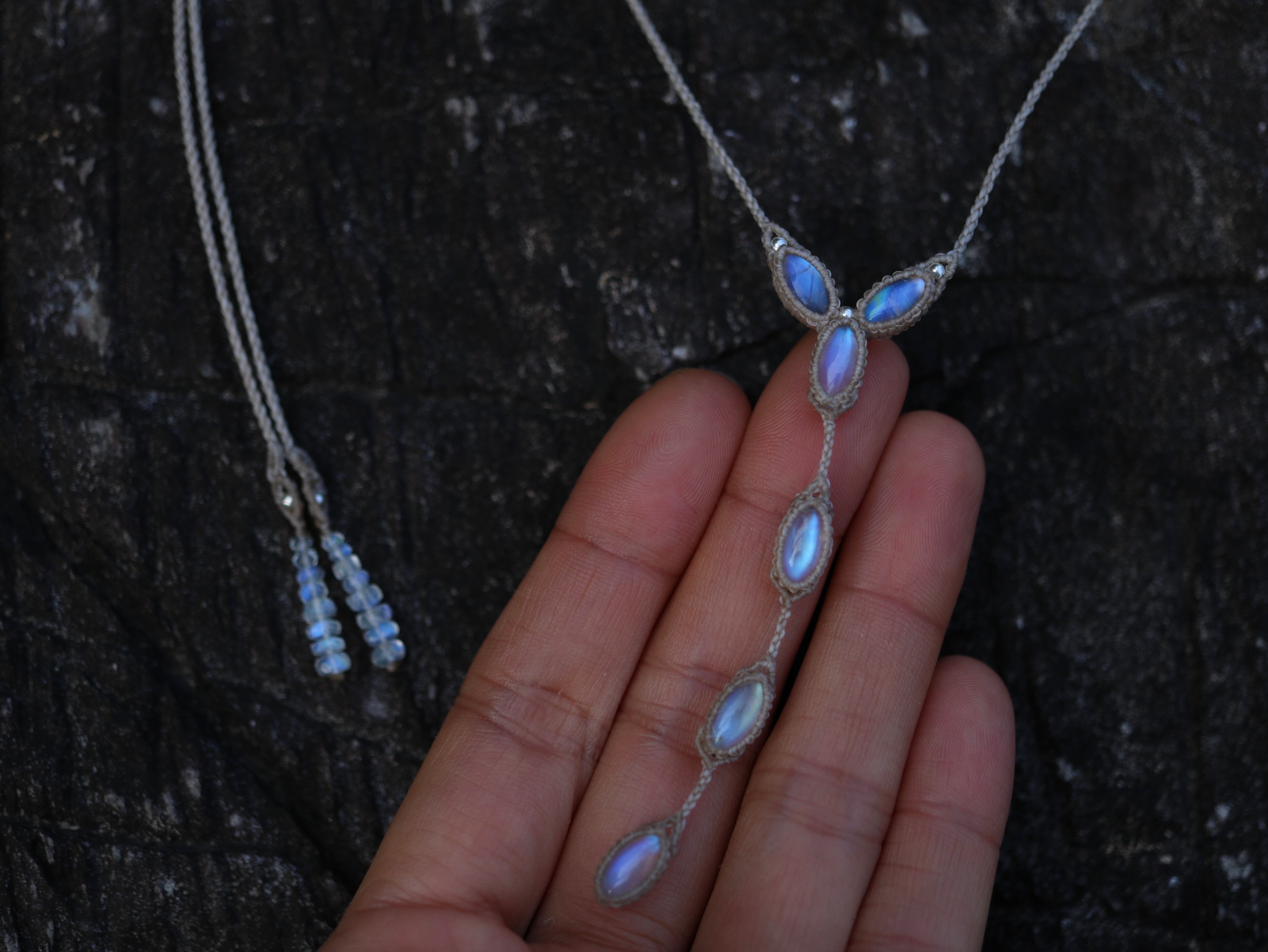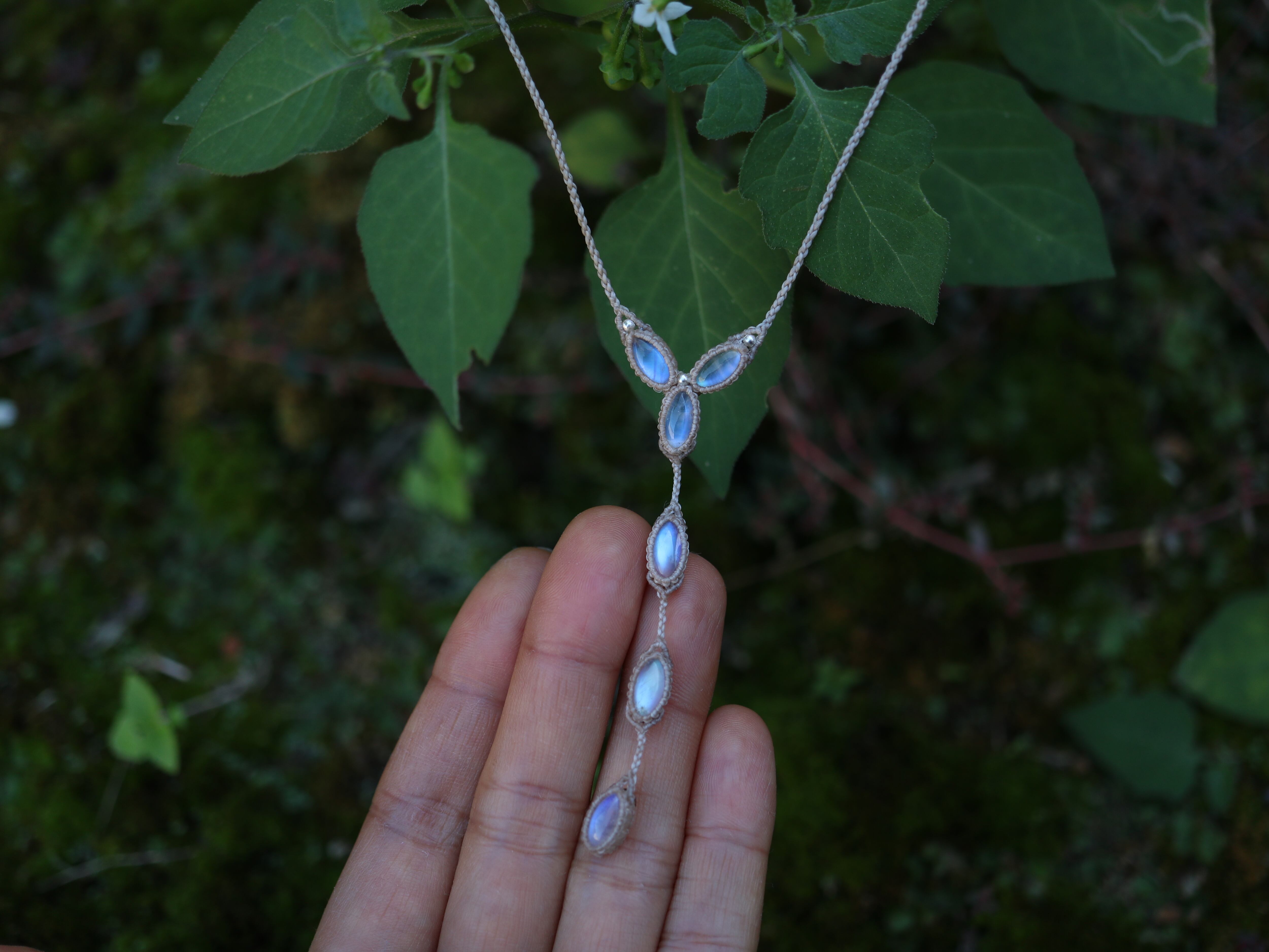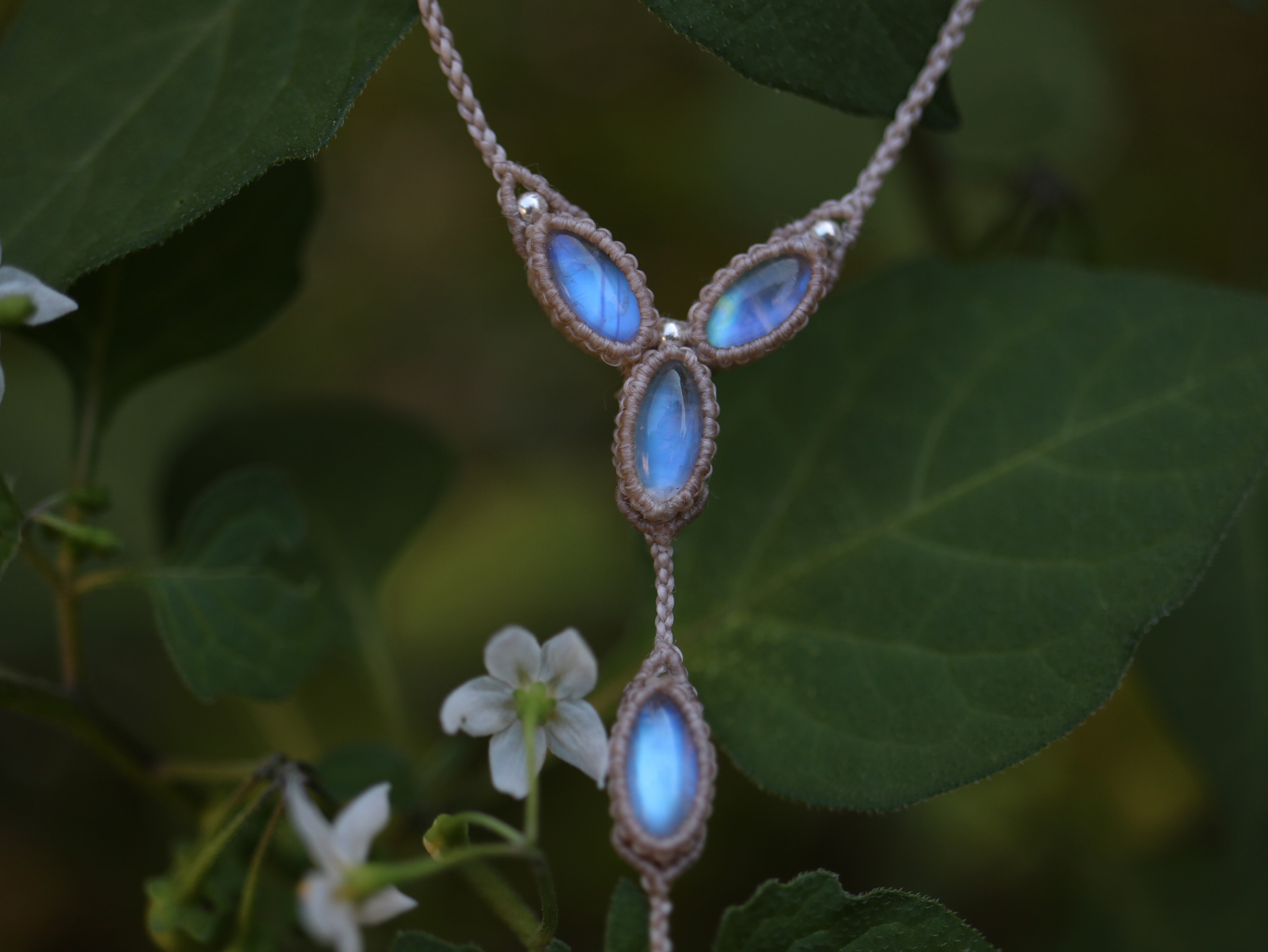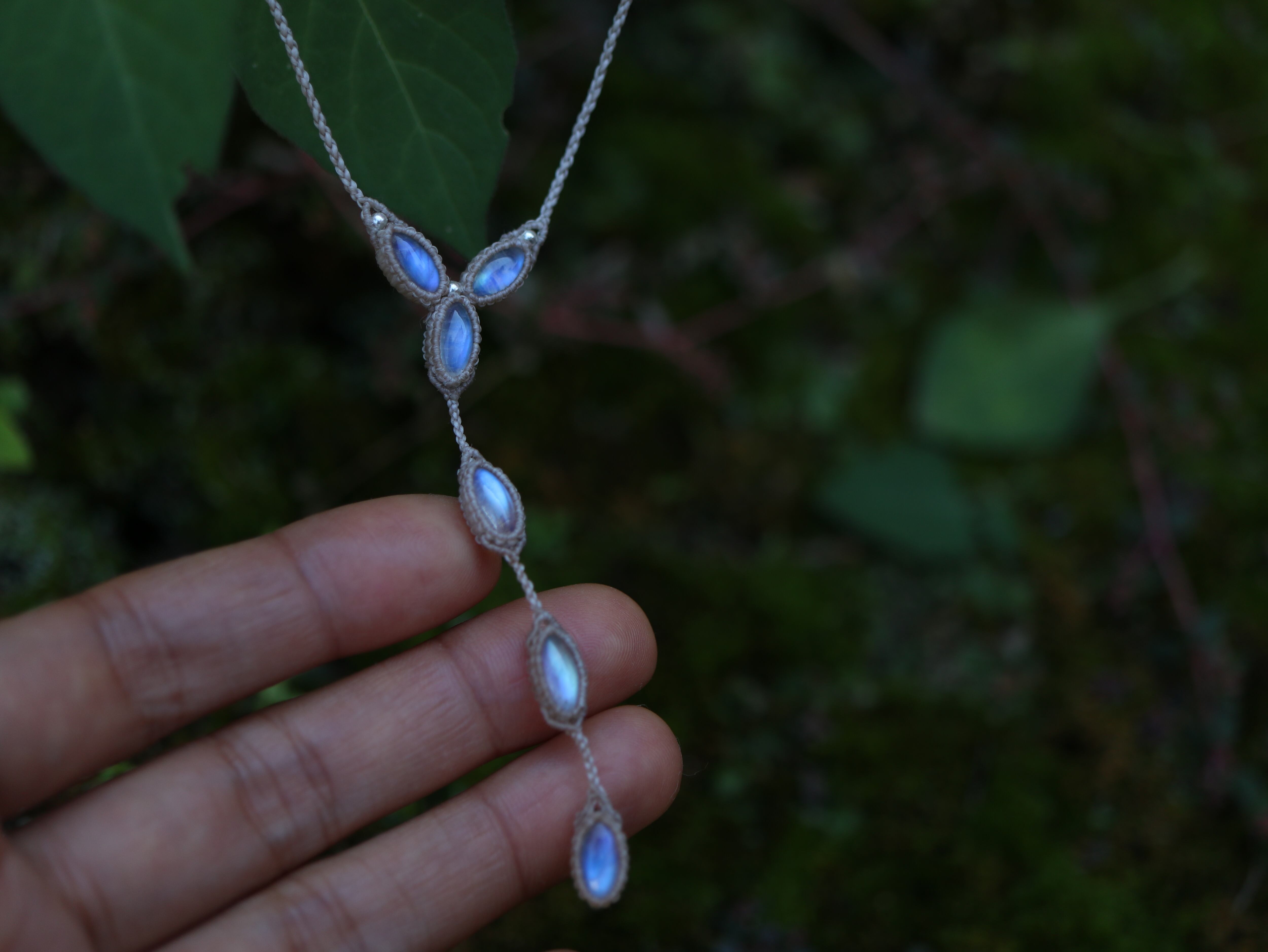 ※ 天然石を包むコードを始めトップ部分に使用したマクラメ編みコードは手縫い糸ほどの細いコードを使い、天然石の表情を引き立てるよう