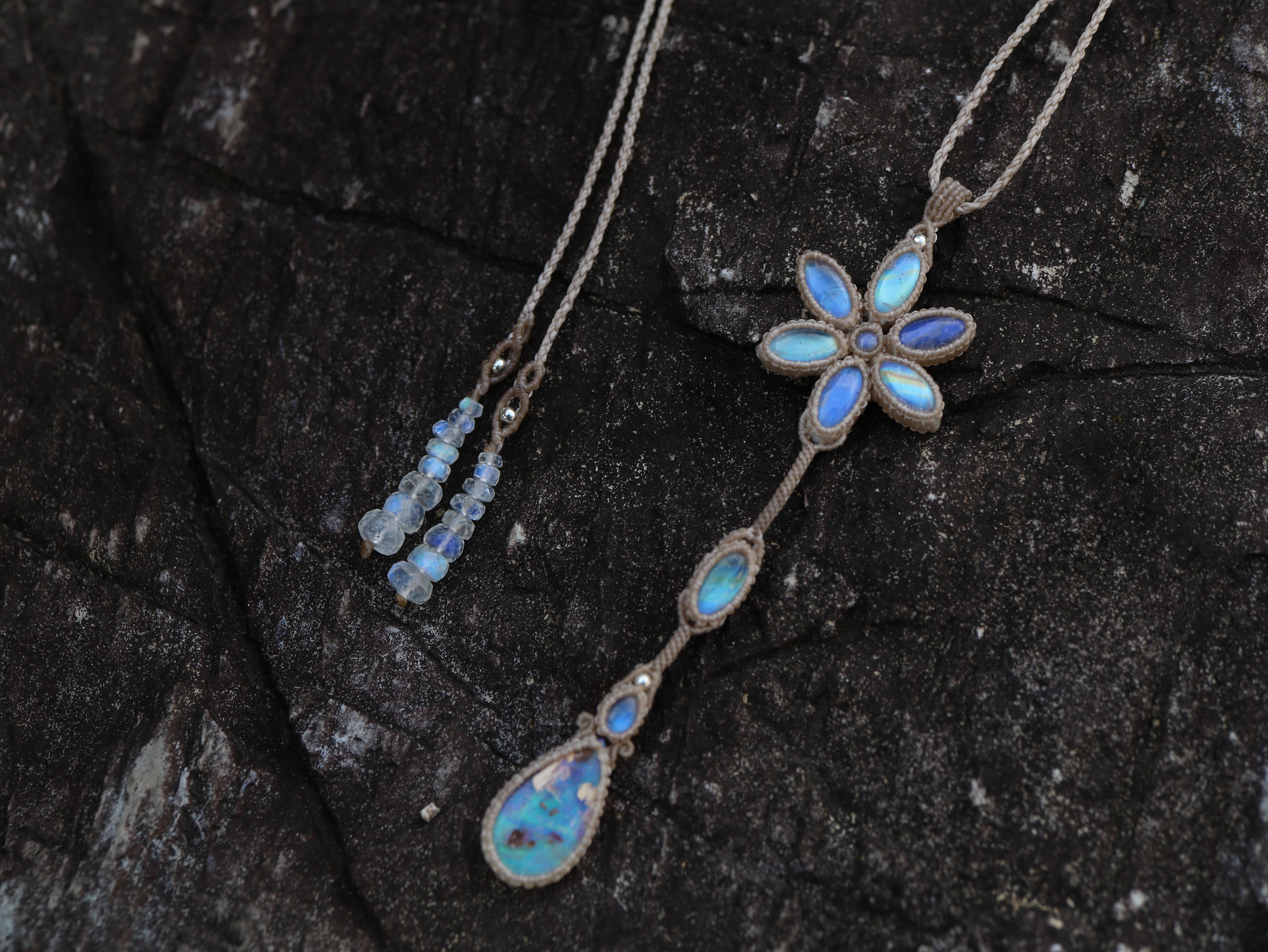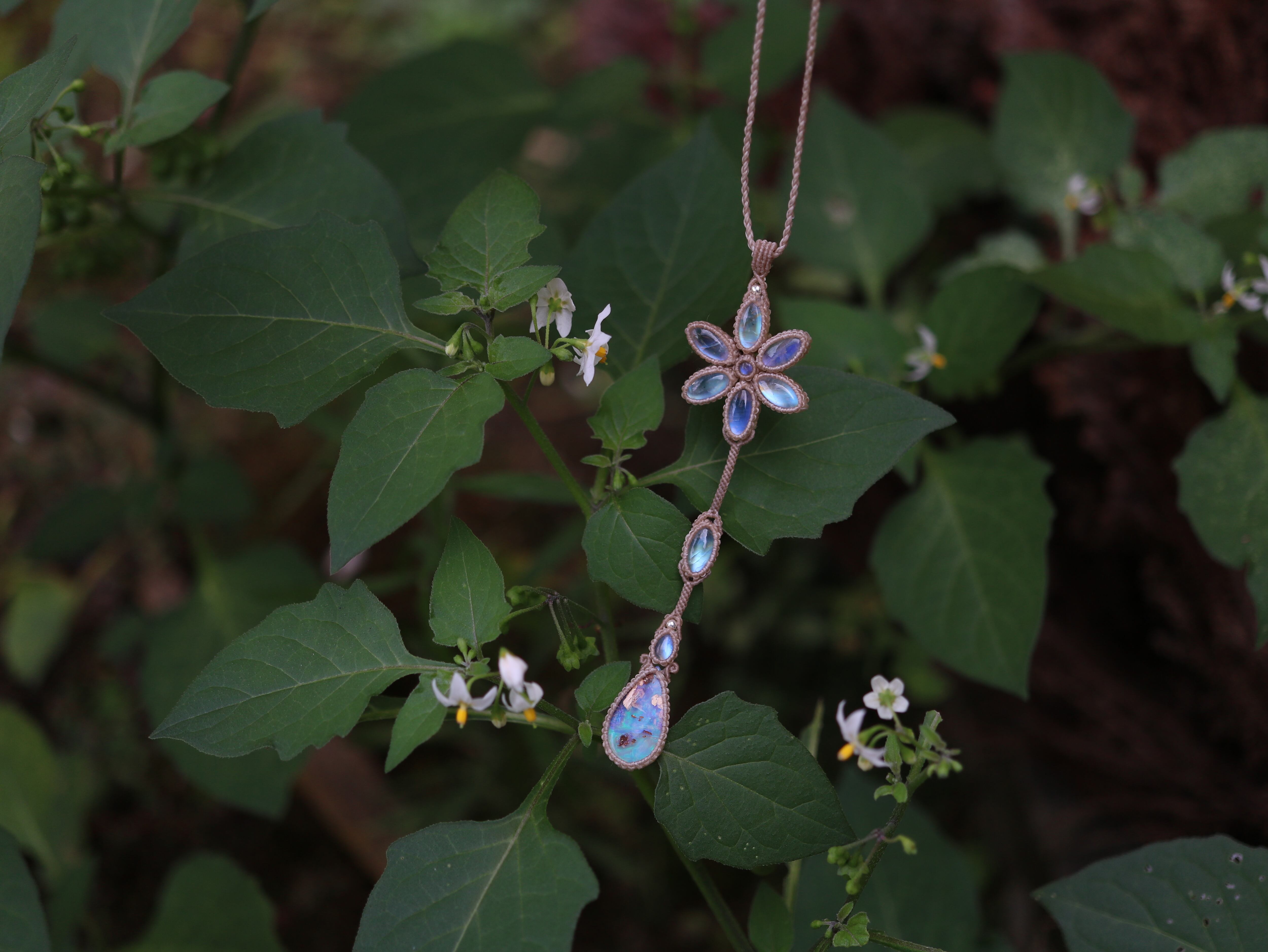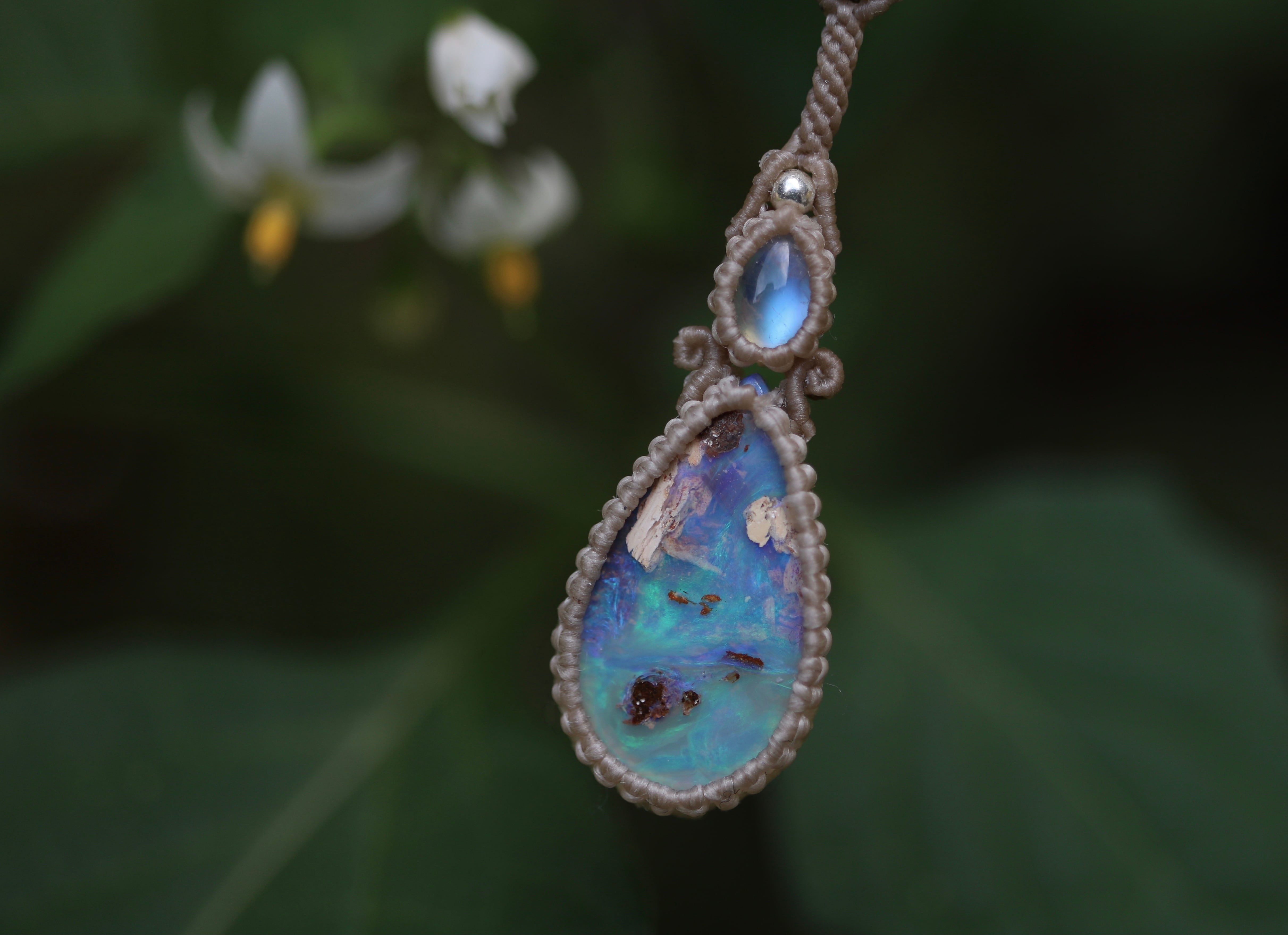 オーストラリア産オパール × ムーンストーン花 ペンダント