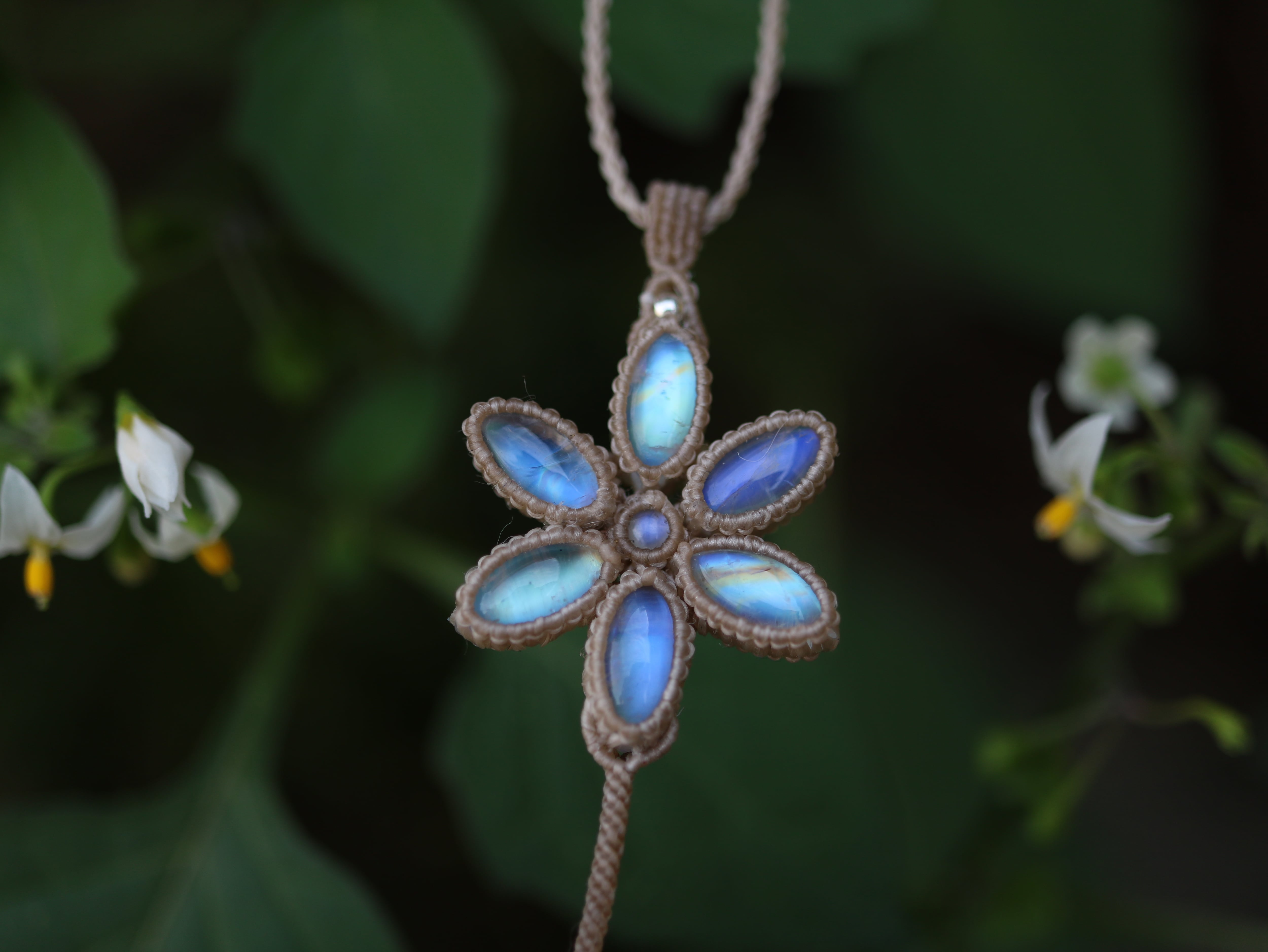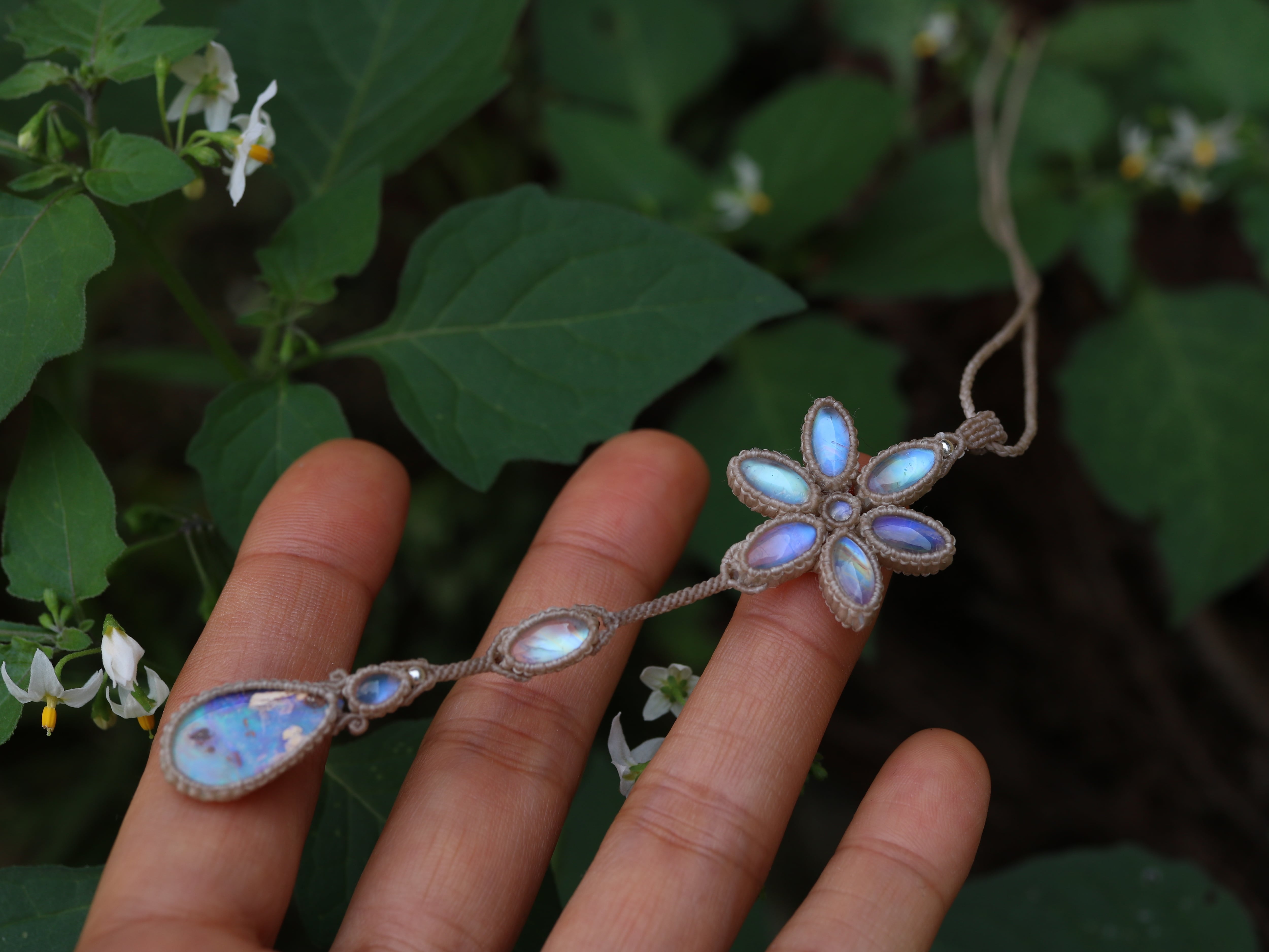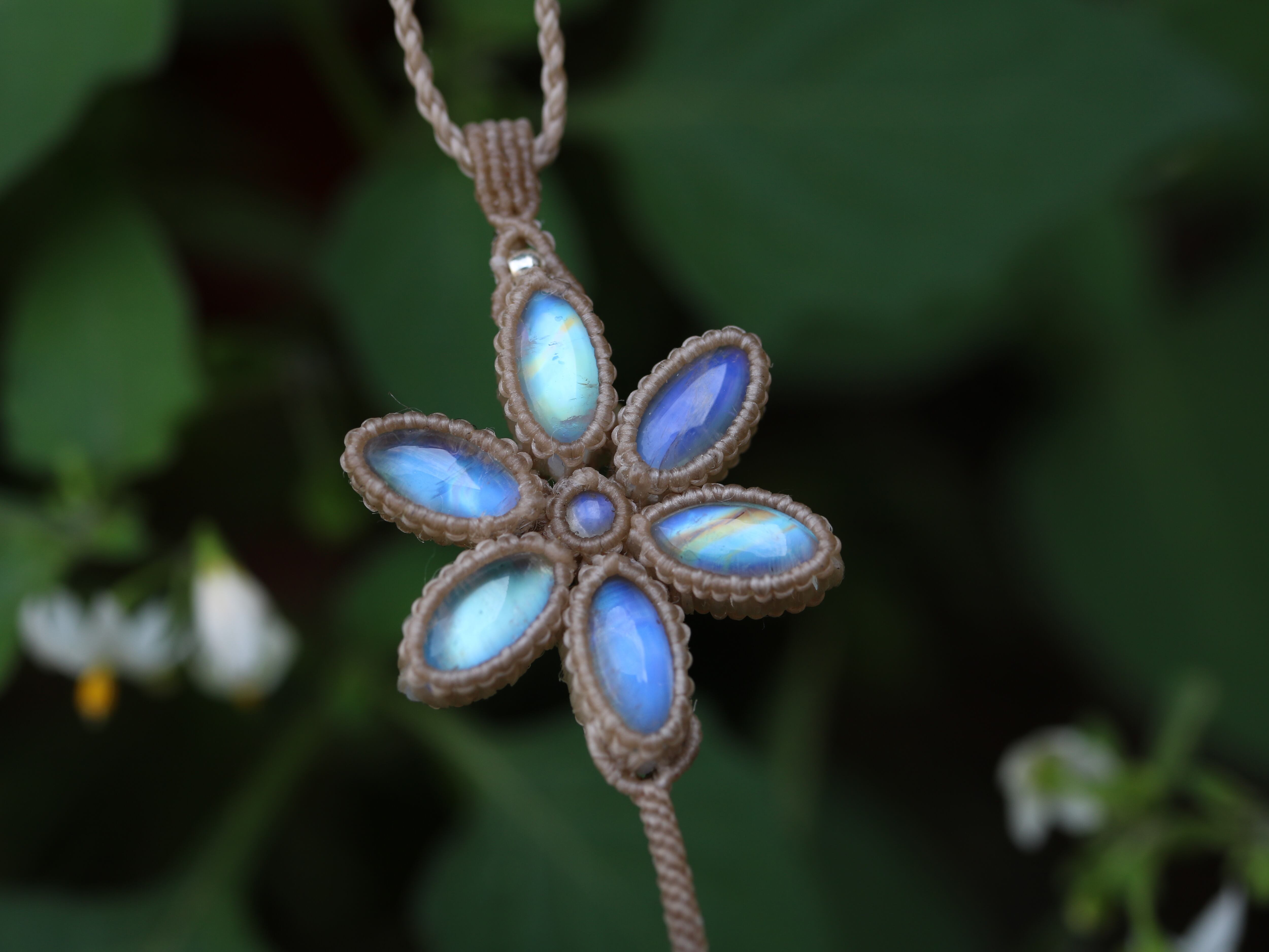 オーストラリア産オパール × ムーンストーン花 ペンダント