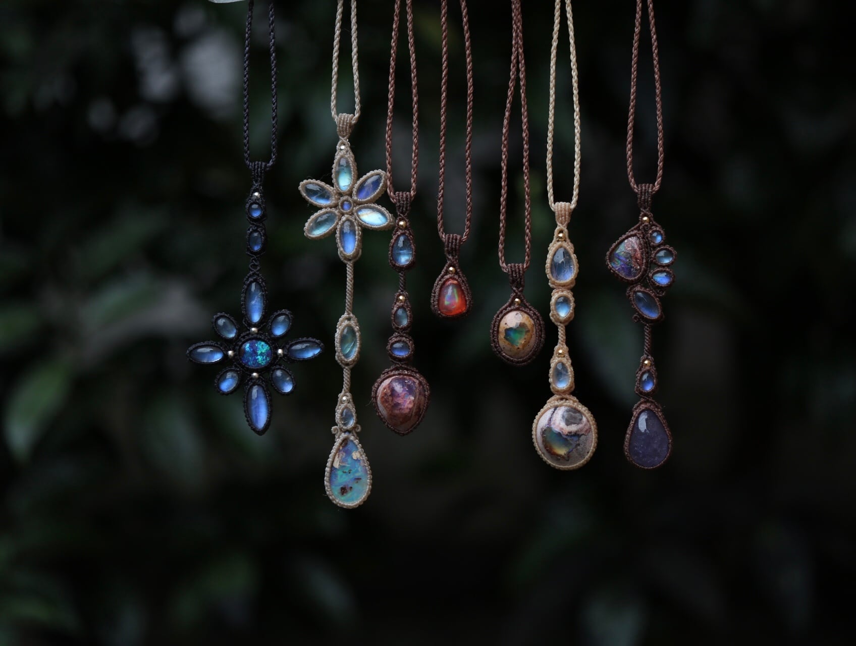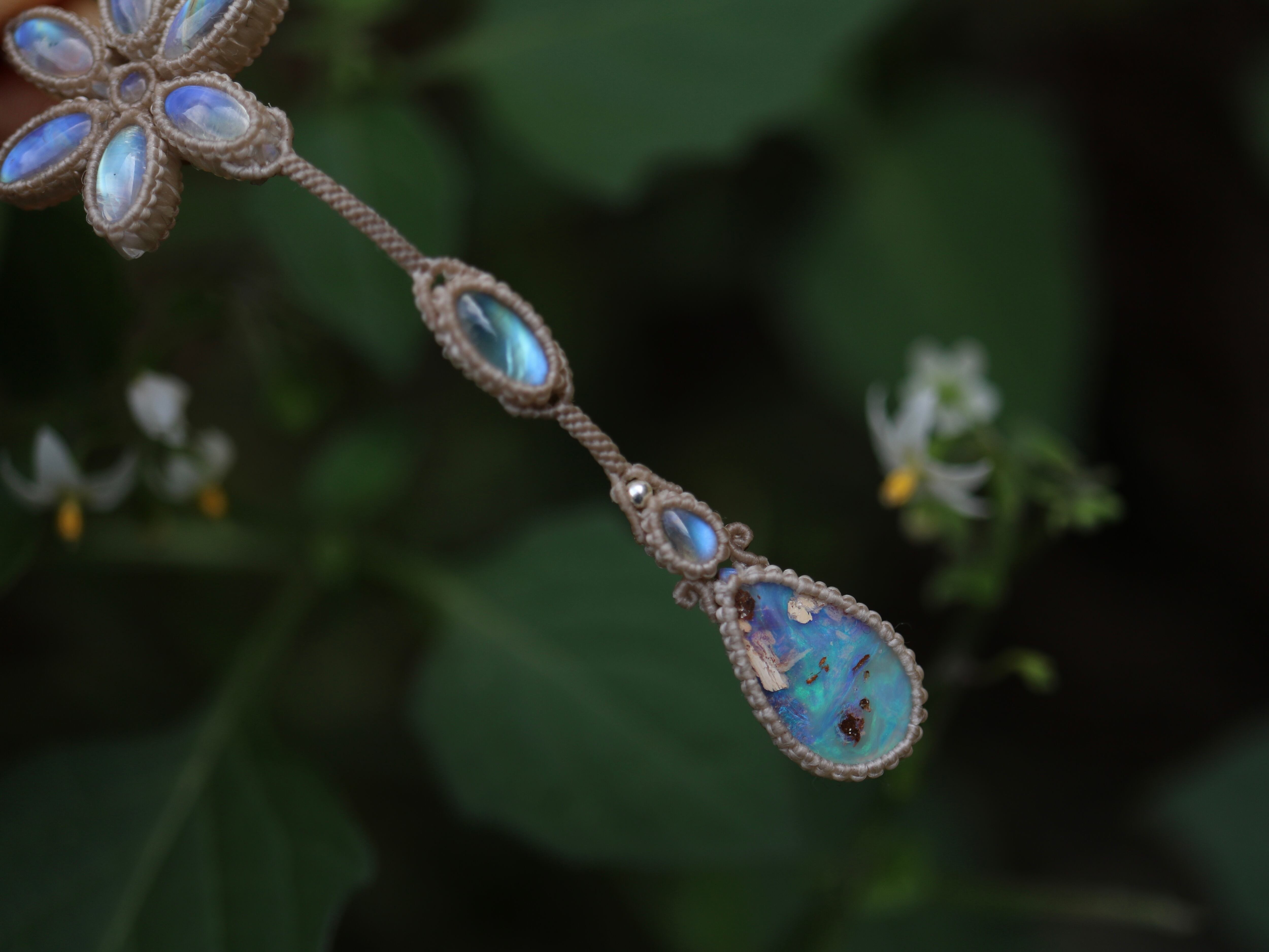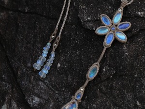 ※ 天然石を包むコードを始めトップ部分に使用したマクラメ編みコードは手縫い糸ほどの細いコードを使い、天然石の表情を引き立てるよう
