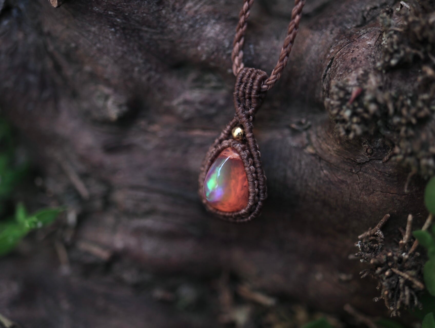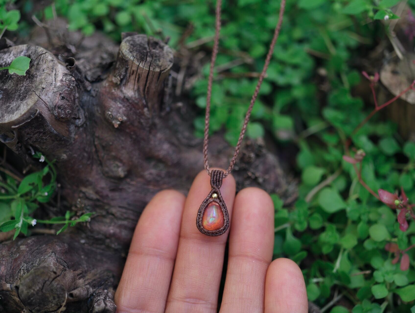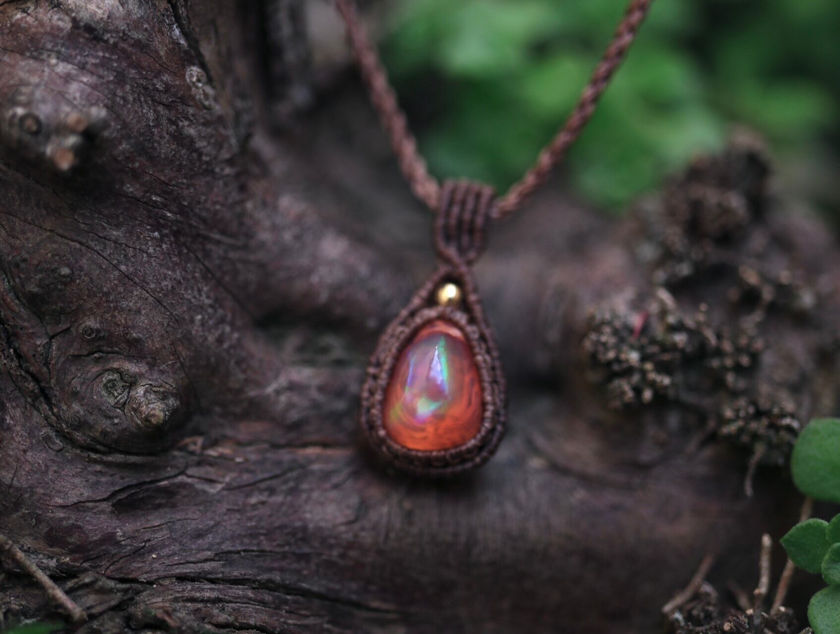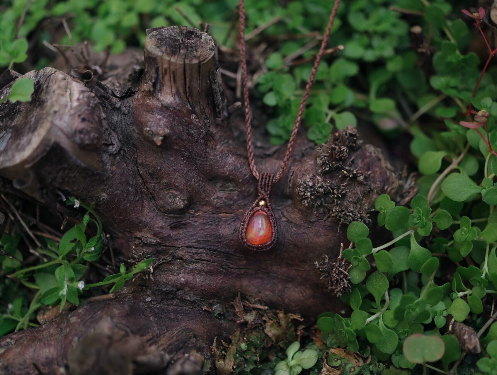 ※ 天然石を包むコードを始めトップ部分に使用したマクラメ編みコードは手縫い糸ほどの細いコードを使い、天然石の表情を引き立てるようひと目ひと目丁寧に編み上げています。