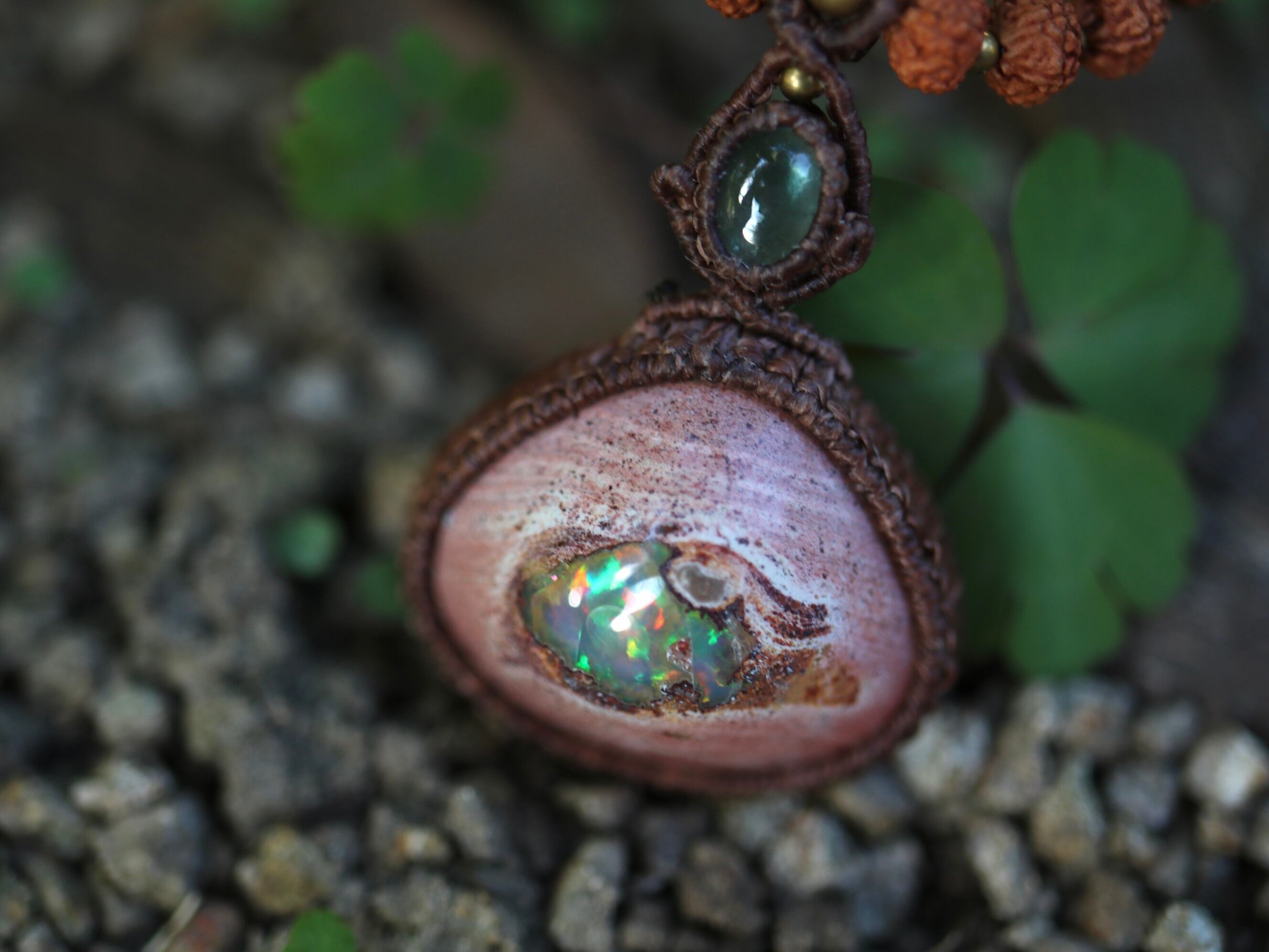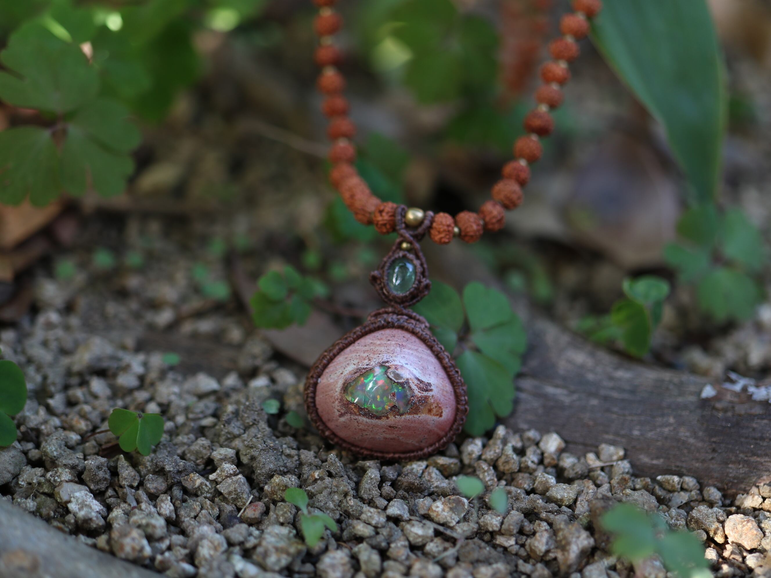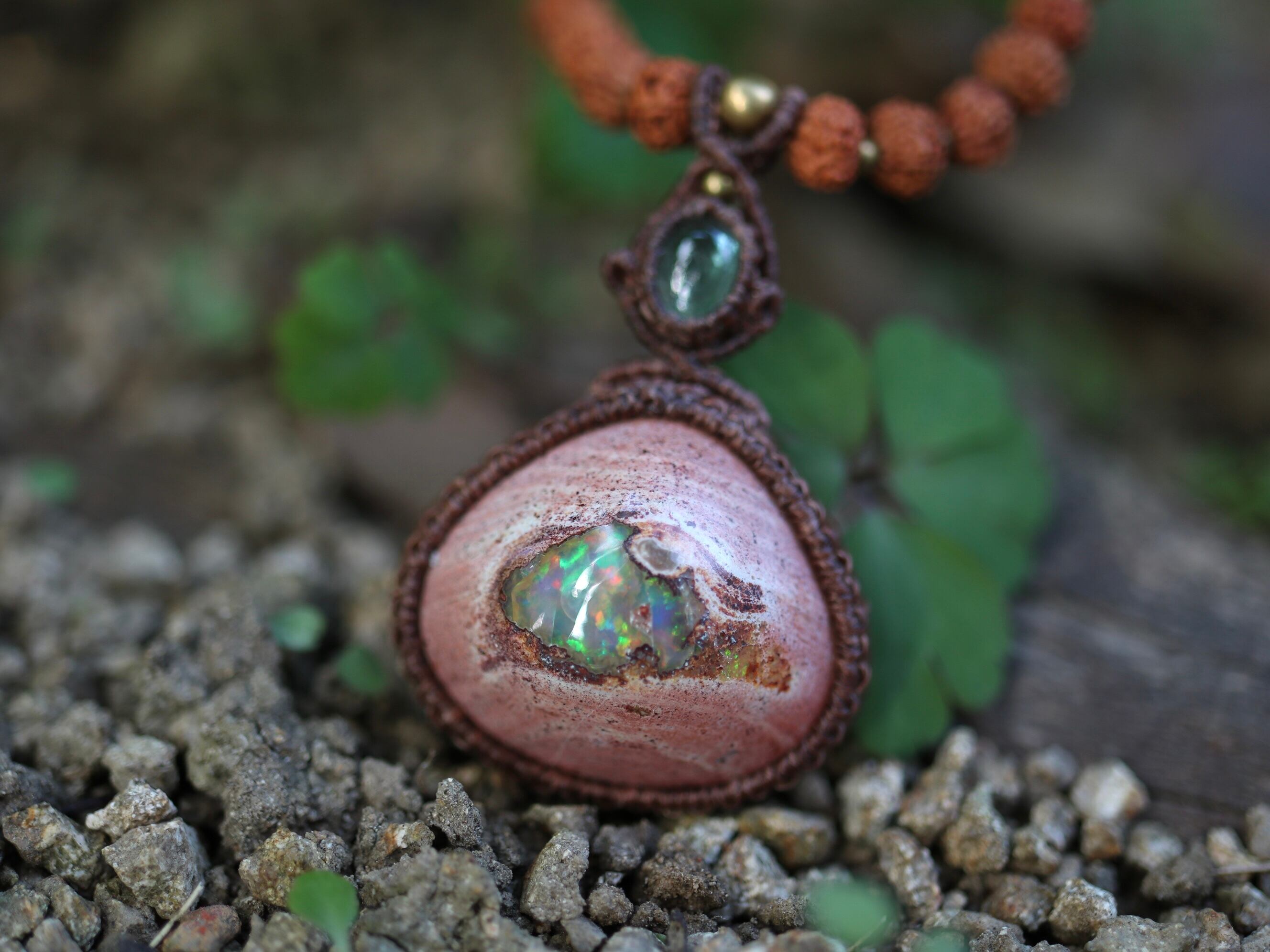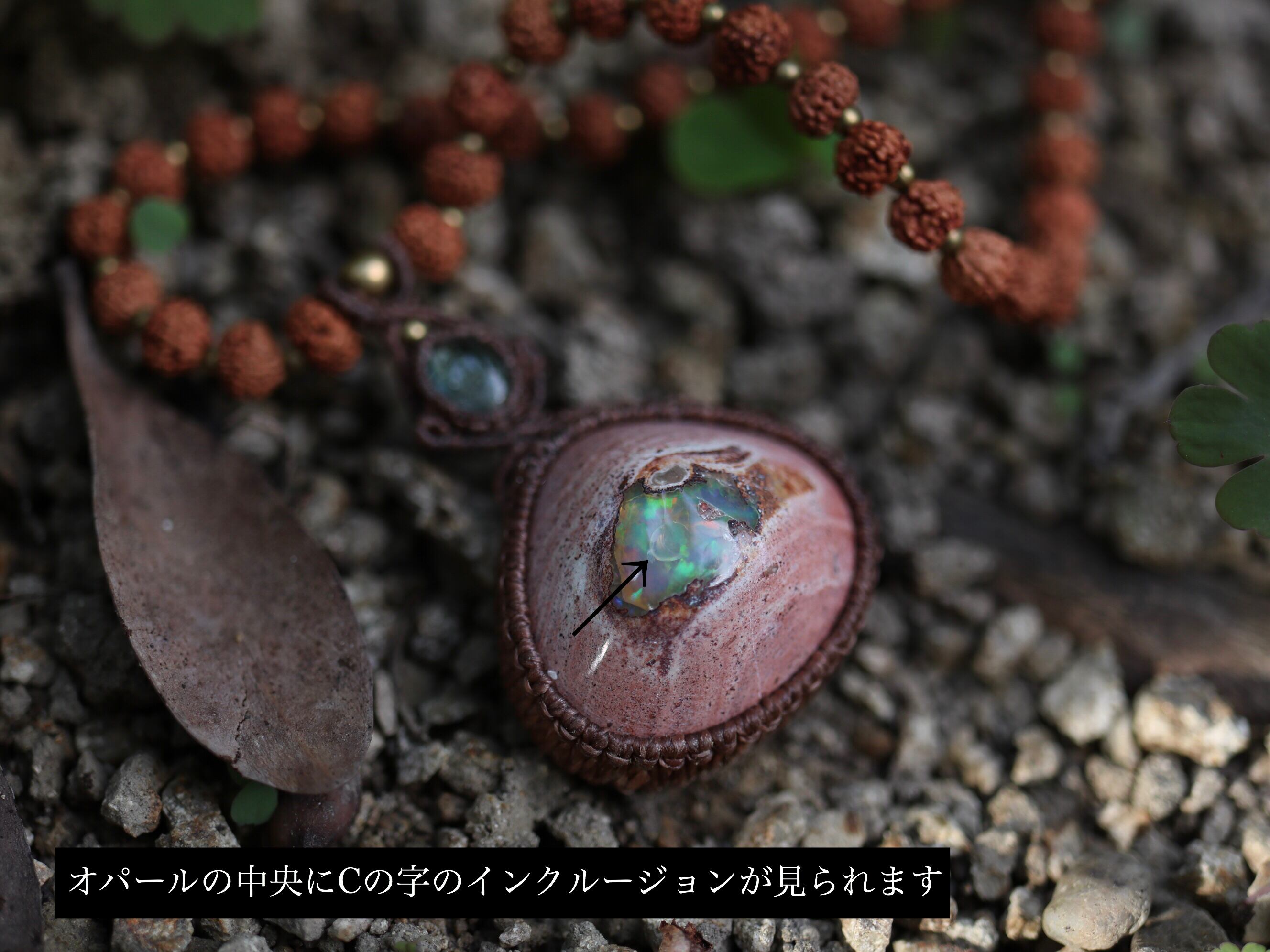 カンテラオパール × グリーントルマリン 菩提樹ネックレス
