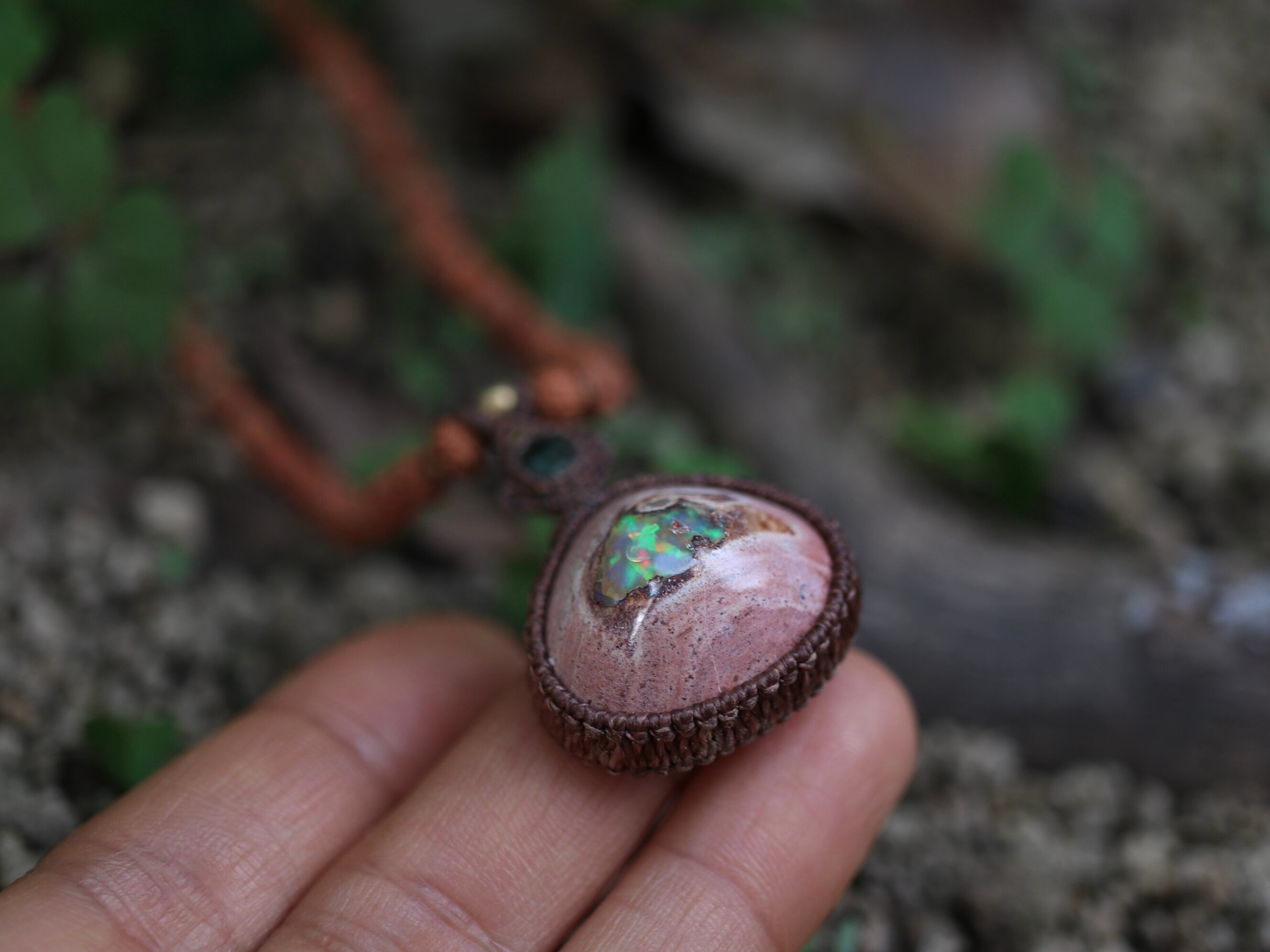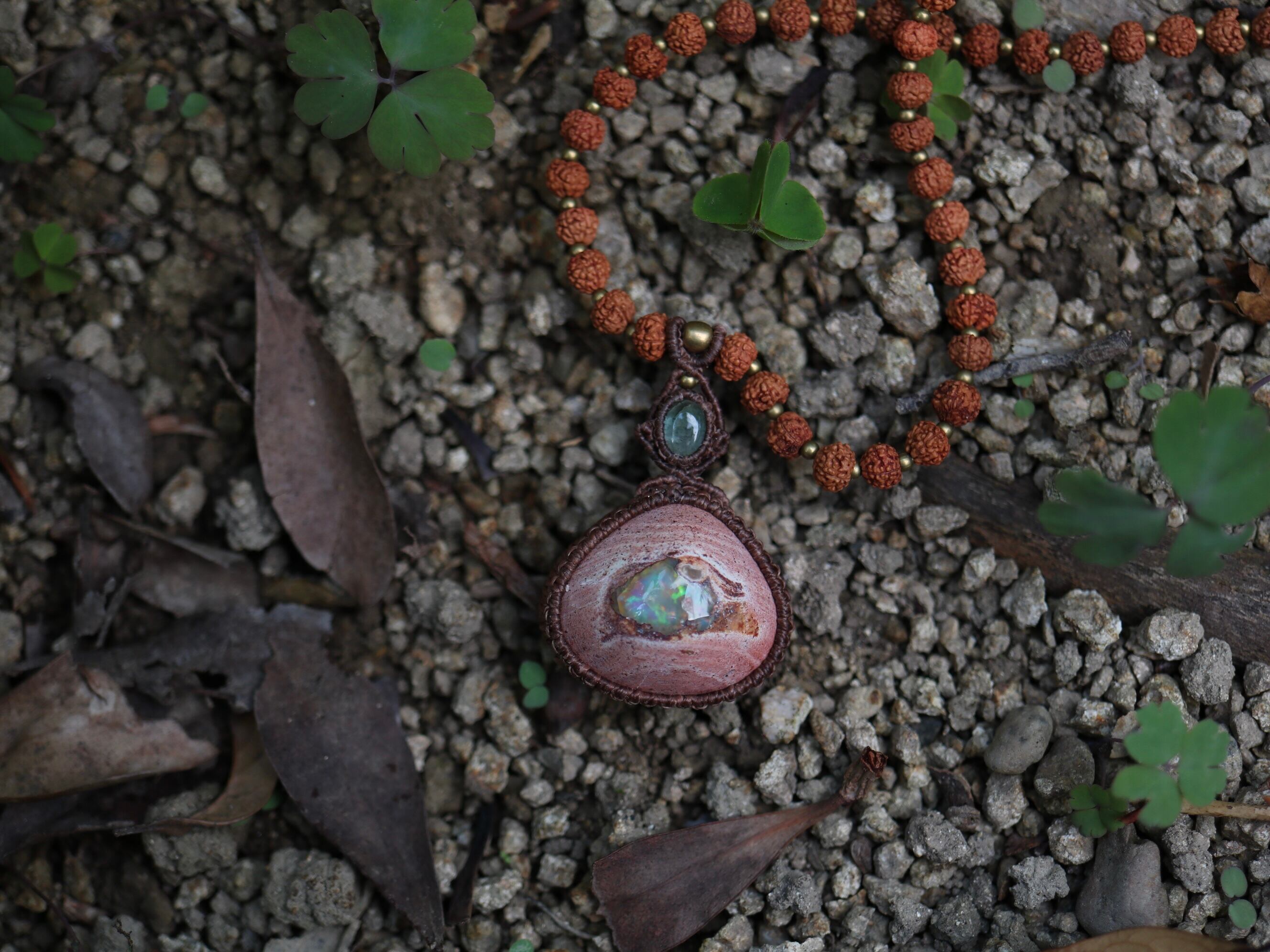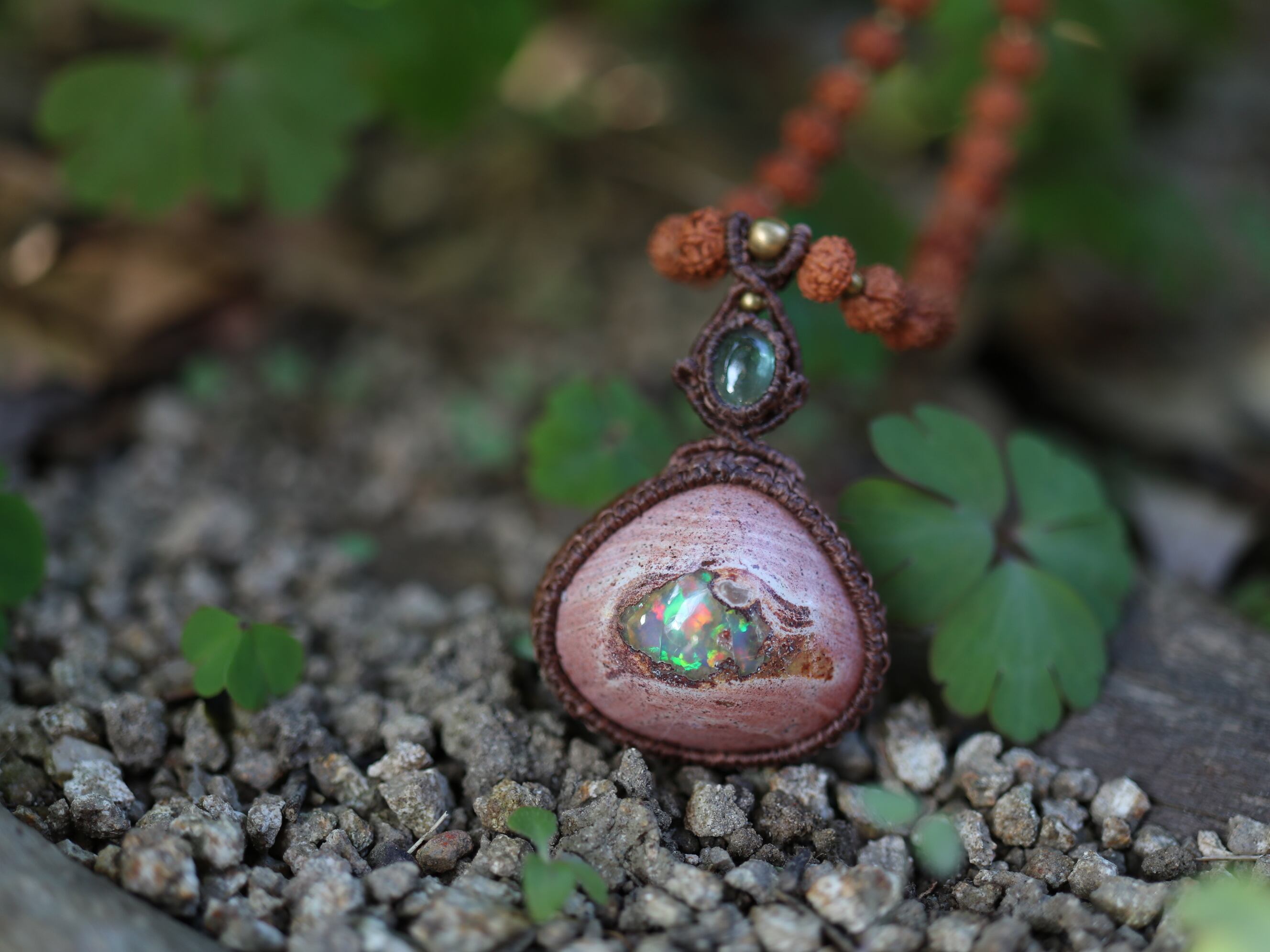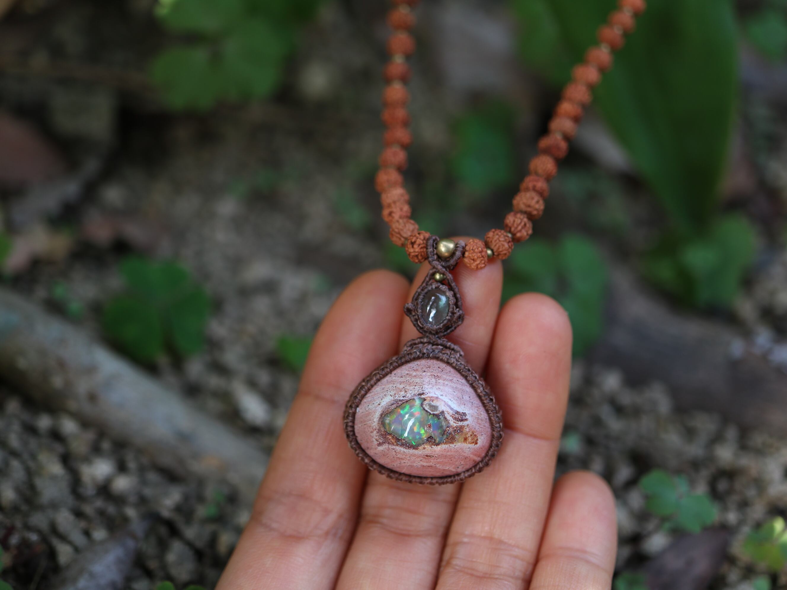 カンテラオパール × グリーントルマリン 菩提樹ネックレス
