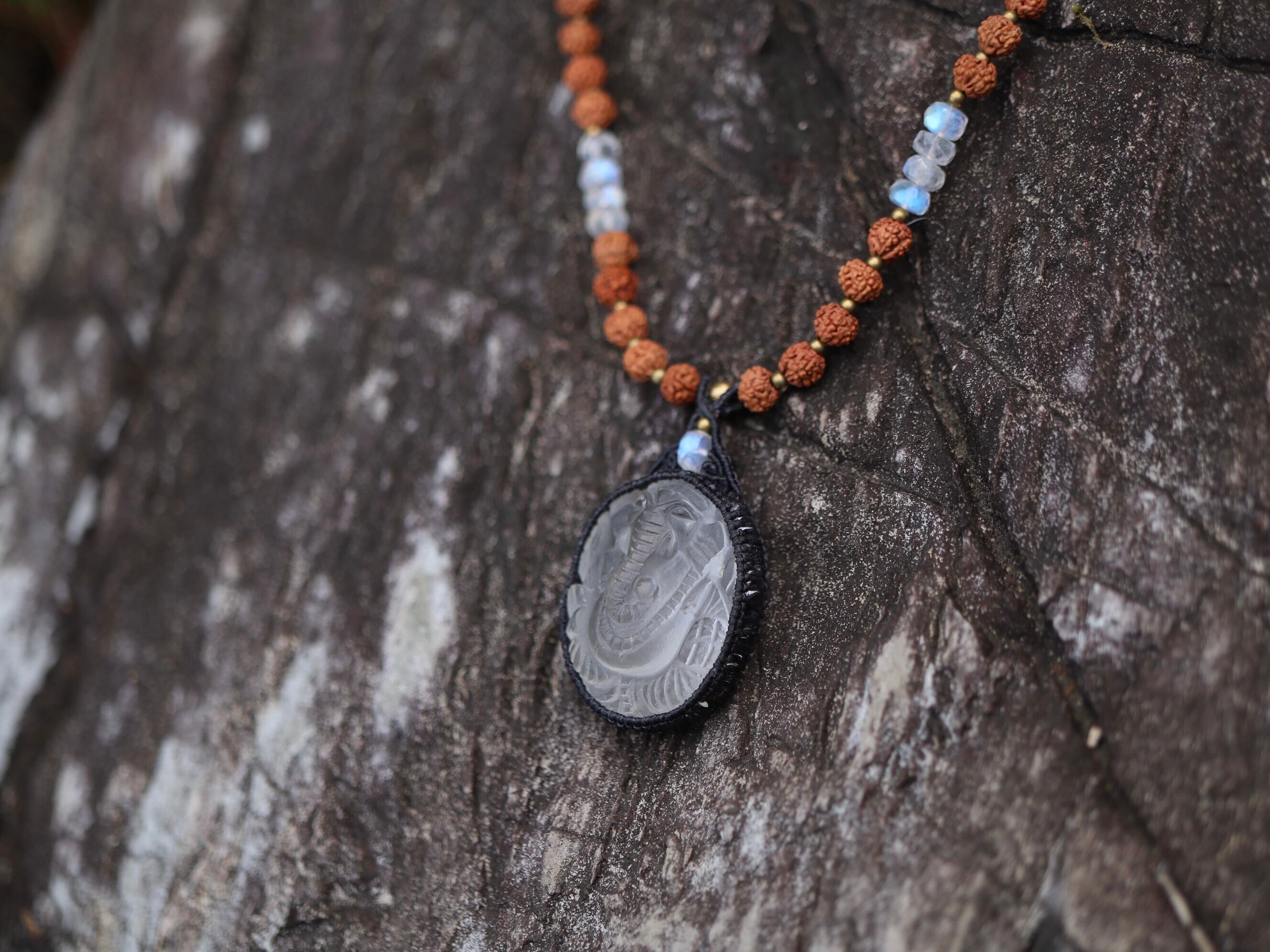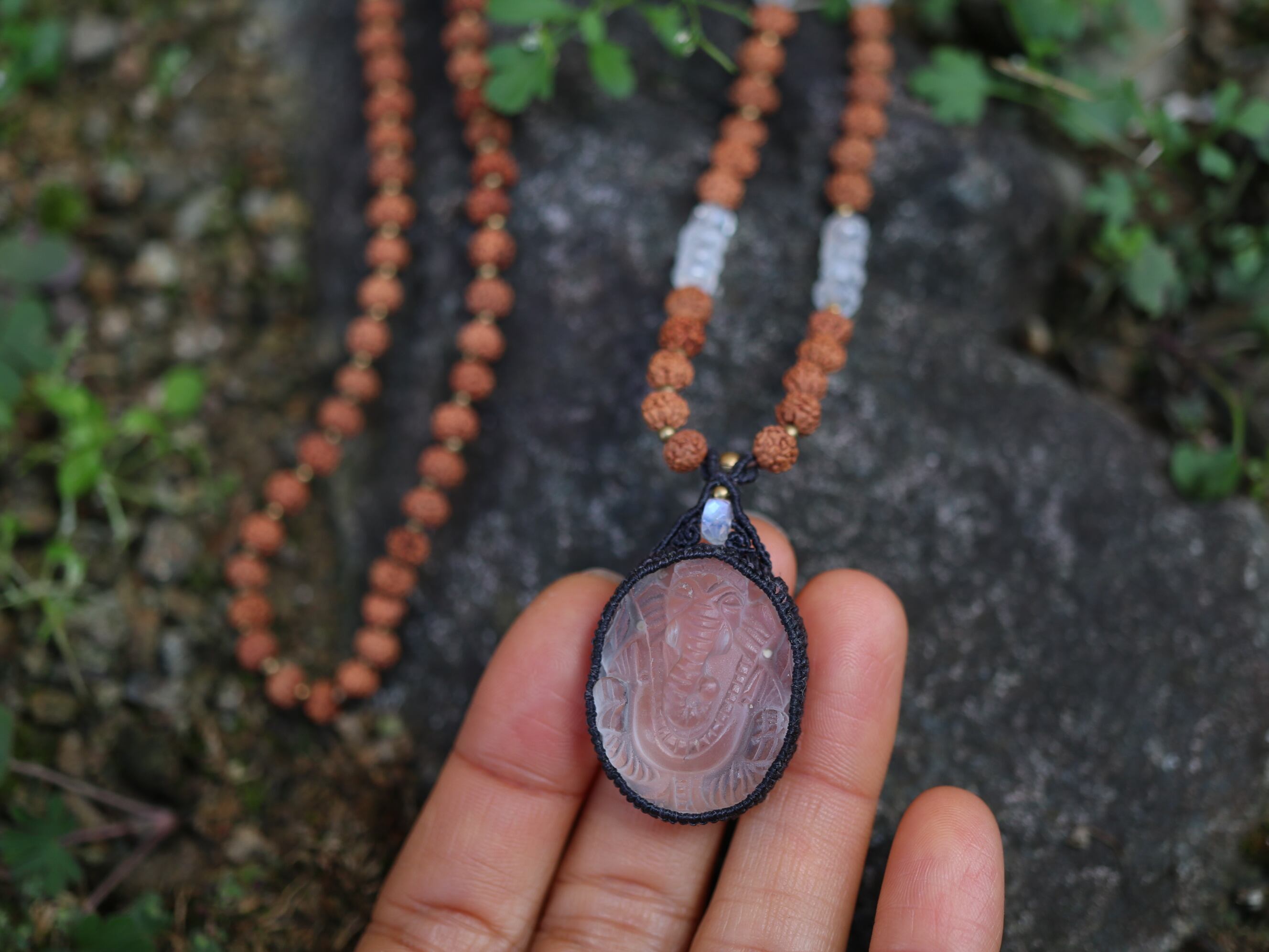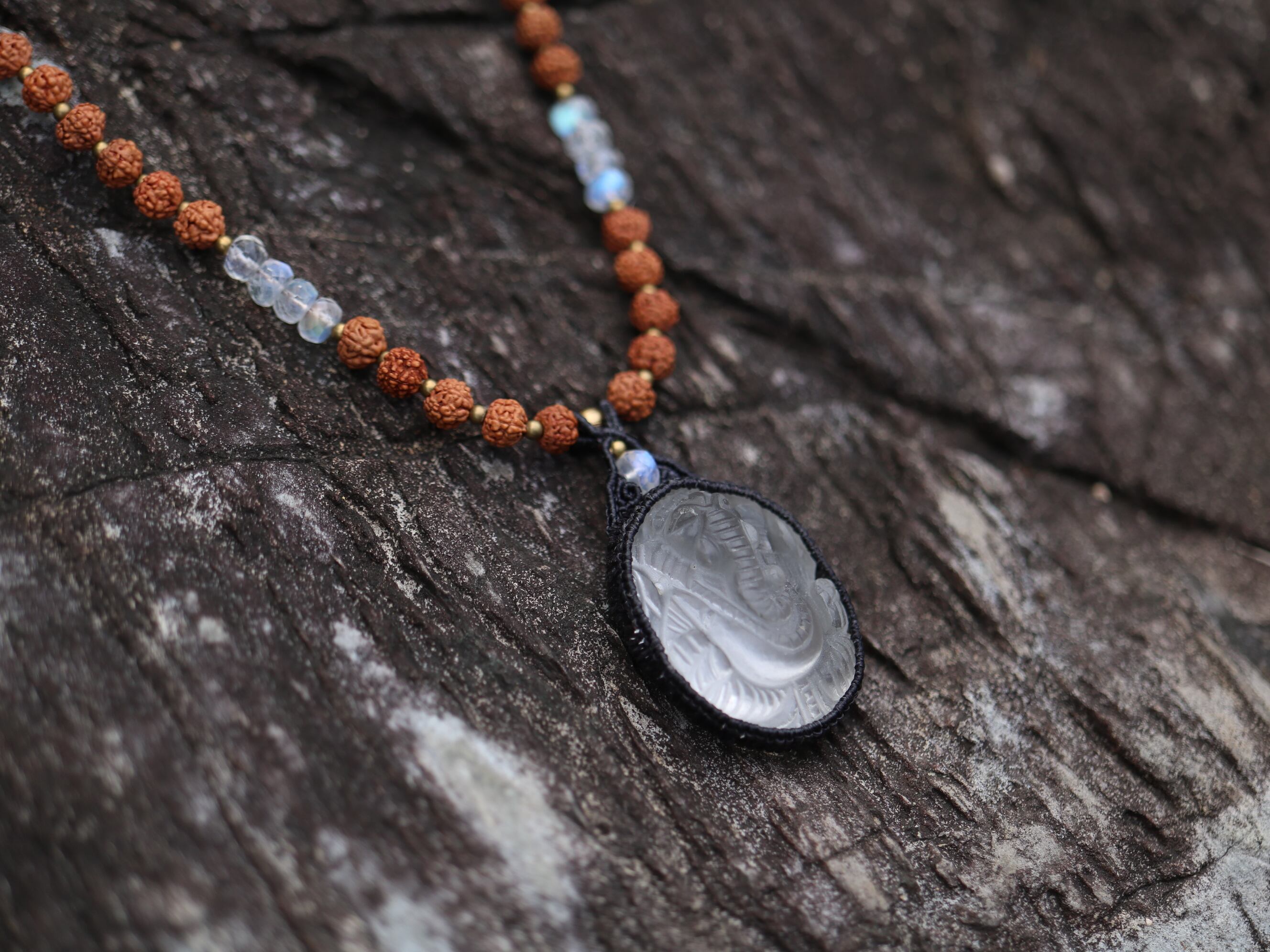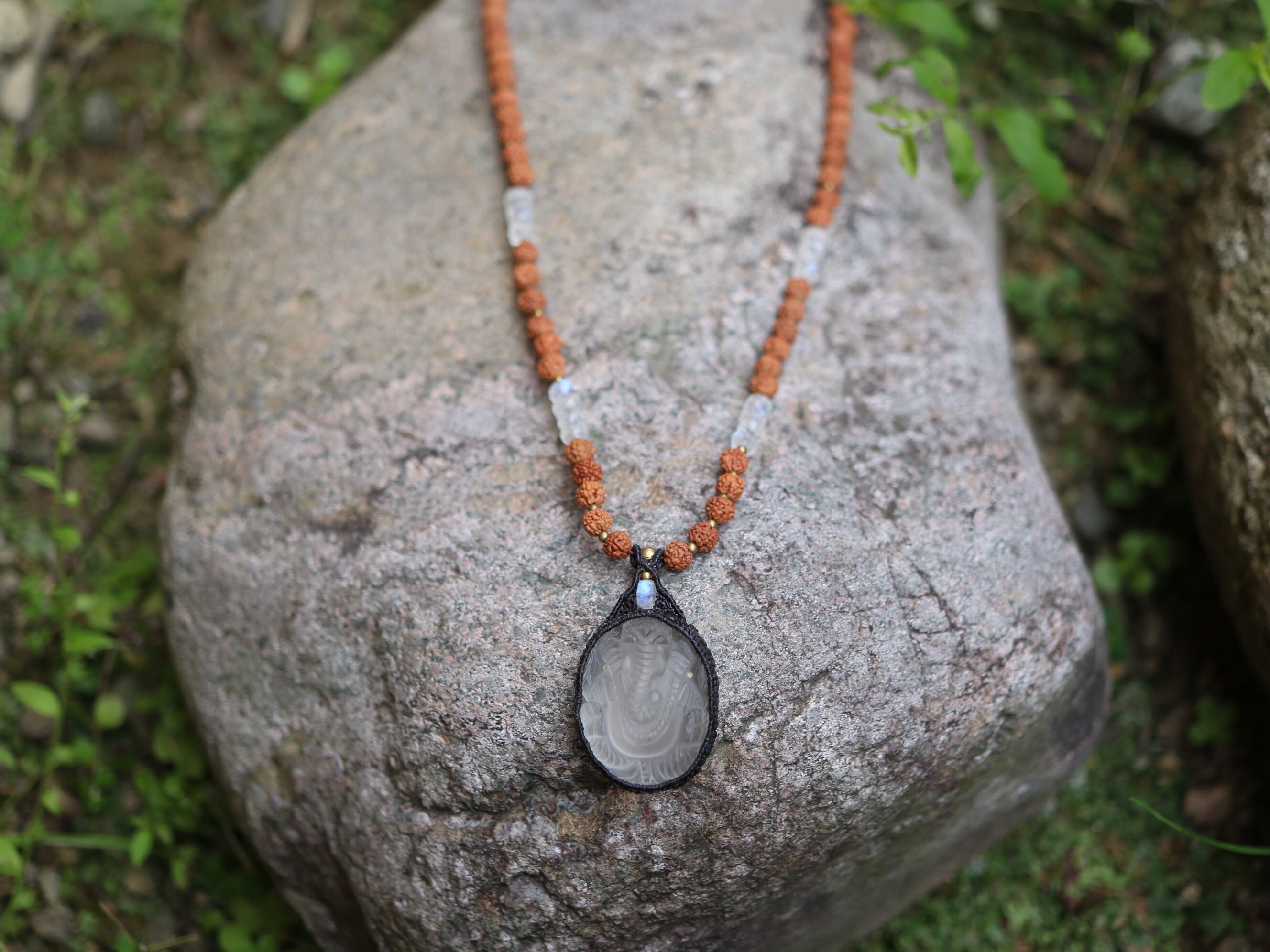 菩提樹のみの場合、頭を通らない可能性があるためムーンストーンビーズをあしらいました 。