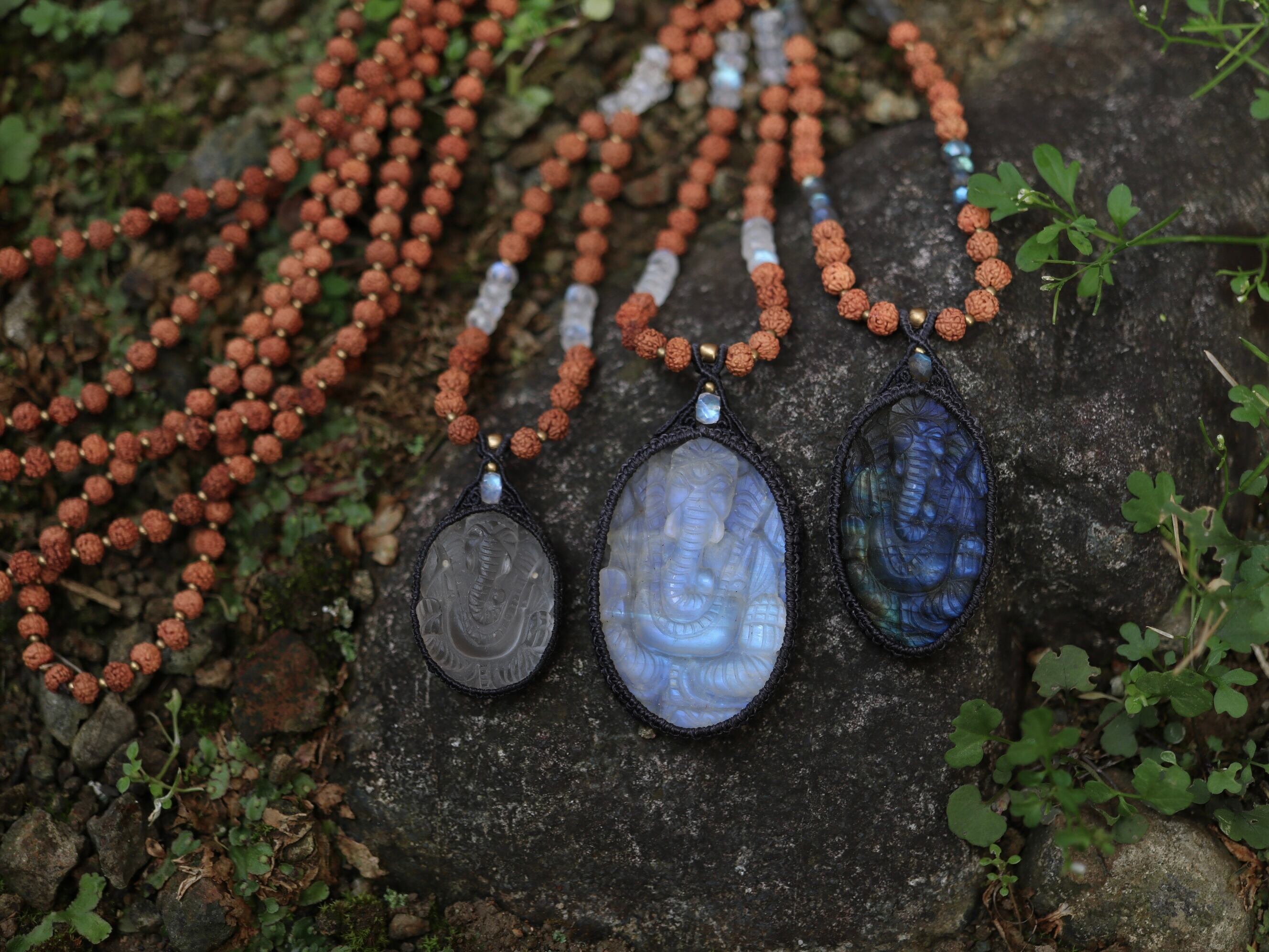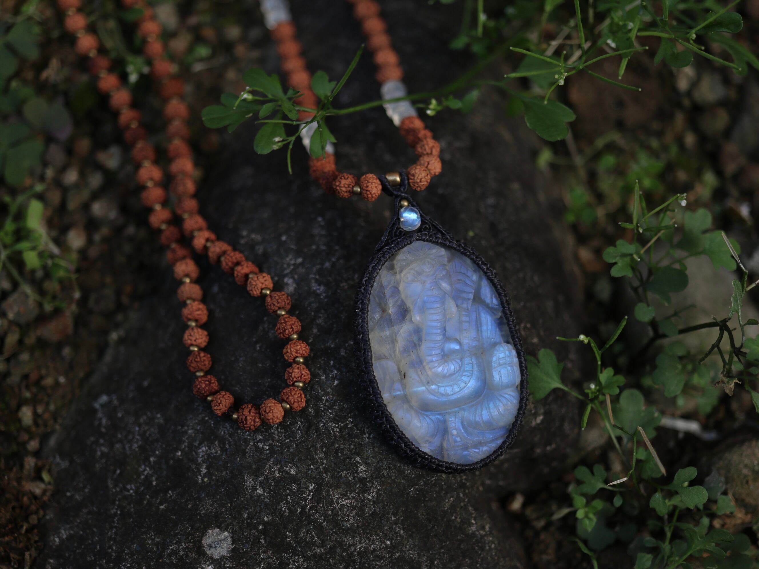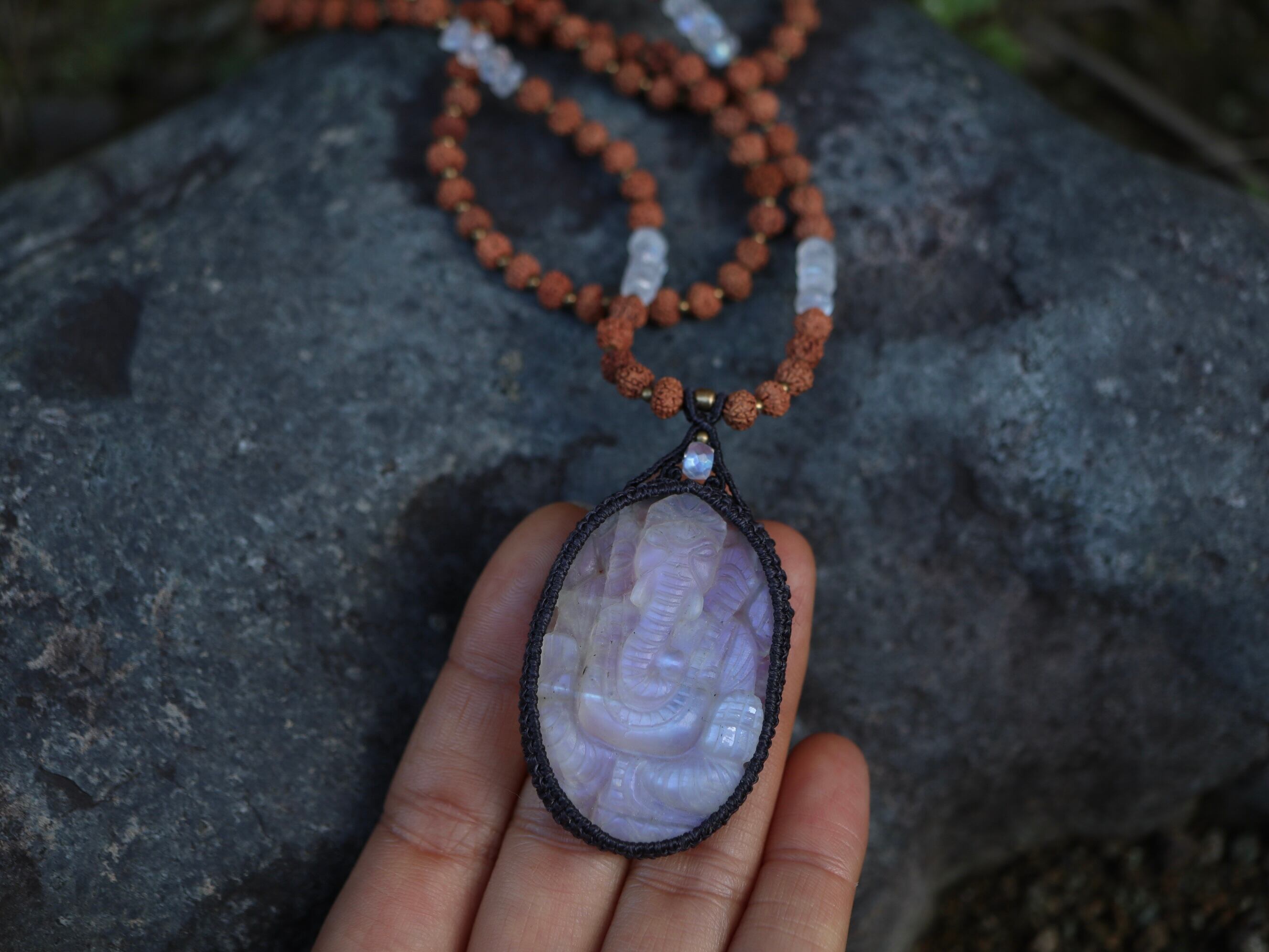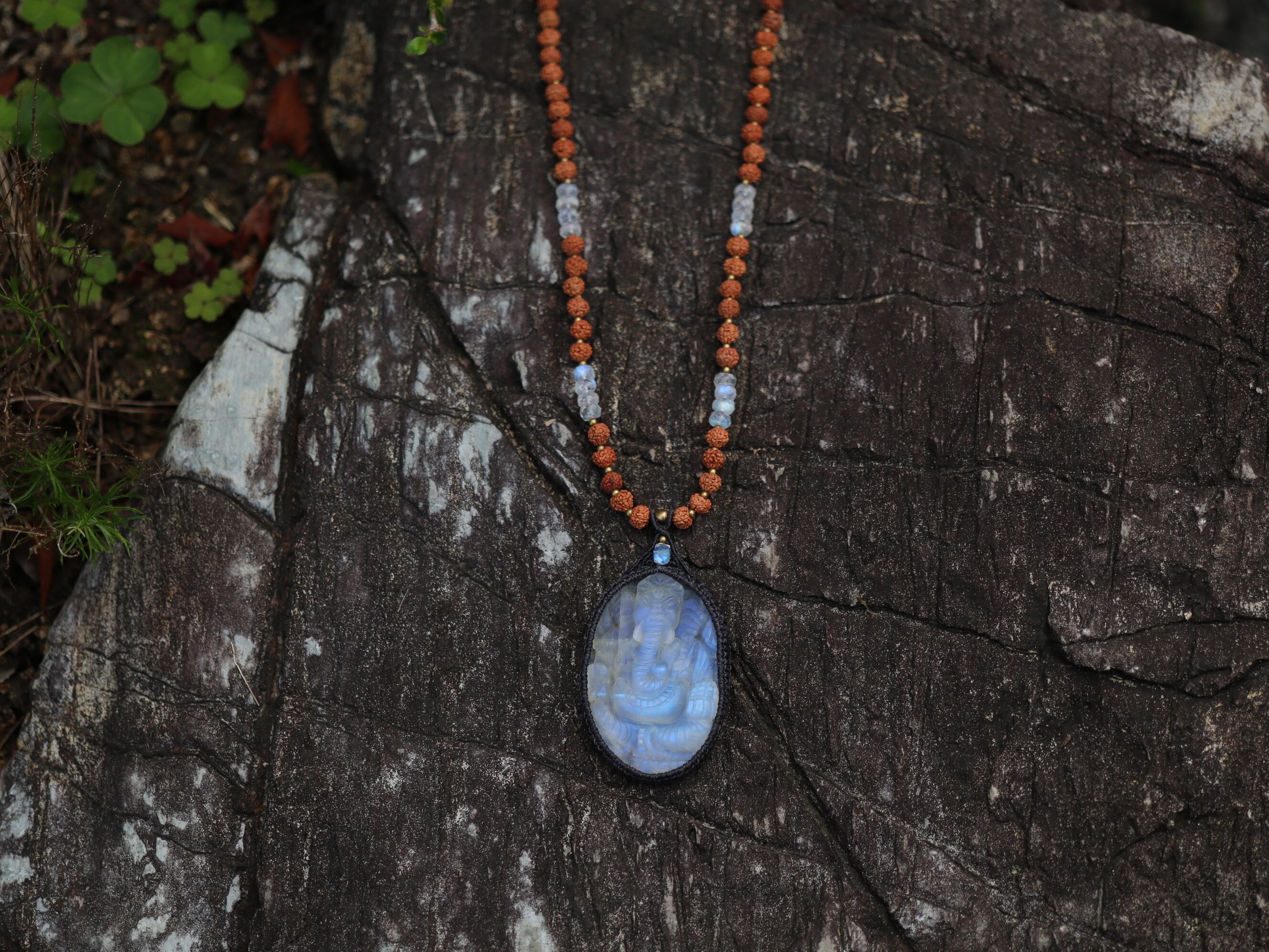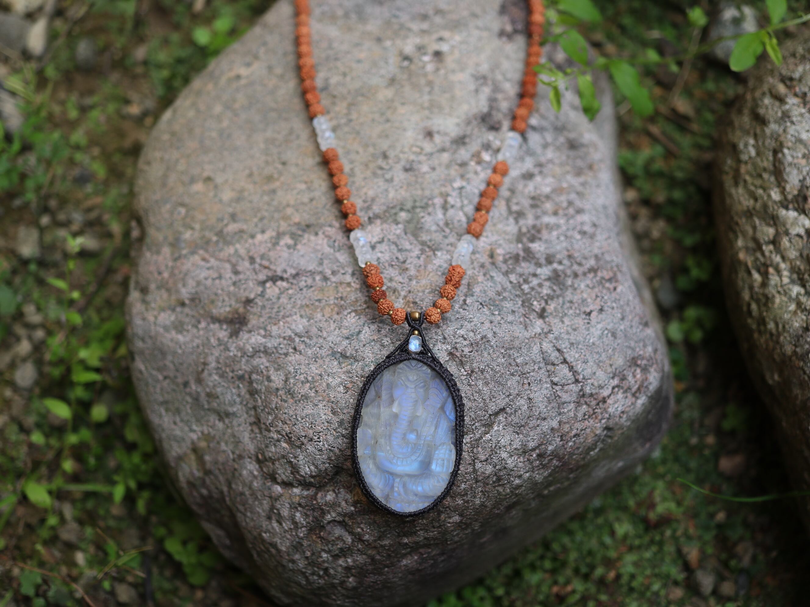 ムーンストーン ガネーシャ 菩提樹ネックレス