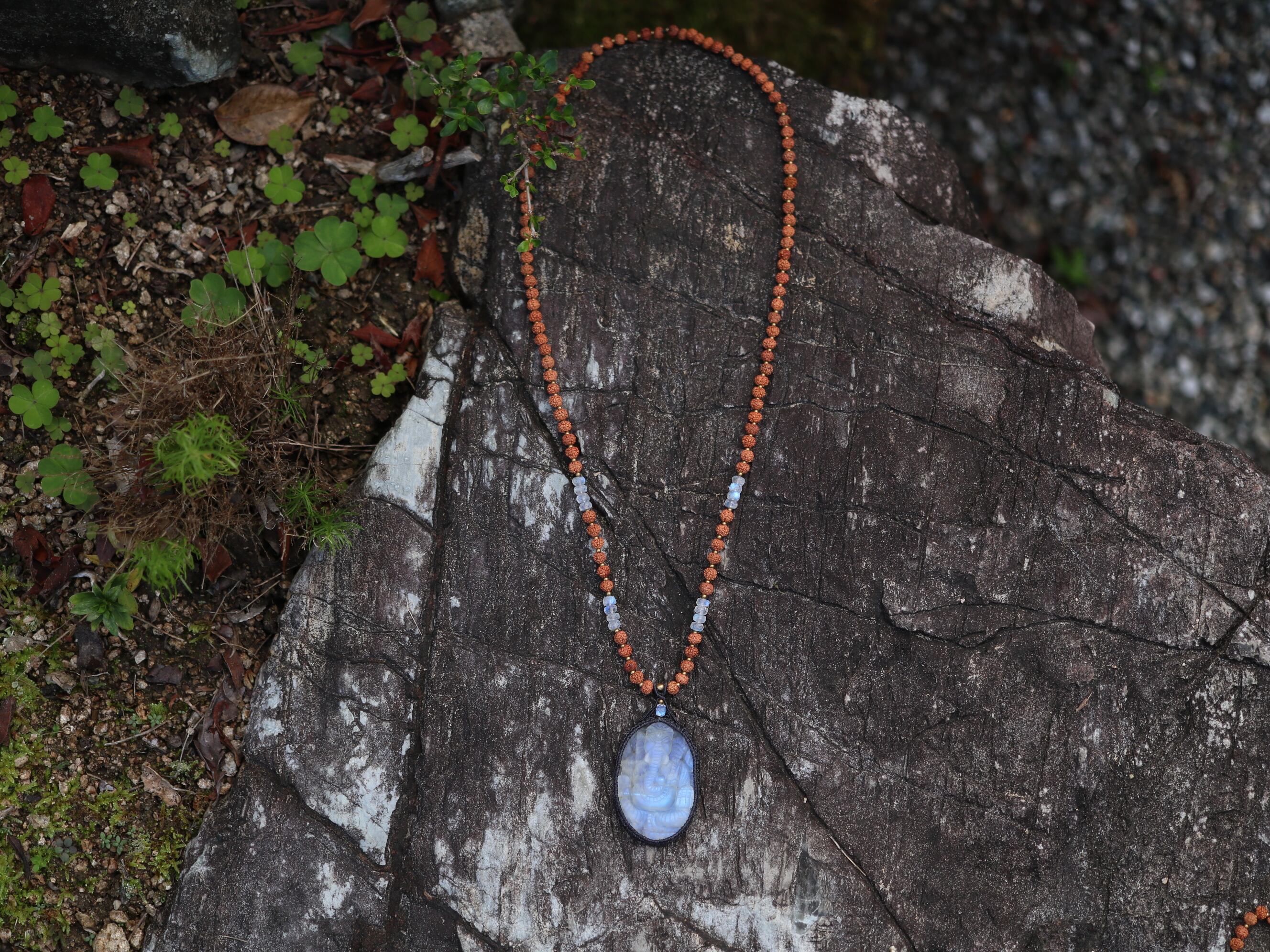 菩提樹のみの場合、頭を通らない可能性があるためムーンストーンビーズをあしらいました 。
