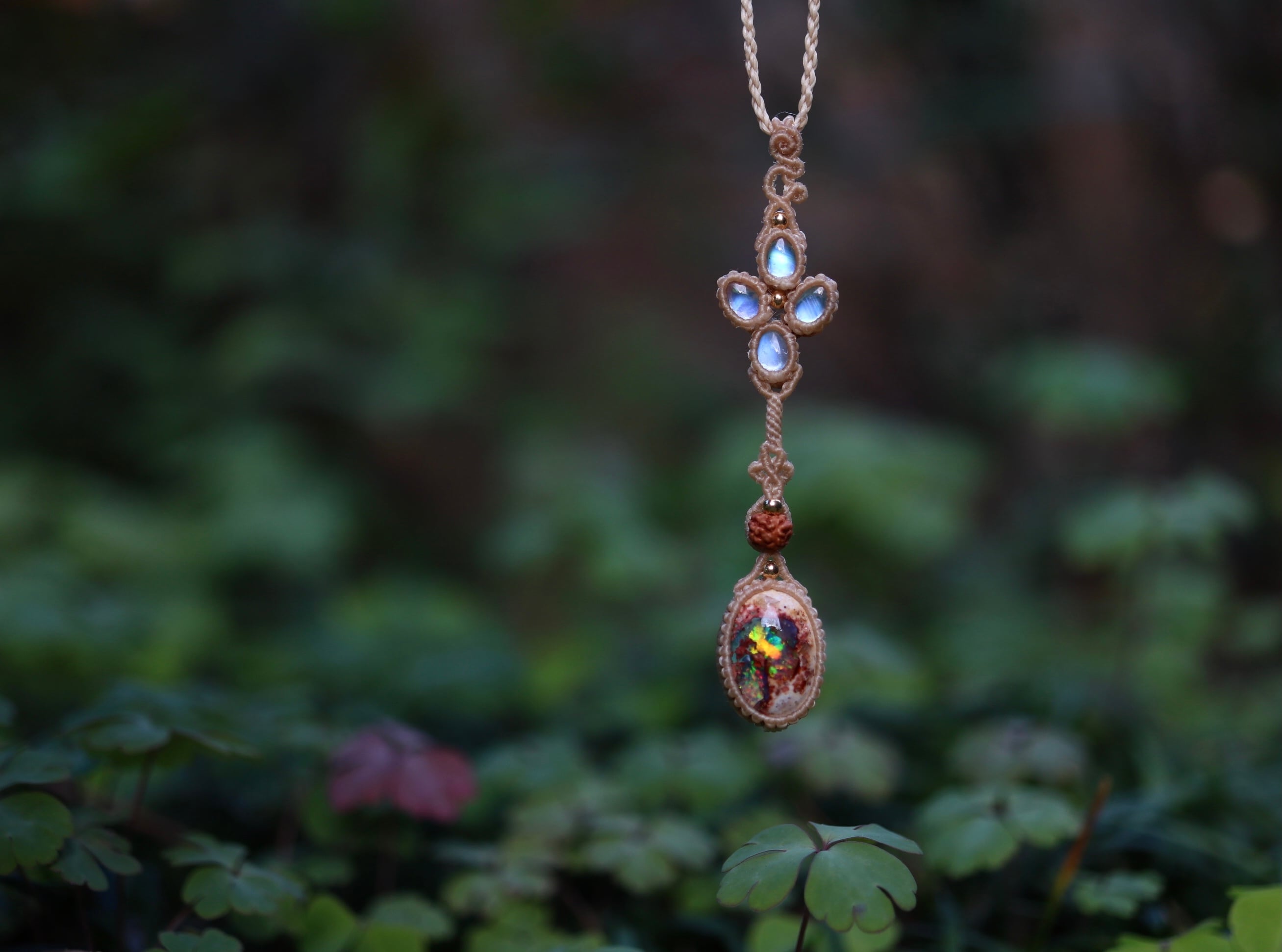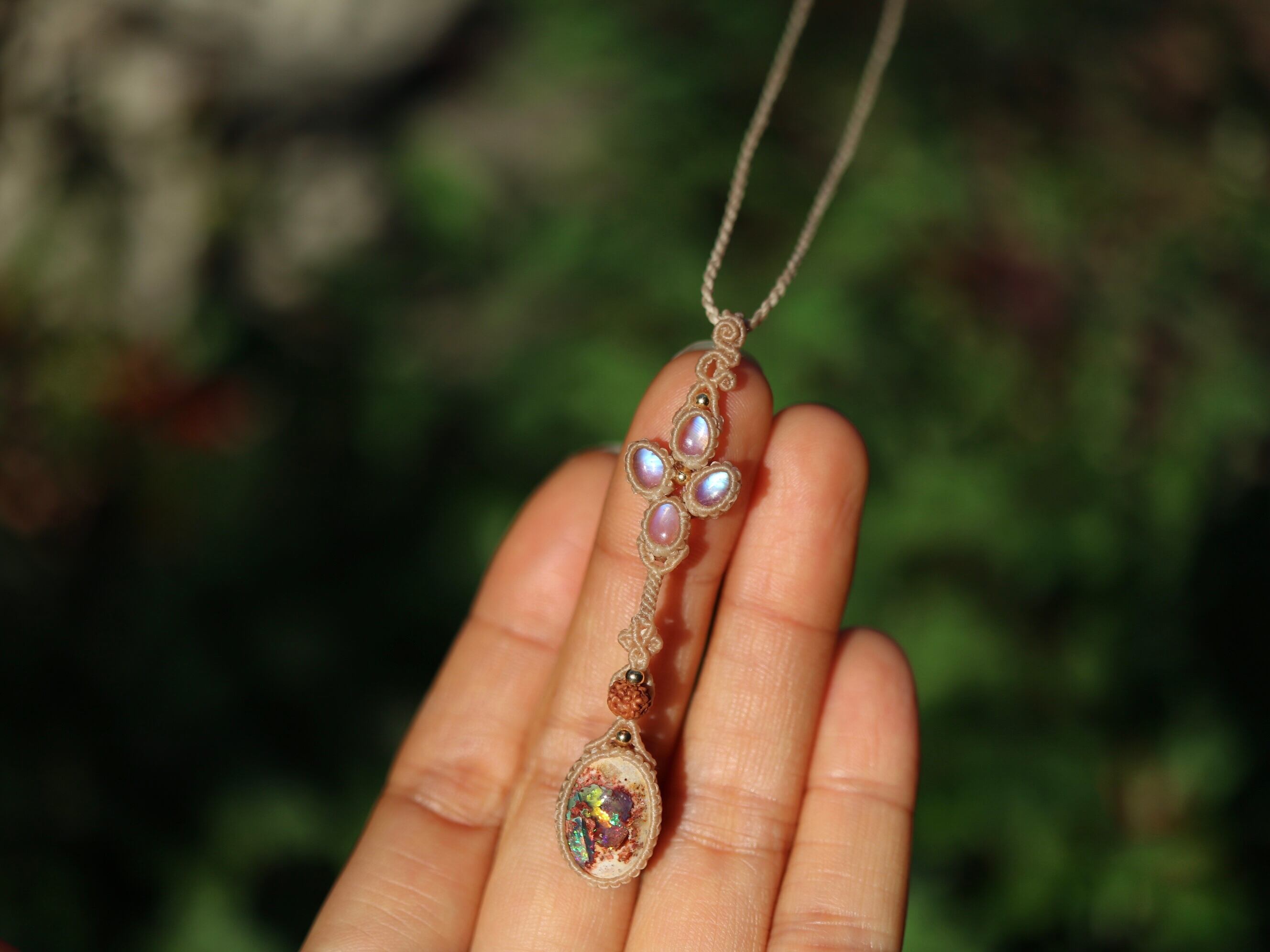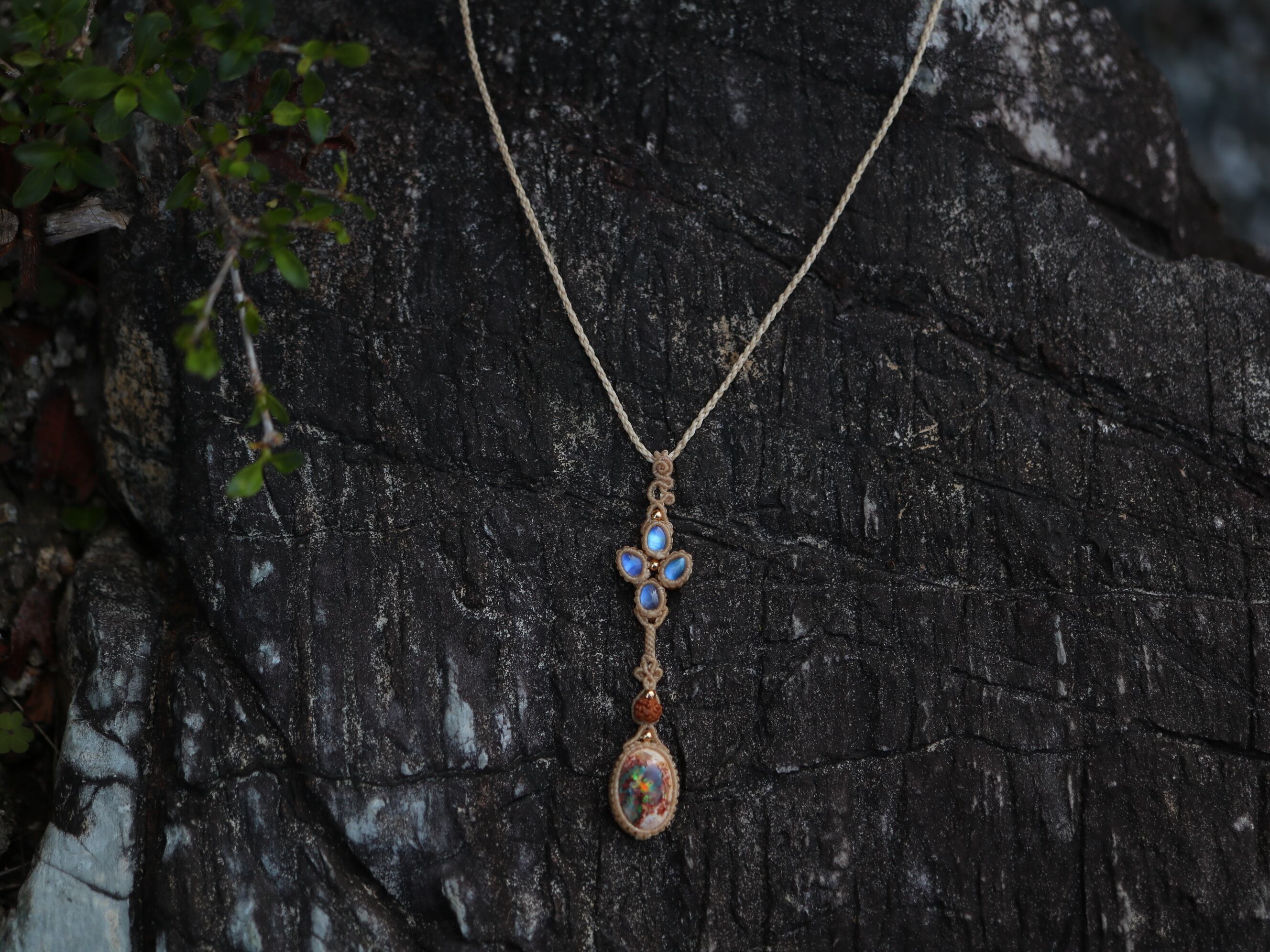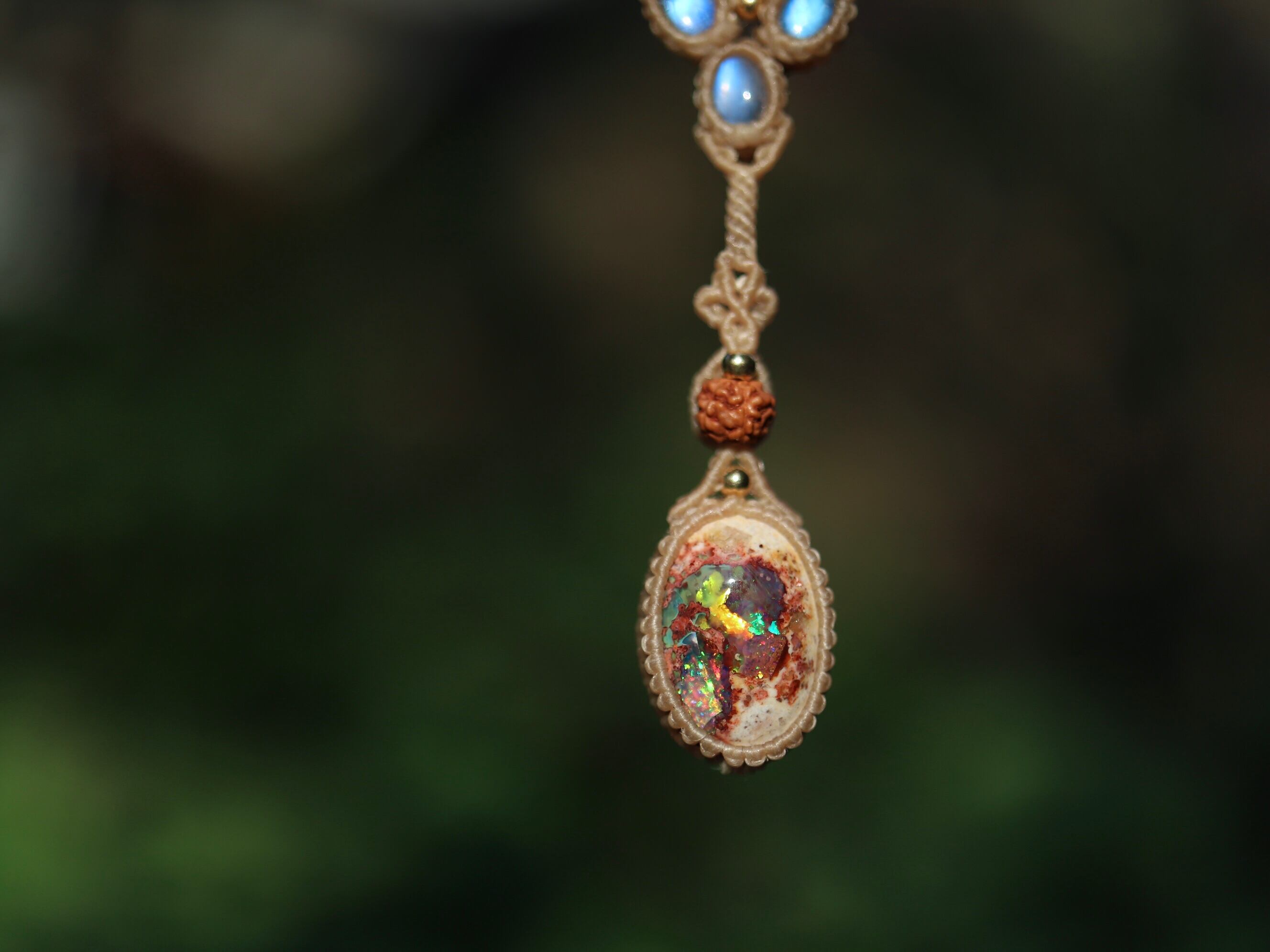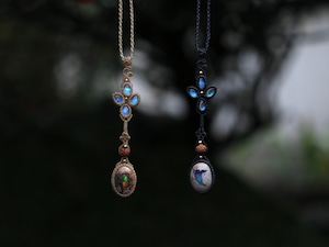 カンテラオパール × ムーンストーン × 菩提樹の実 ペンダント
