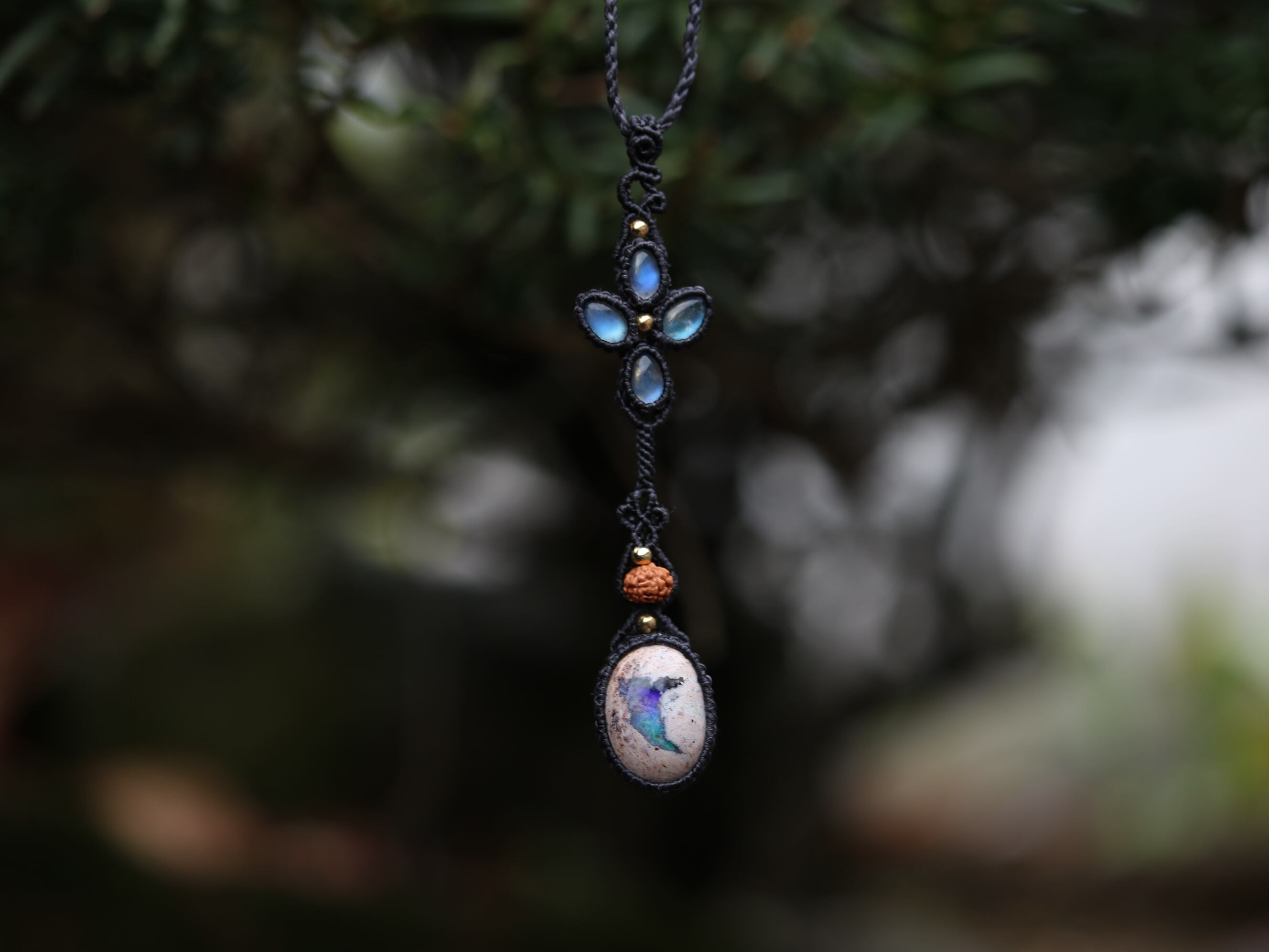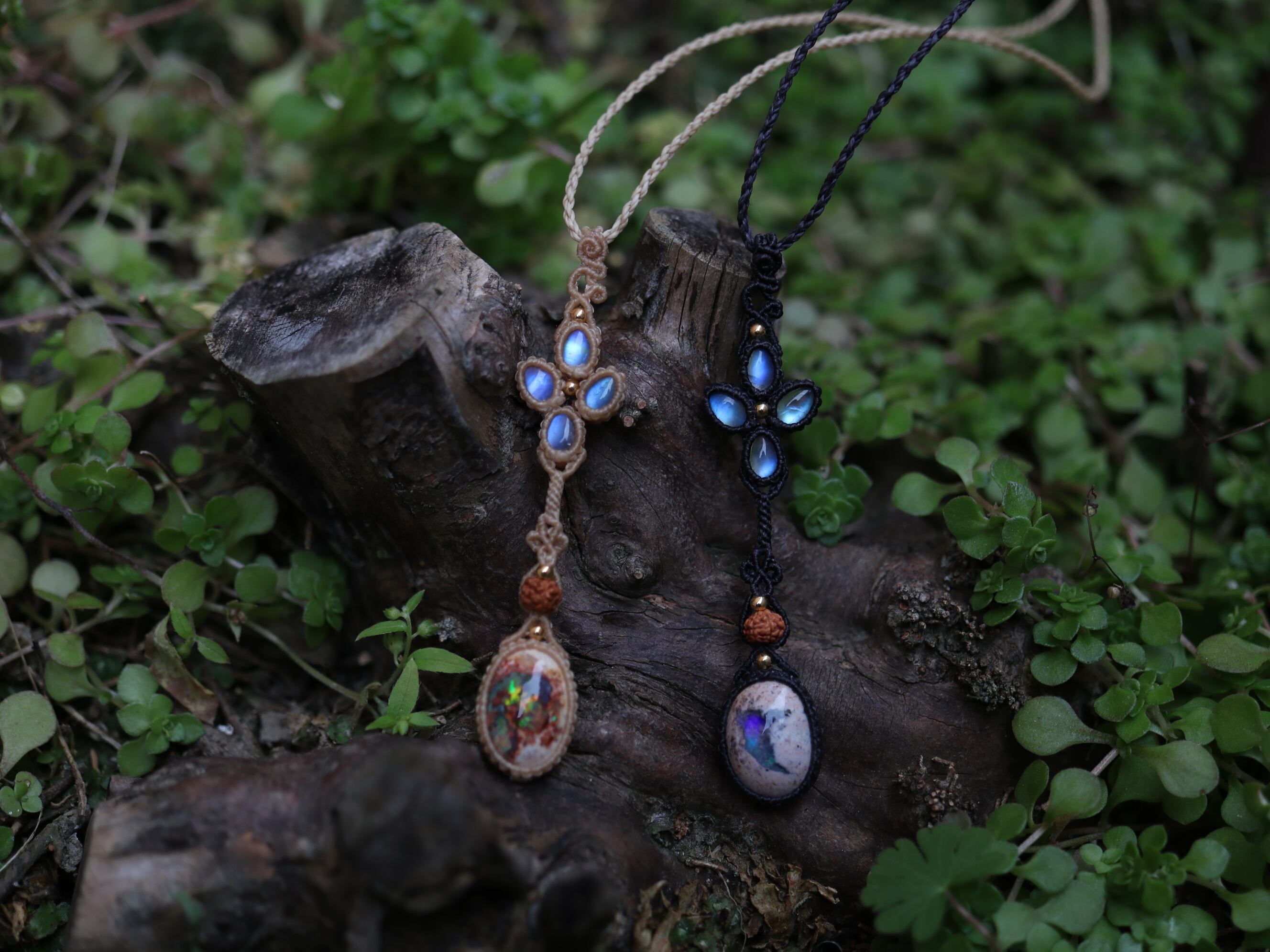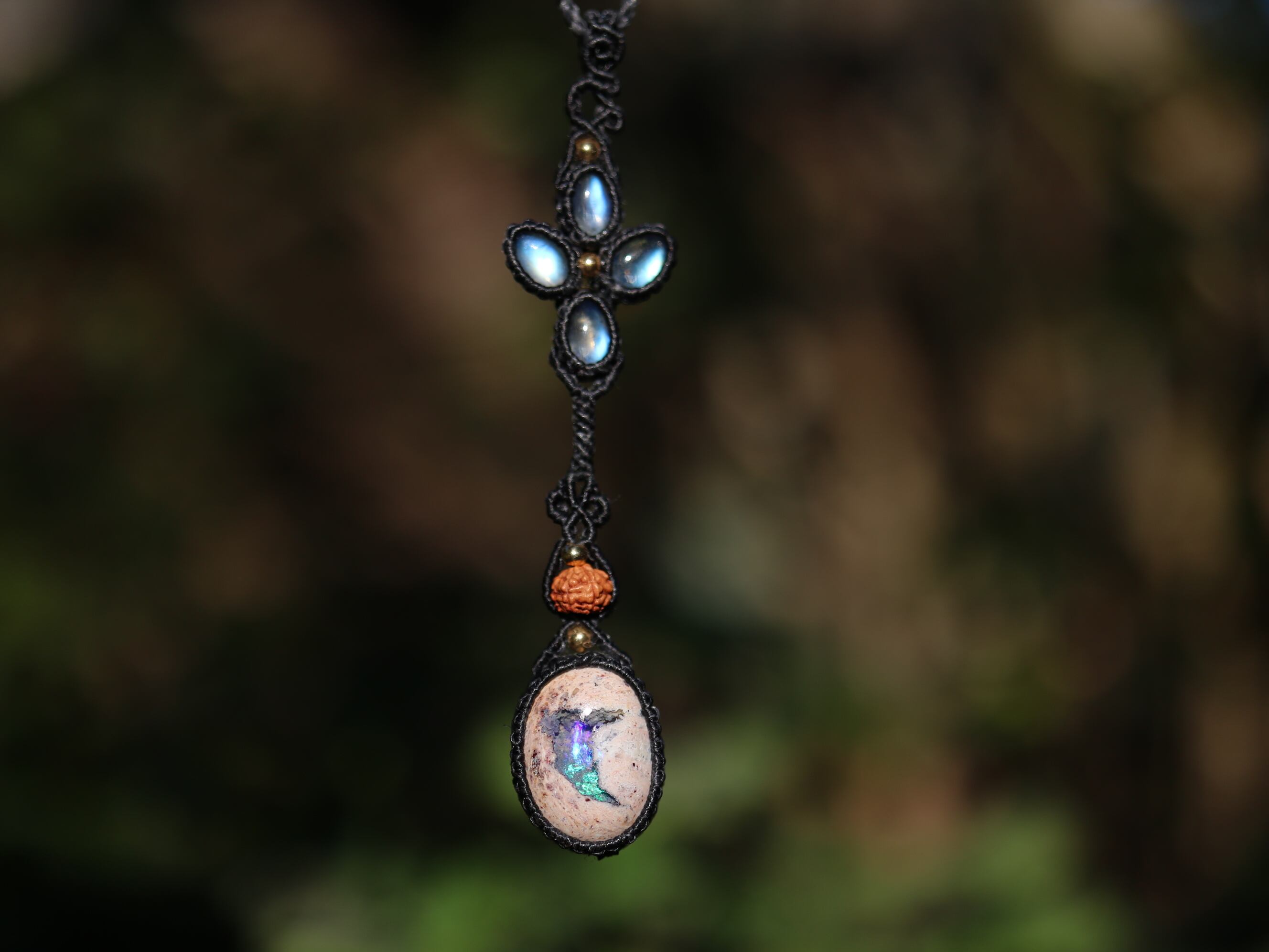 三日月カンテラオパール × ムーンストーン × 菩提樹の実 ペンダント