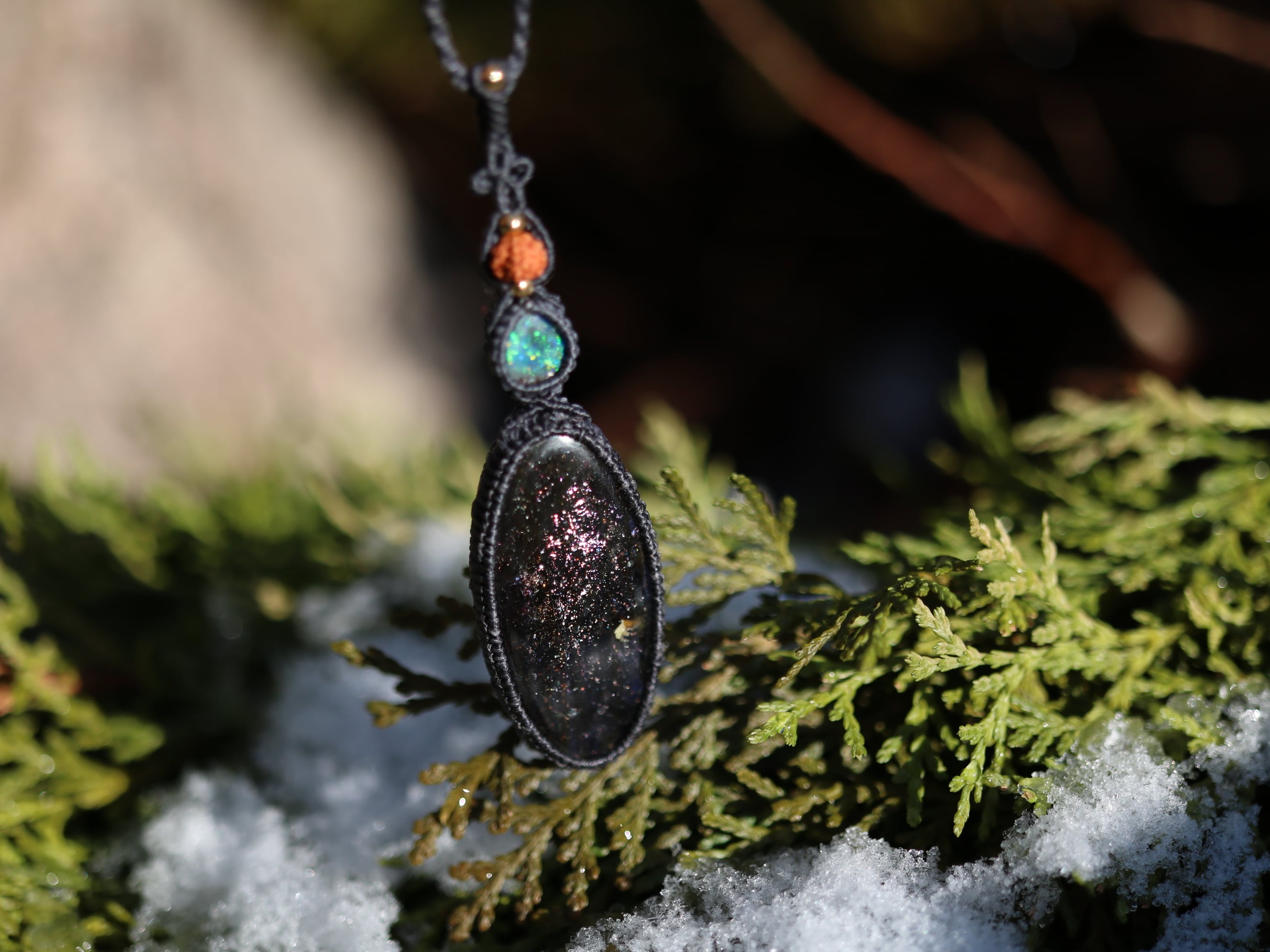 アイオライトサンストーン × オーストラリア産オパール ペンダント