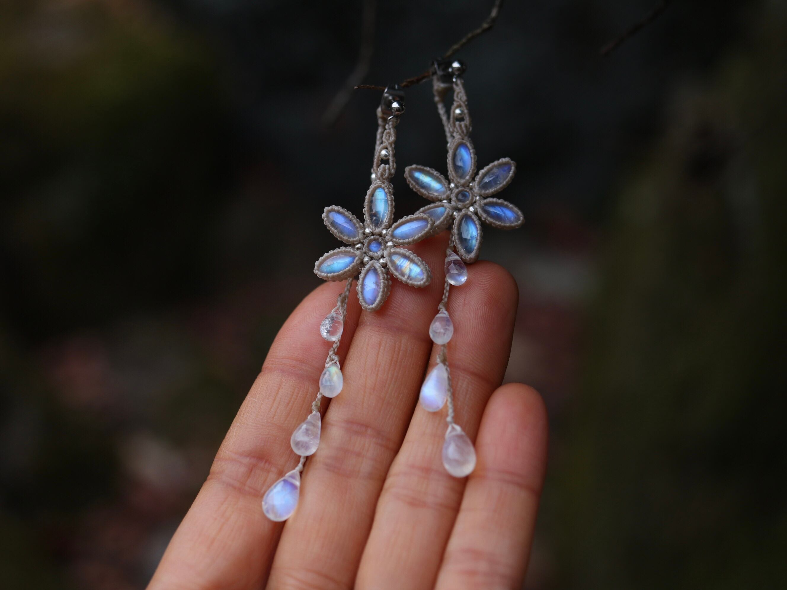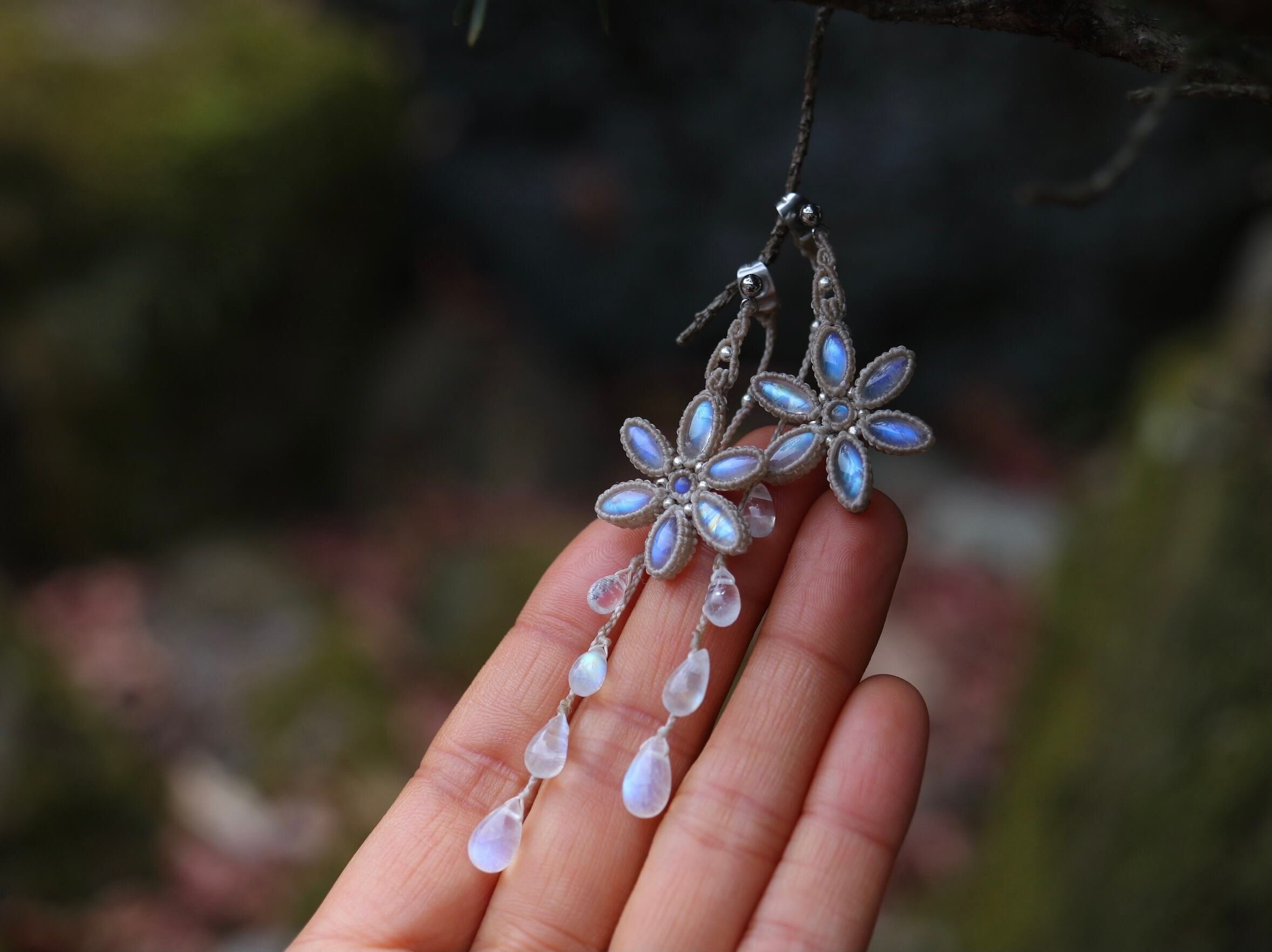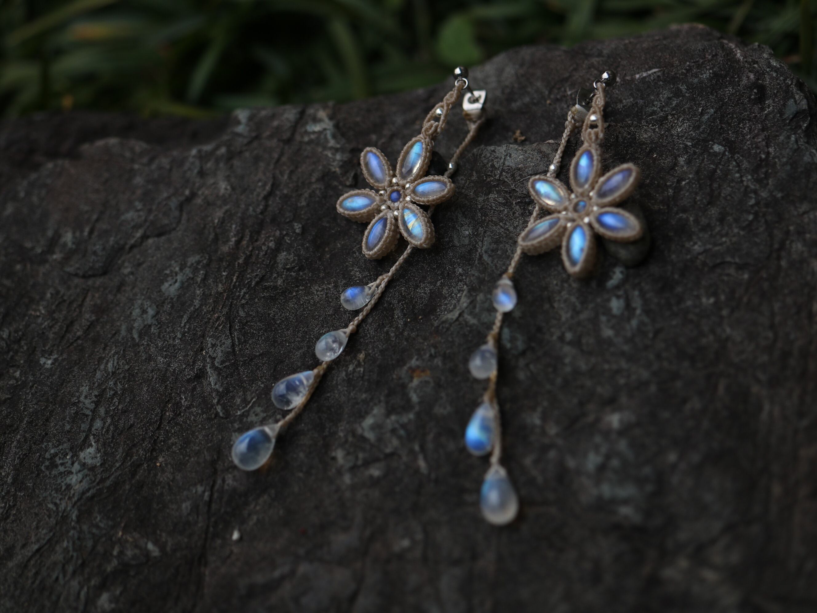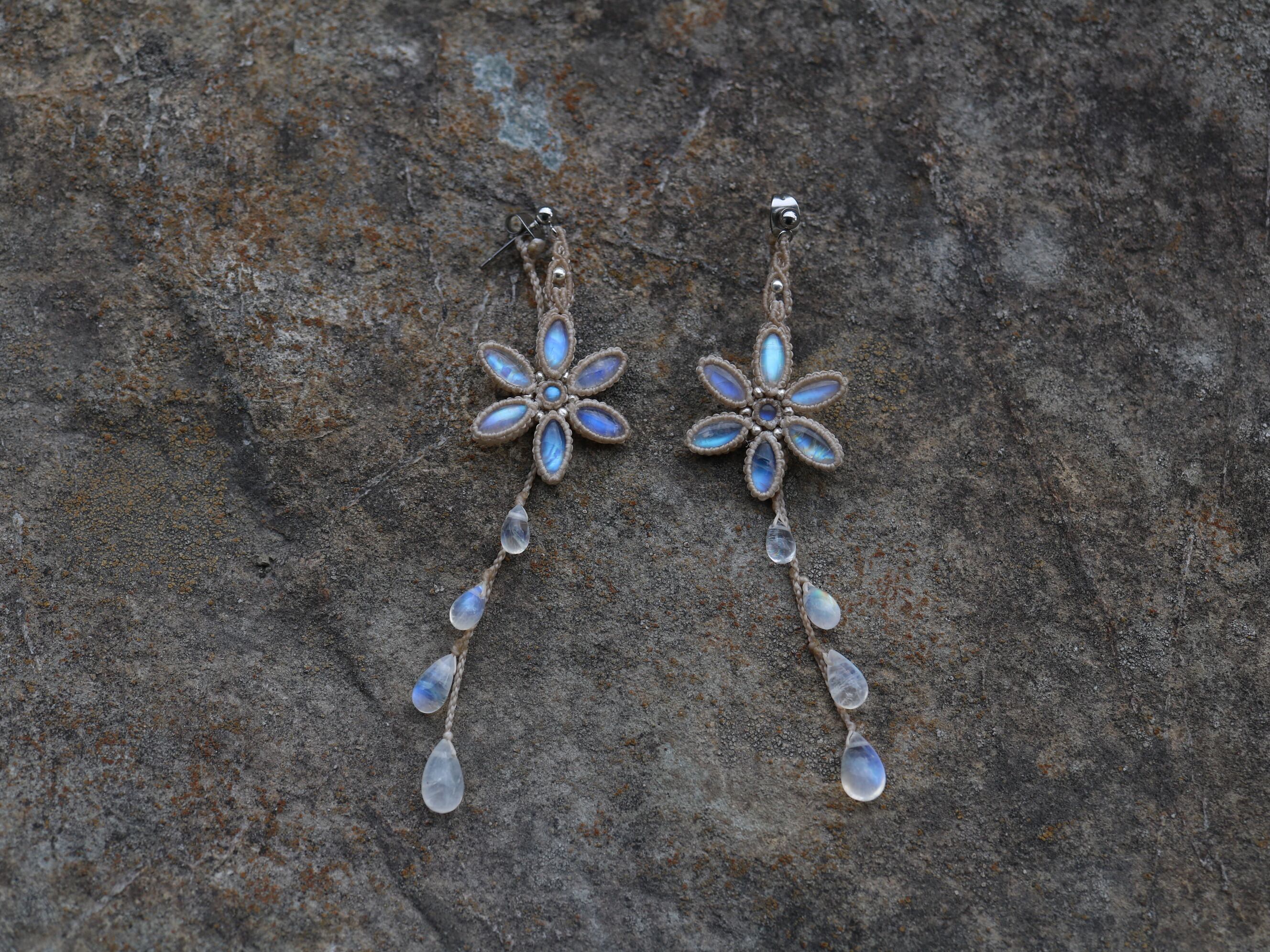 ムーンストーン お花 × 月の雫 ピアス