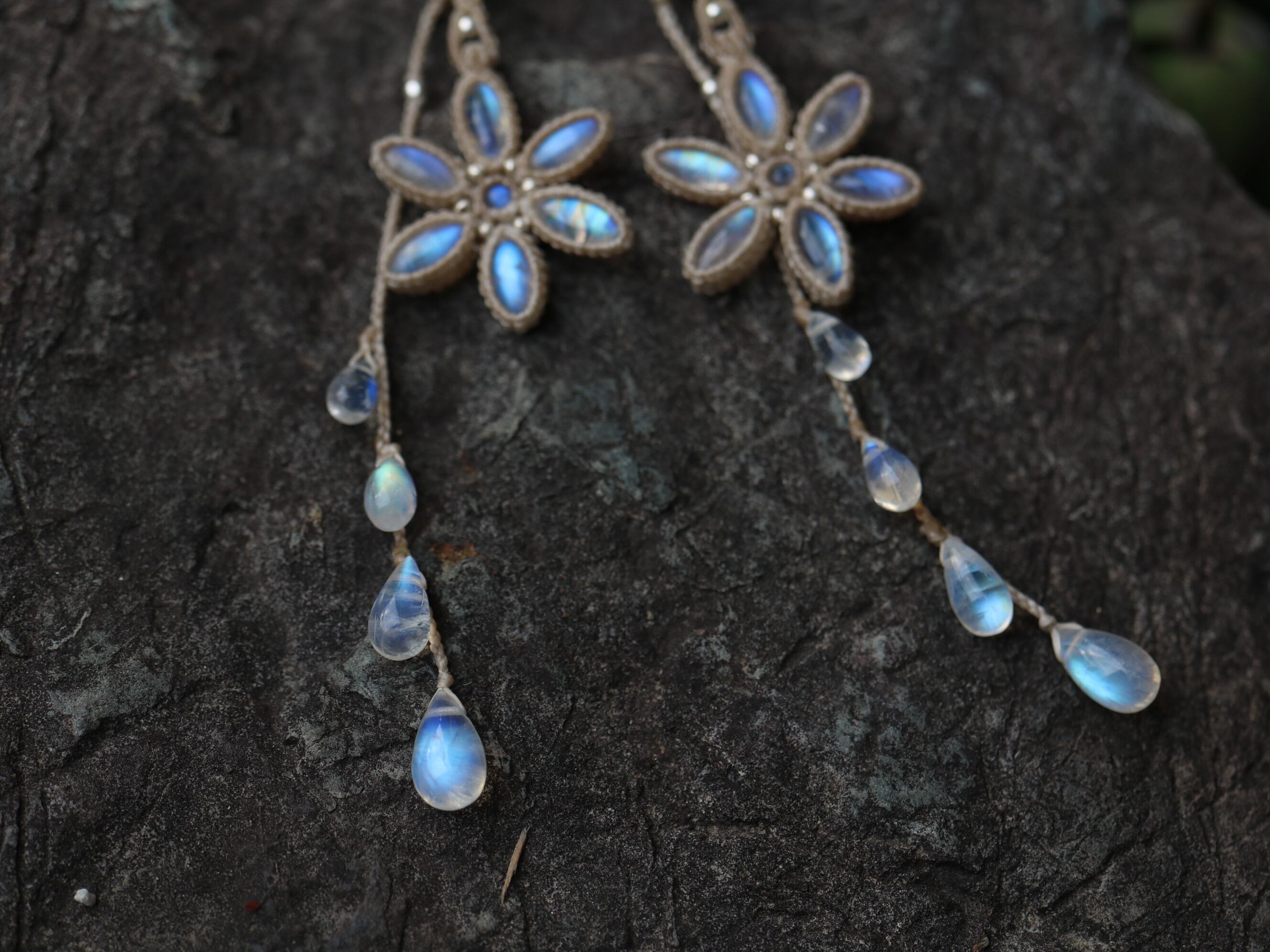 ※ 天然石を包むコードを始めトップ部分に使用したマクラメ編みコードは手縫い糸ほどの細いコードを使い、天然石の表情を引き立てるよう