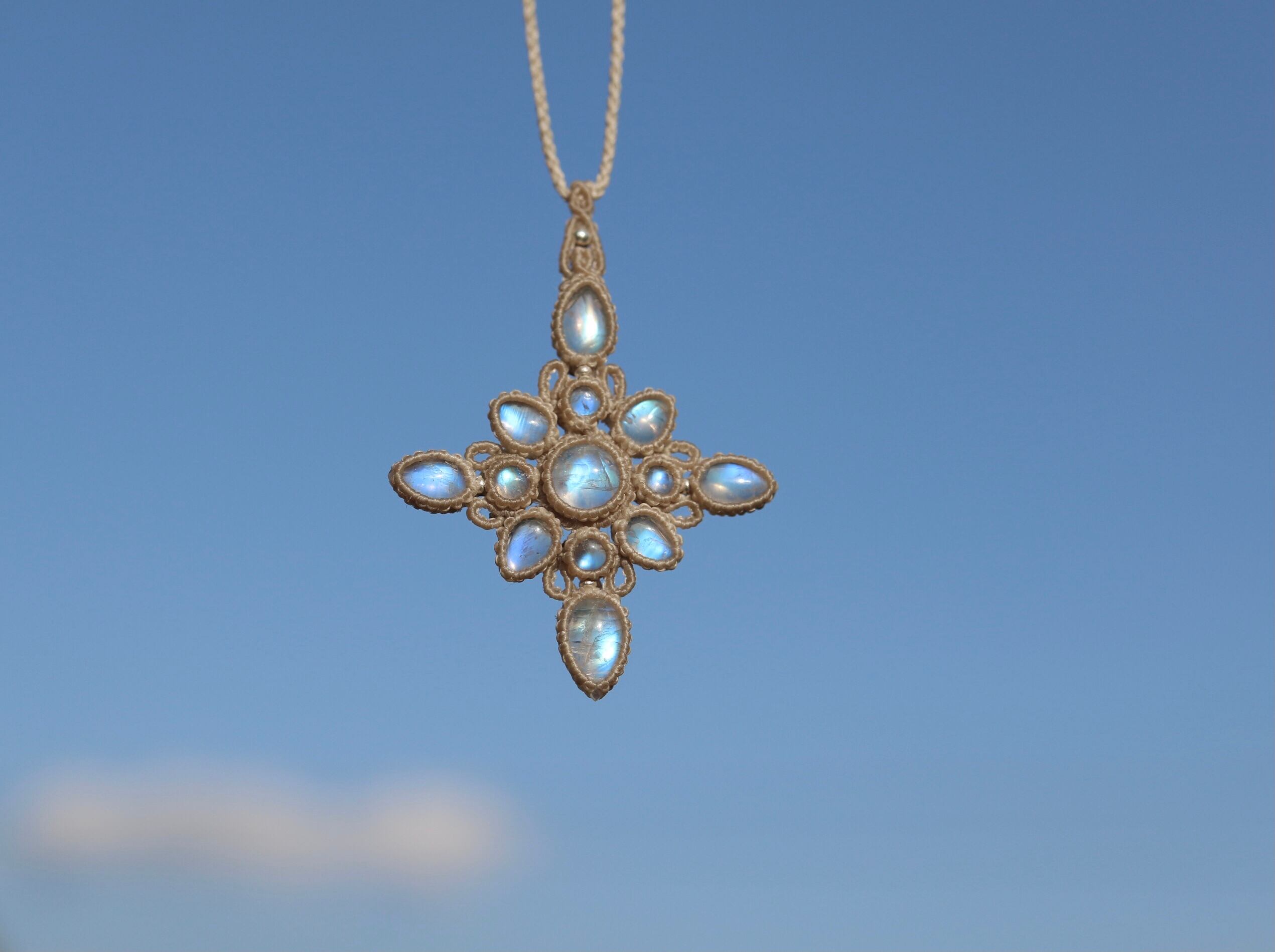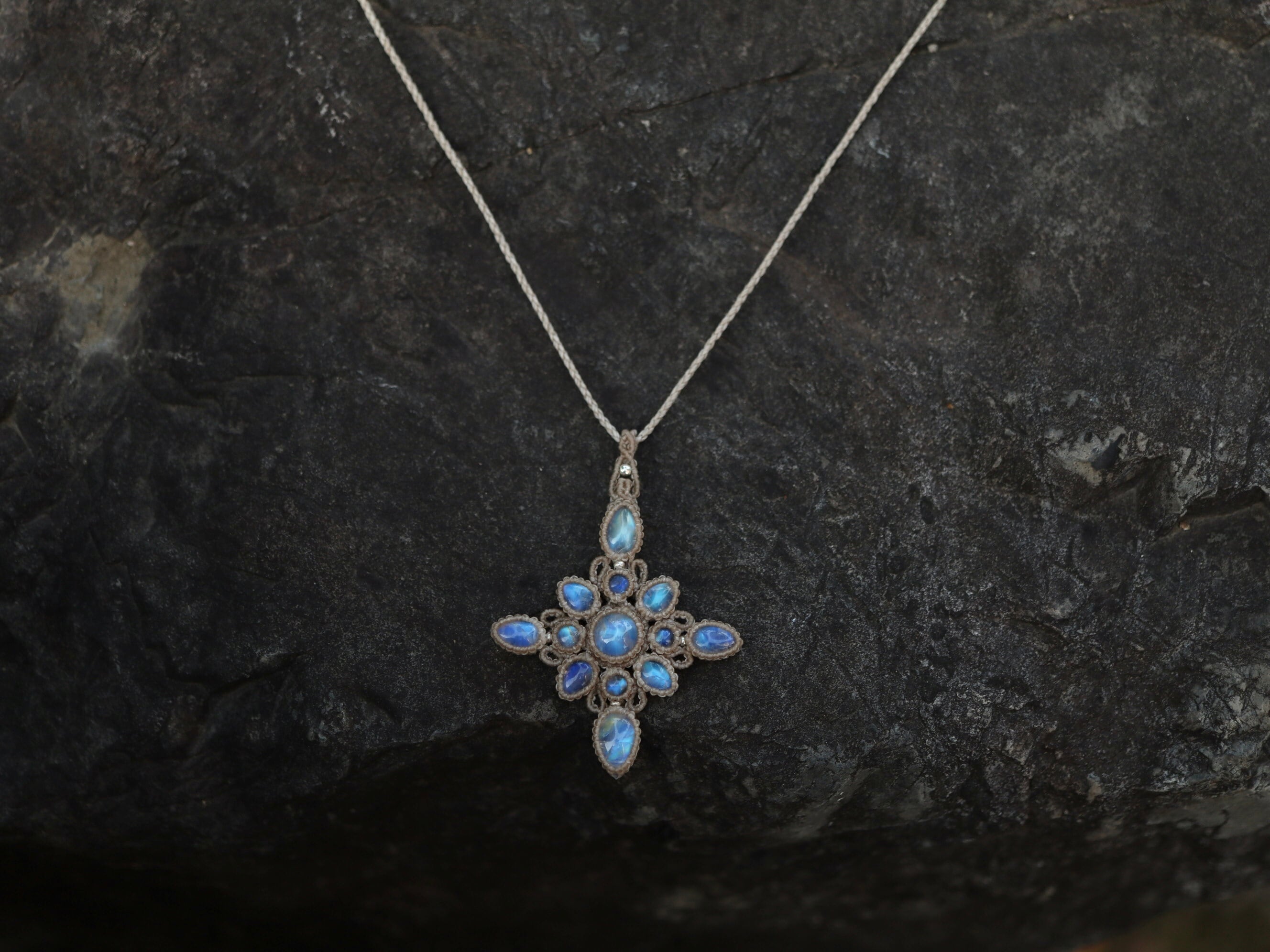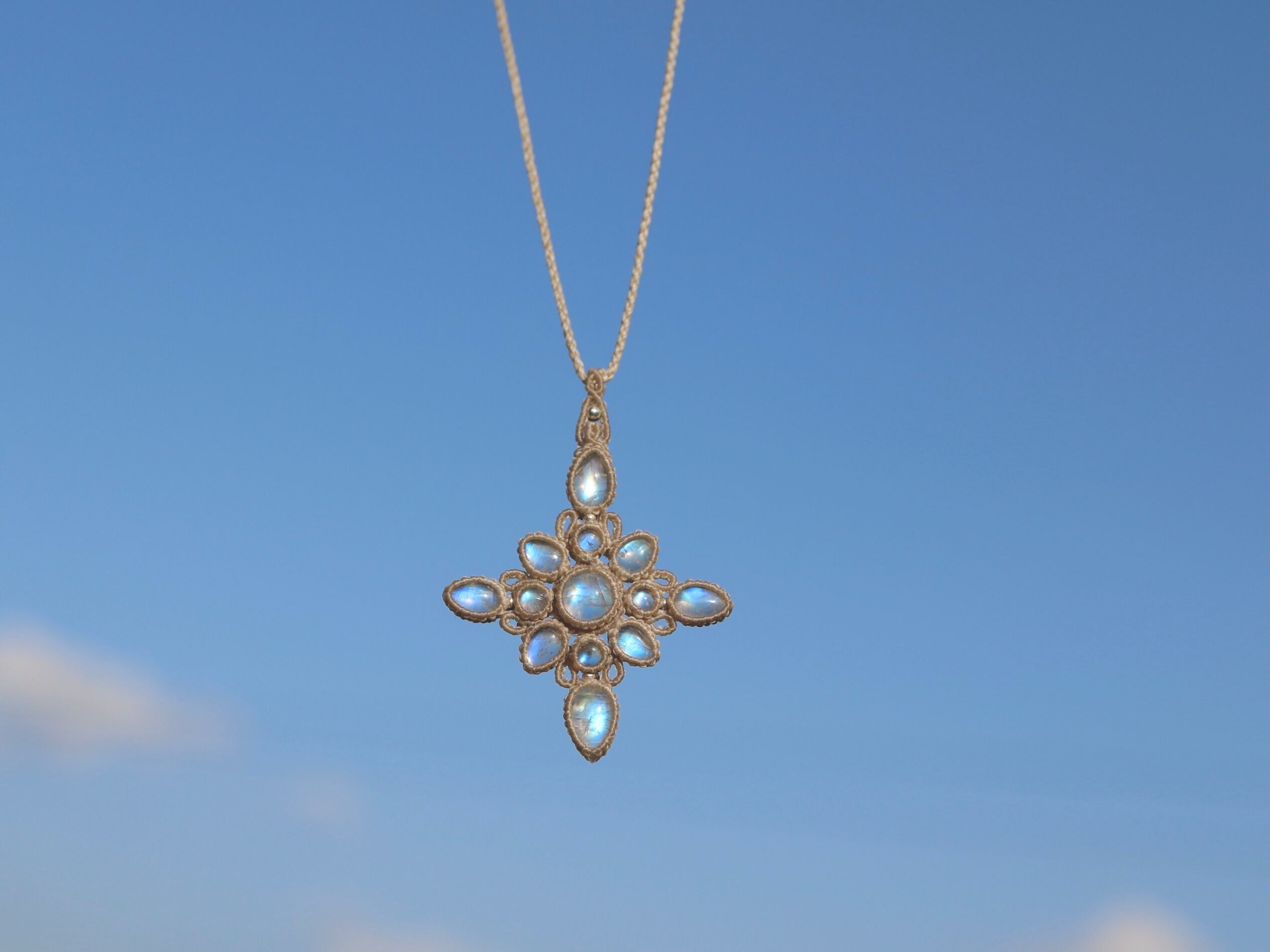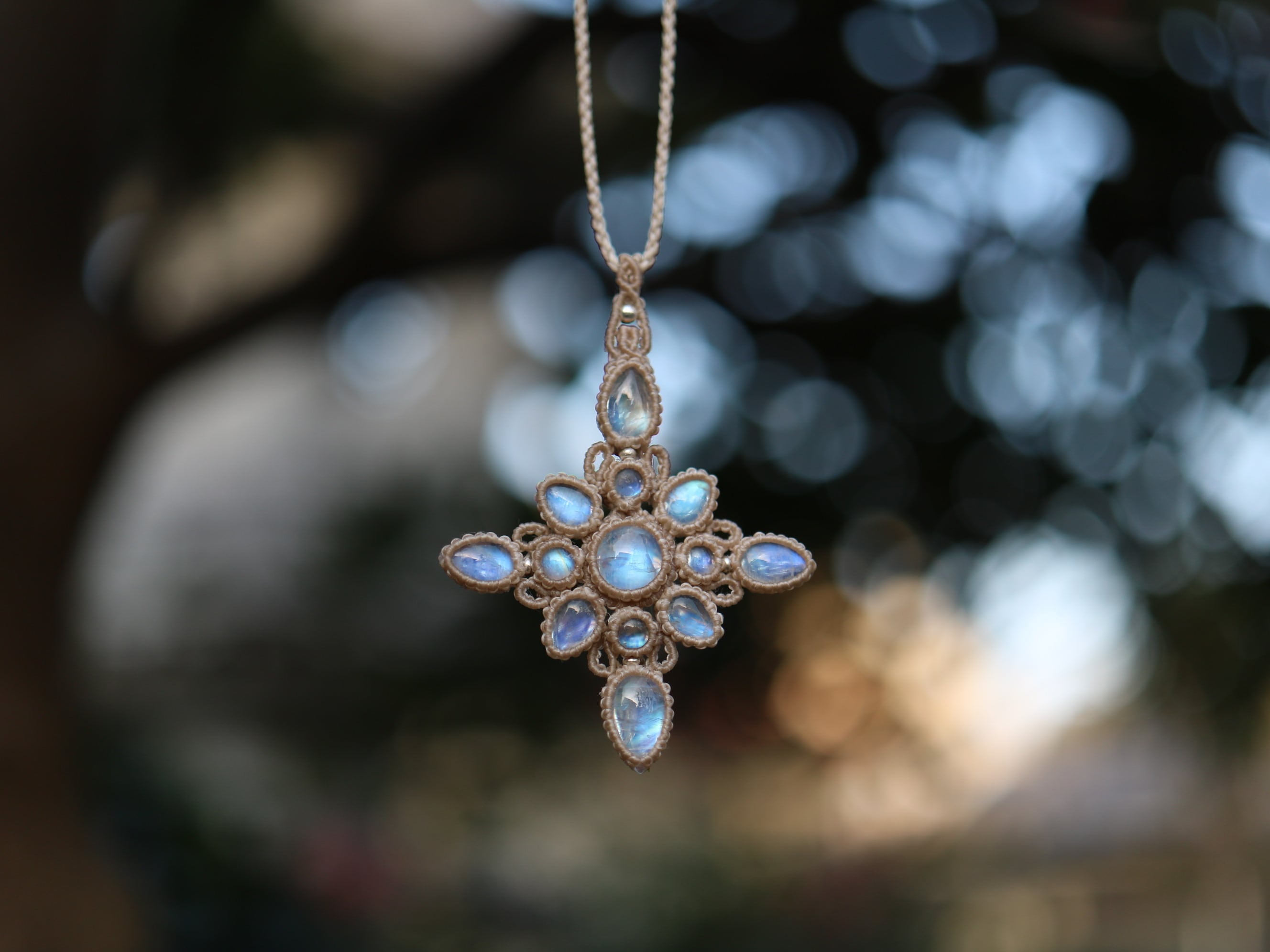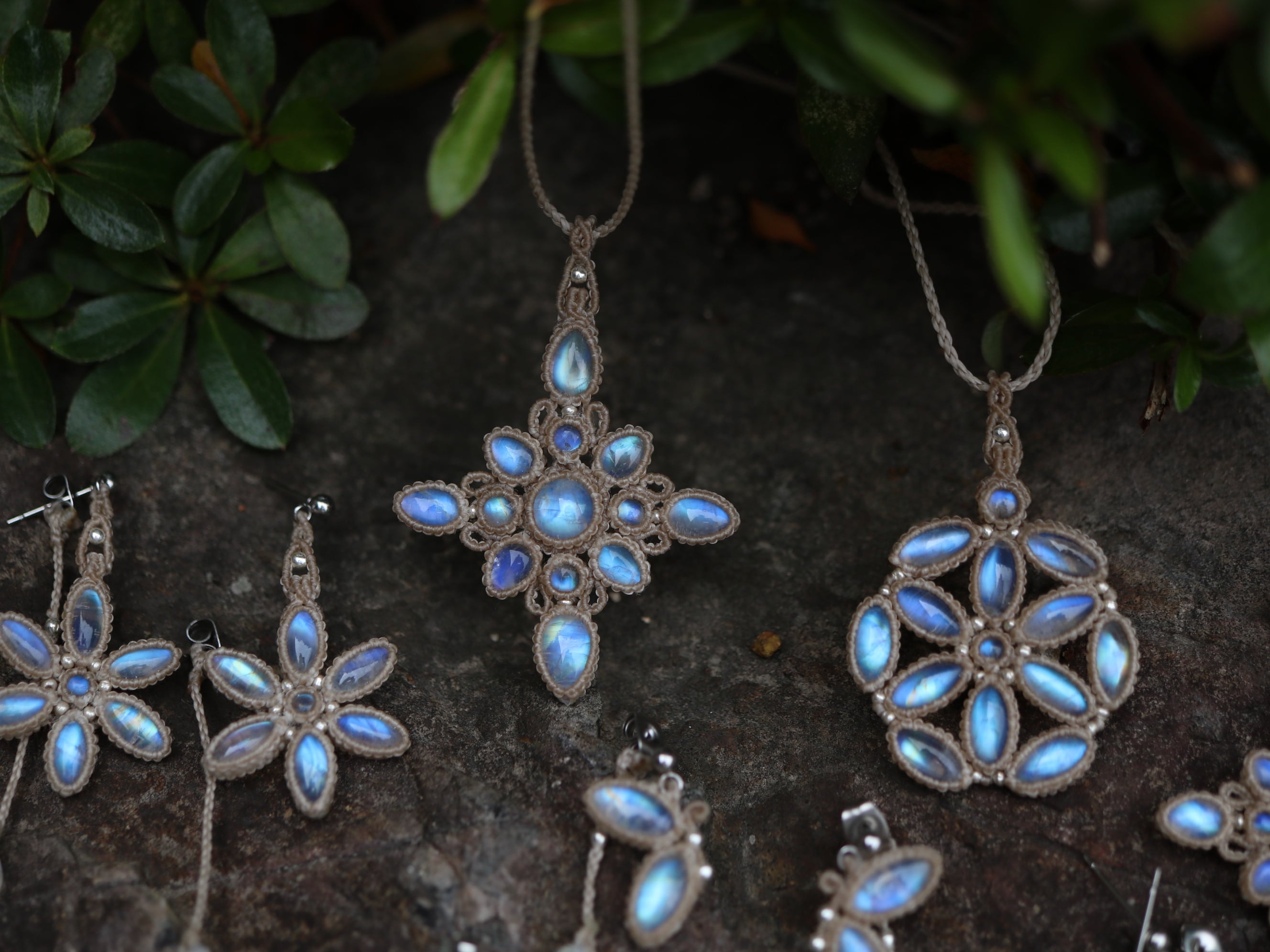 ※ 天然石を包むコードを始めトップ部分に使用したマクラメ編みコードは手縫い糸ほどの細いコードを使い、天然石の表情を引き立てるよう