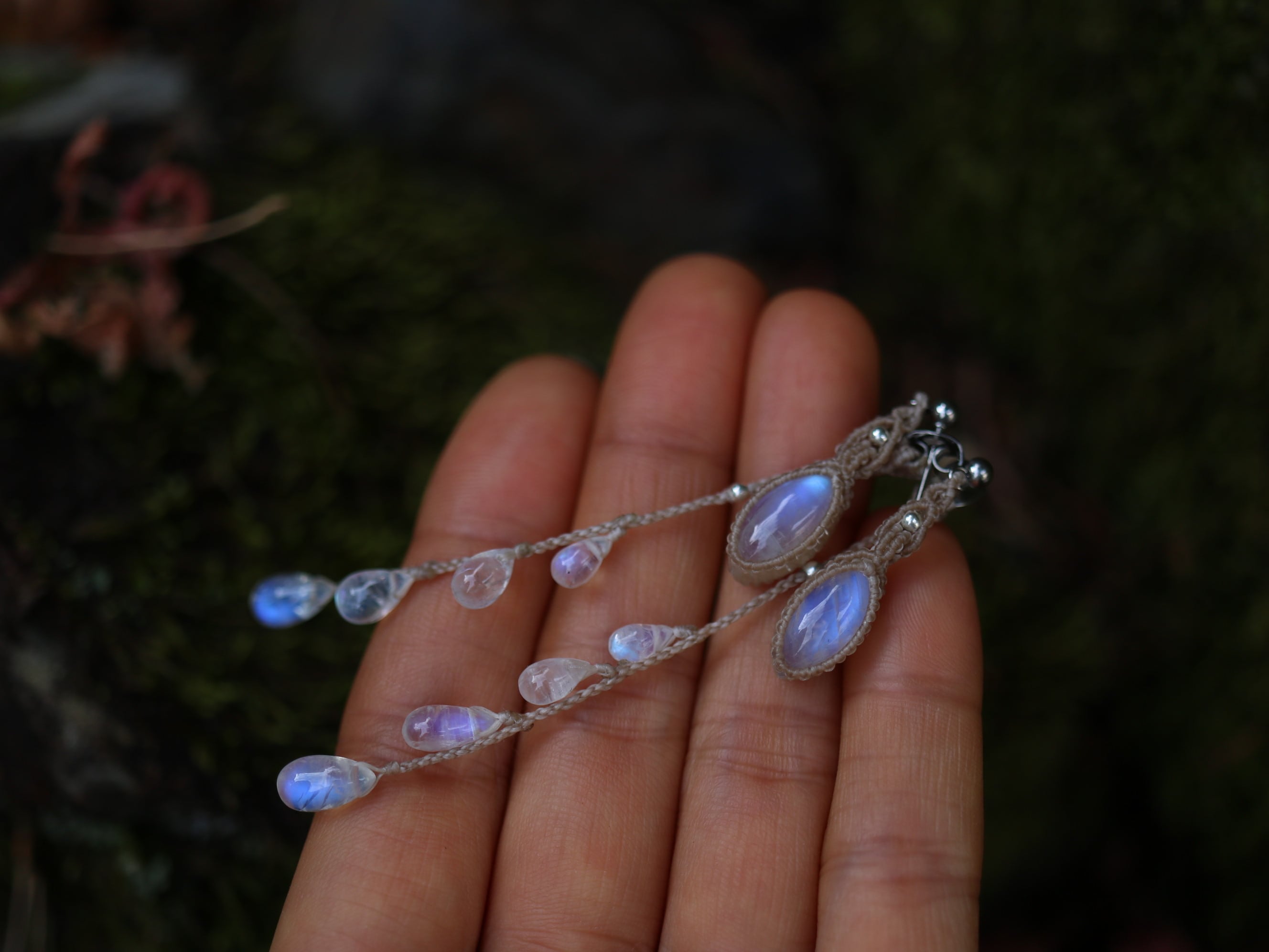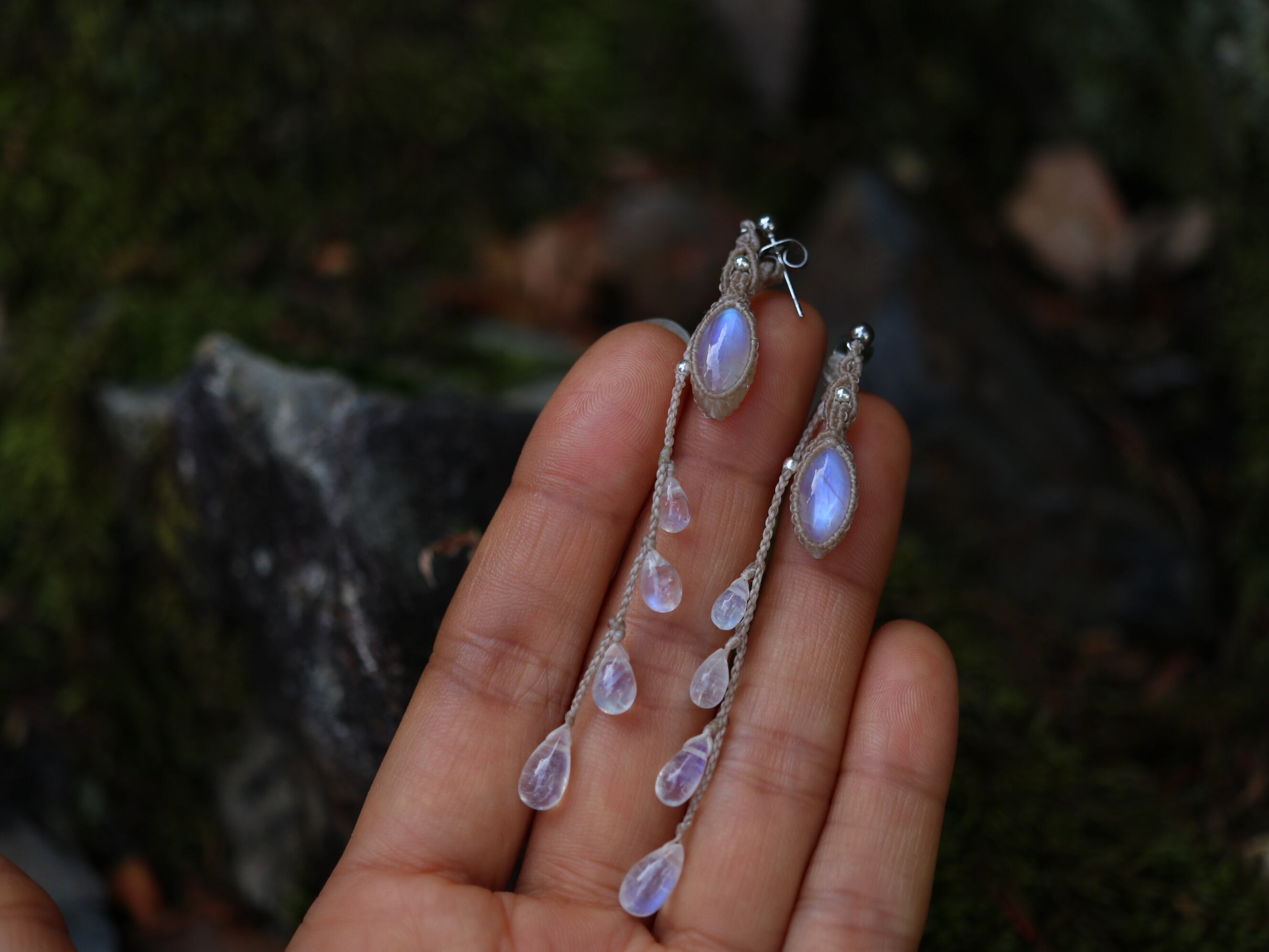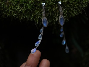 キャッチ部分にムーンストーンの雫を4粒づつあしらってみました