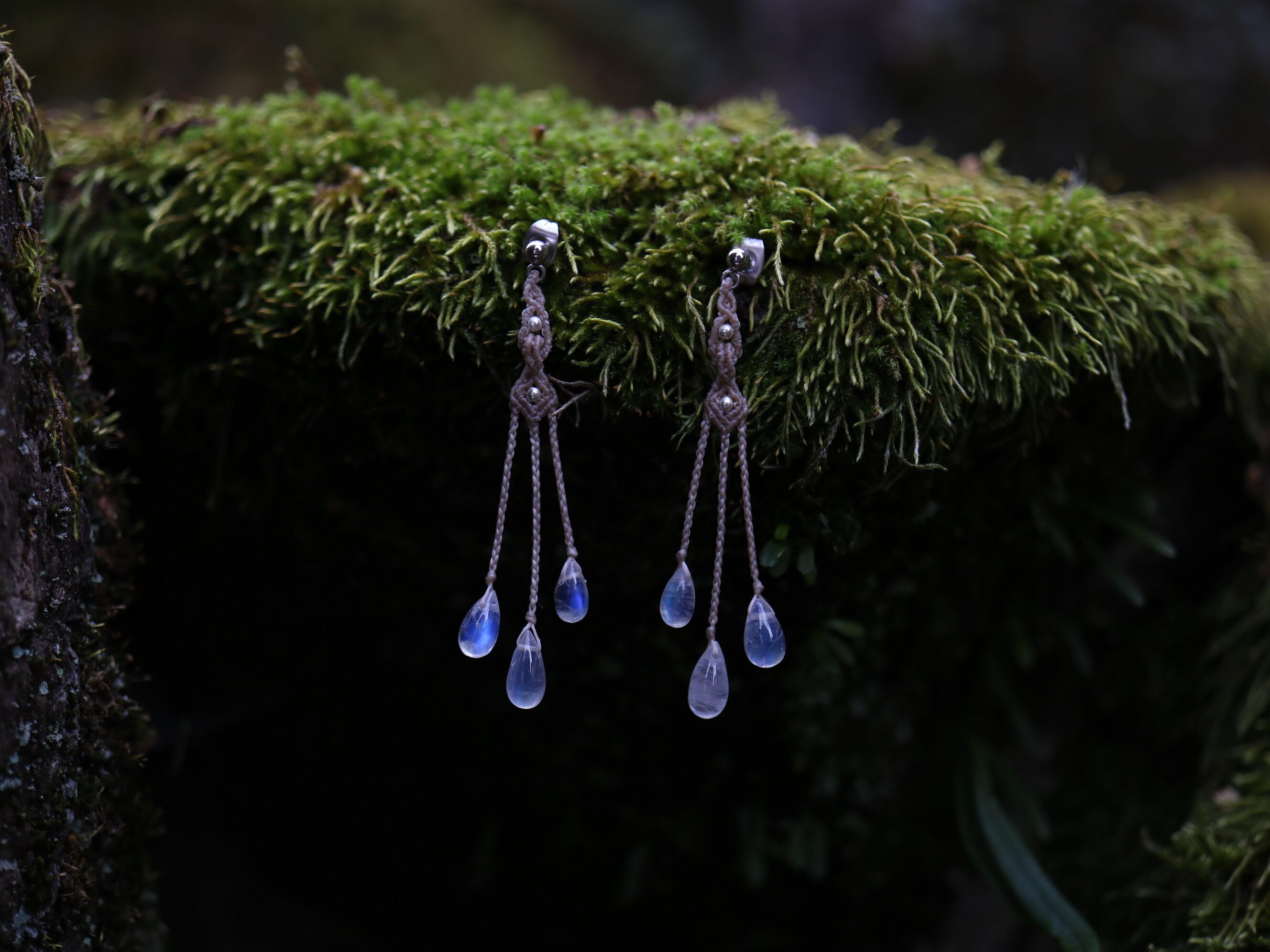 微妙に長さの違う3つの雫型ムーンストーンをあしらい
