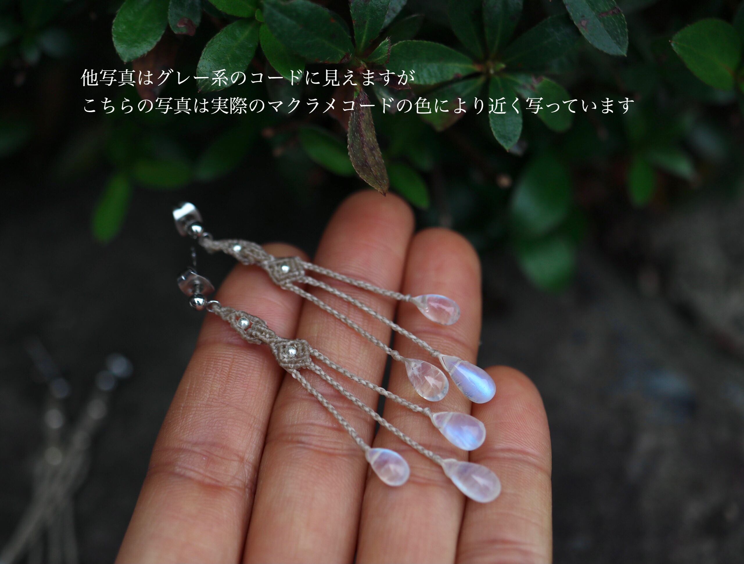 ※ 天然石を包むコードを始めトップ部分に使用したマクラメ編みコードは手縫い糸ほどの細いコードを使い、天然石の表情を引き立てるよう