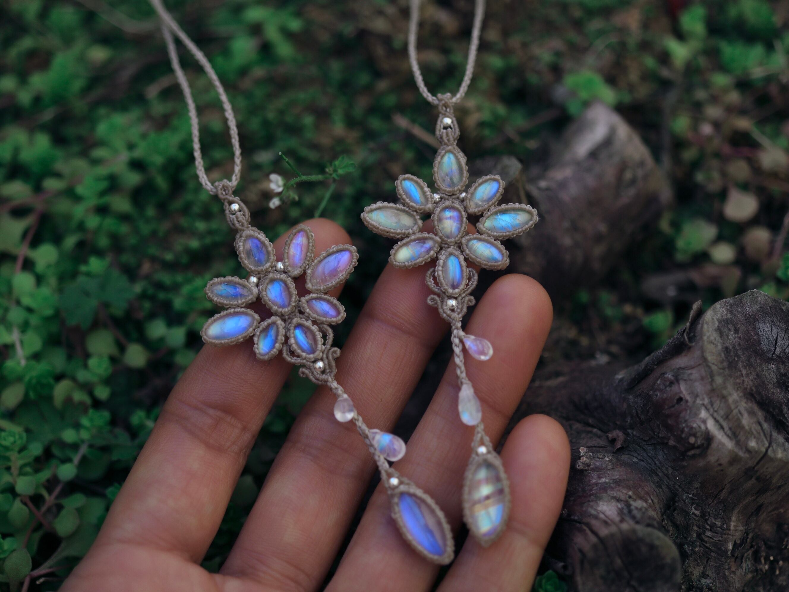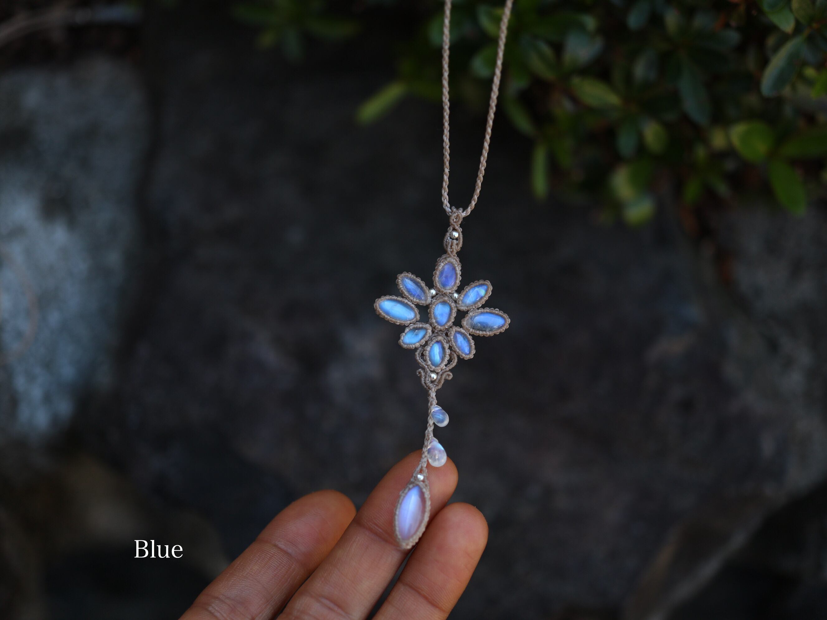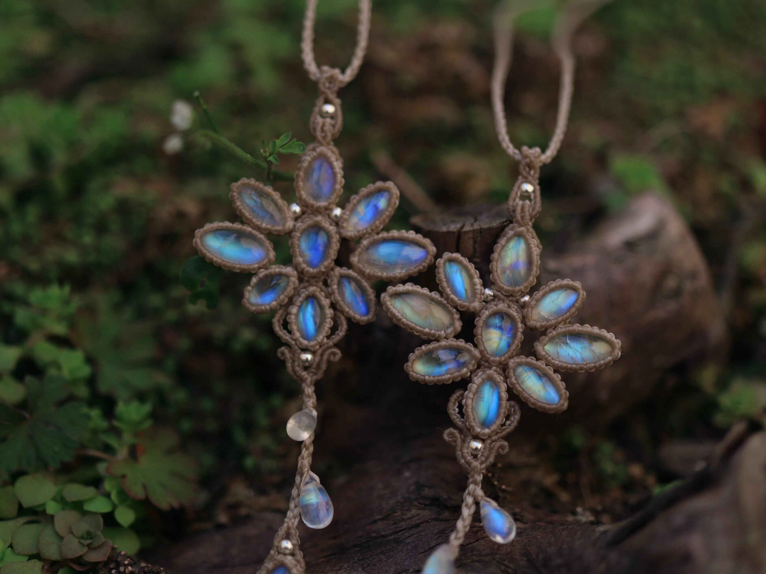 ※ 天然石を包むコードを始めトップ部分に使用したマクラメ編みコードは手縫い糸ほどの細いコードを使い、天然石の表情を引き立てるよう