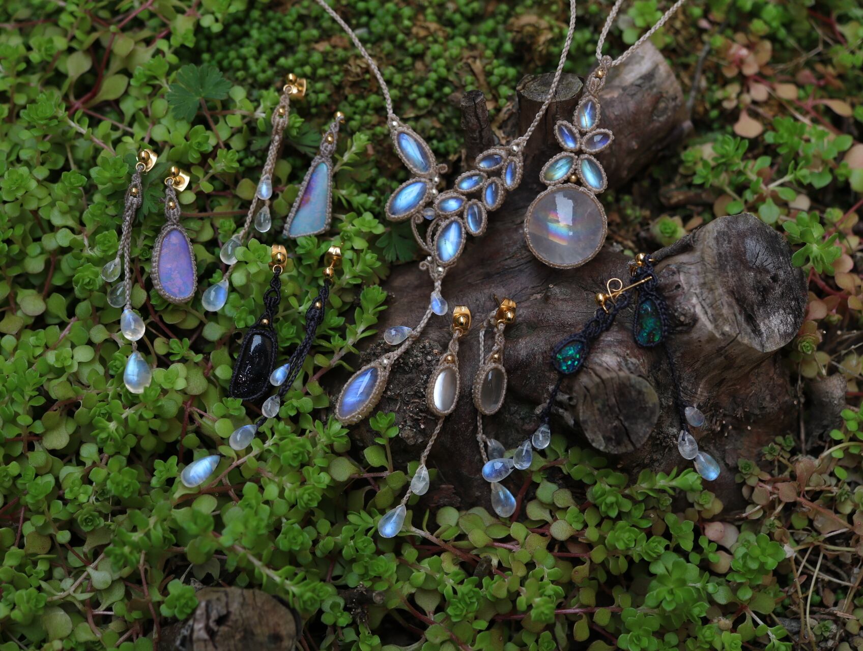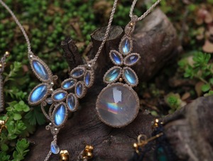 ※ 天然石を包むコードを始めトップ部分に使用したマクラメ編みコードは手縫い糸ほどの細いコードを使い、天然石の表情を引き立てるよう