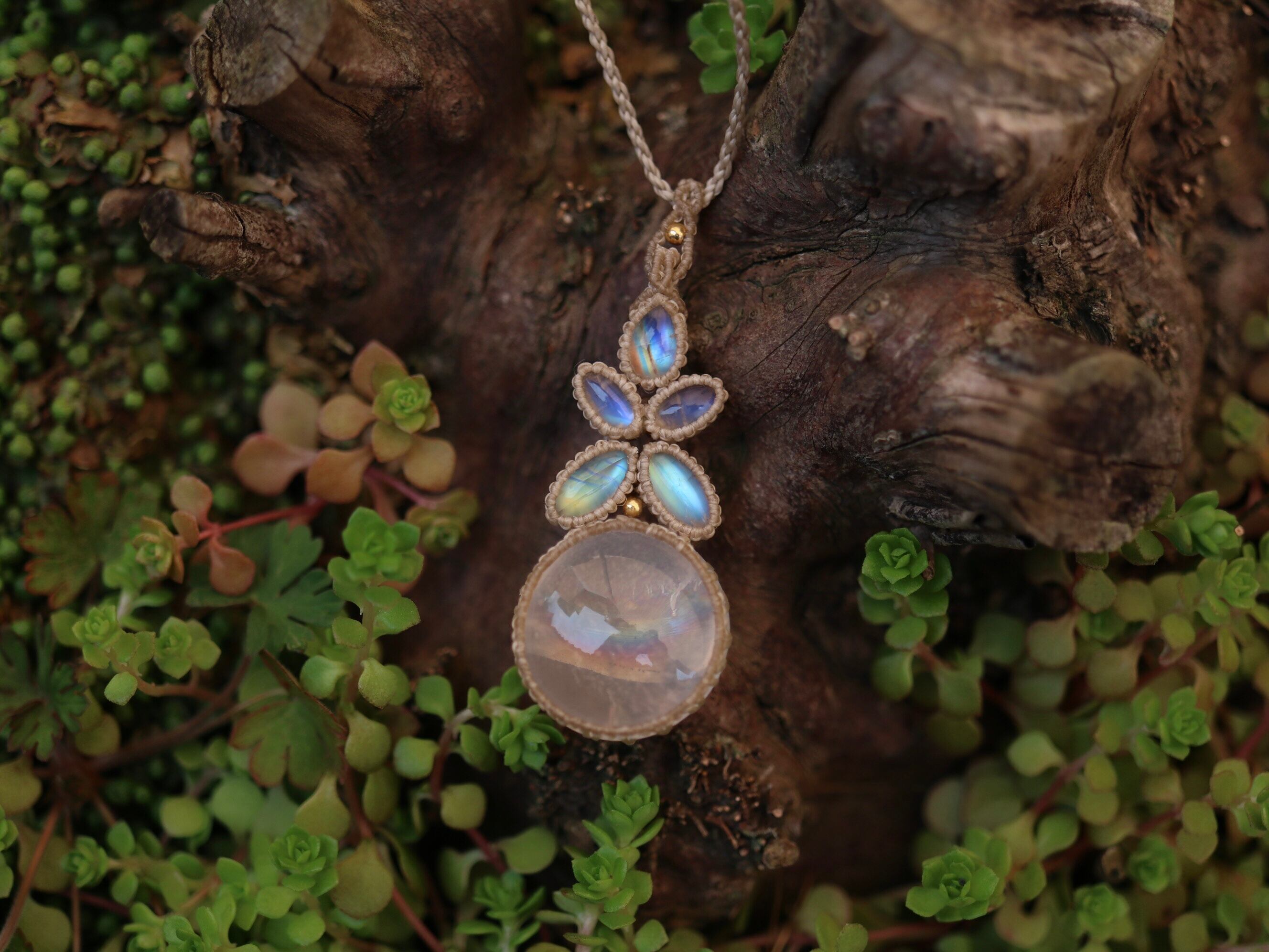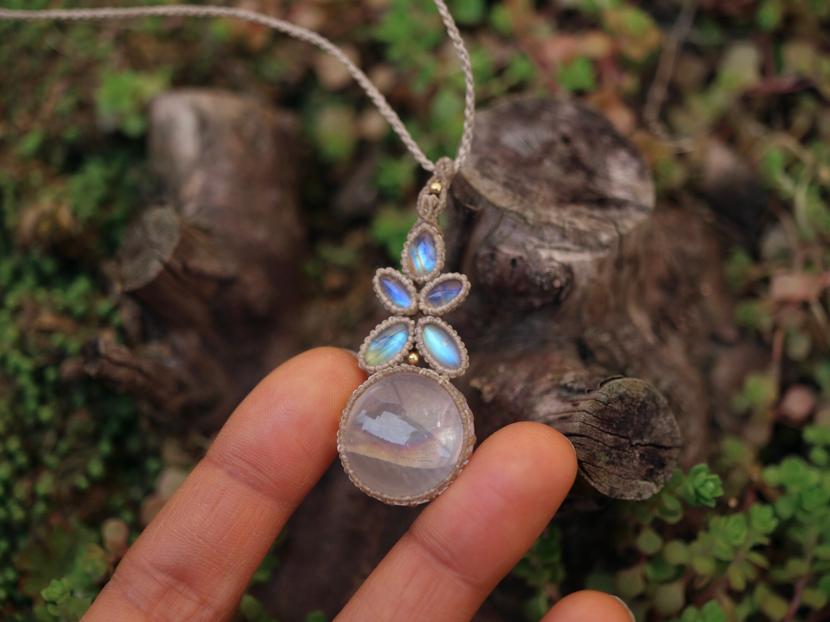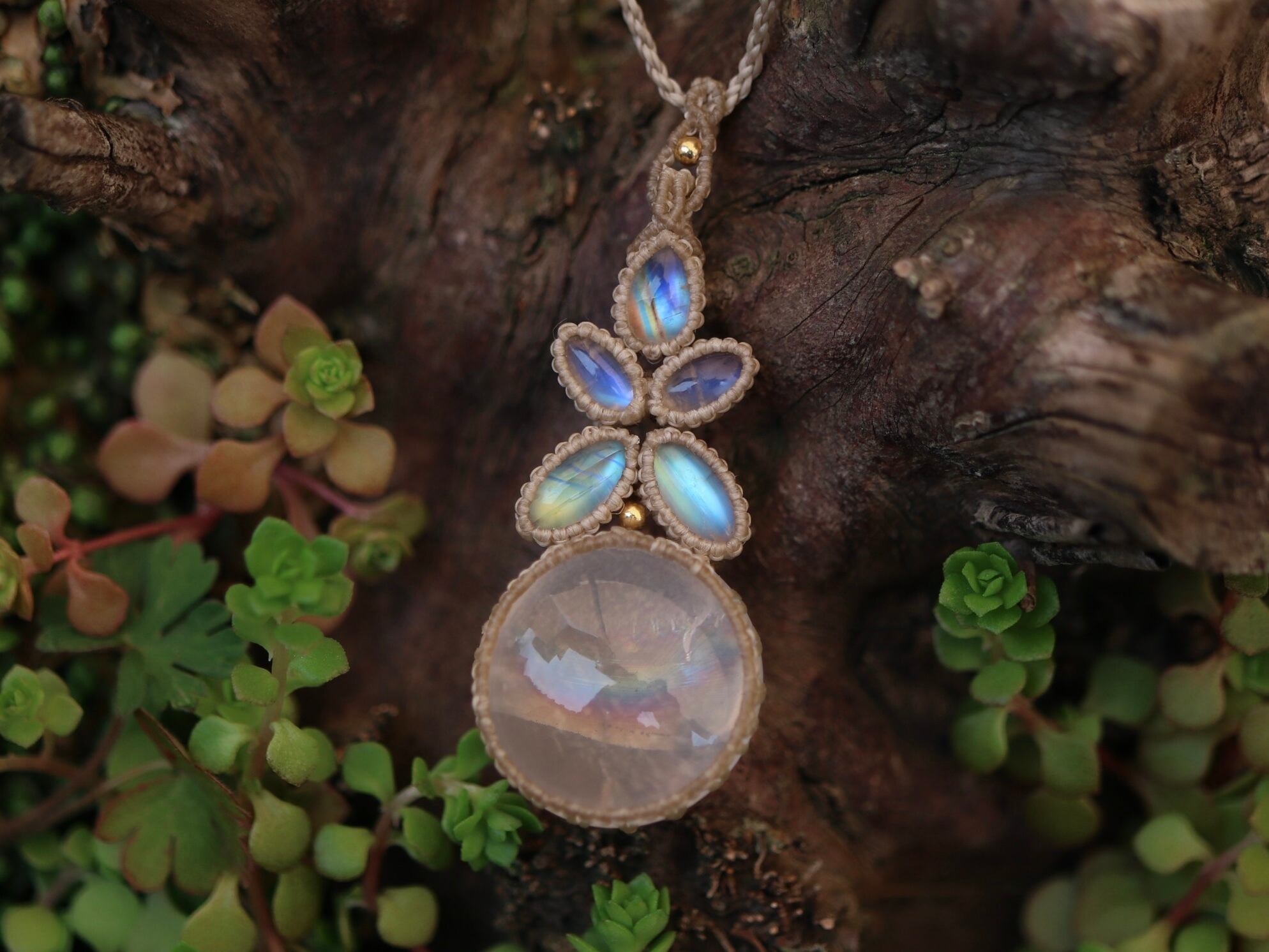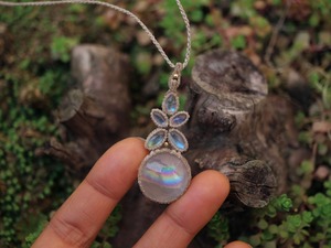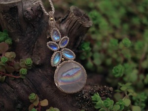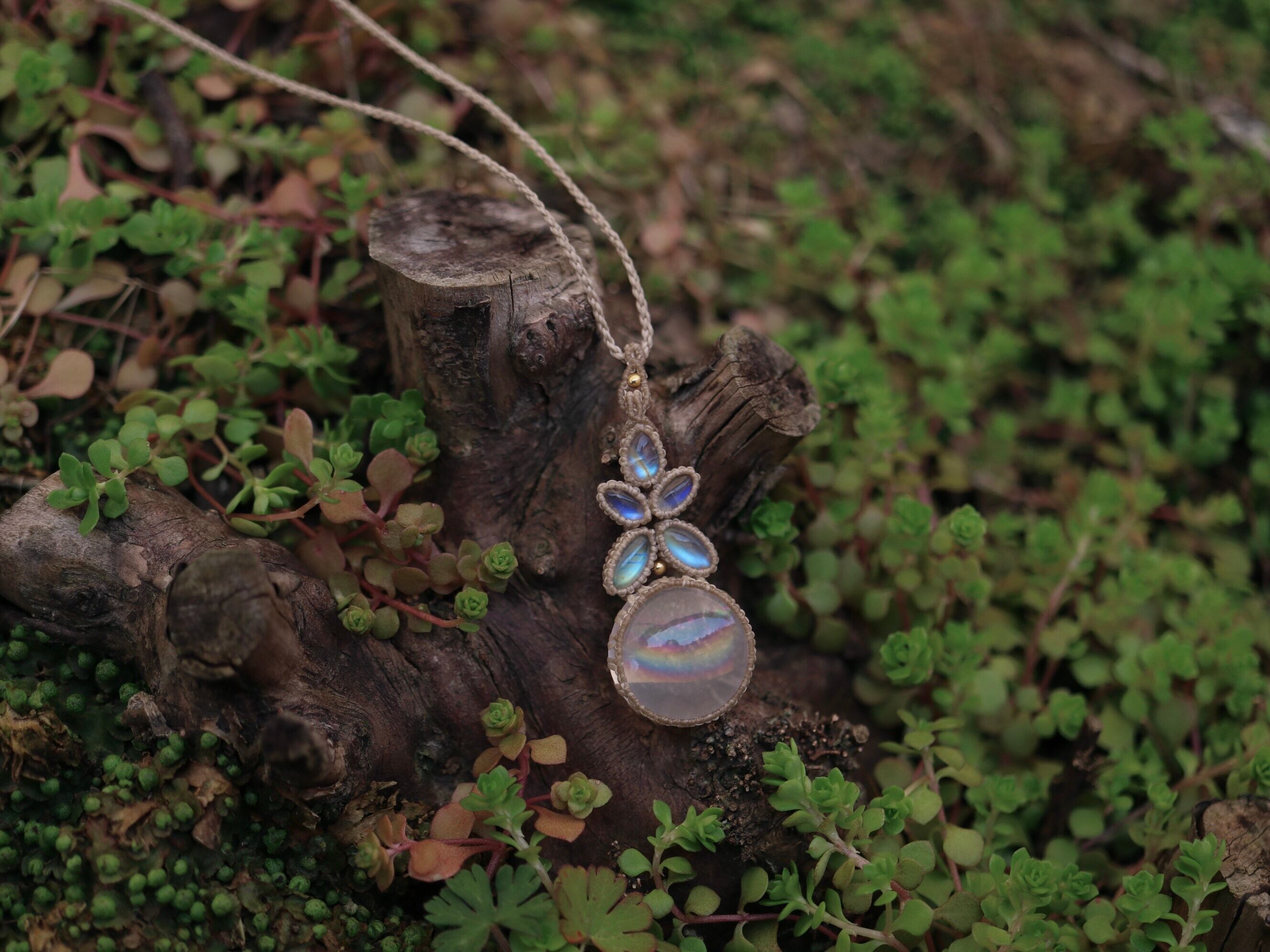 虹ローズクオーツ × レインボームーンストーン ペンダント