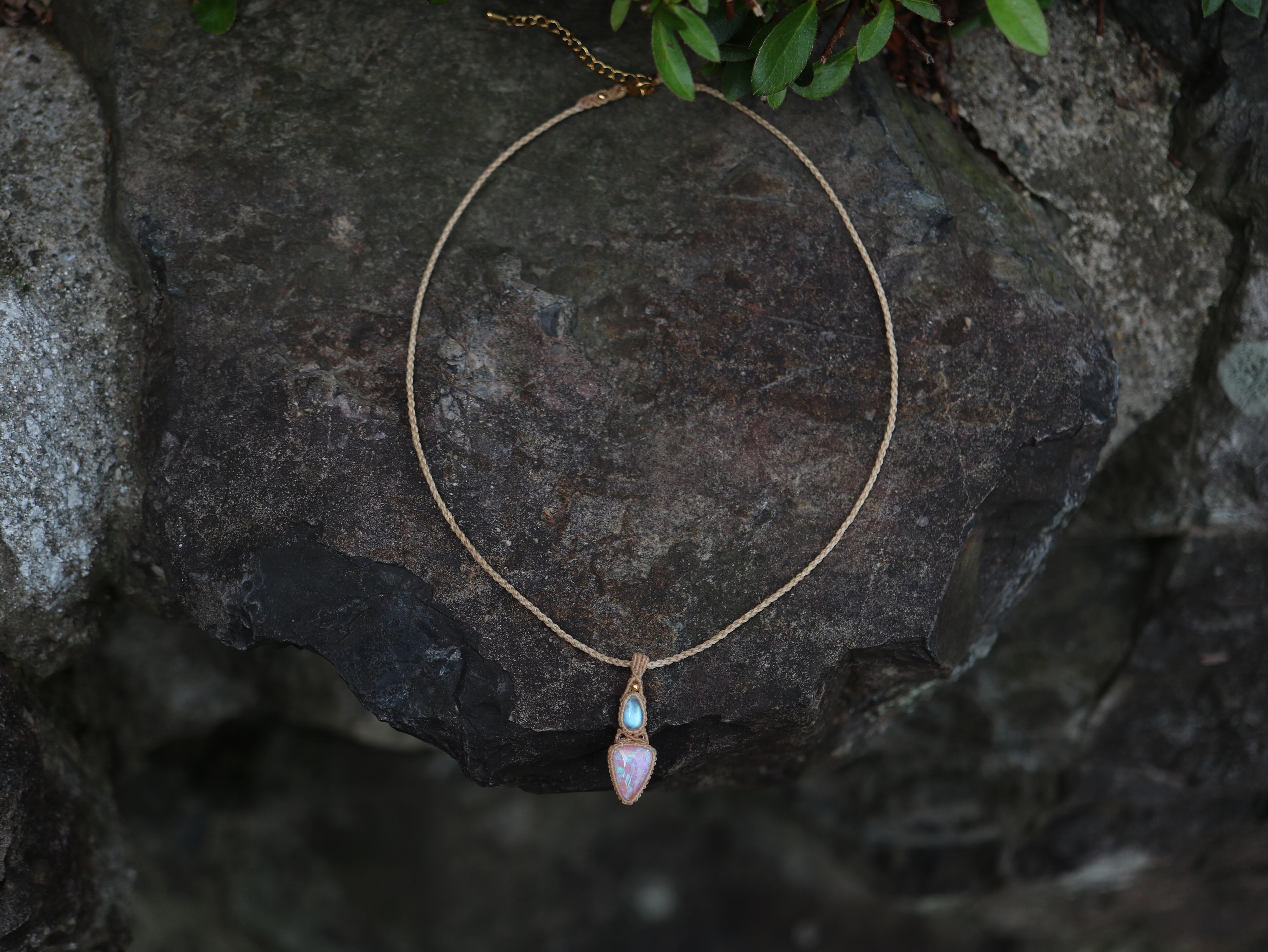 オーストラリア産 Pipeオパール 三角 × ムーンストーン ネックレス