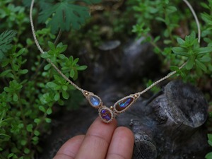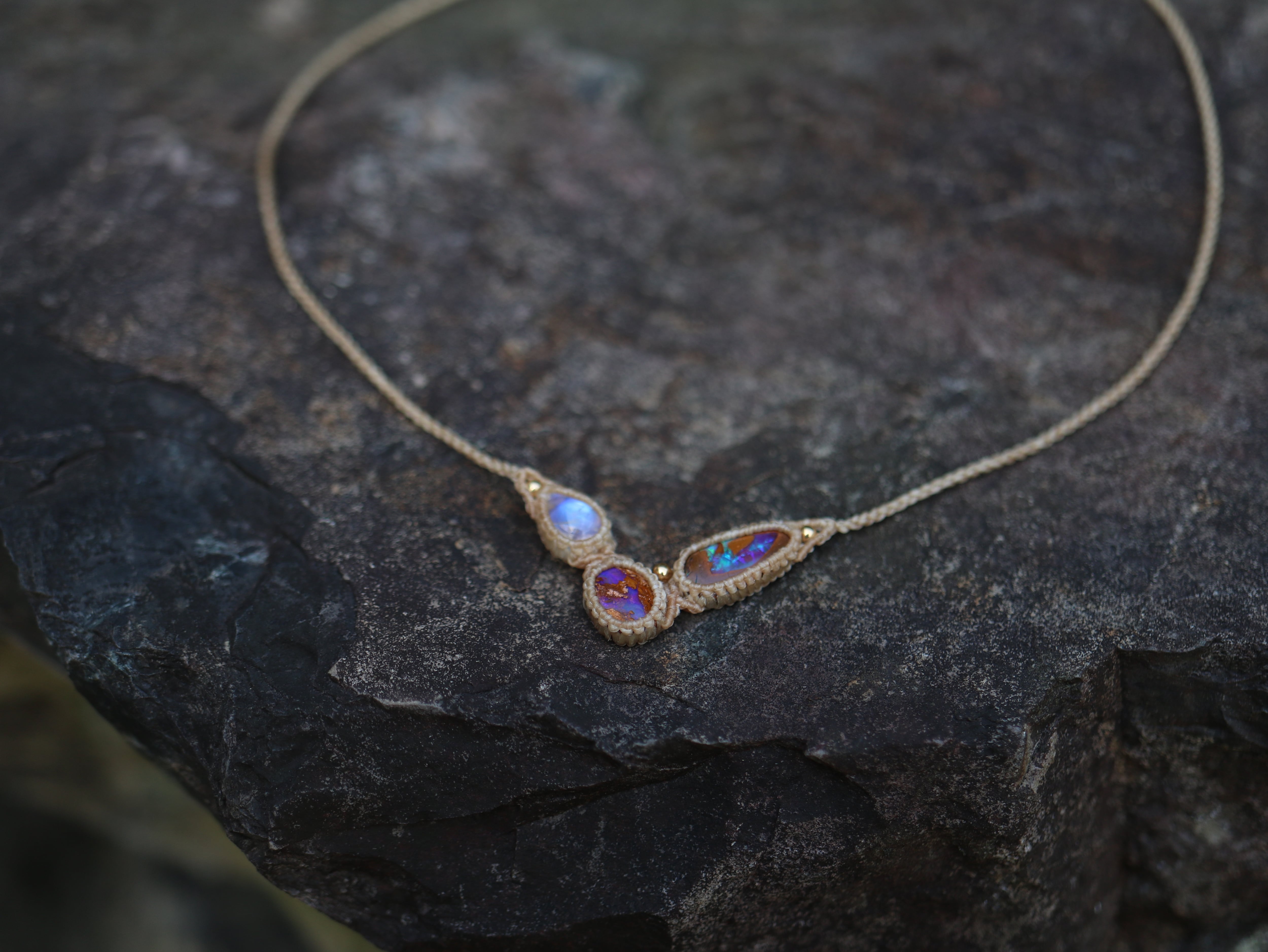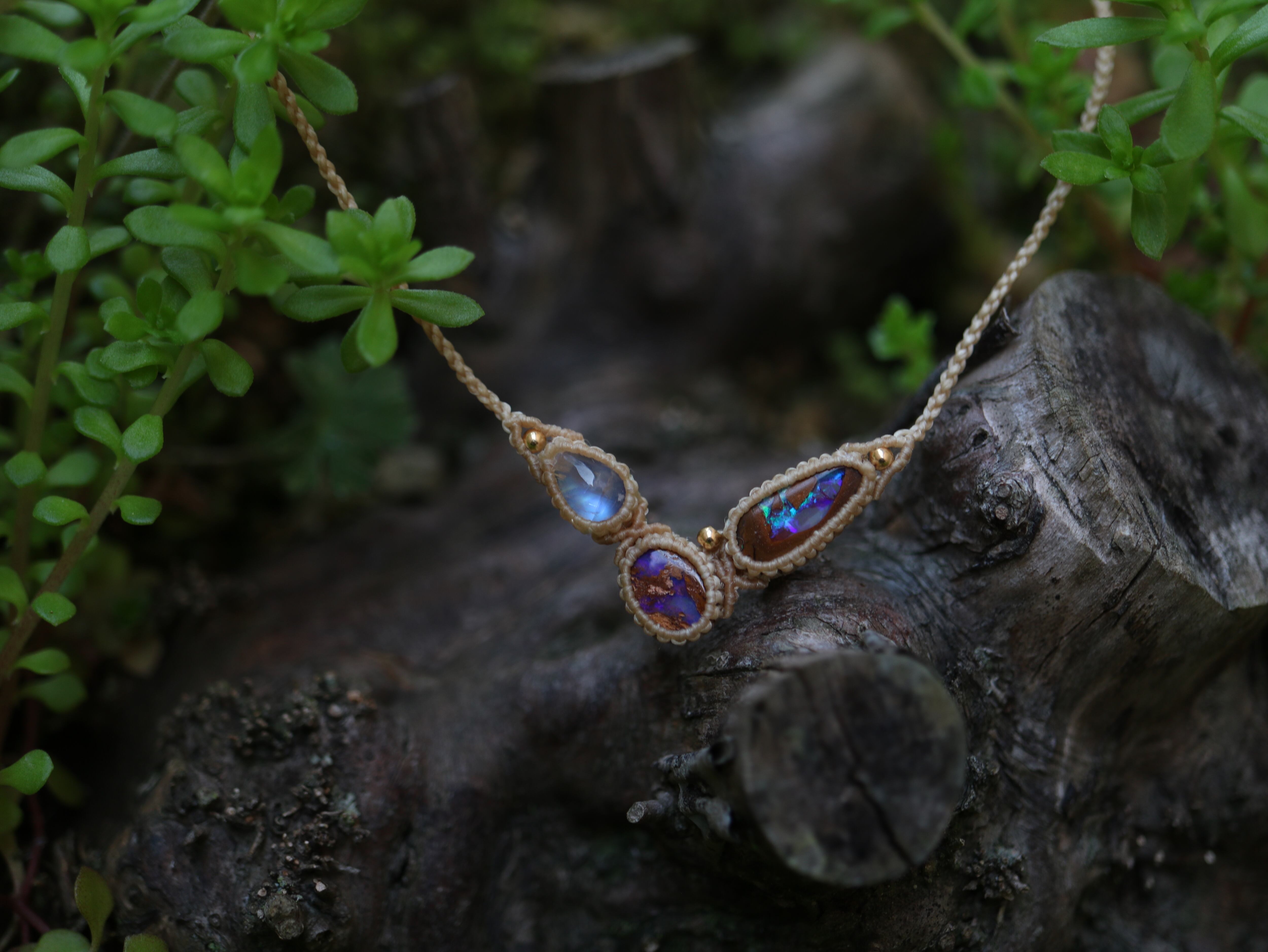 オーストラリア産 ボルダー&ウッド オパール × ムーンストーン ネックレス
