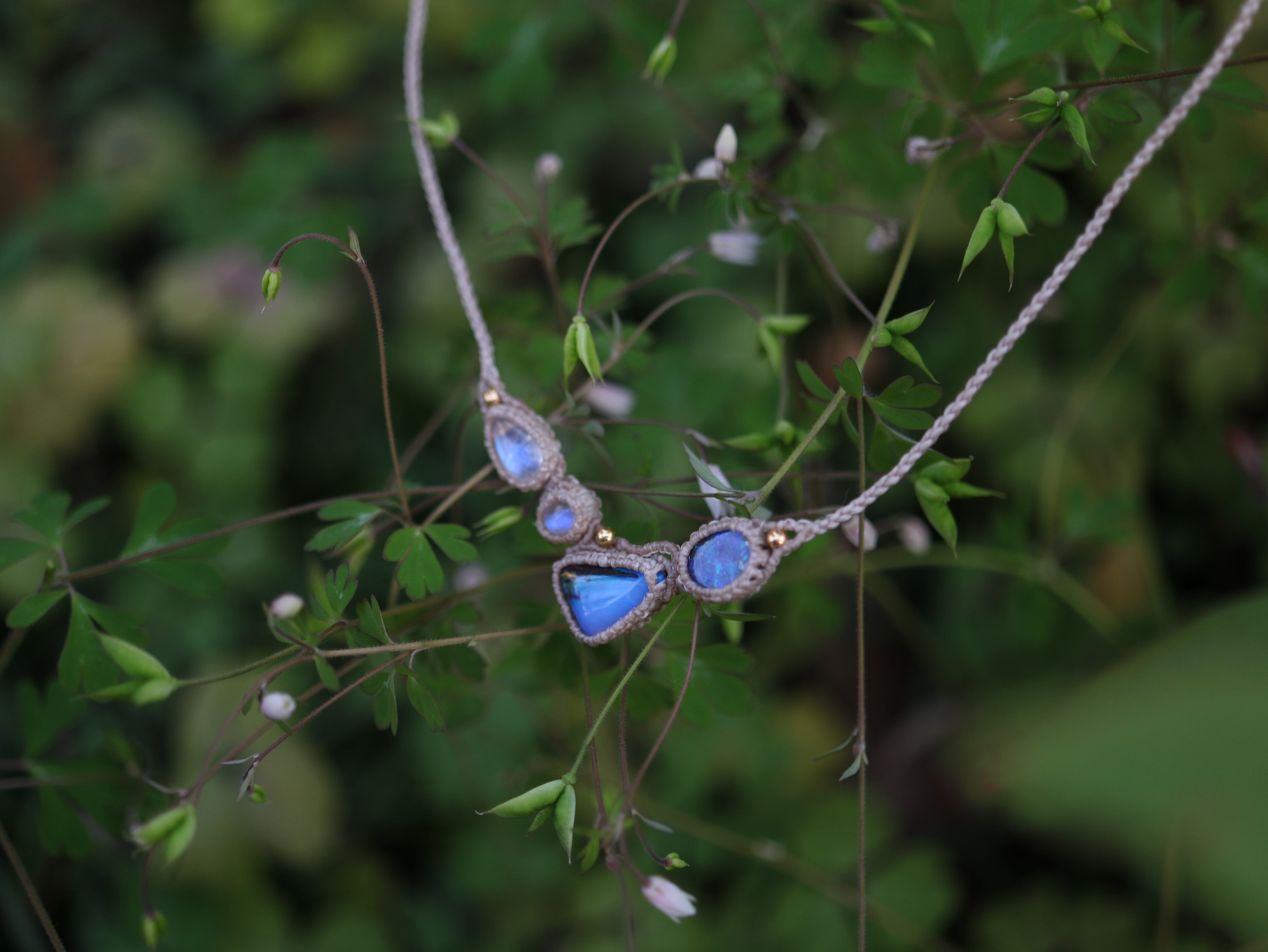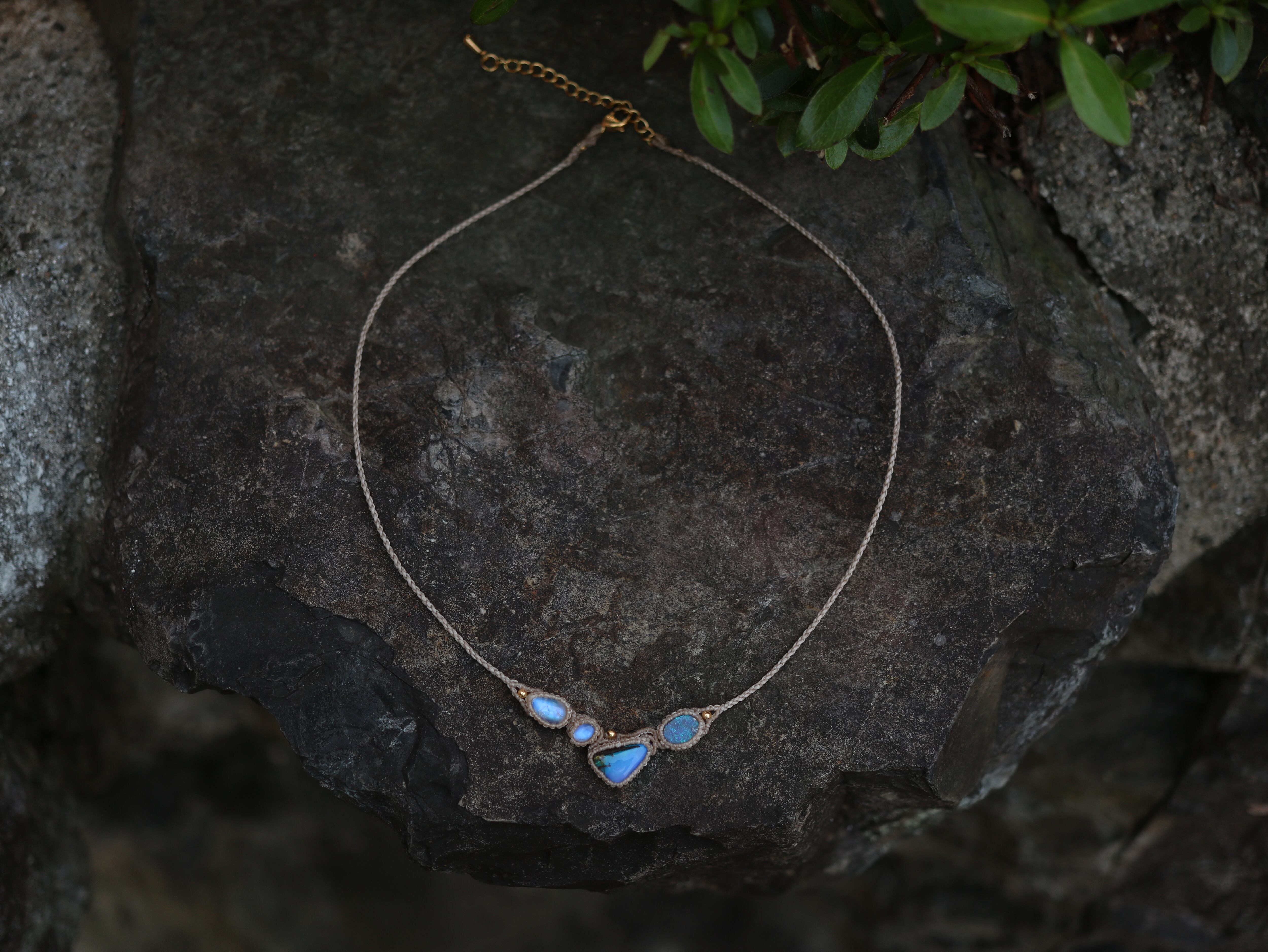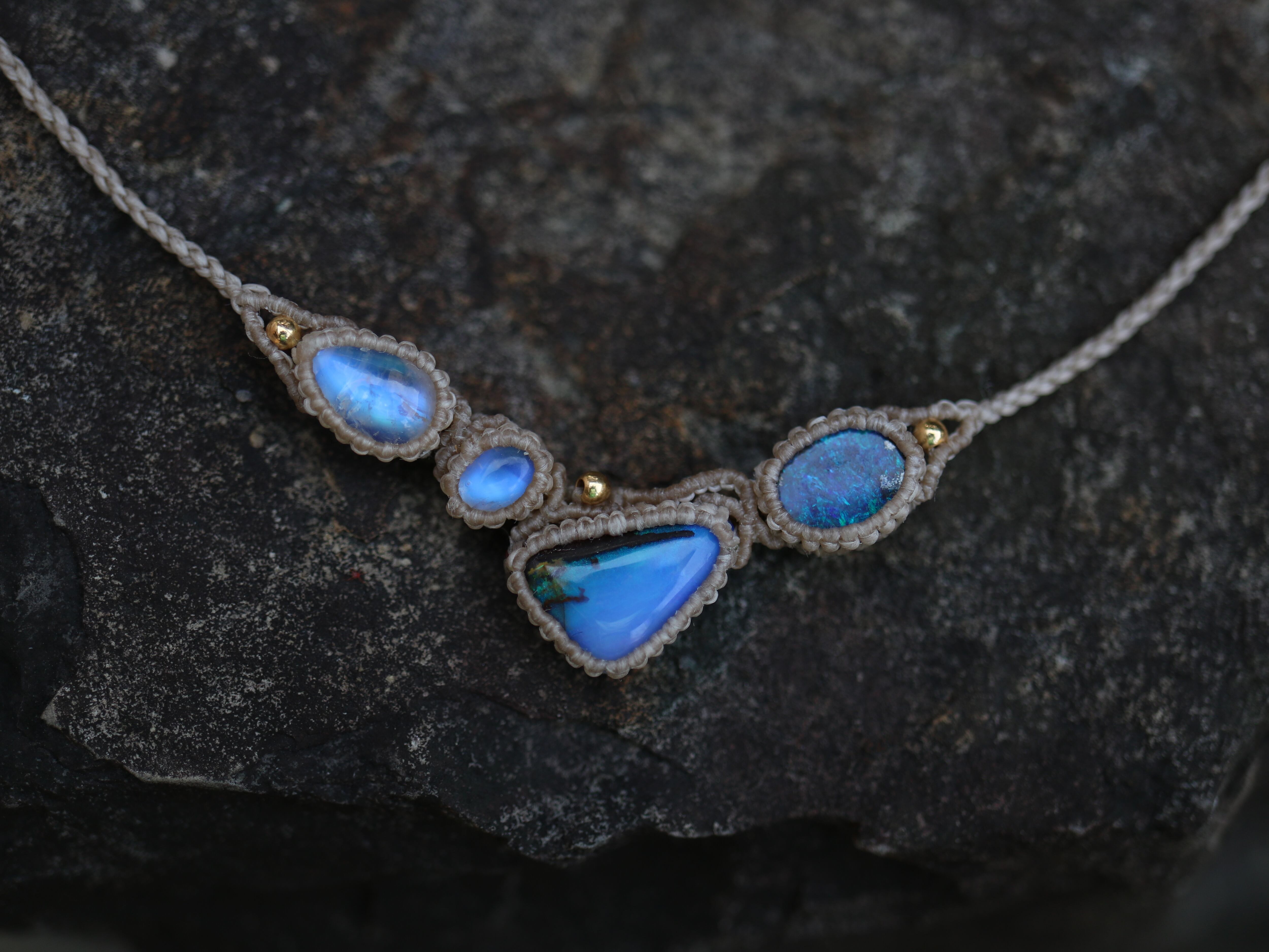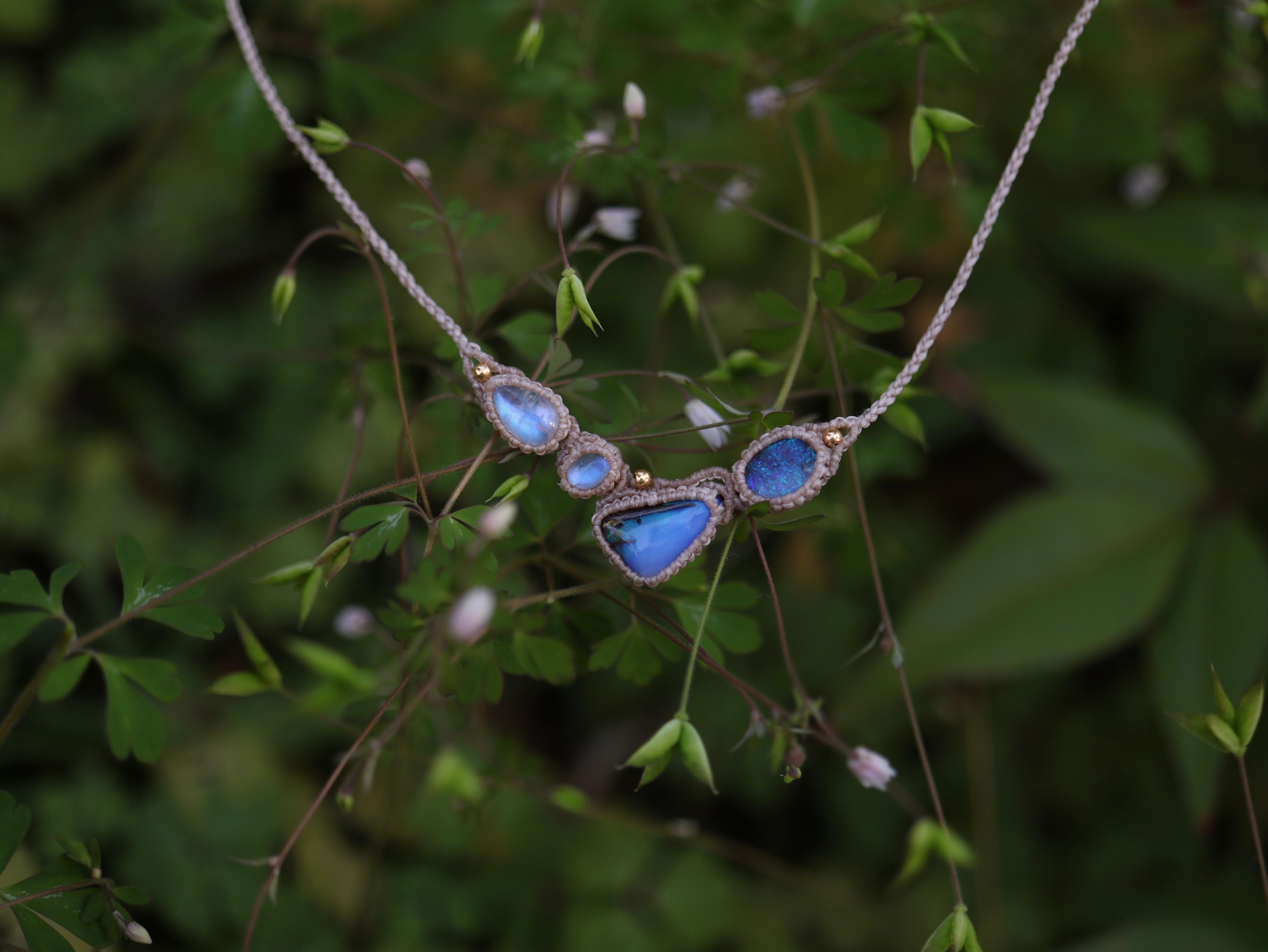 オーストラリア産 2 ボルダーオパール × 2 ムーンストーン ネックレス