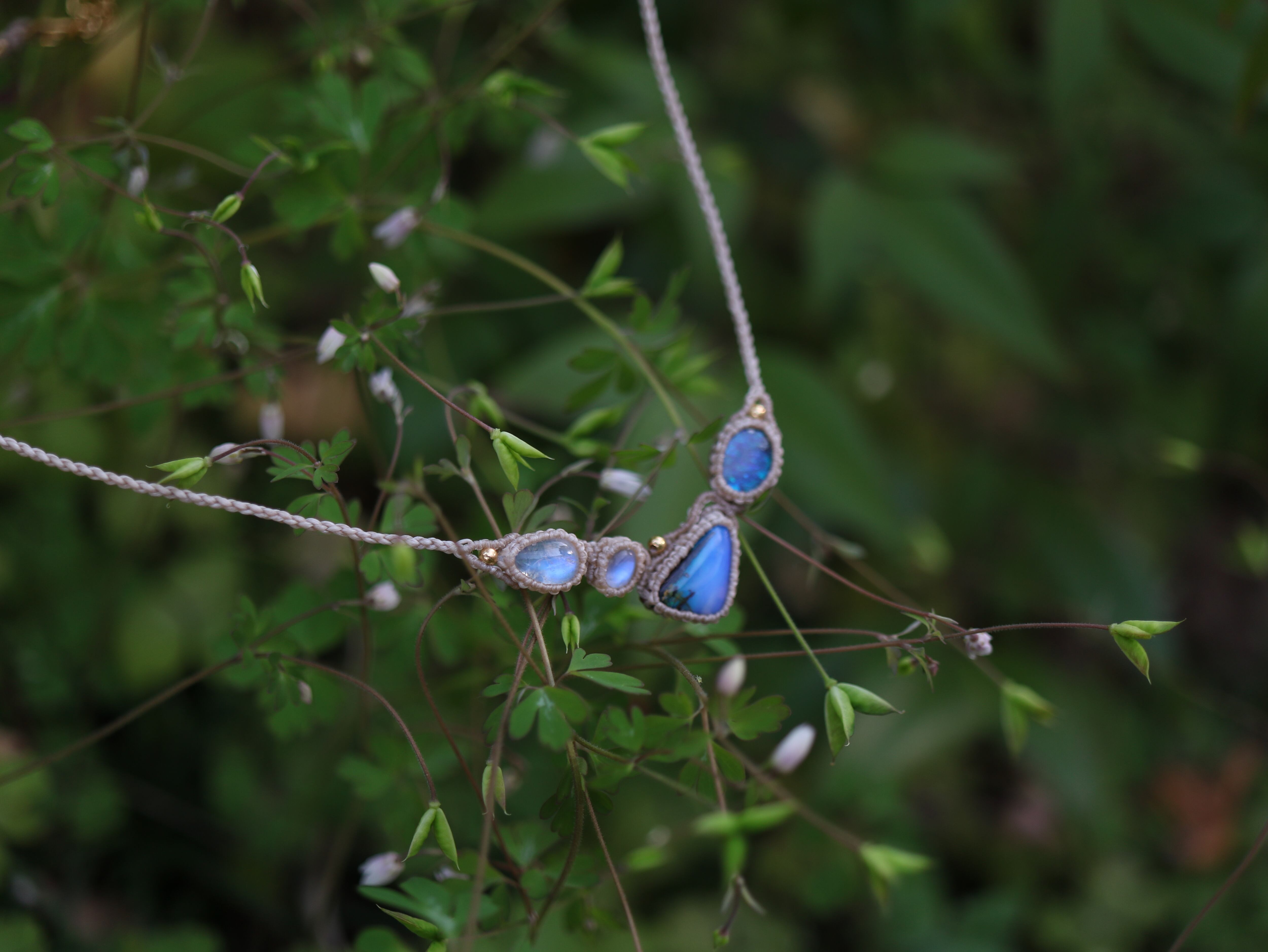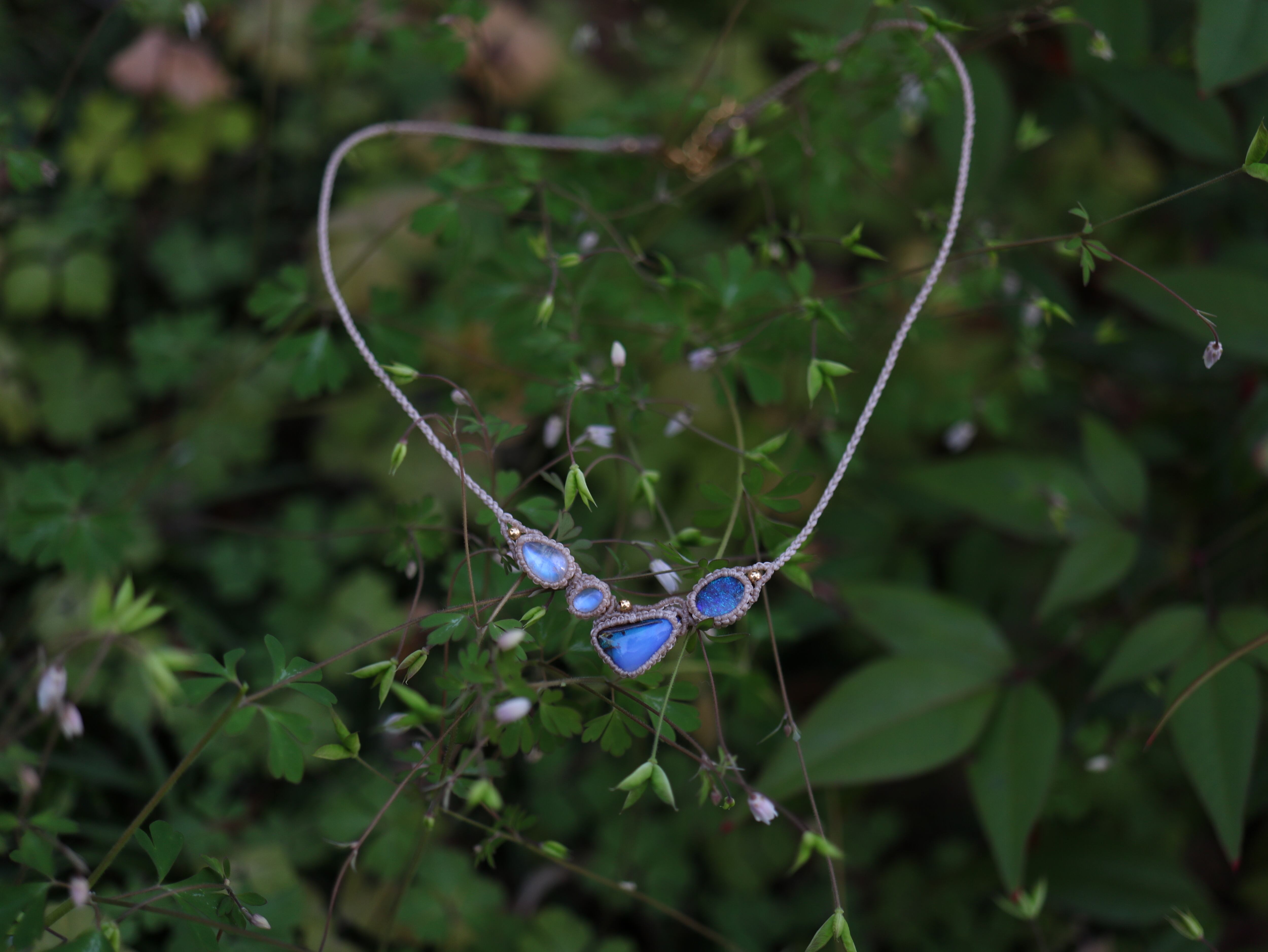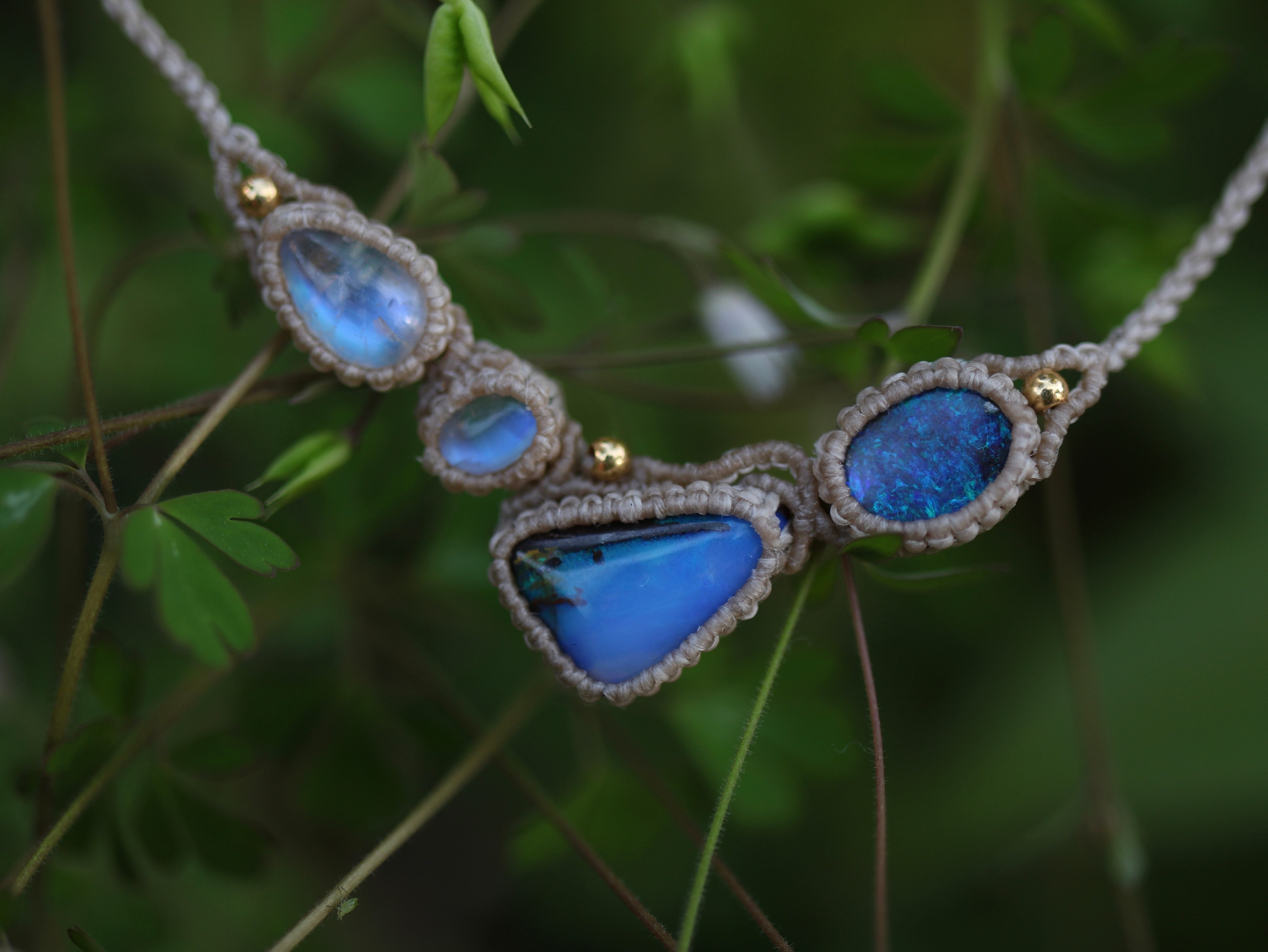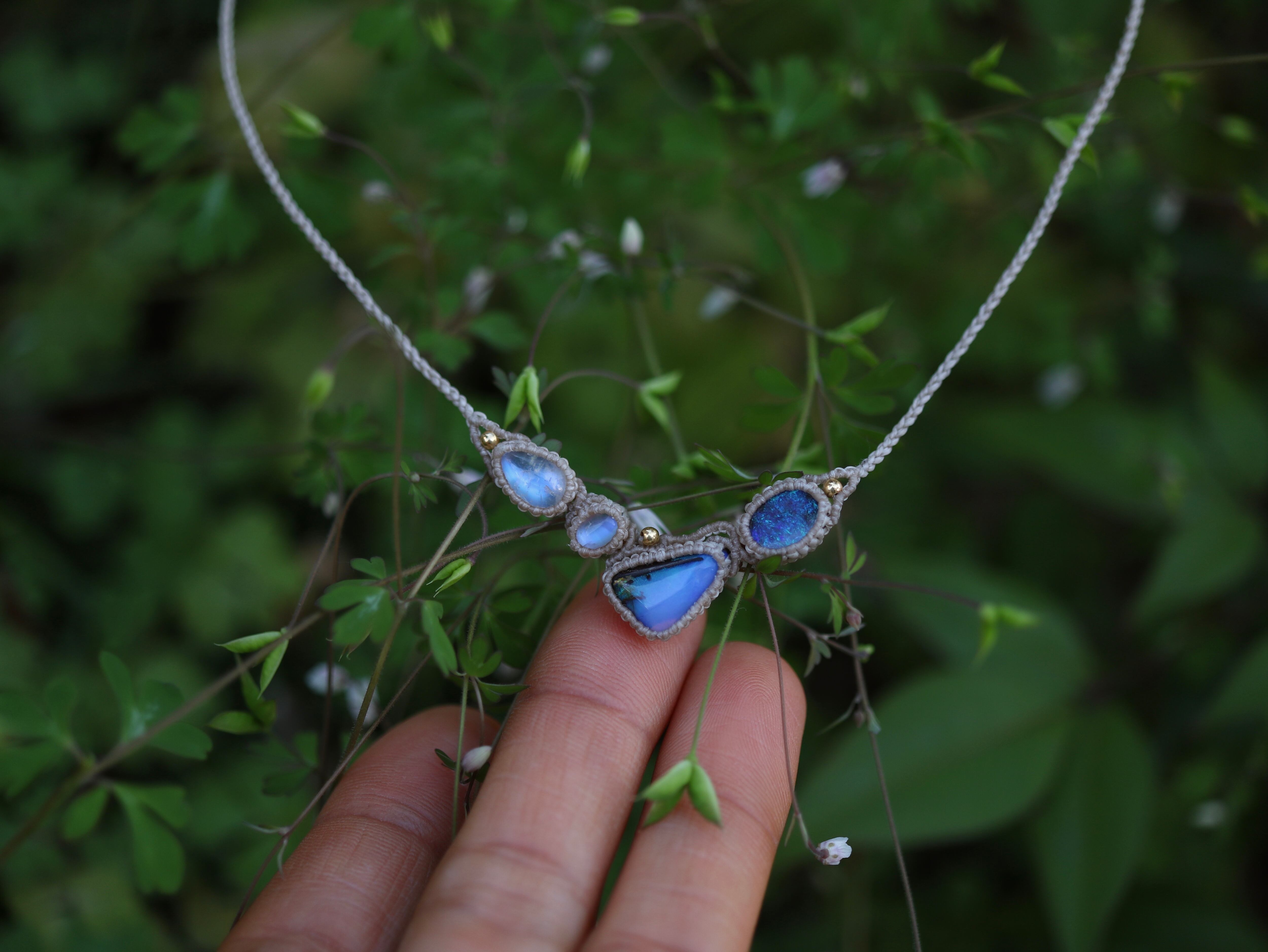 オーストラリア産 2 ボルダーオパール × 2 ムーンストーン ネックレス