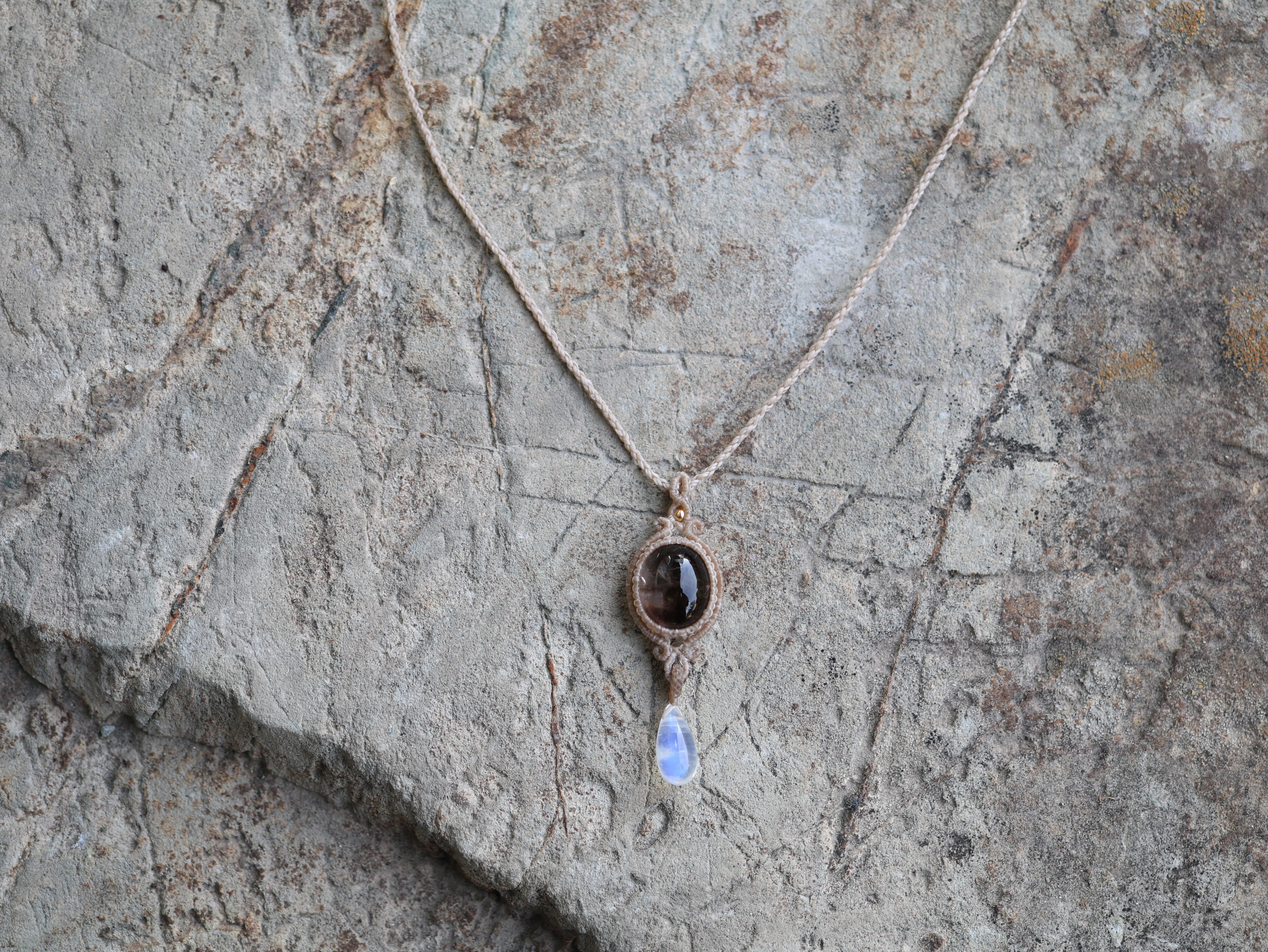 水入りスモーキークオーツ × ムーンストーン ペンダント
