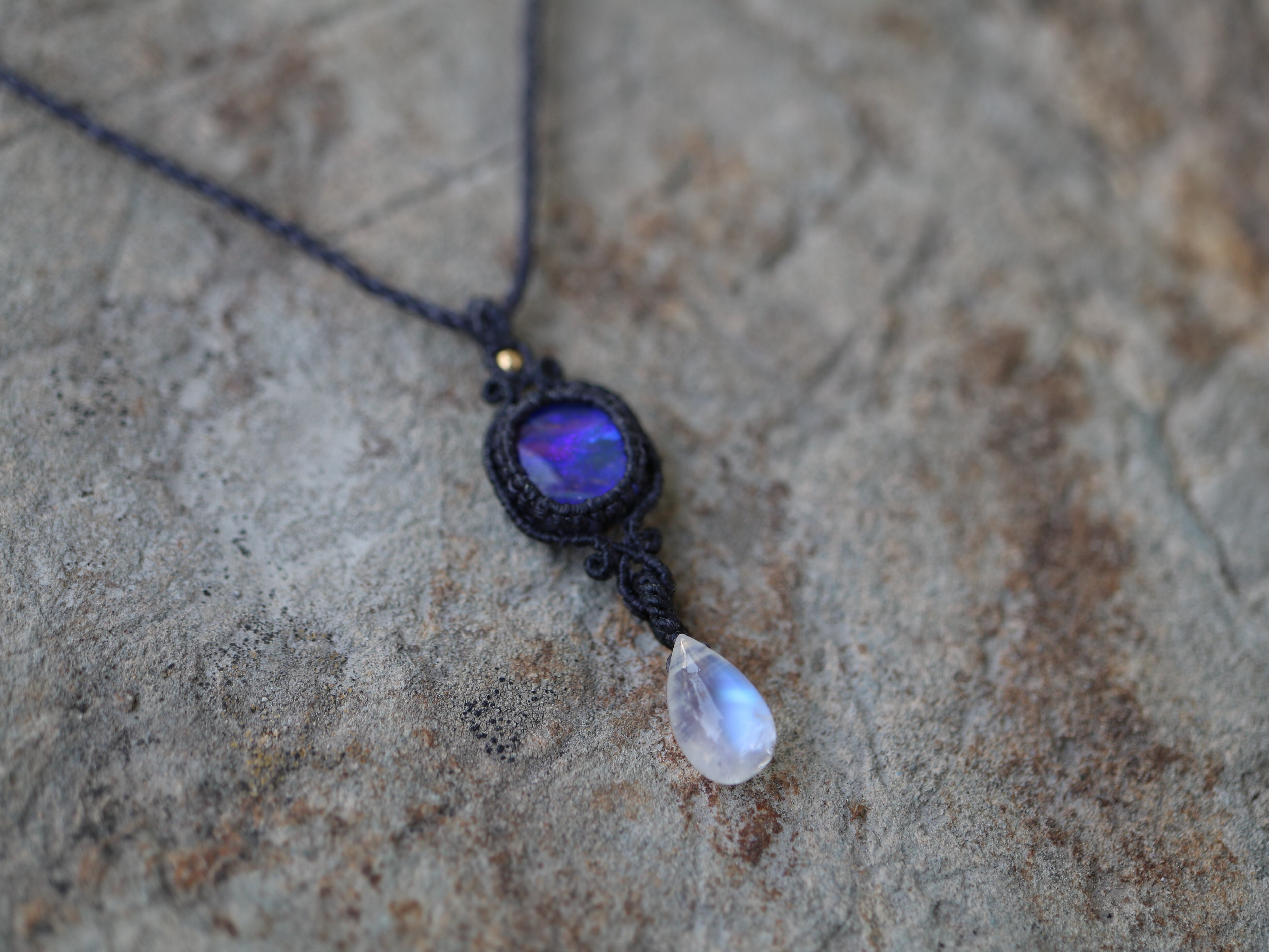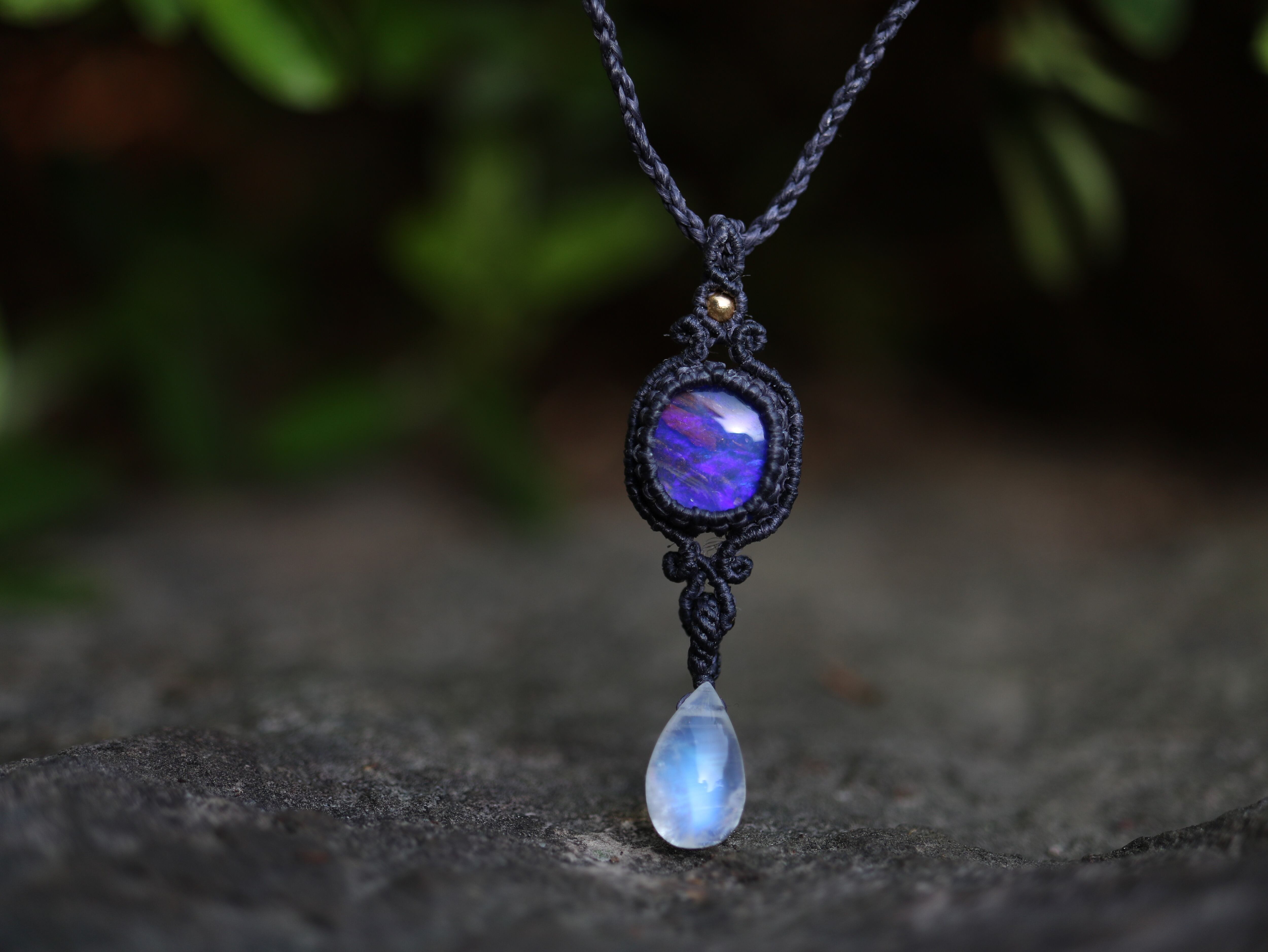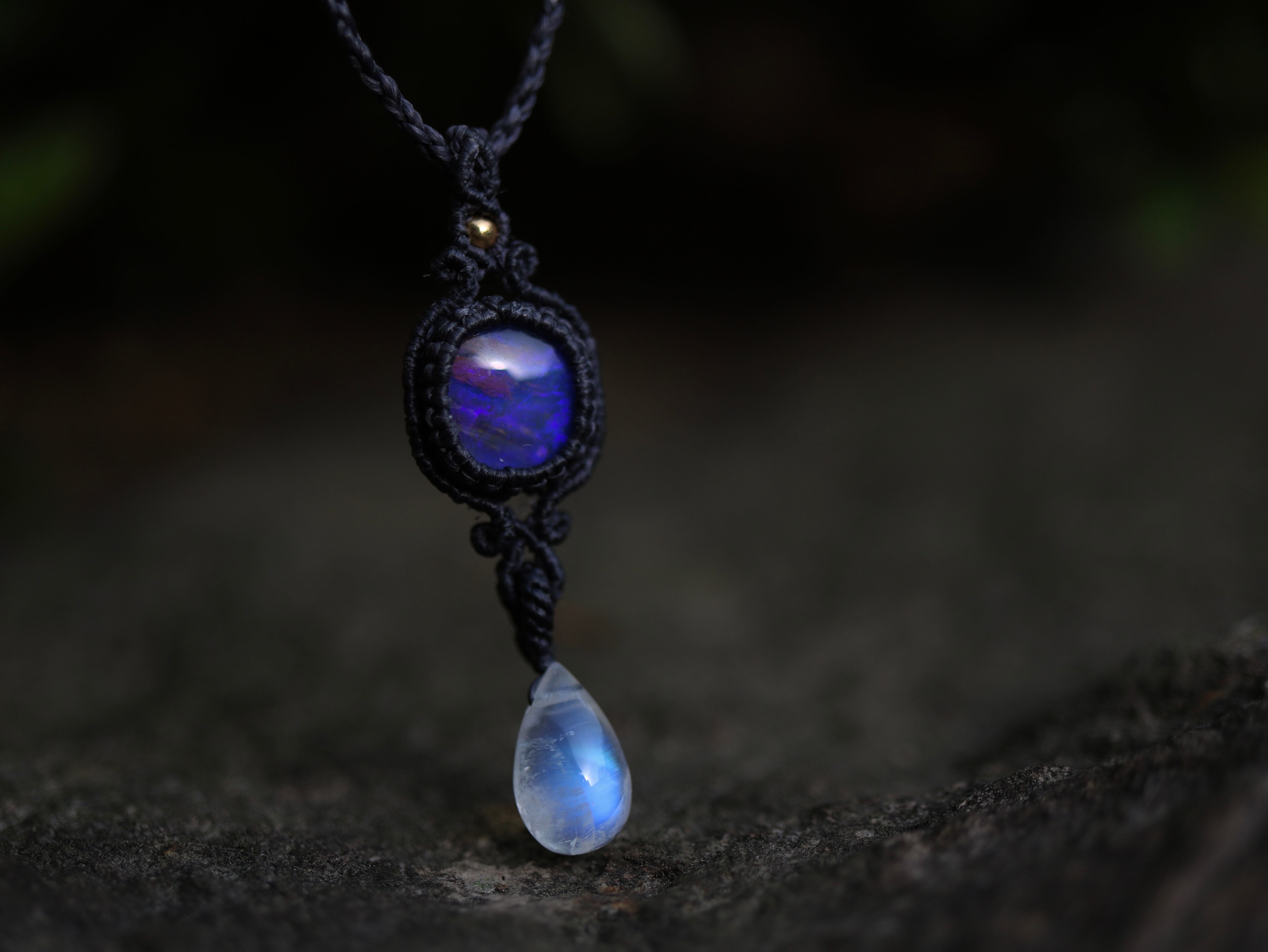 オーストラリア産ウッドオパール × ムーンストーン ペンダント