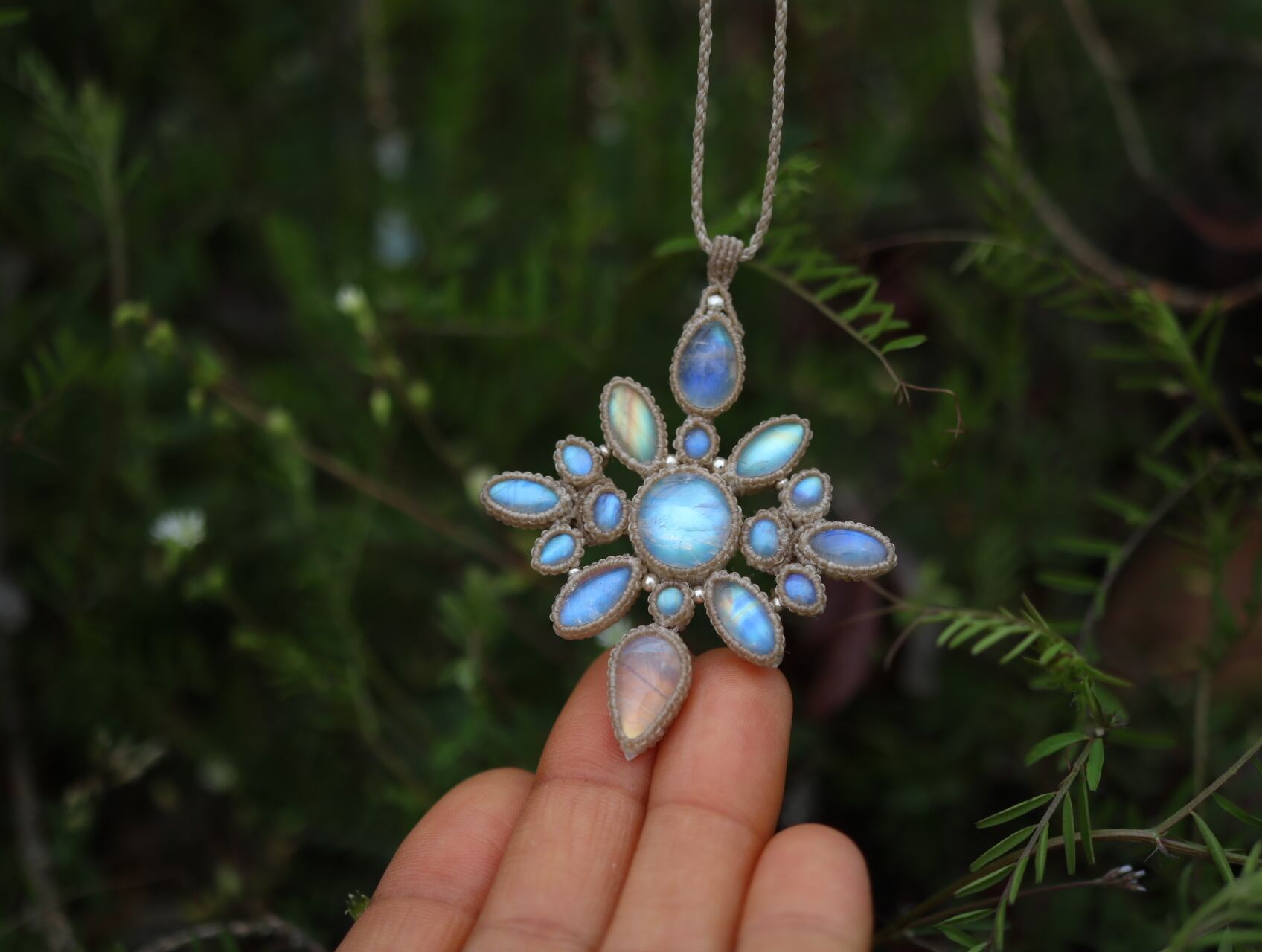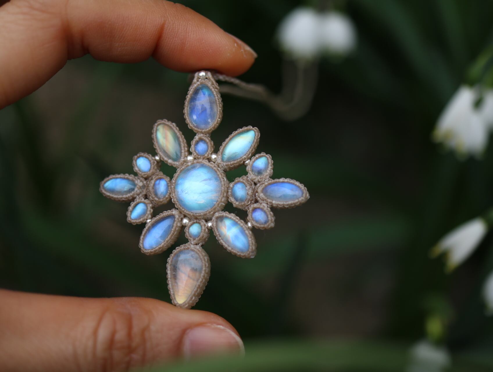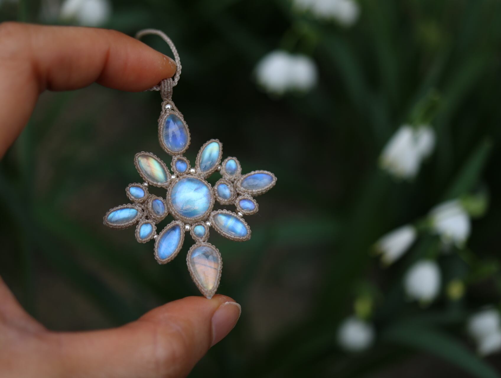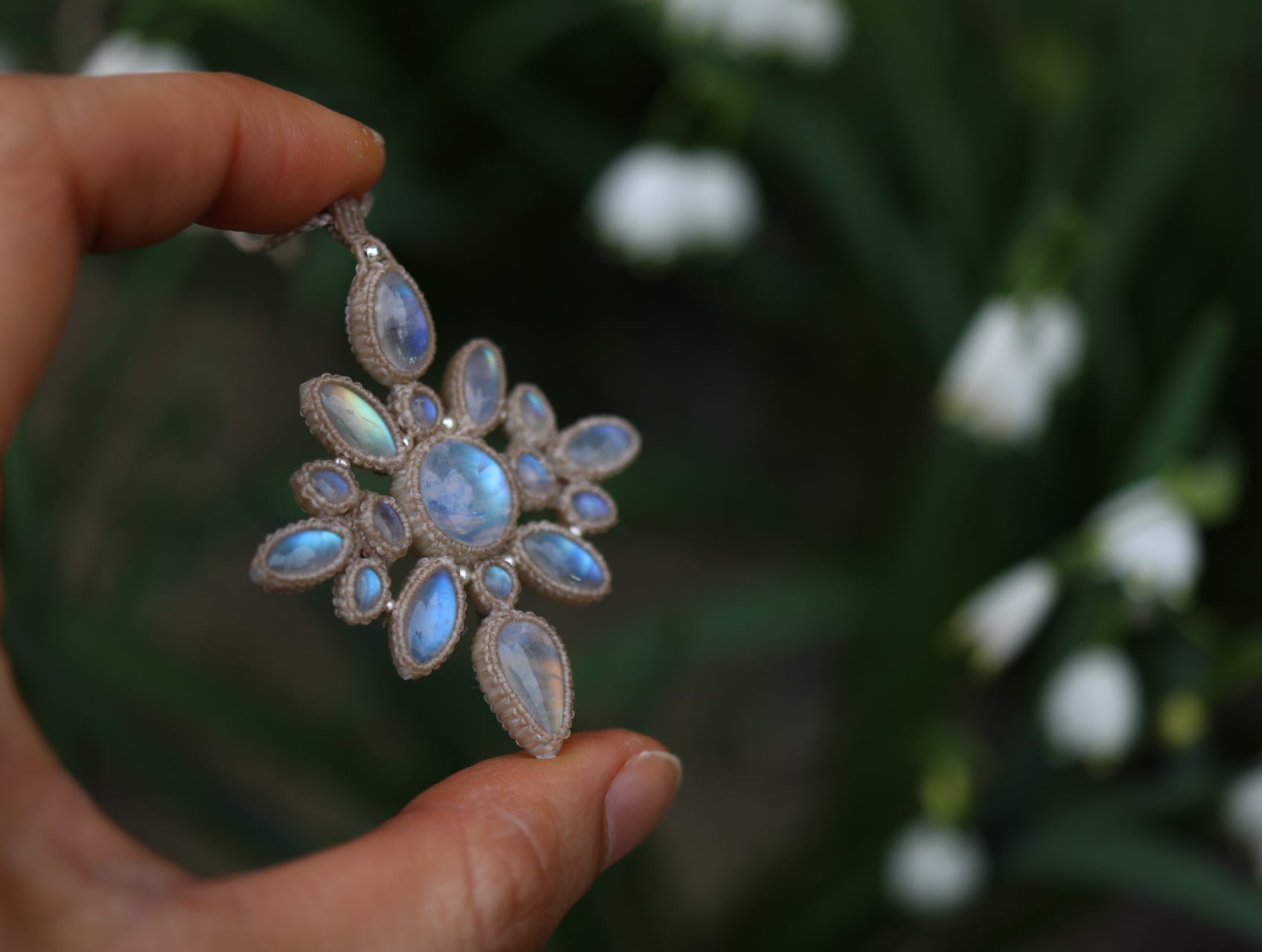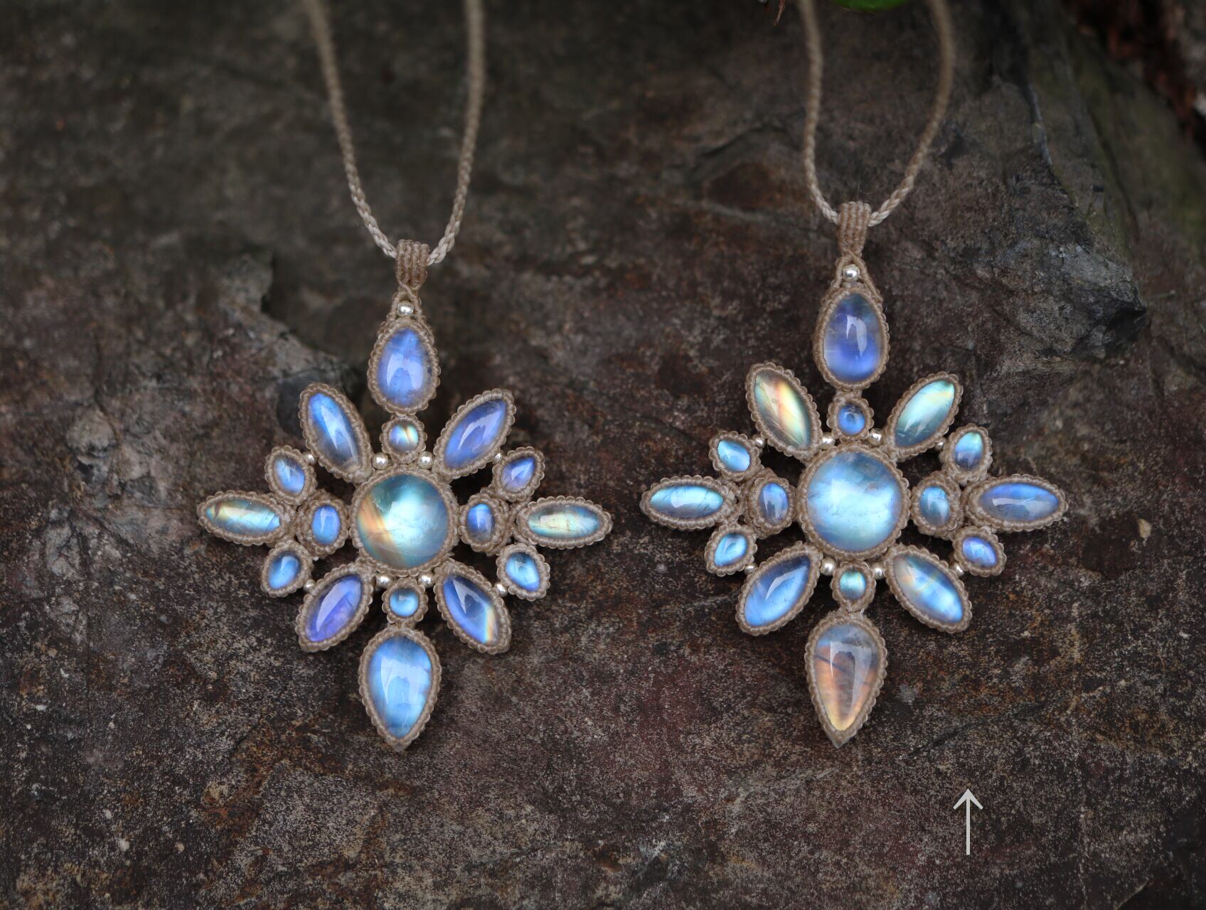 ※ 天然石を包むコードを始めトップ部分に使用したマクラメ編みコードは手縫い糸ほどの細いコードを使い、天然石の表情を引き立てるよう