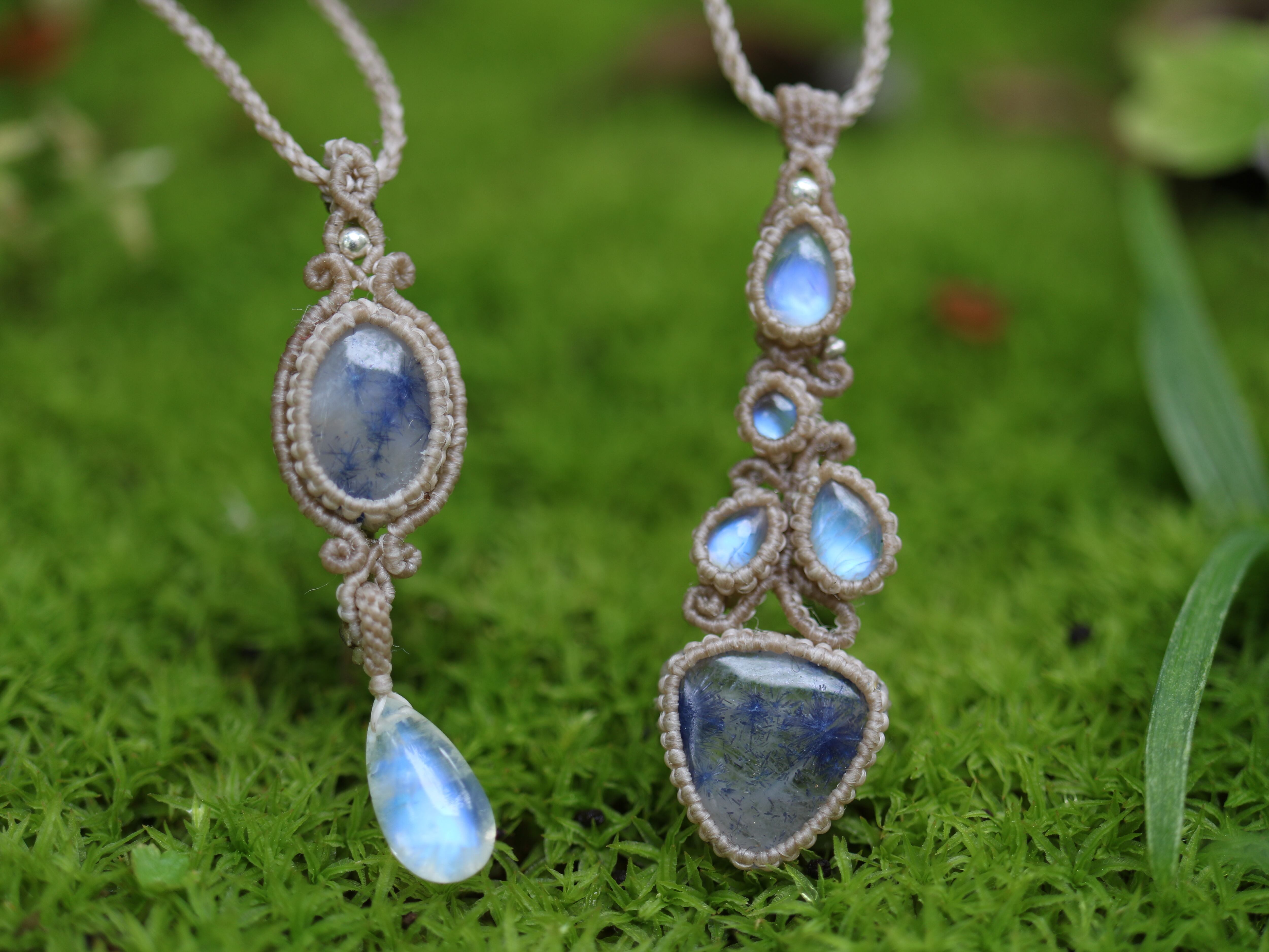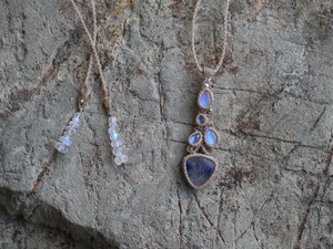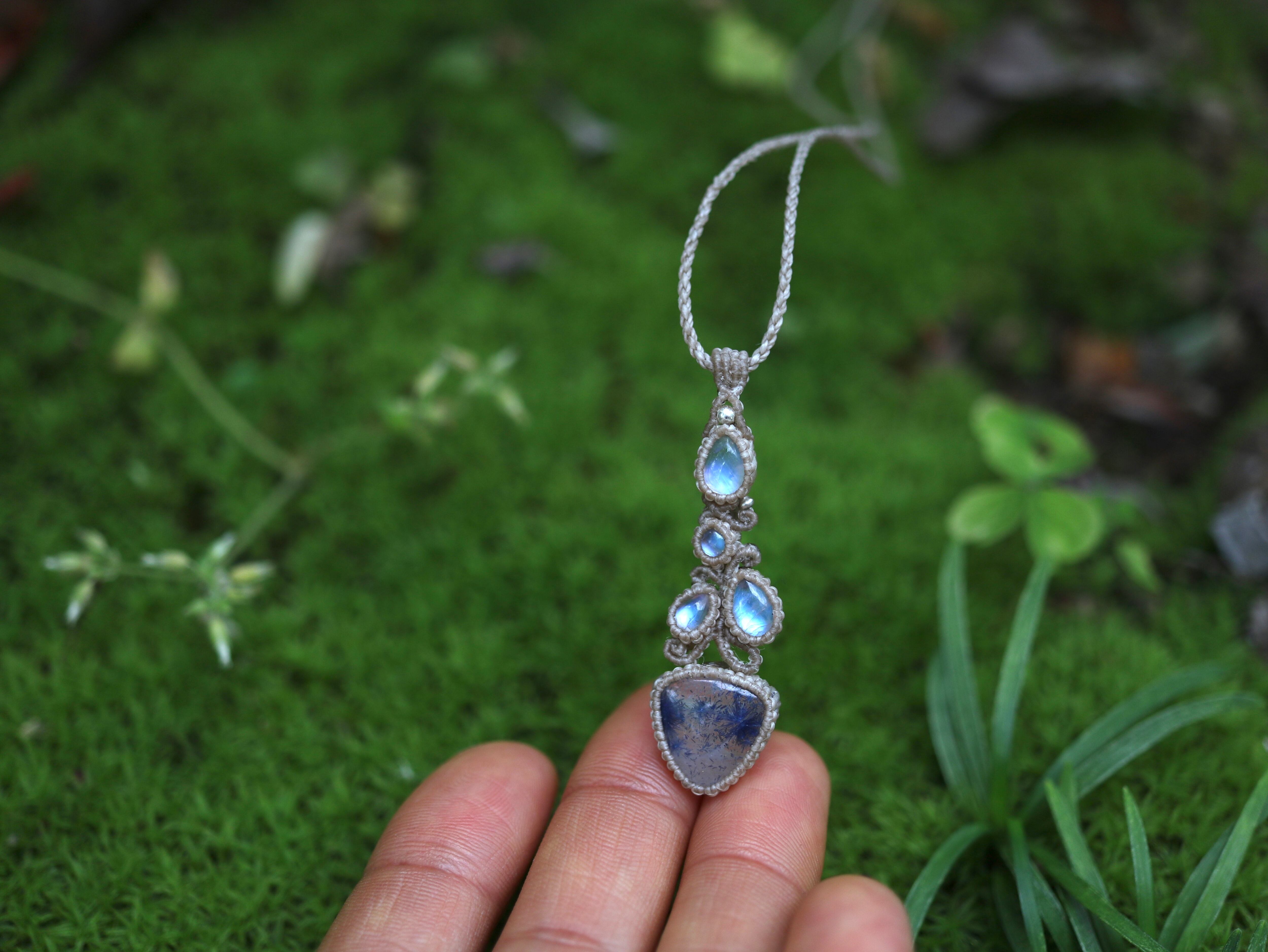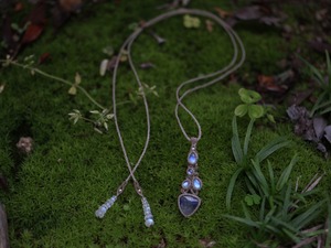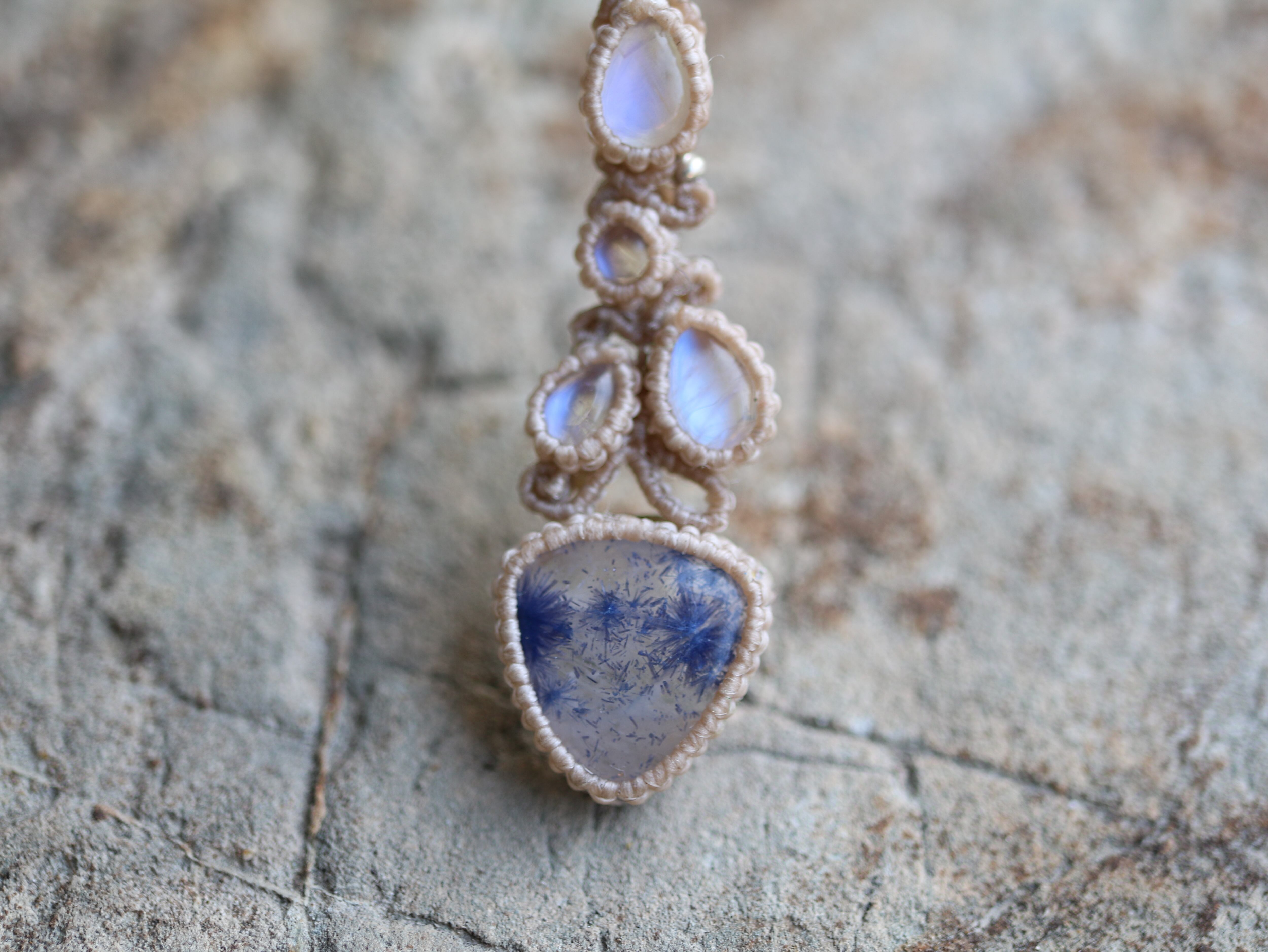 デュモルチェライト in quartz × ムーンストーン ペンダント