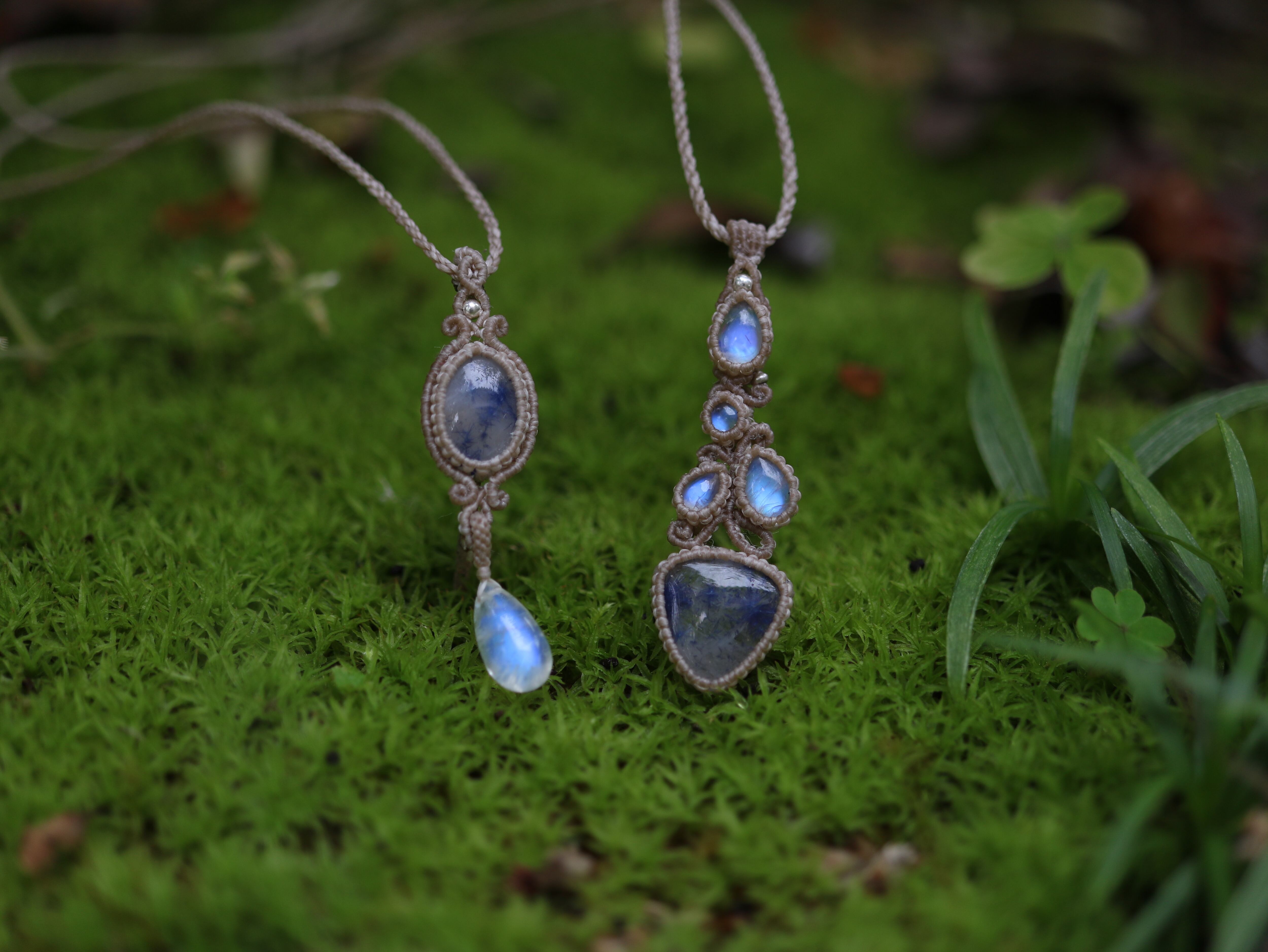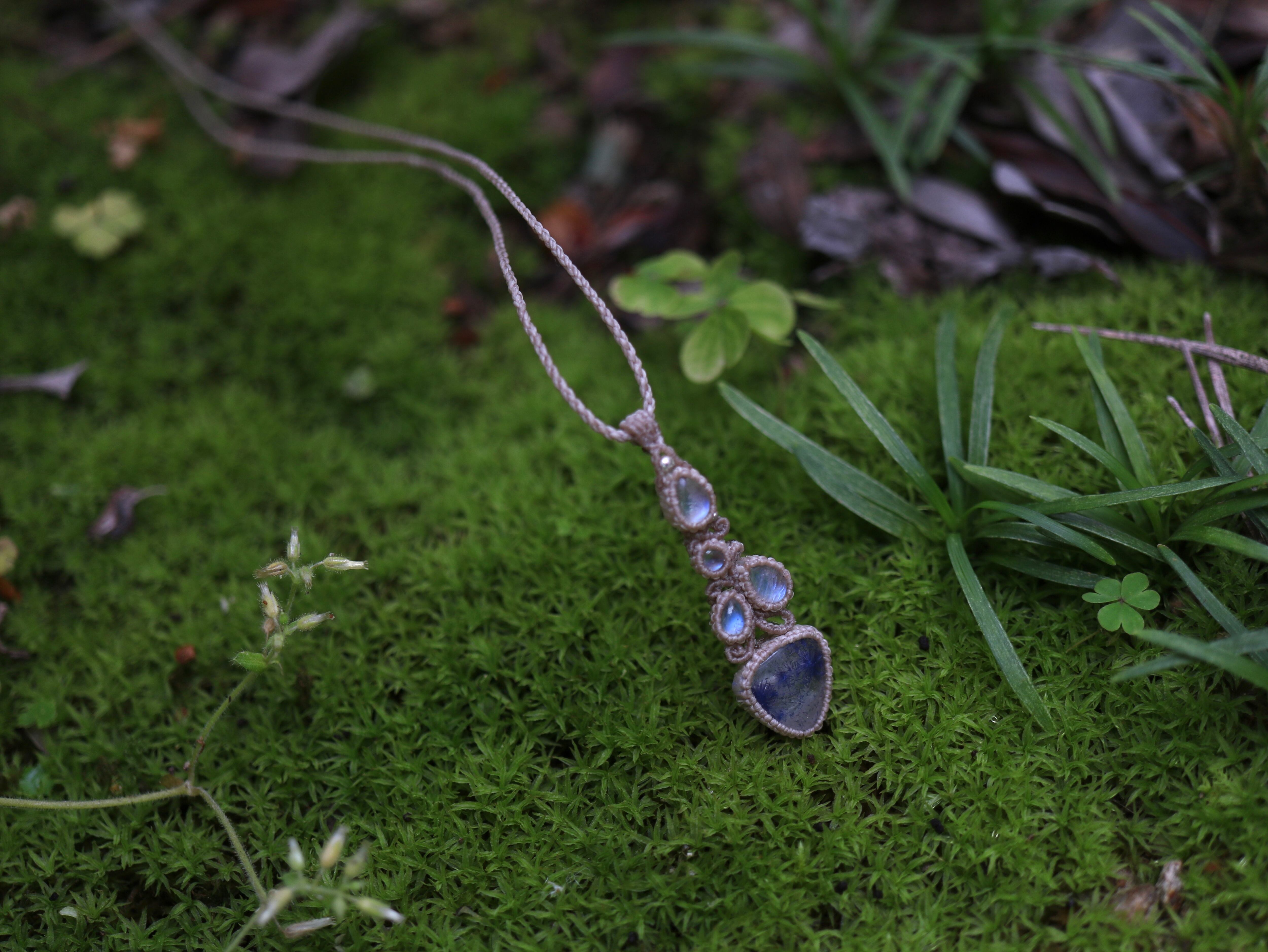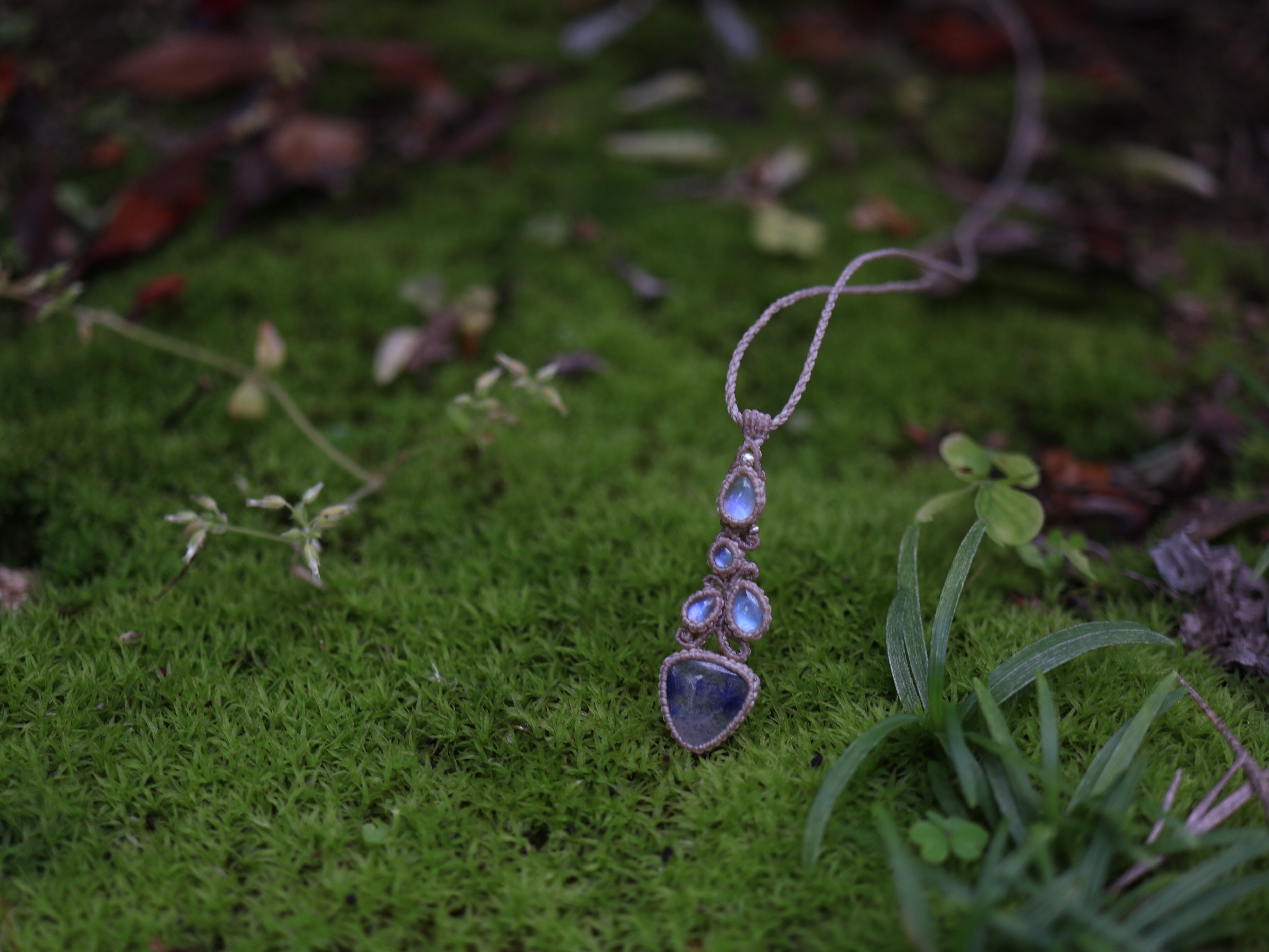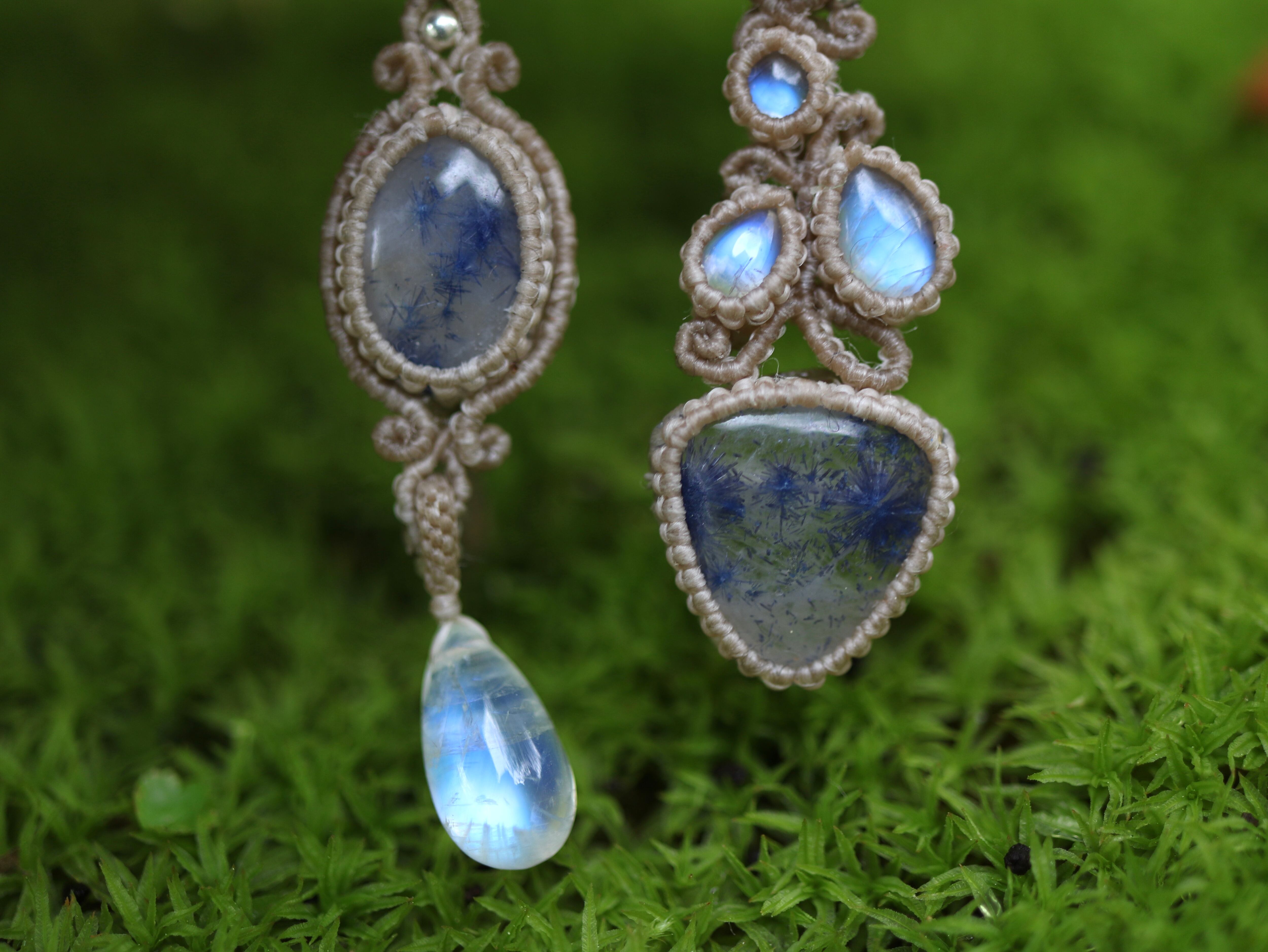 デュモルチェライト in quartz × ムーンストーン ペンダント