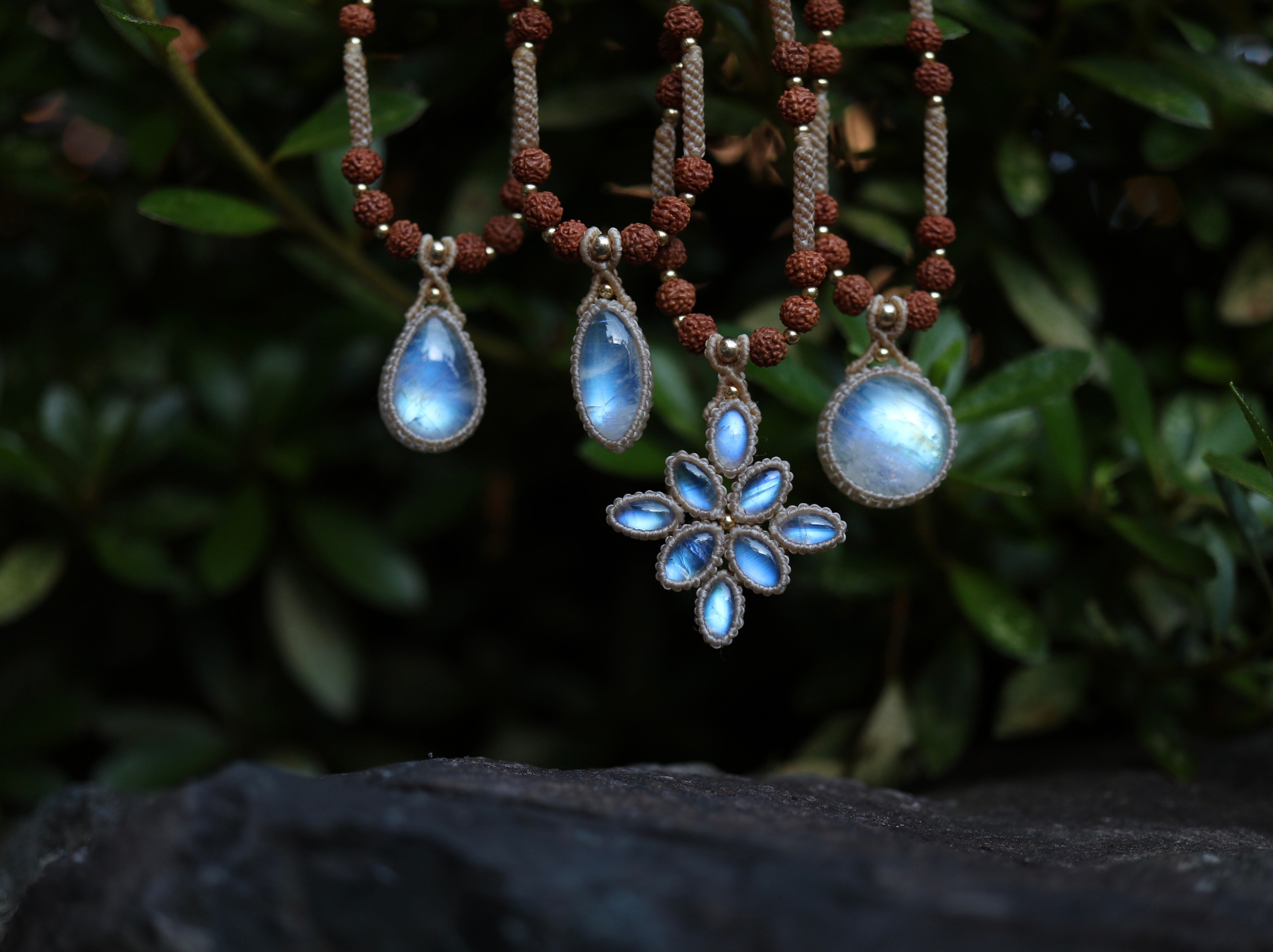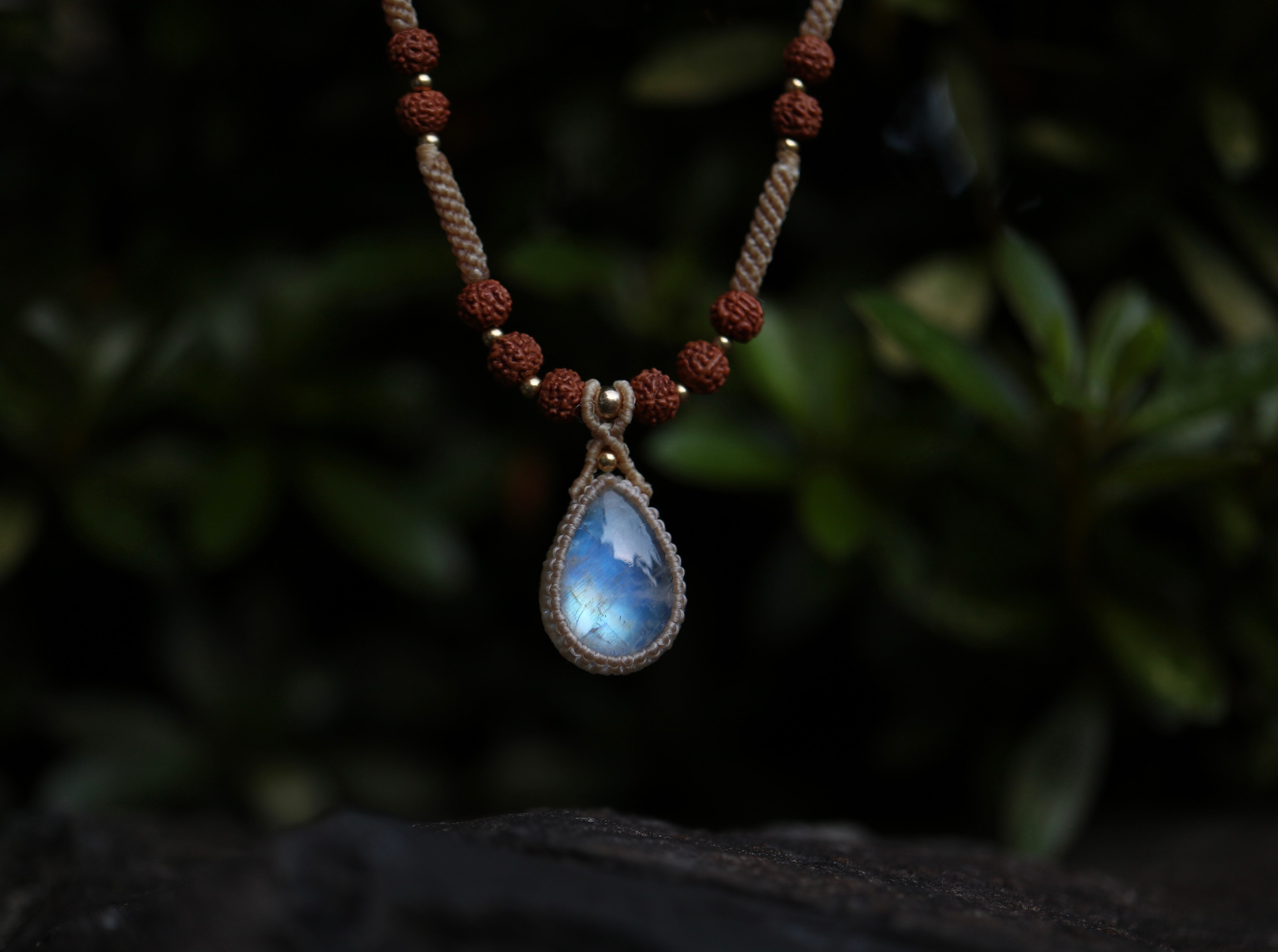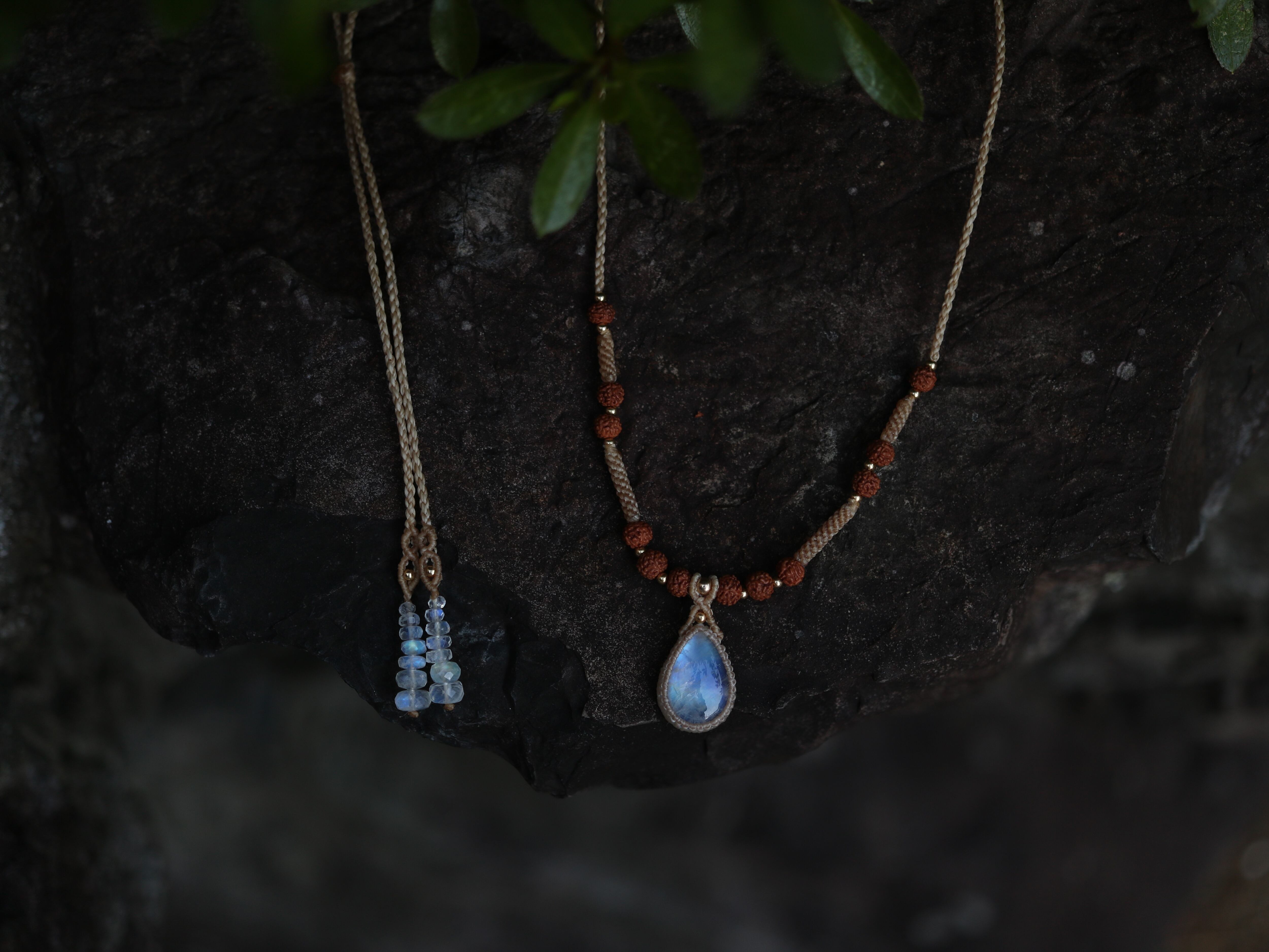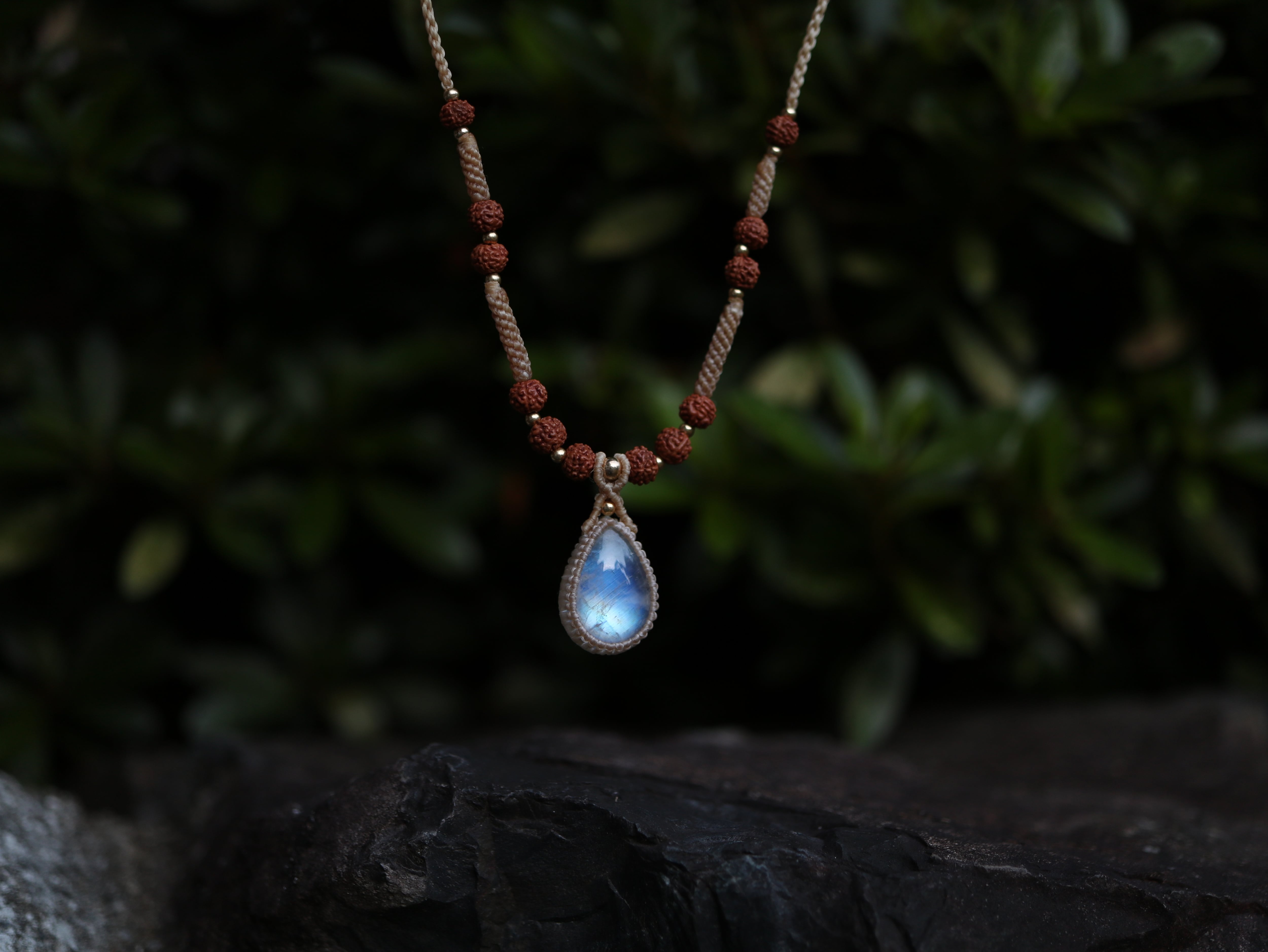 菩提樹の実 × ムーンストーン 雫 ネックレス