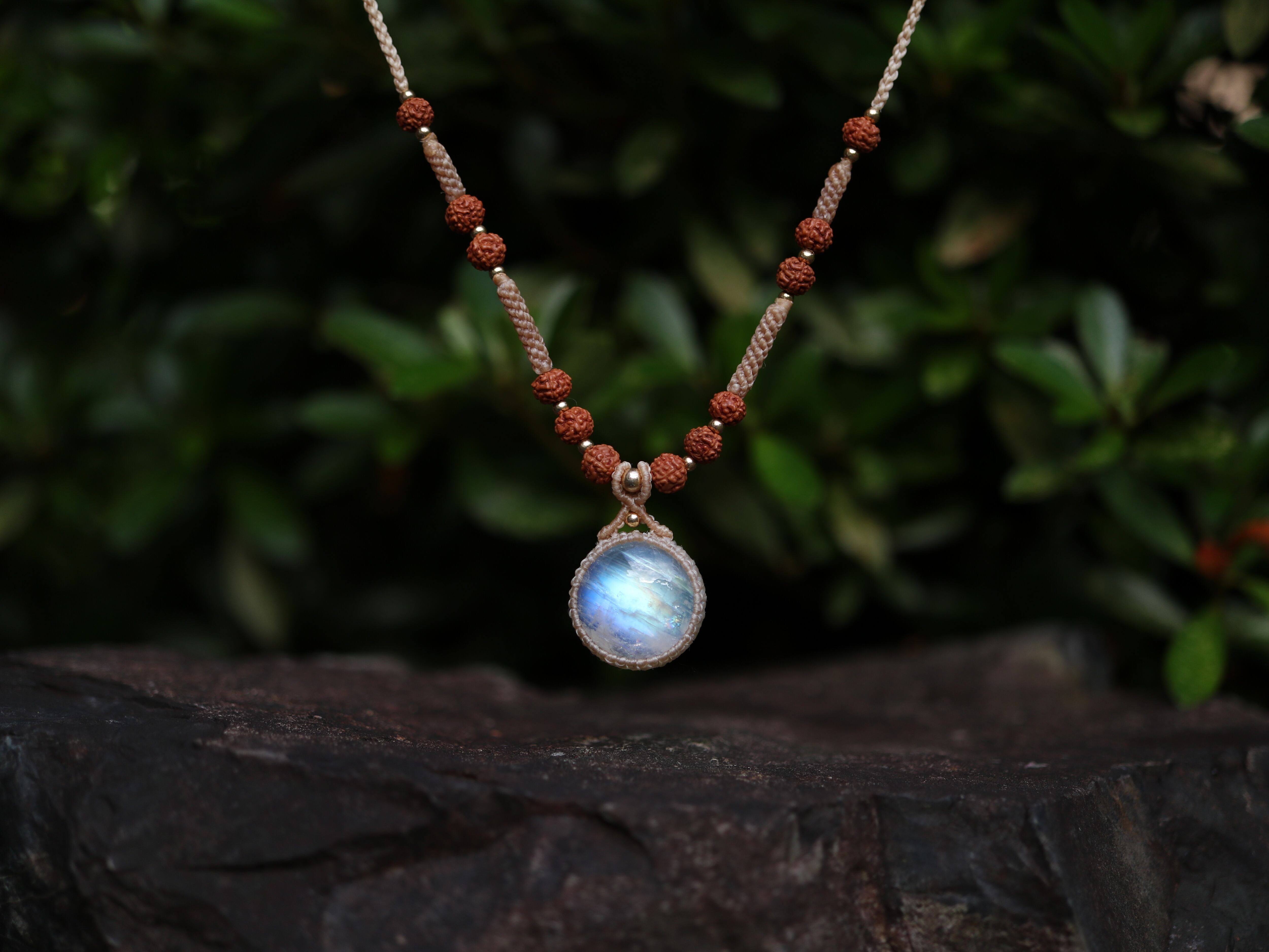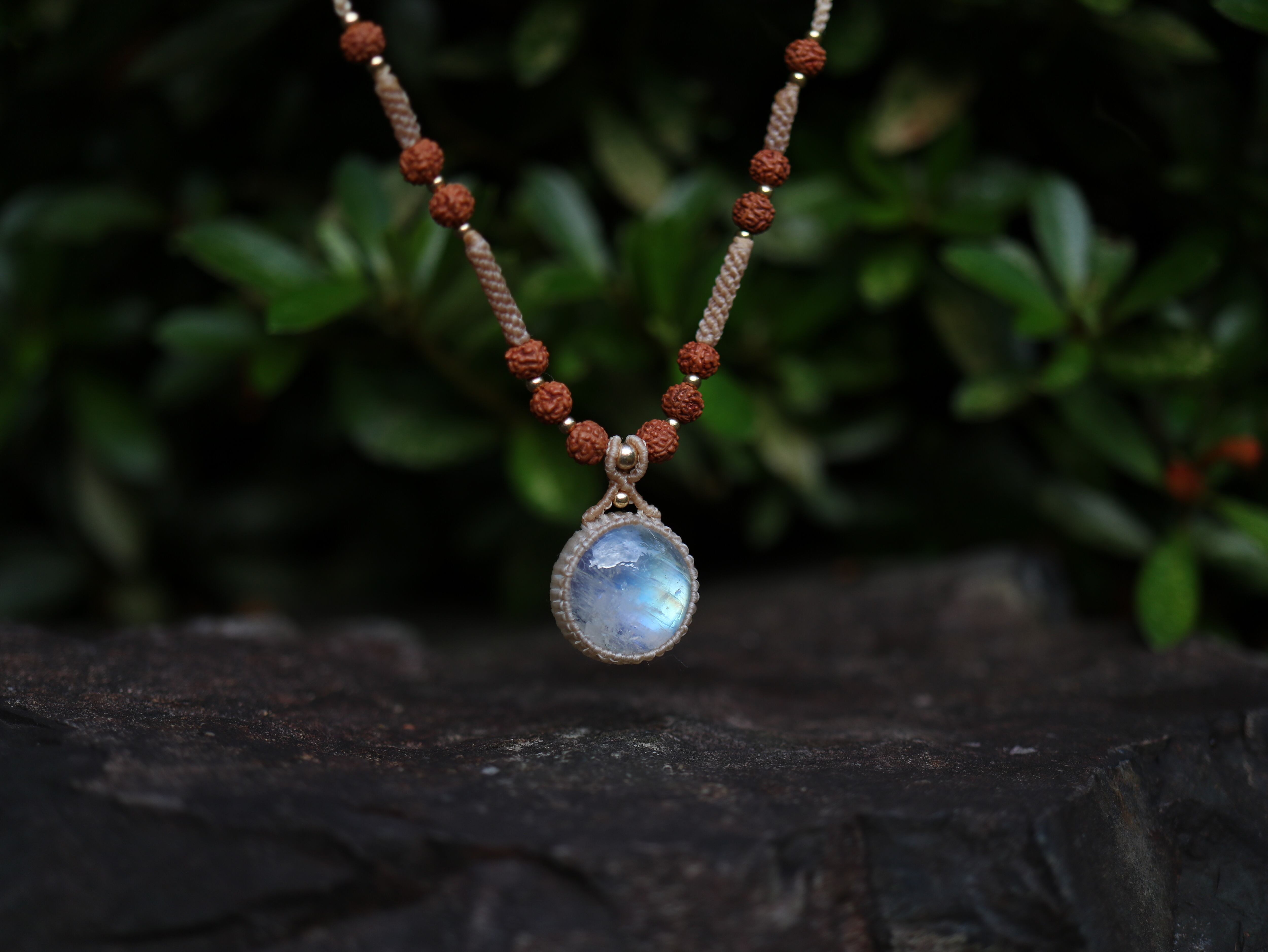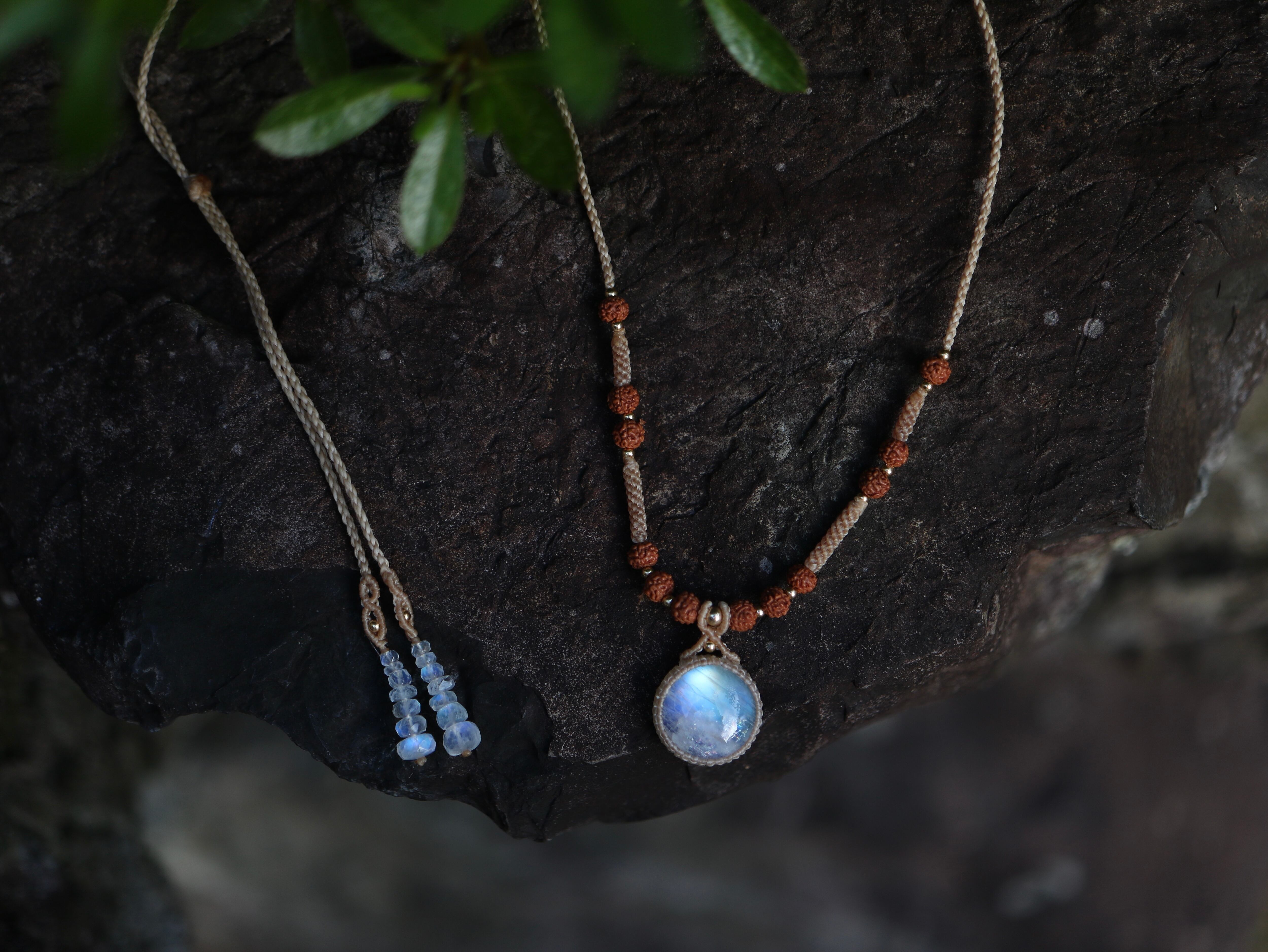 菩提樹の実 × ムーンストーン 丸 ネックレス
