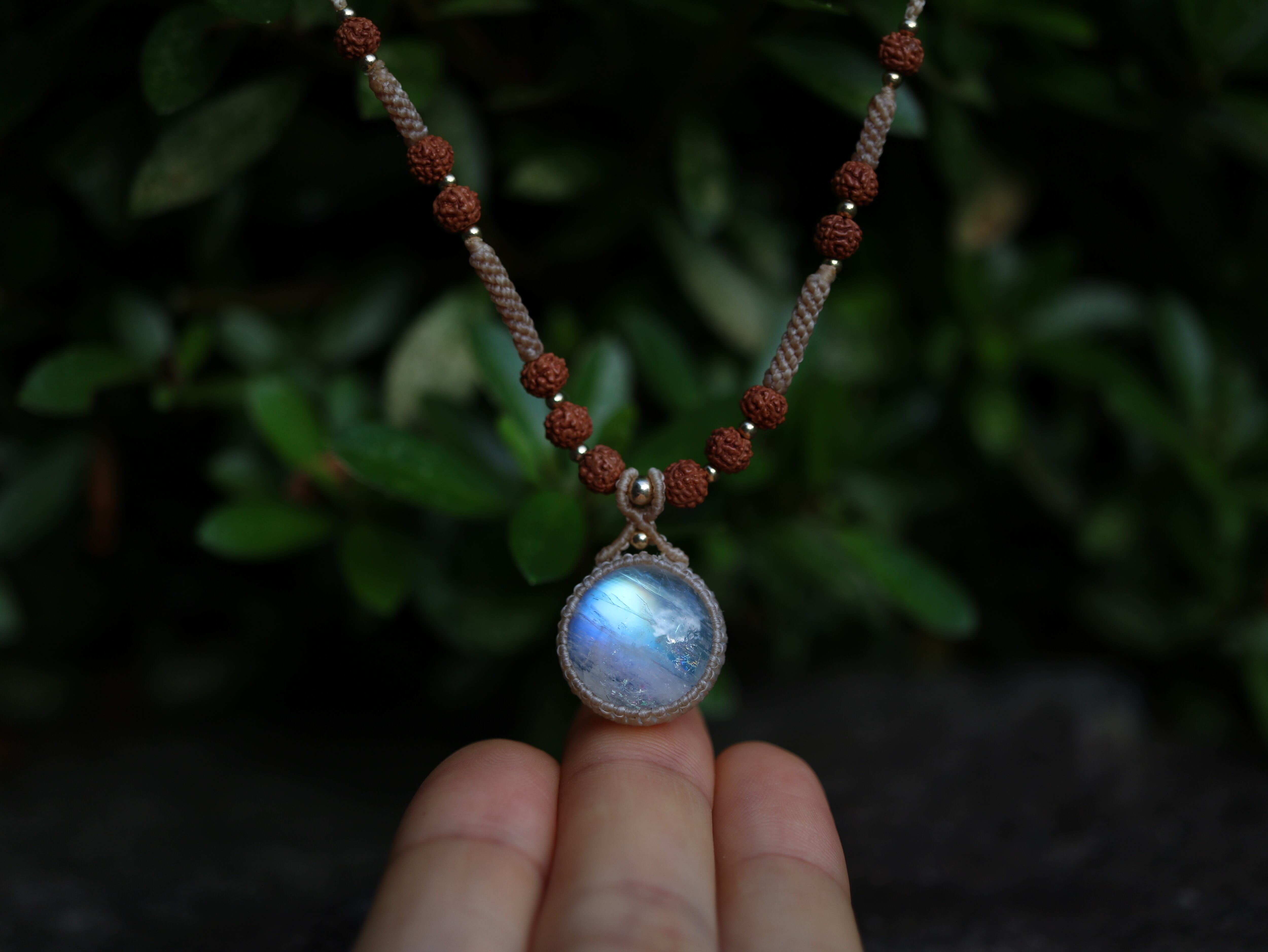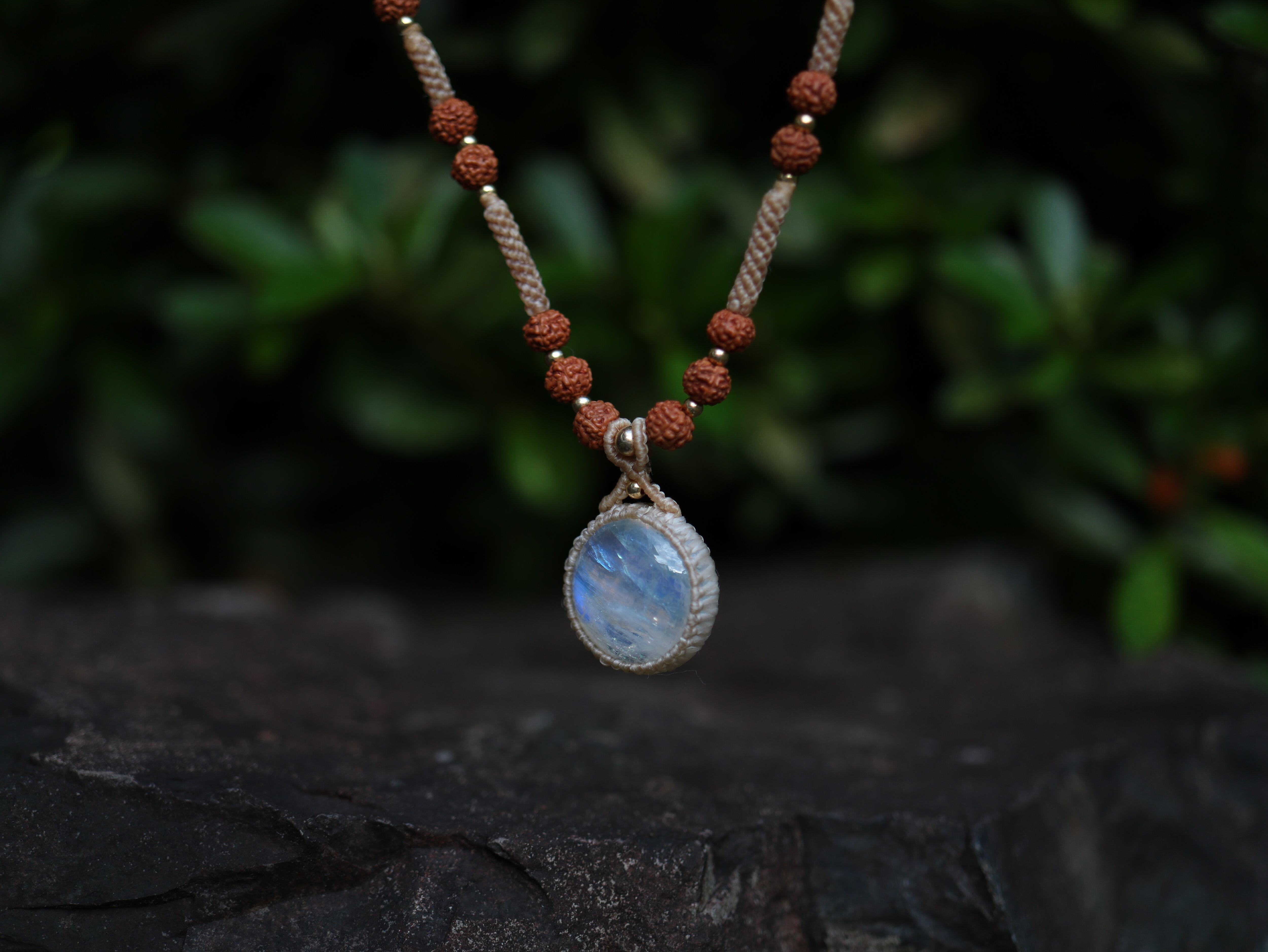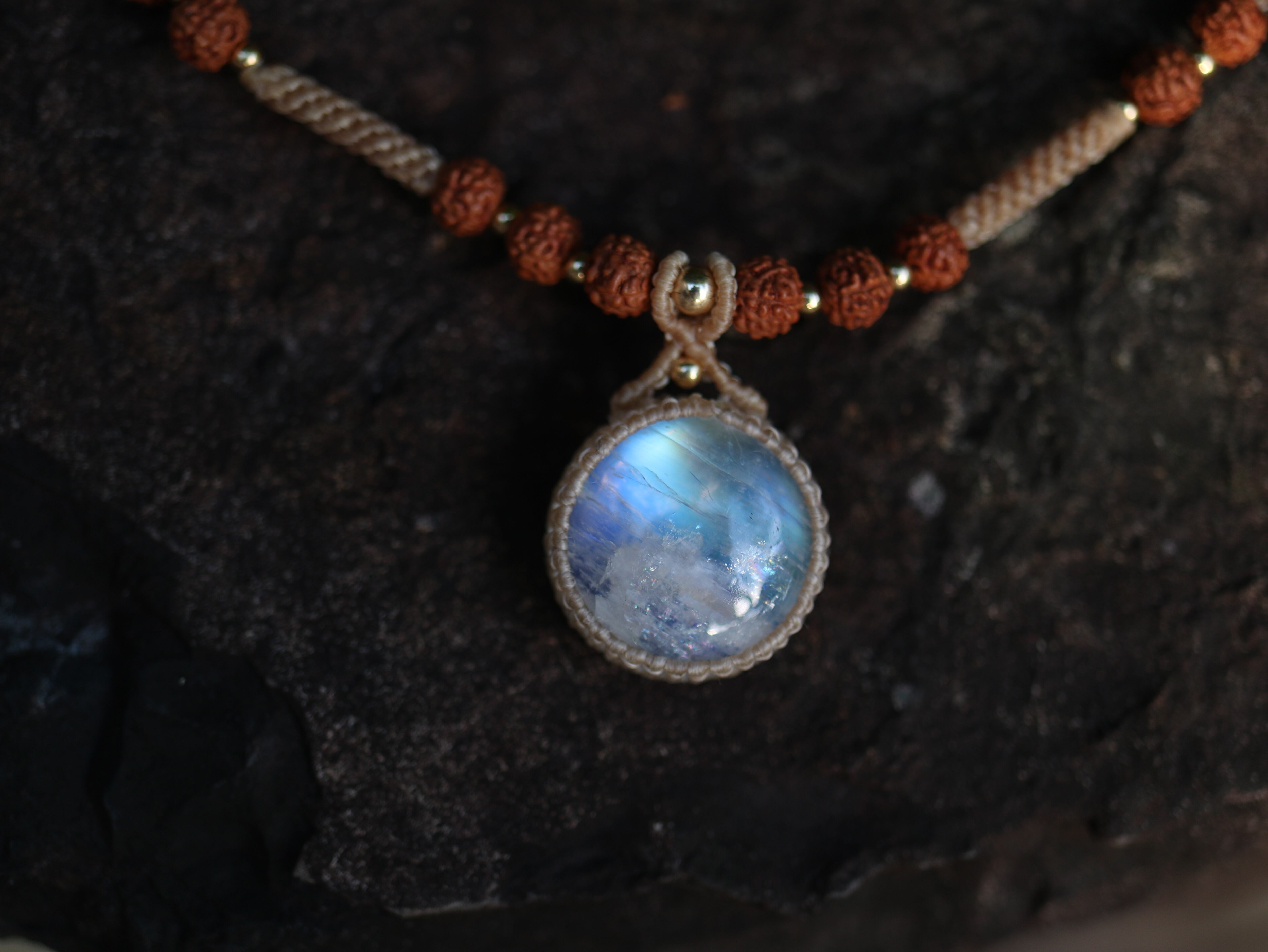 菩提樹の実 × ムーンストーン 丸 ネックレス
