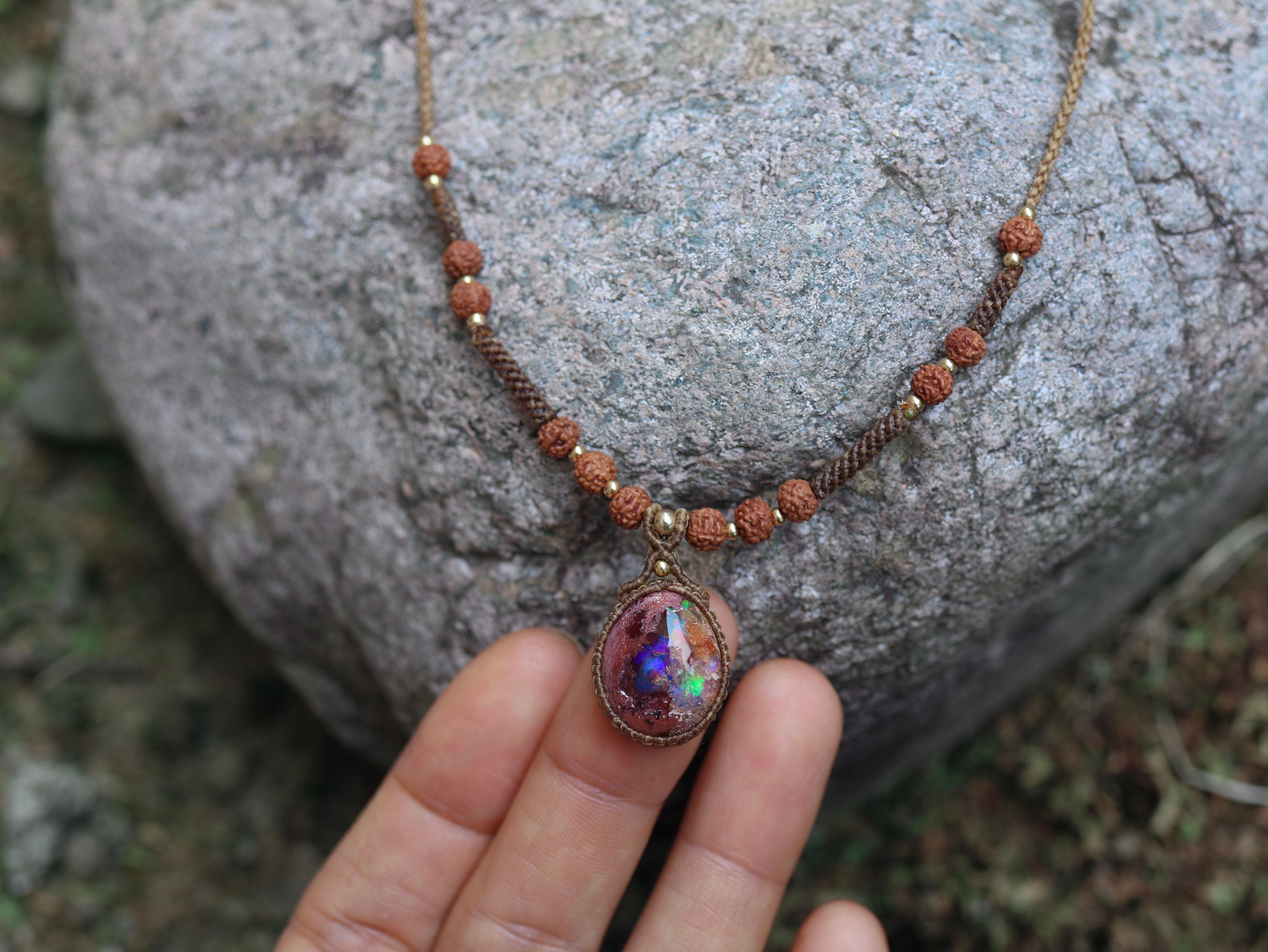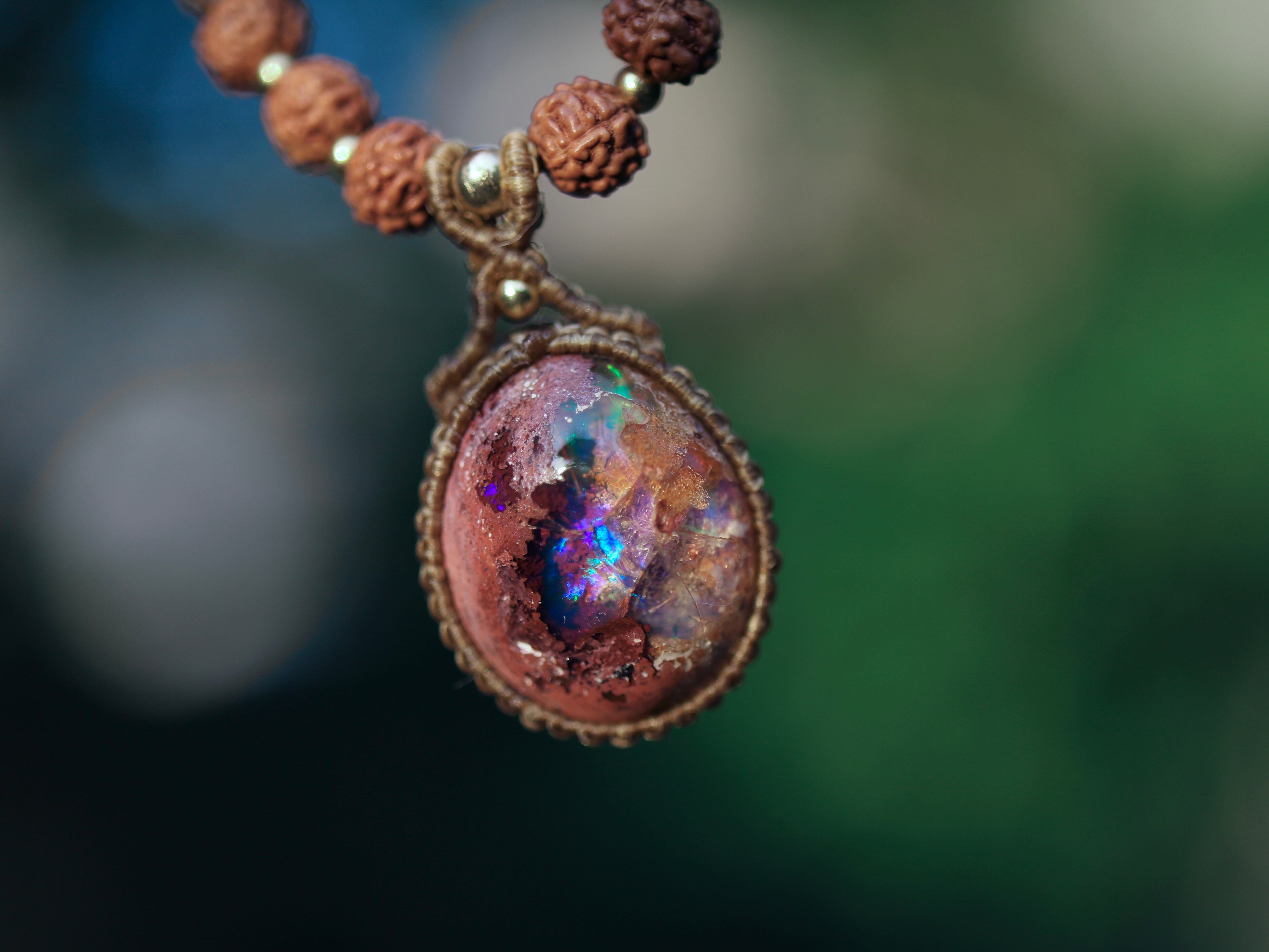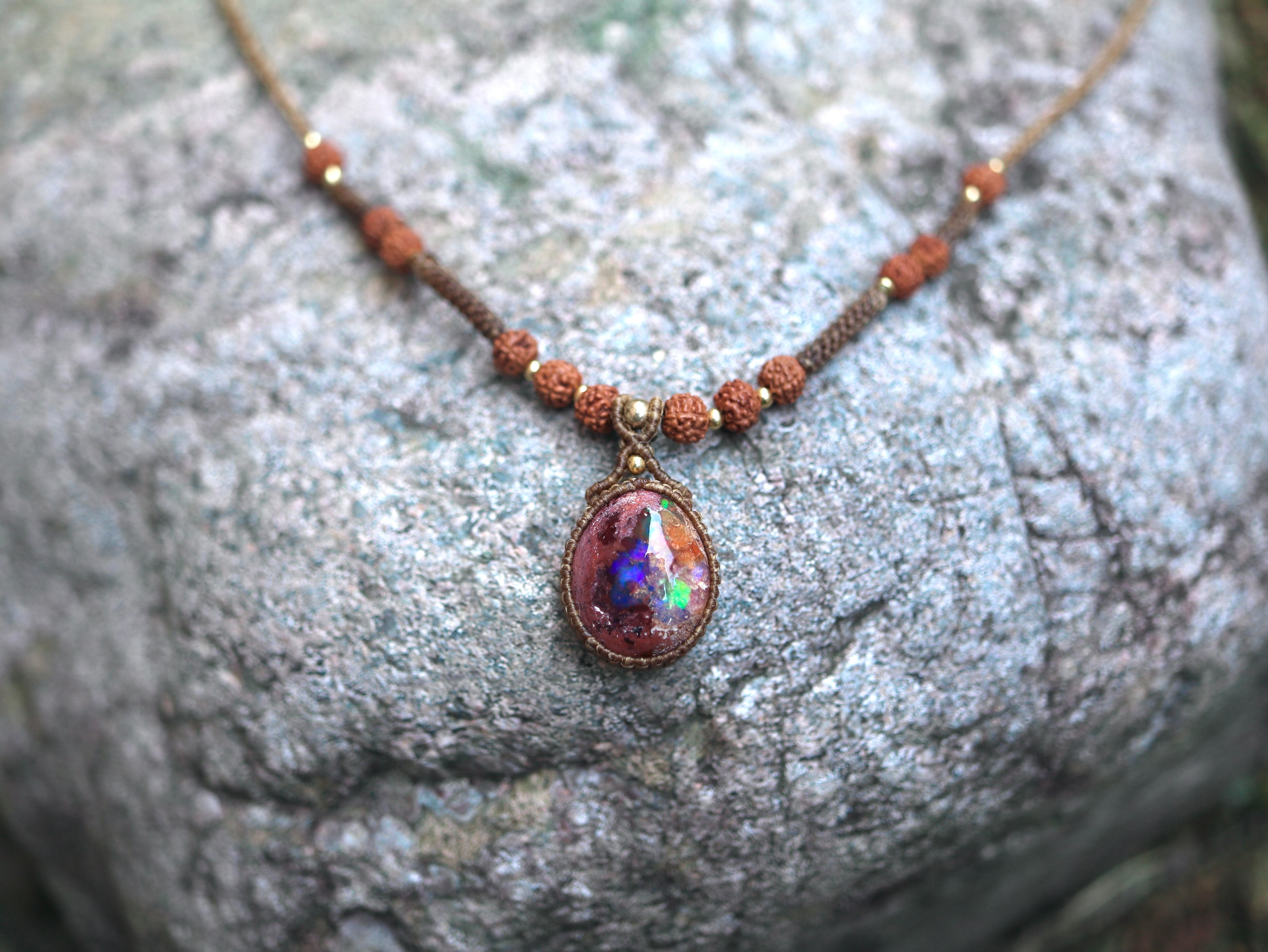 菩提樹の実 × カンテラオパール 虹 brown 2 ネックレス