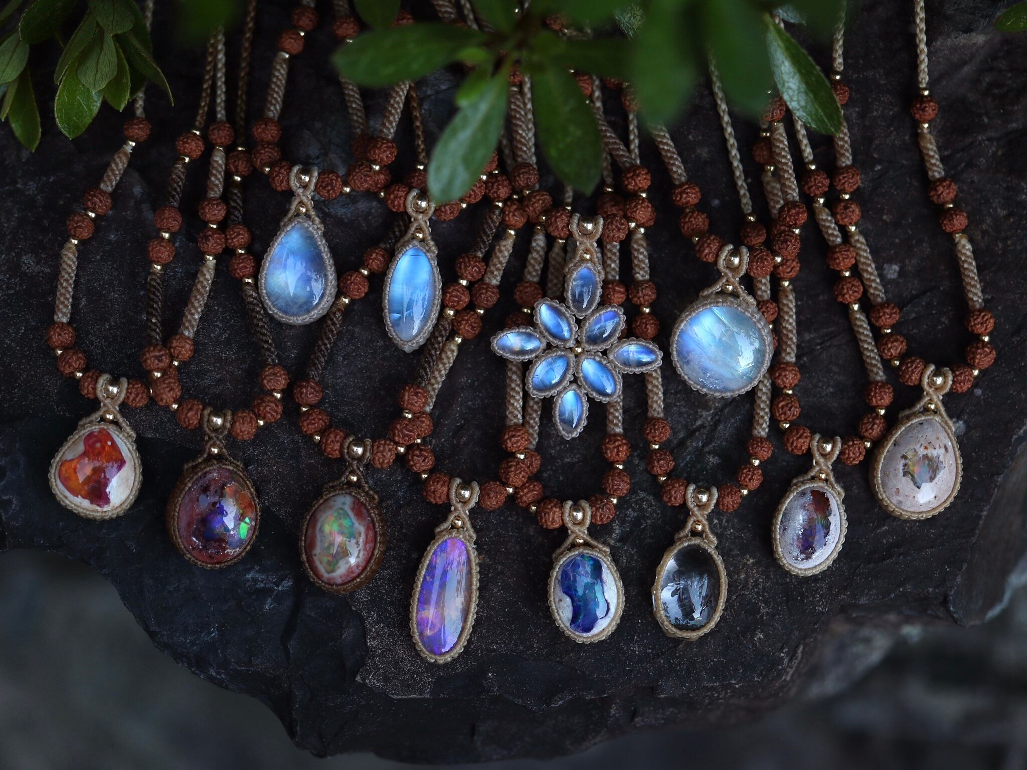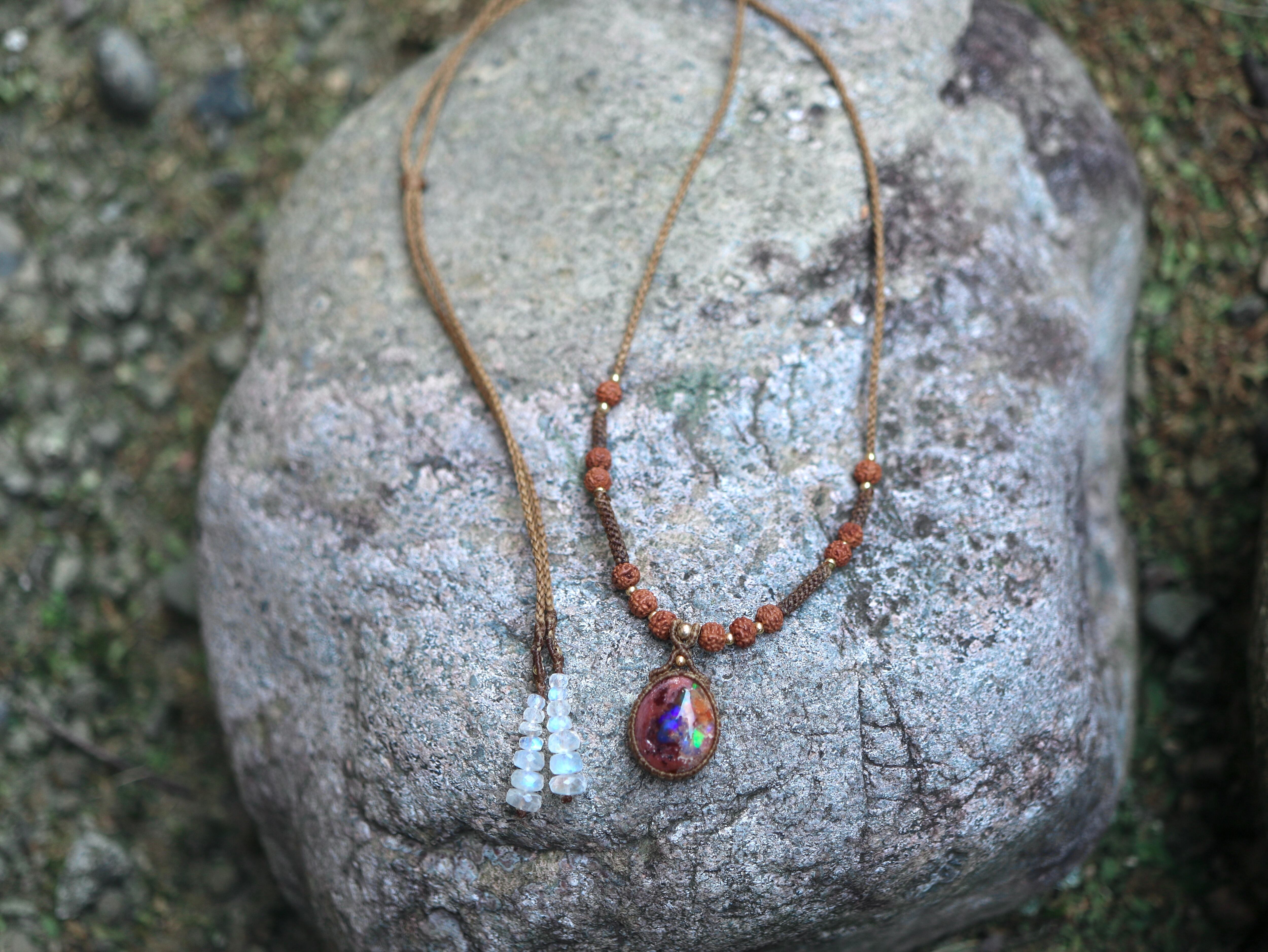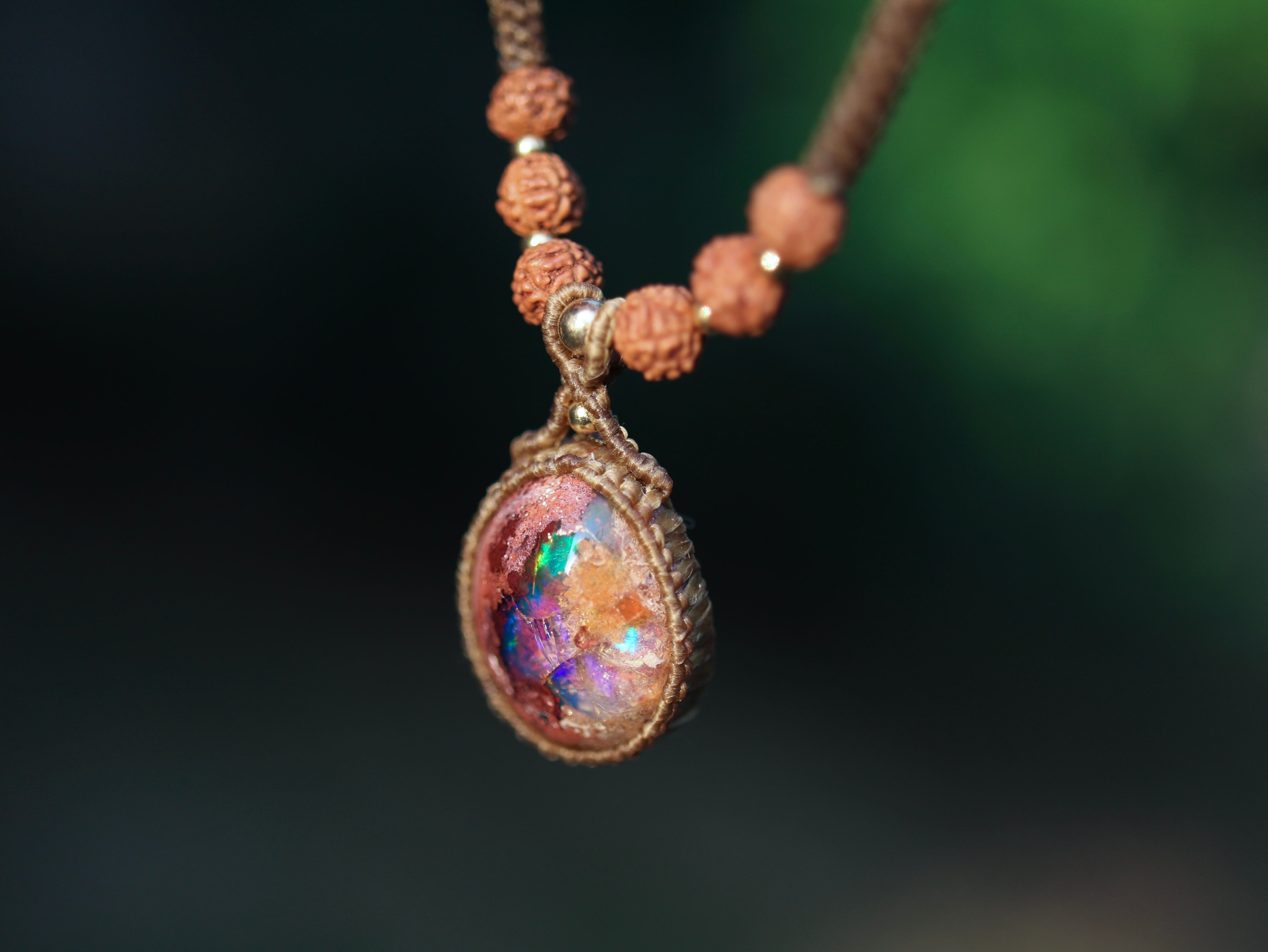 菩提樹の実 × カンテラオパール 虹 brown 2 ネックレス