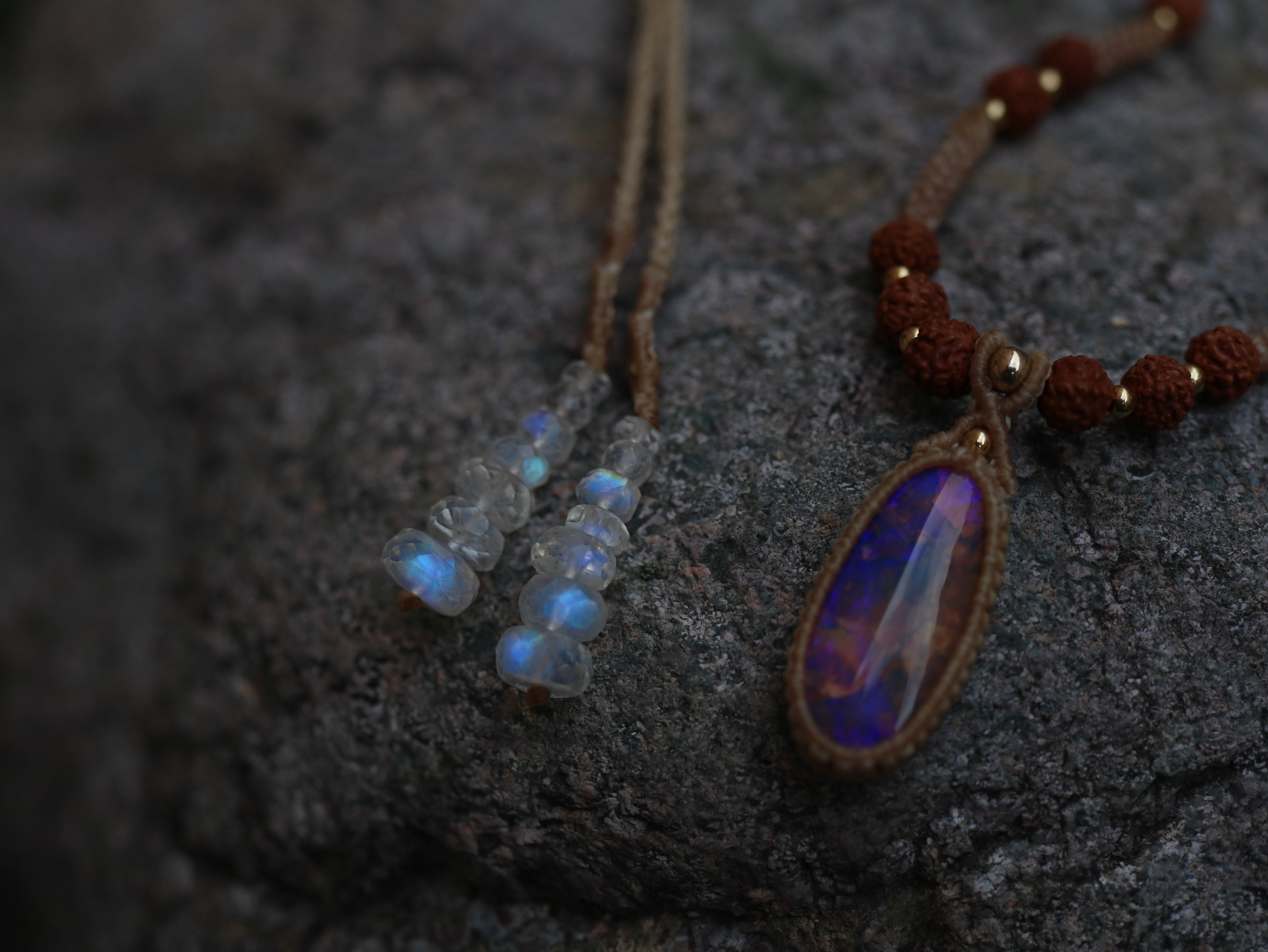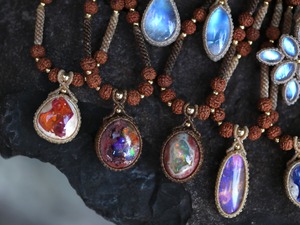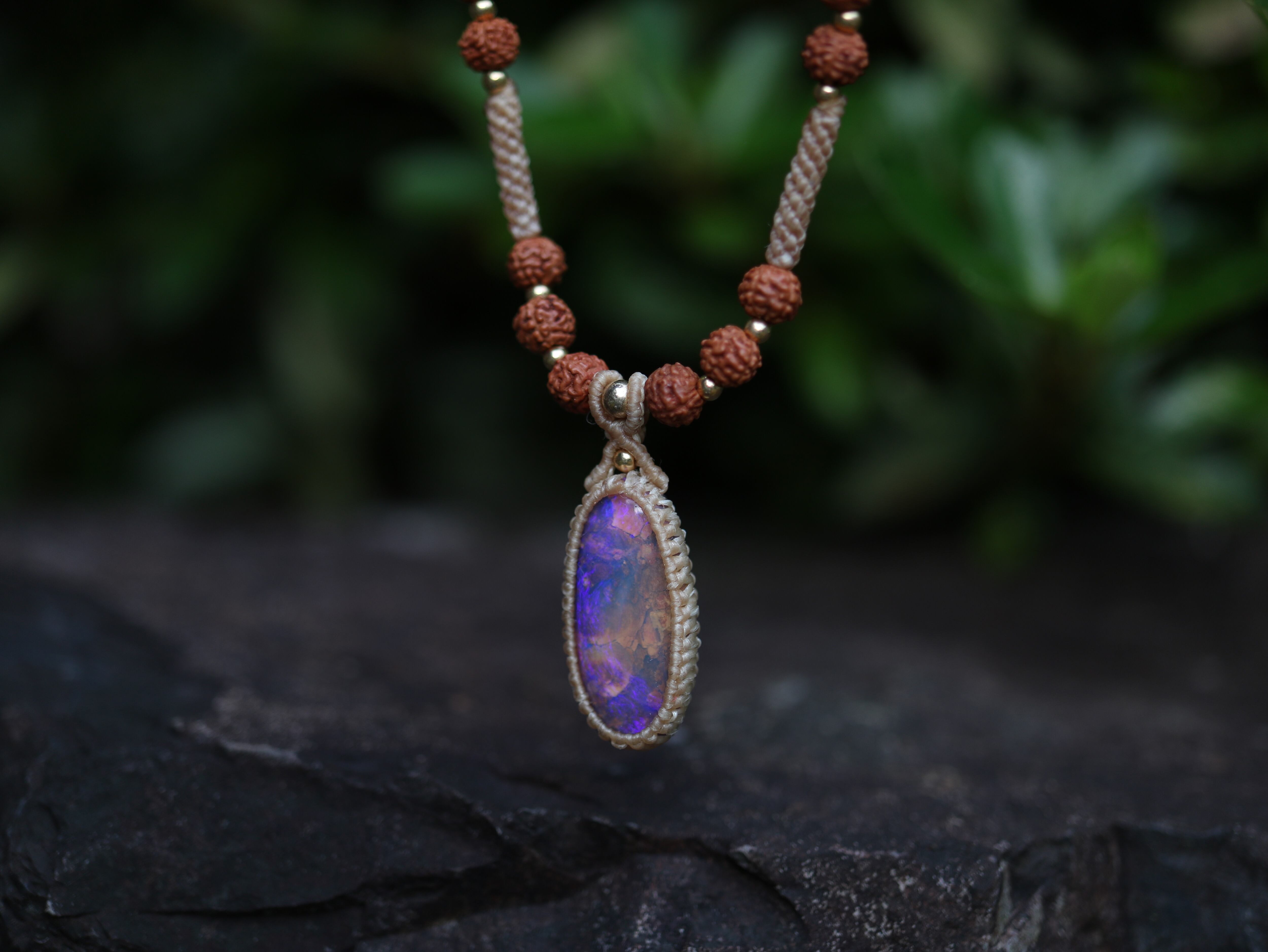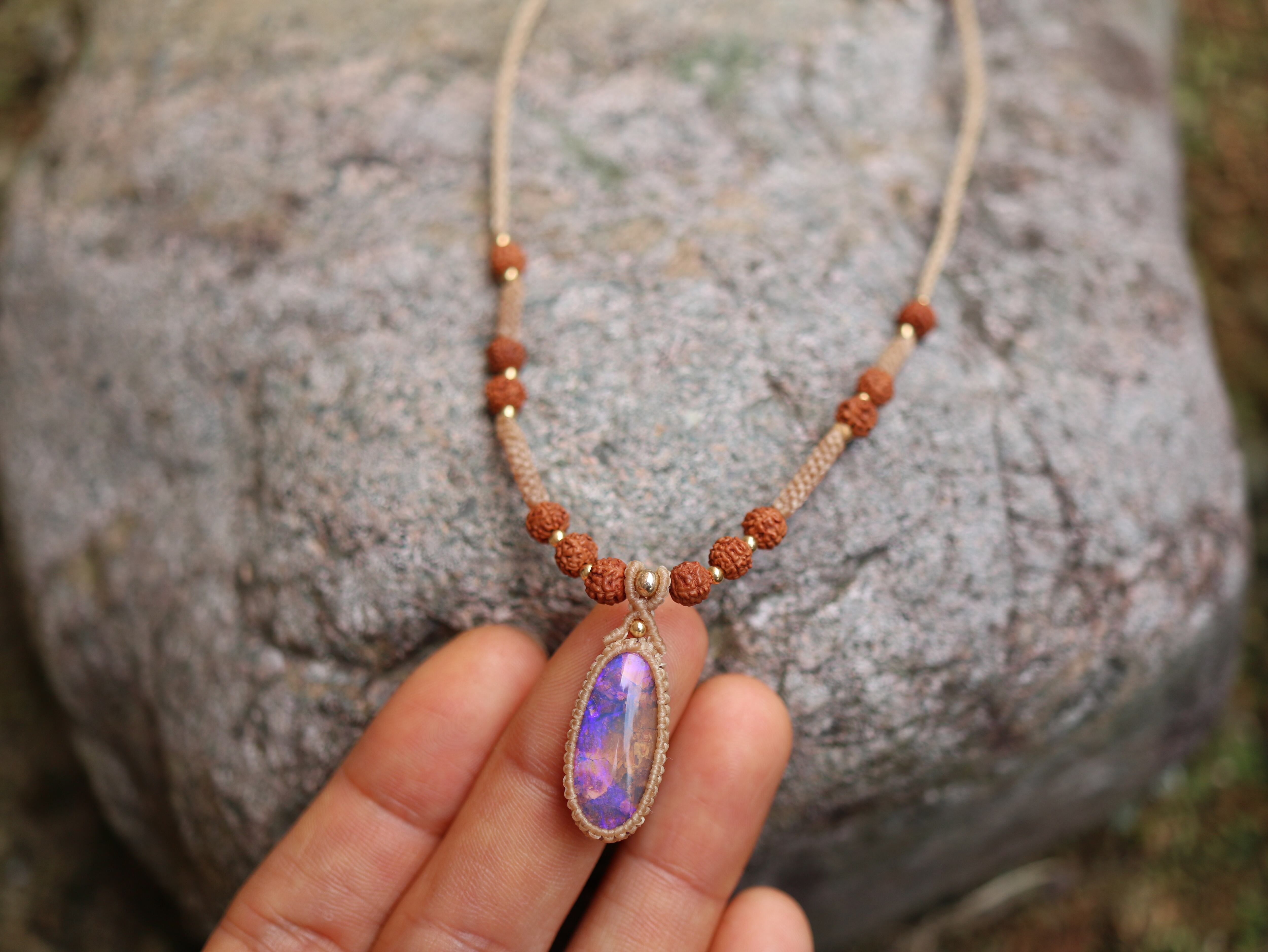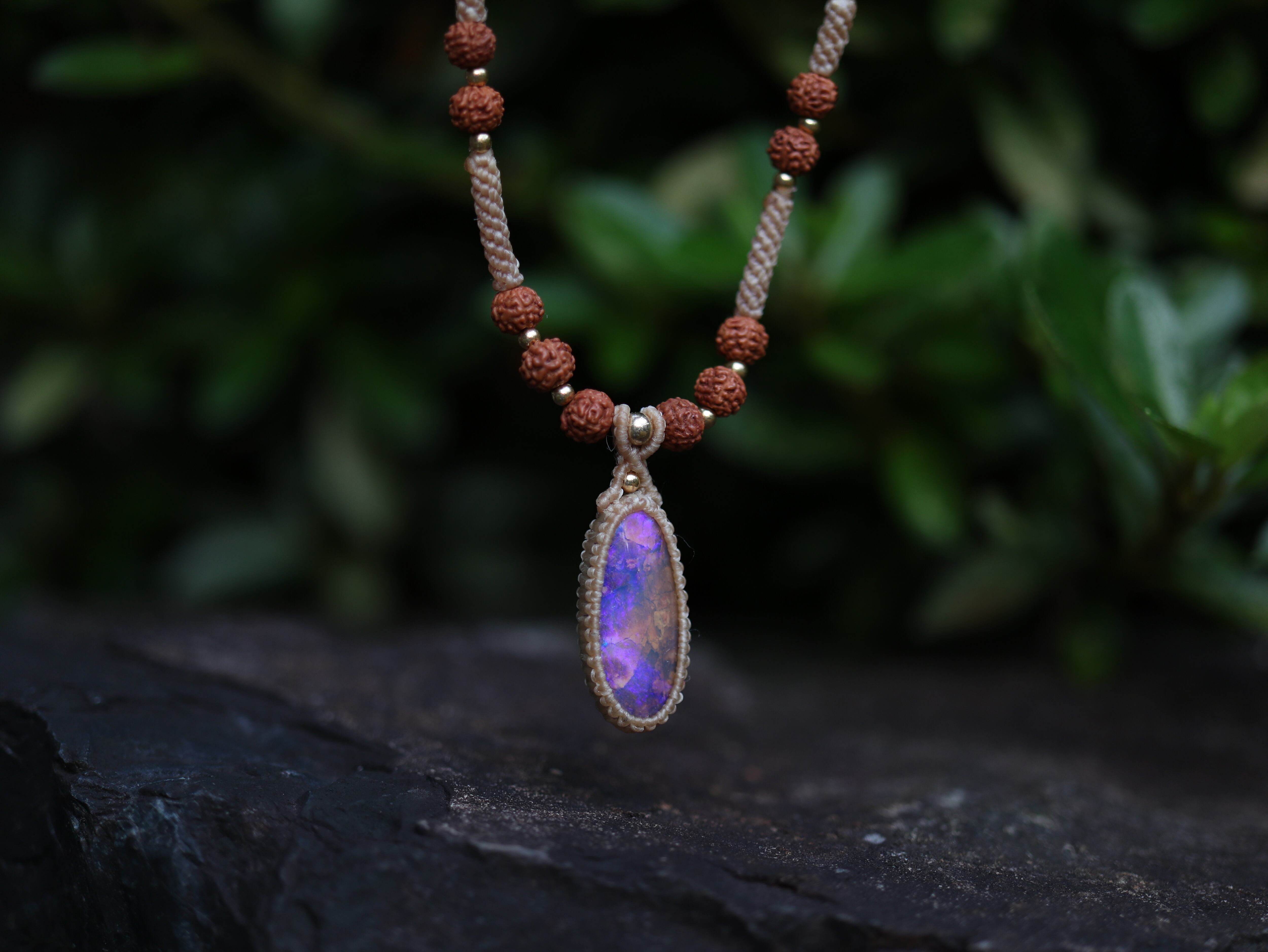 菩提樹の実 × オーストラリア産オパール ネックレス