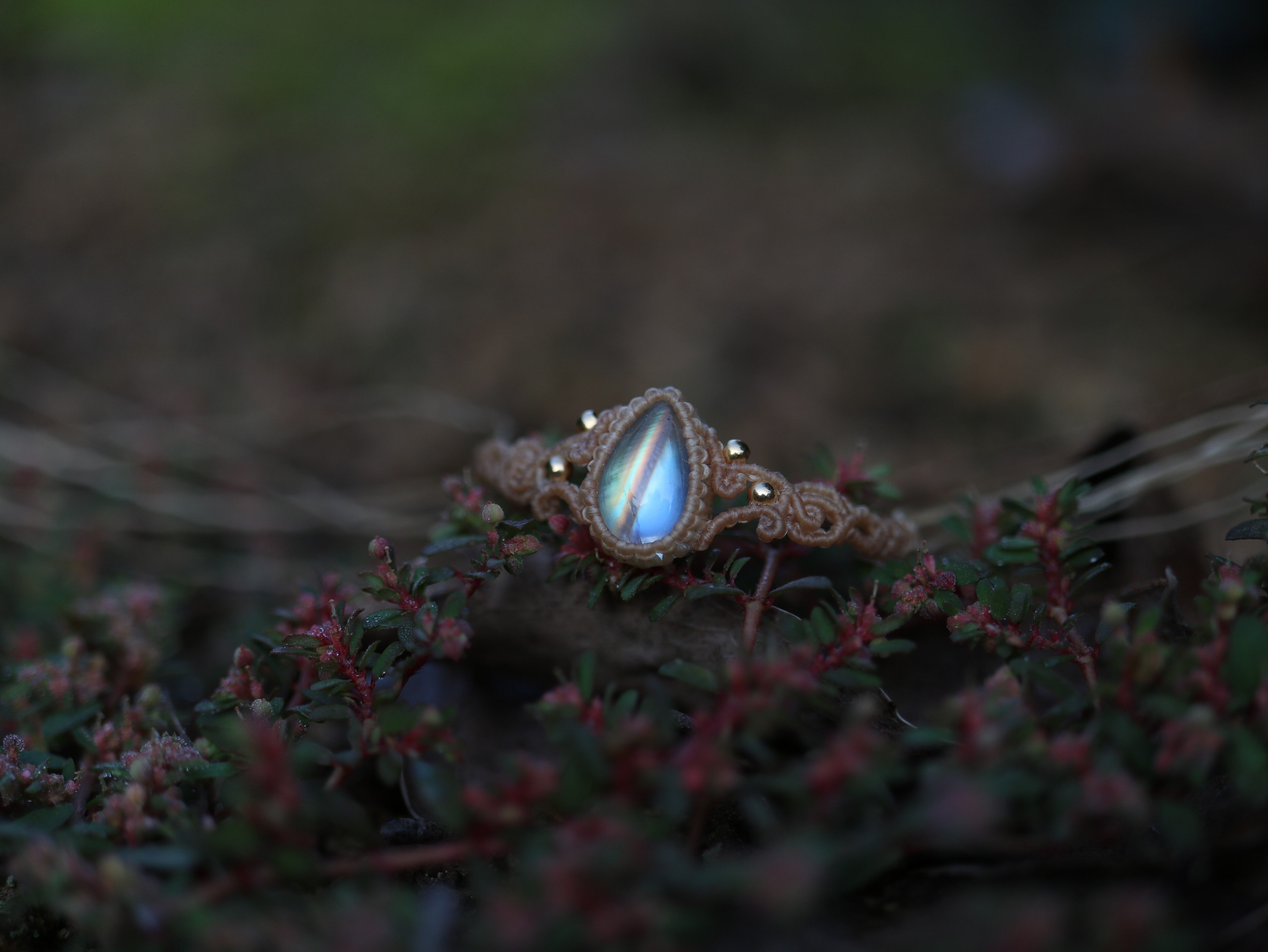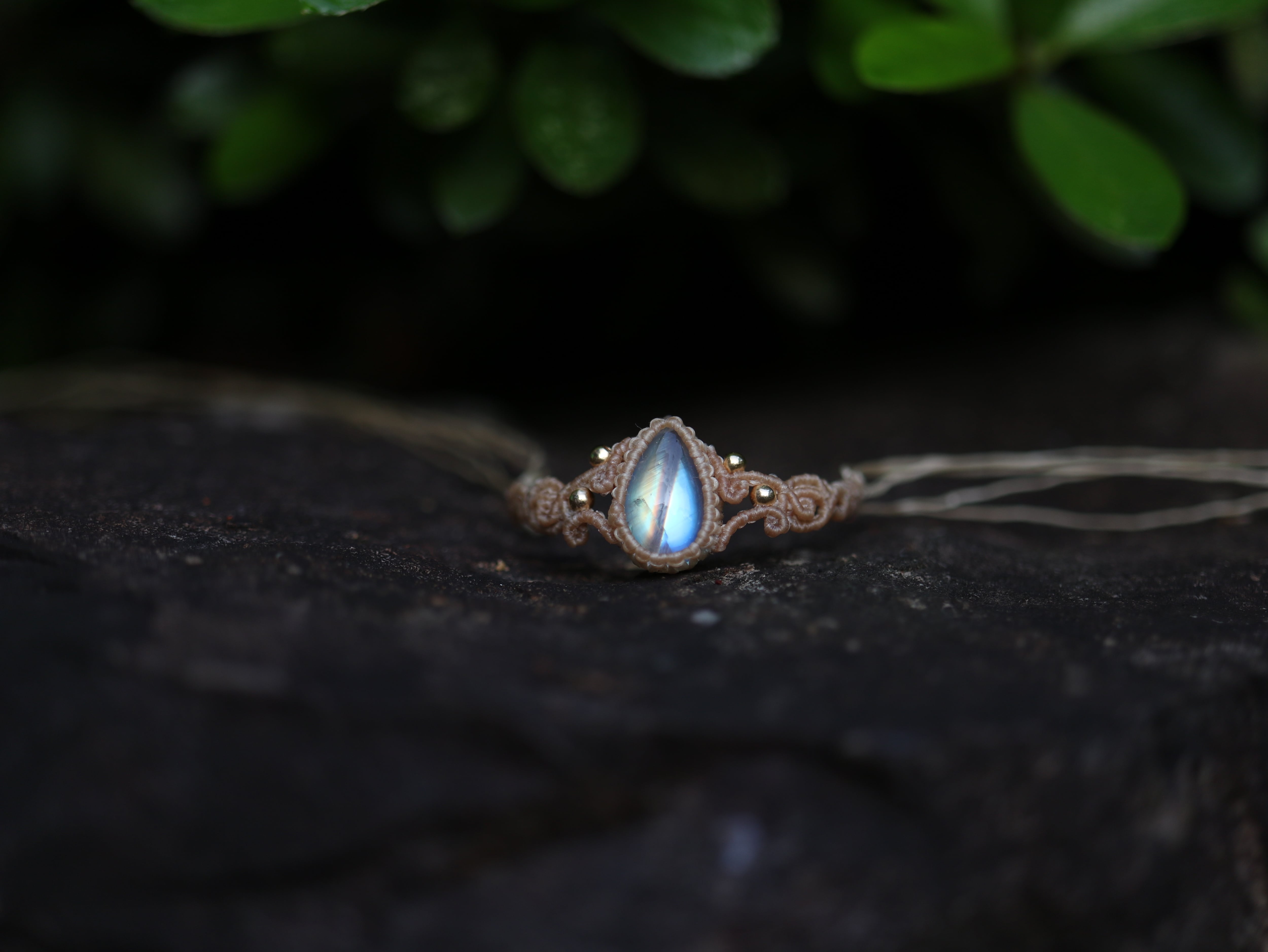 ※ 天然石を包むコードを始めトップ部分に使用したマクラメ編みコードは