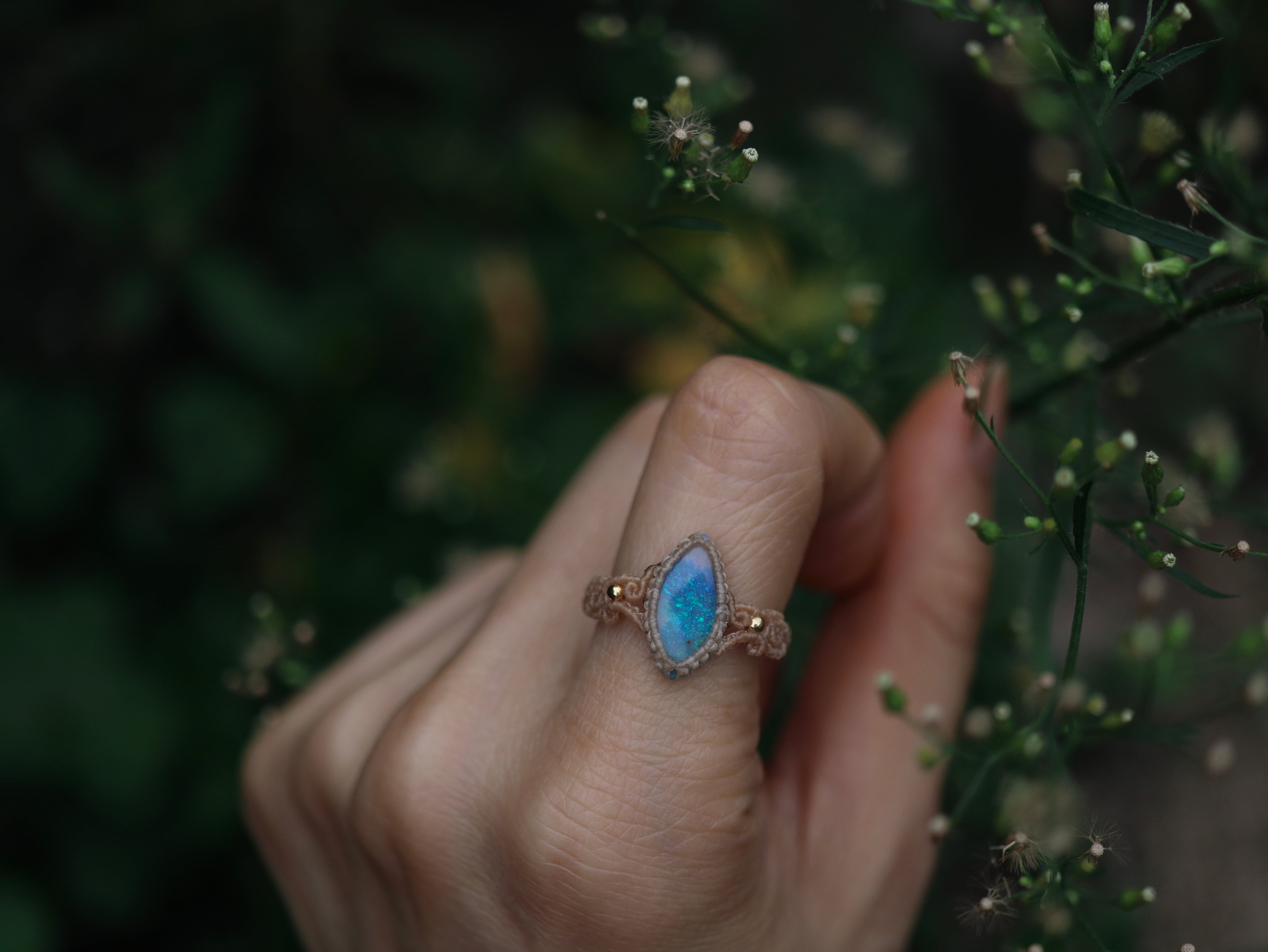 オーストラリア産オパール ブルー マクラメリング