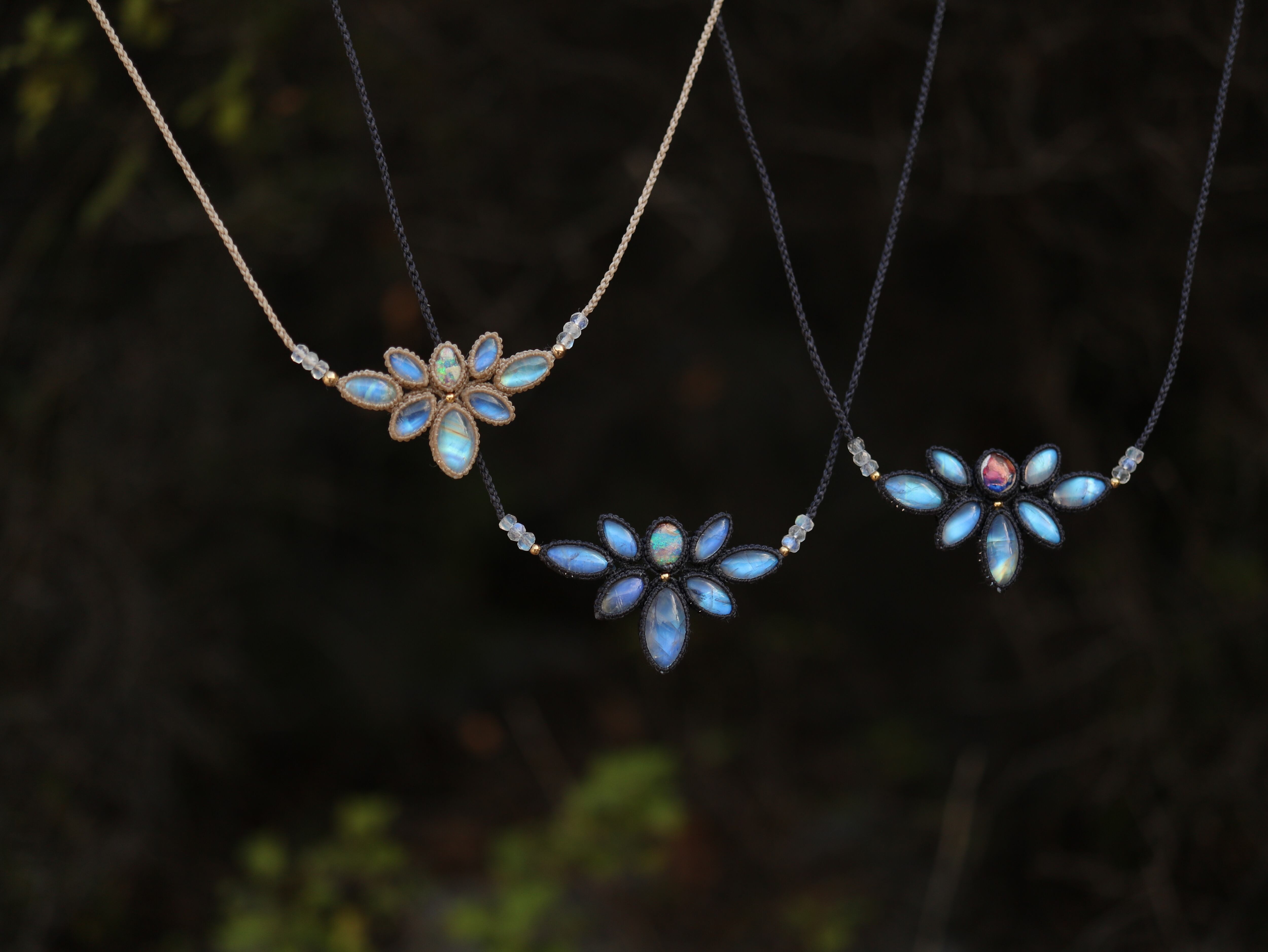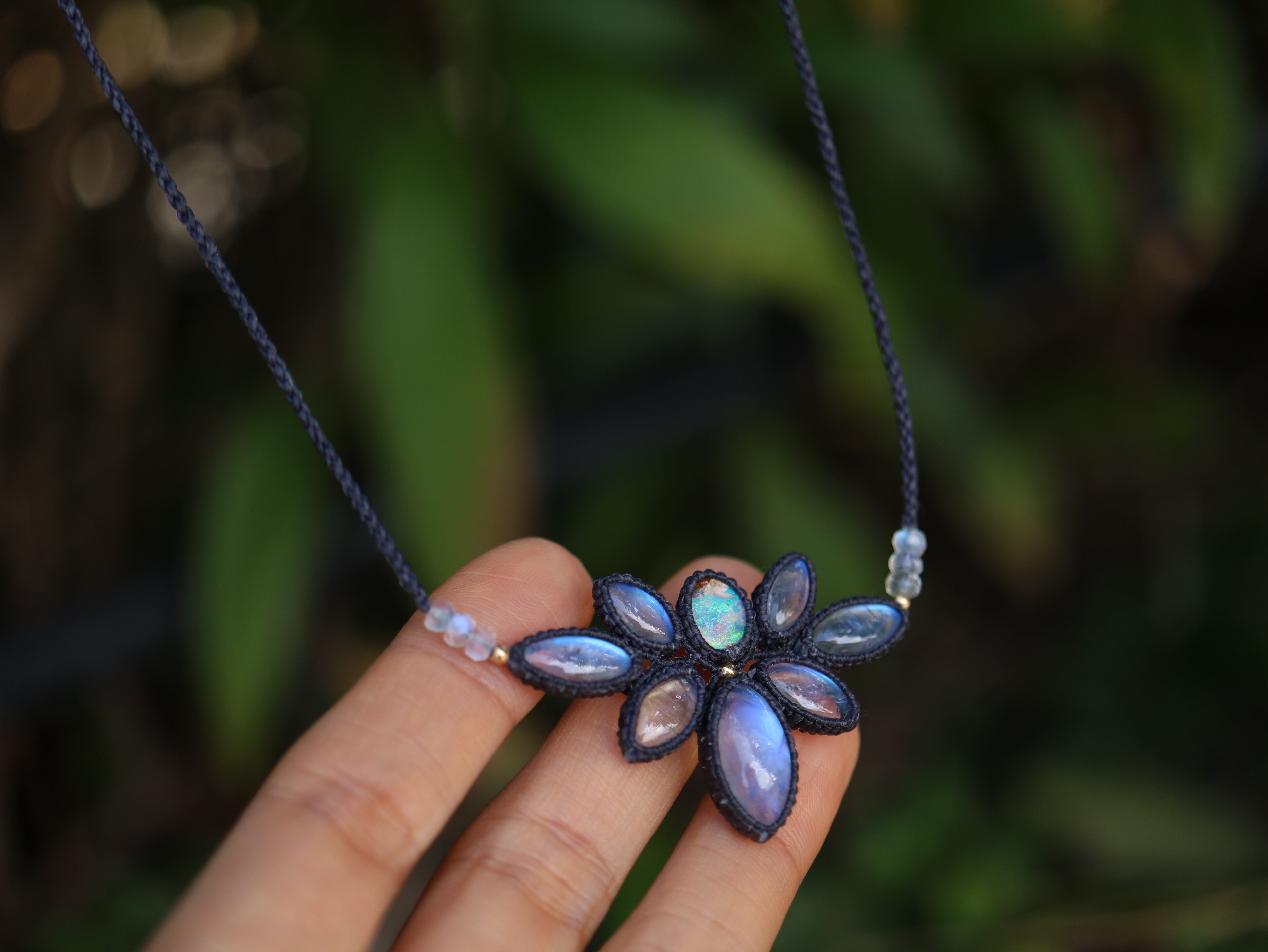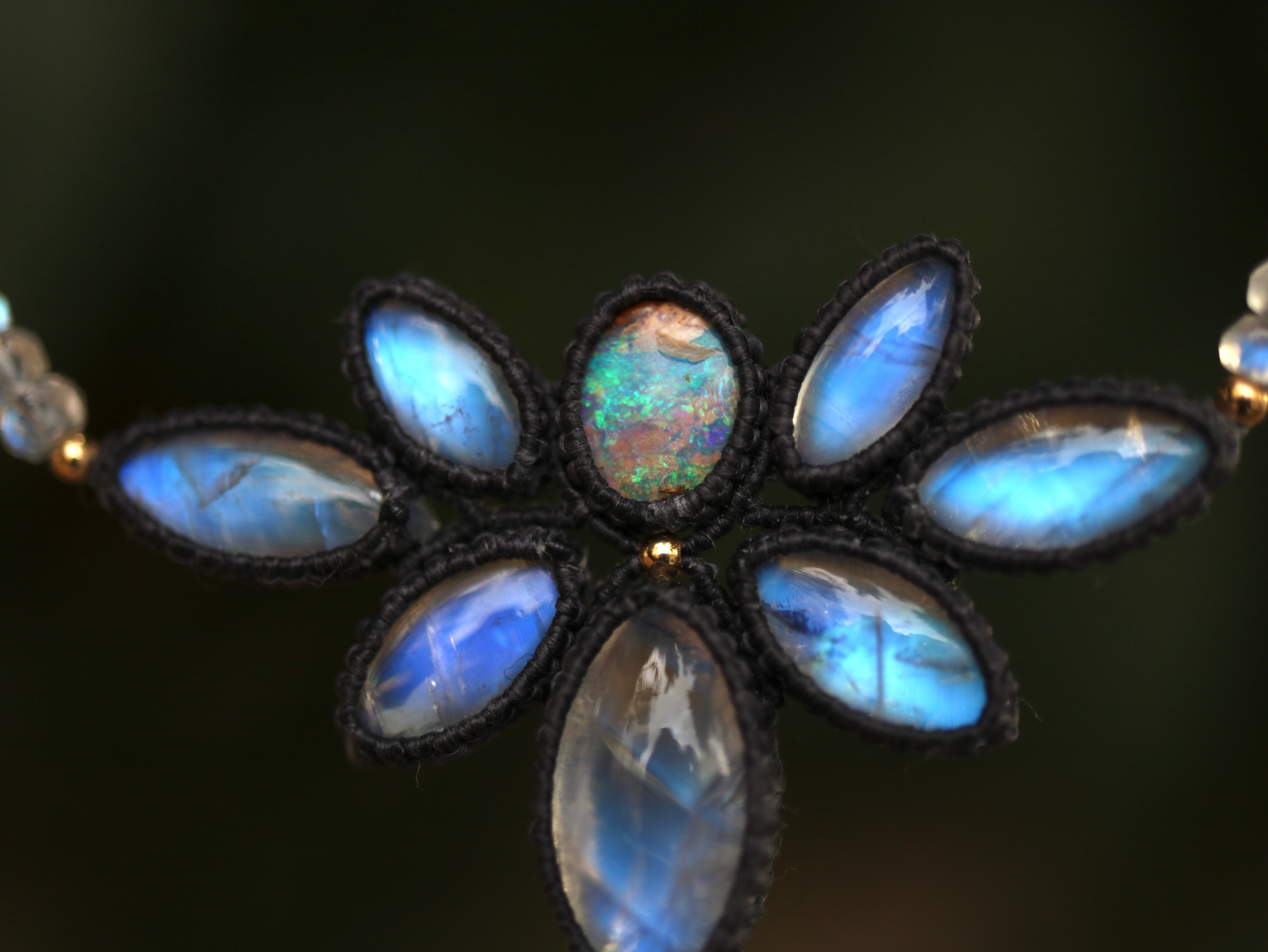 オーストラリア産ウッドオパール × レインボームーンストーン flower