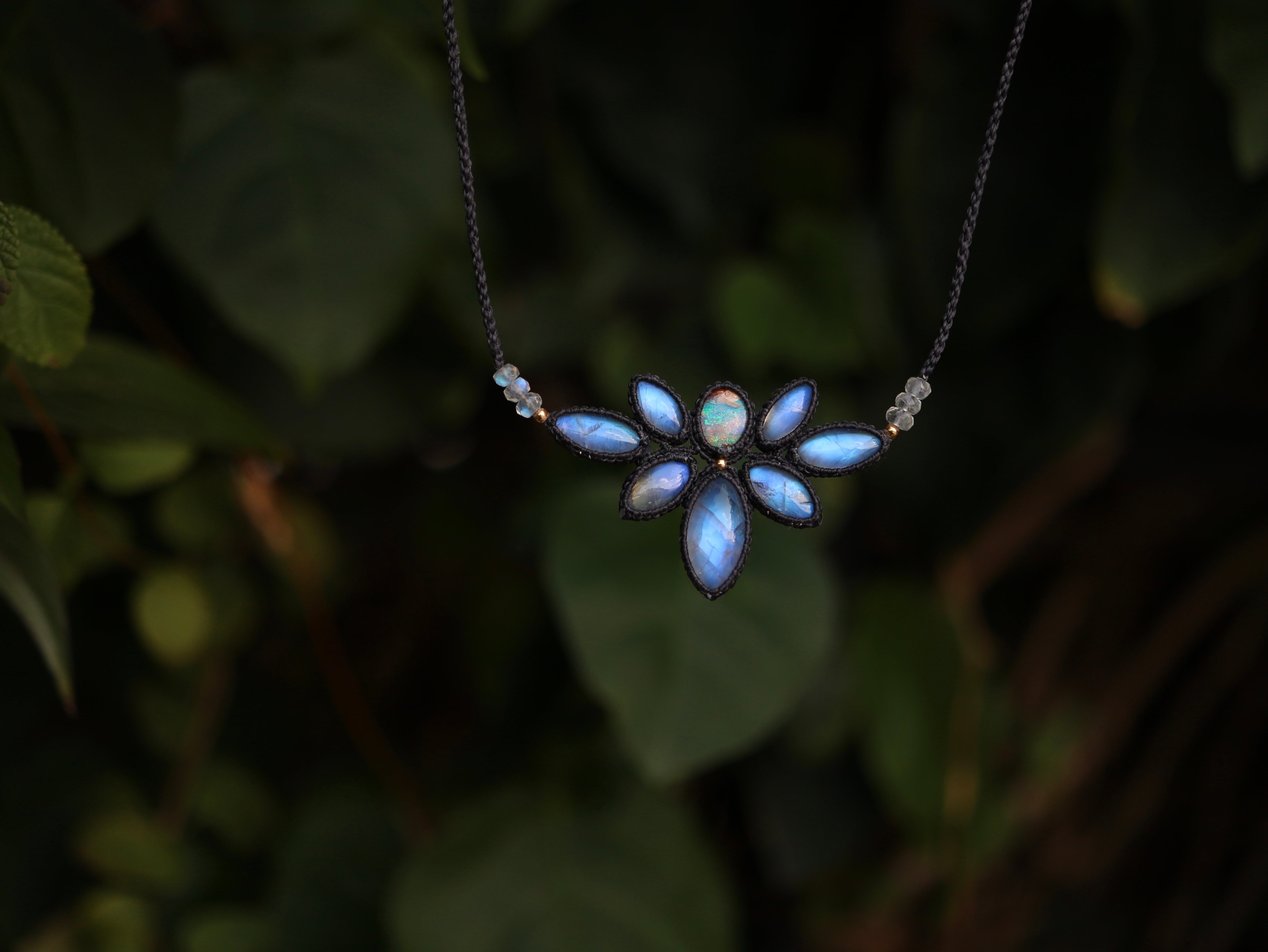 レインボームーンストーンを花びらに見立て仕上げて行きました