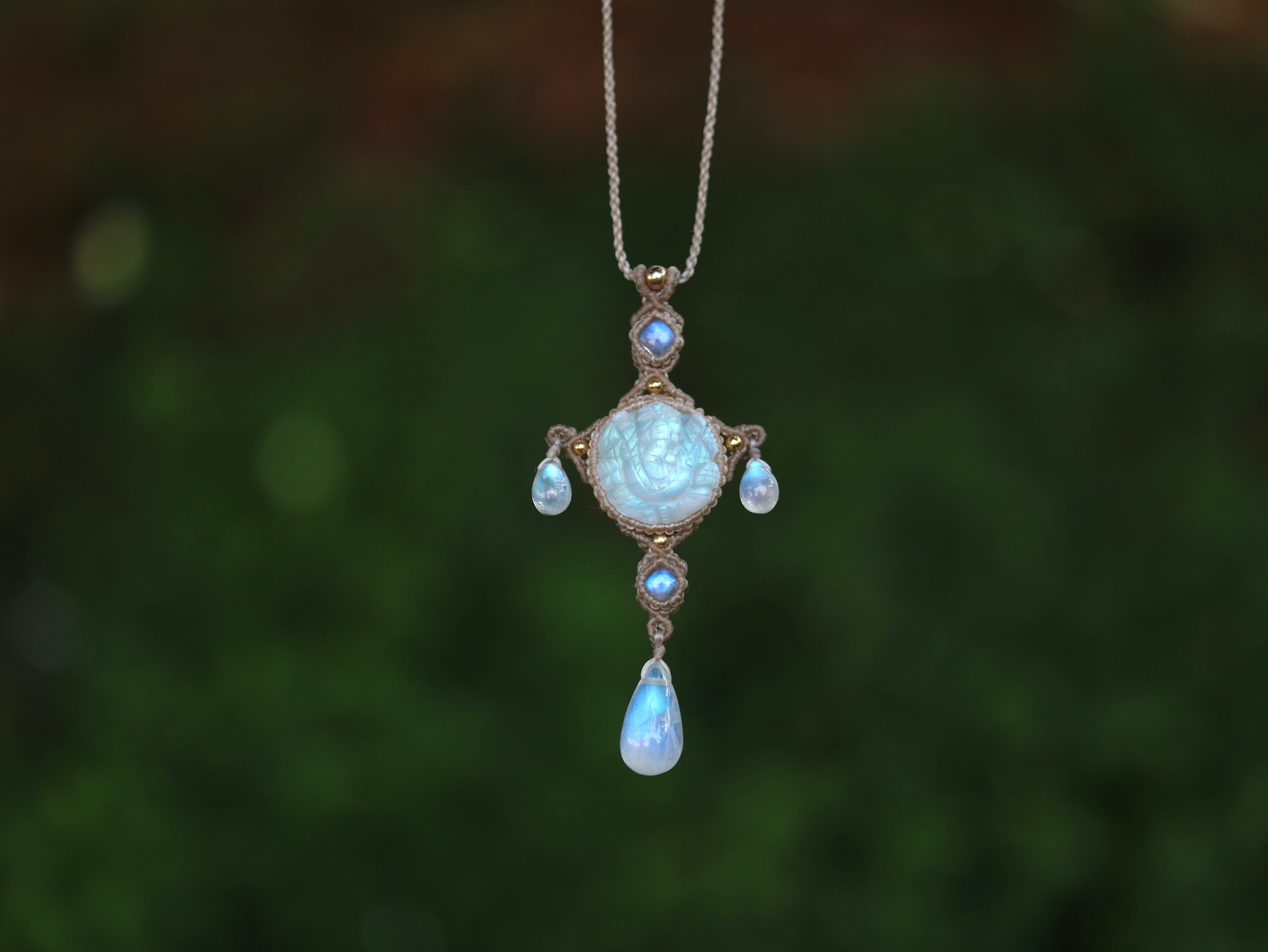 レインボームーンストーン Ganesha ペンダント 灯