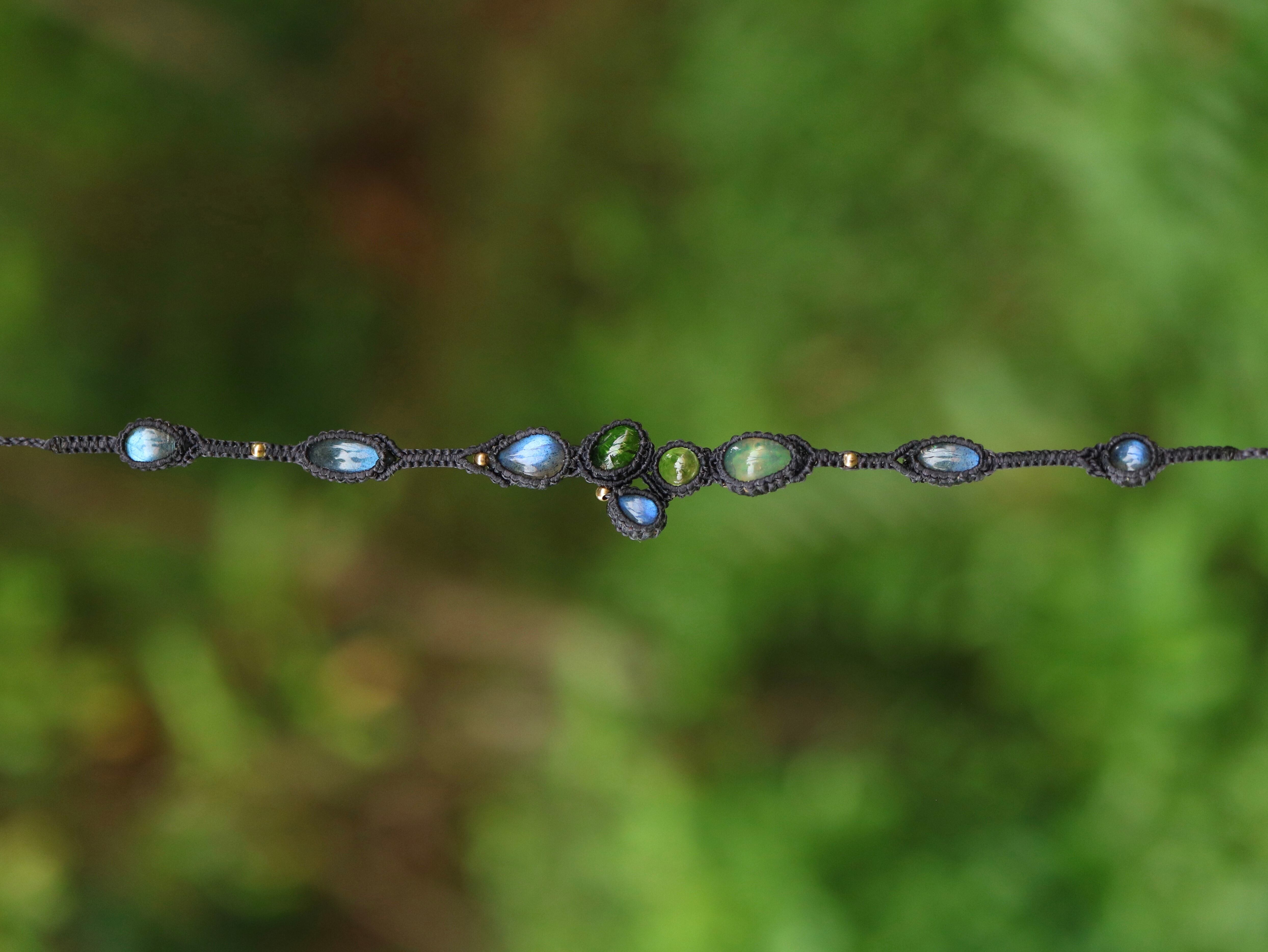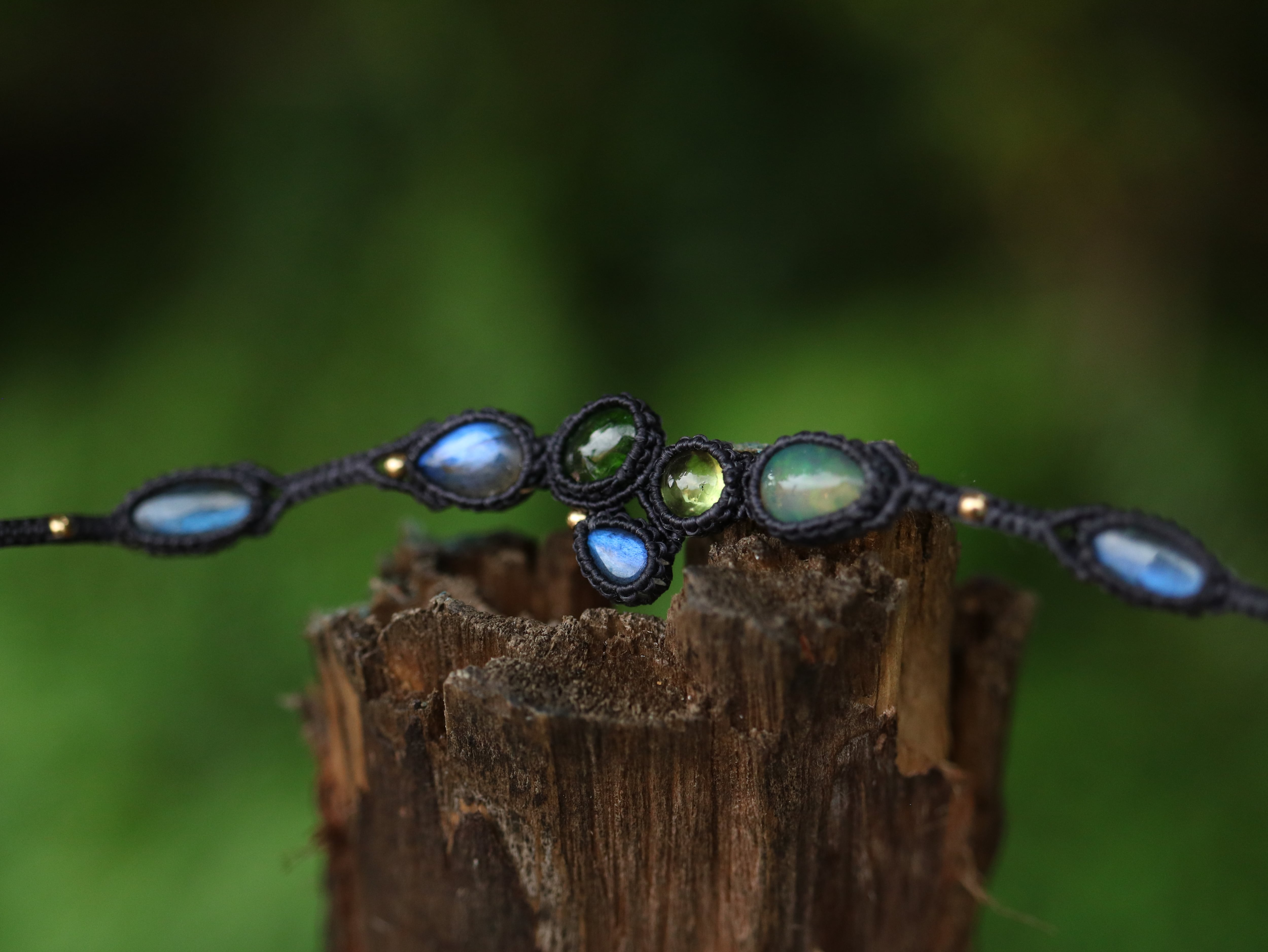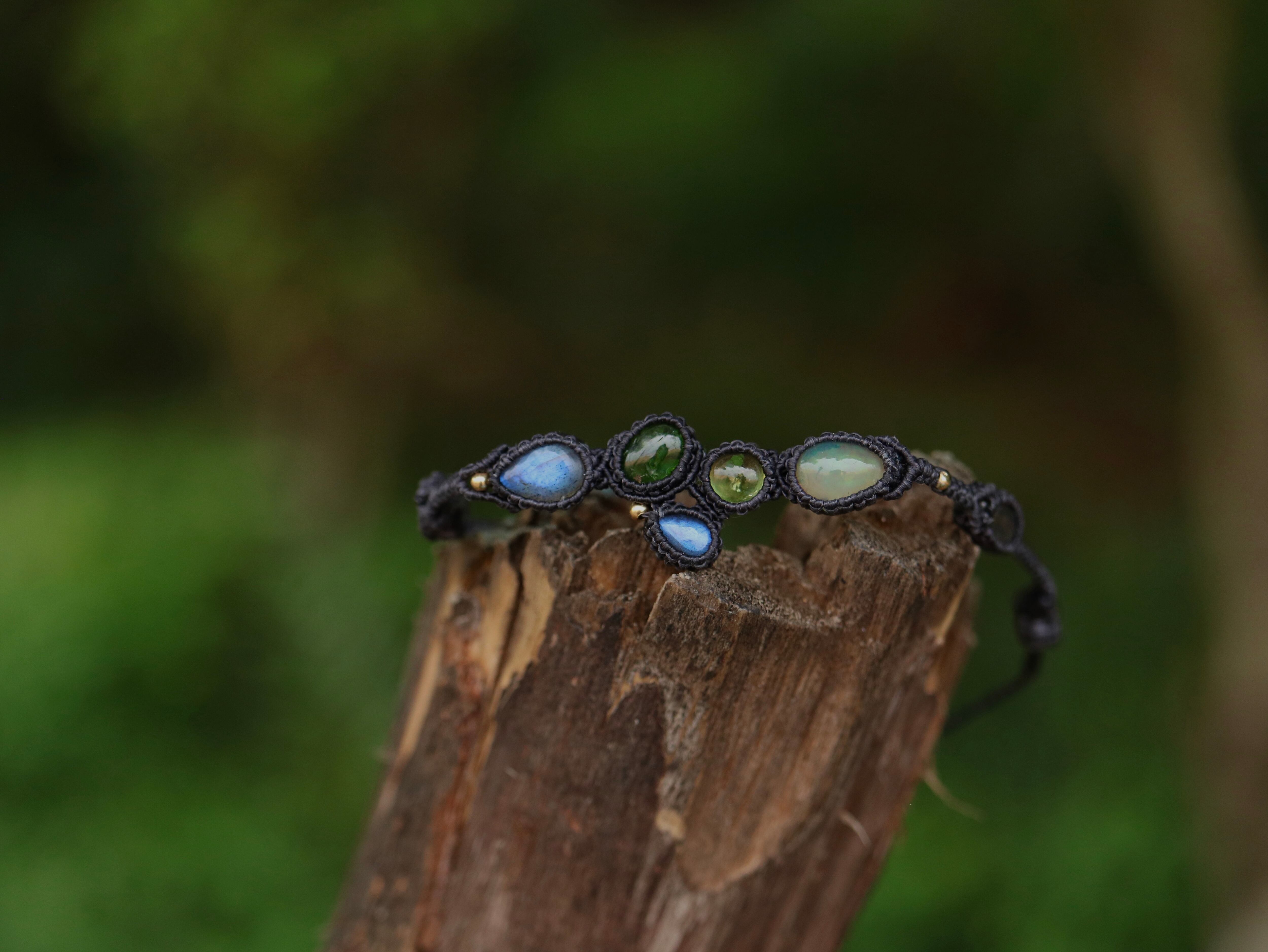 孔雀 2 エチオピアンオパール × マルチストーン アンクレット兼ブレスレット