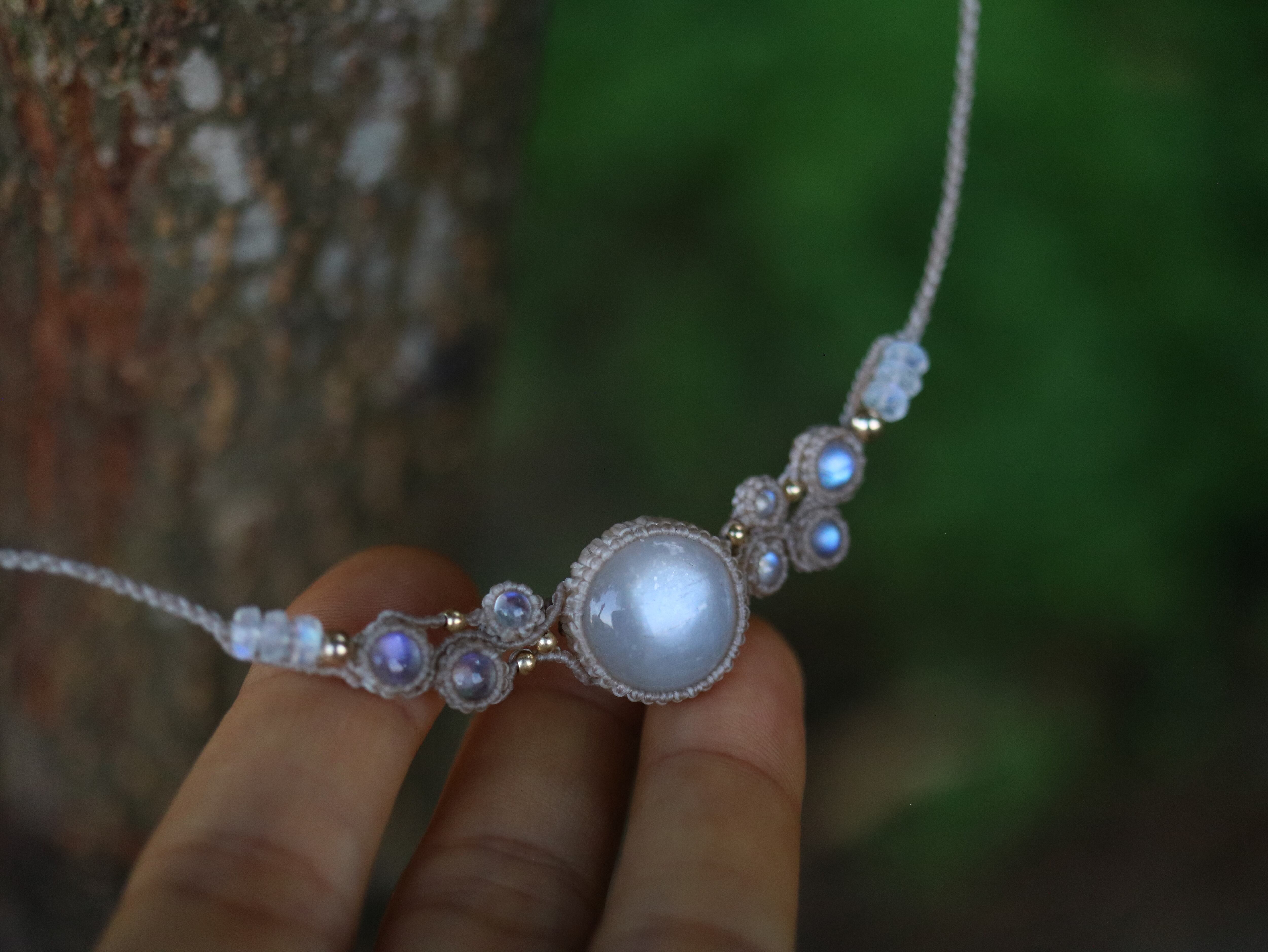 ※ ムーンストーン(ホワイトラブラドライト)は見る角度、光の環境により見え方が変わります