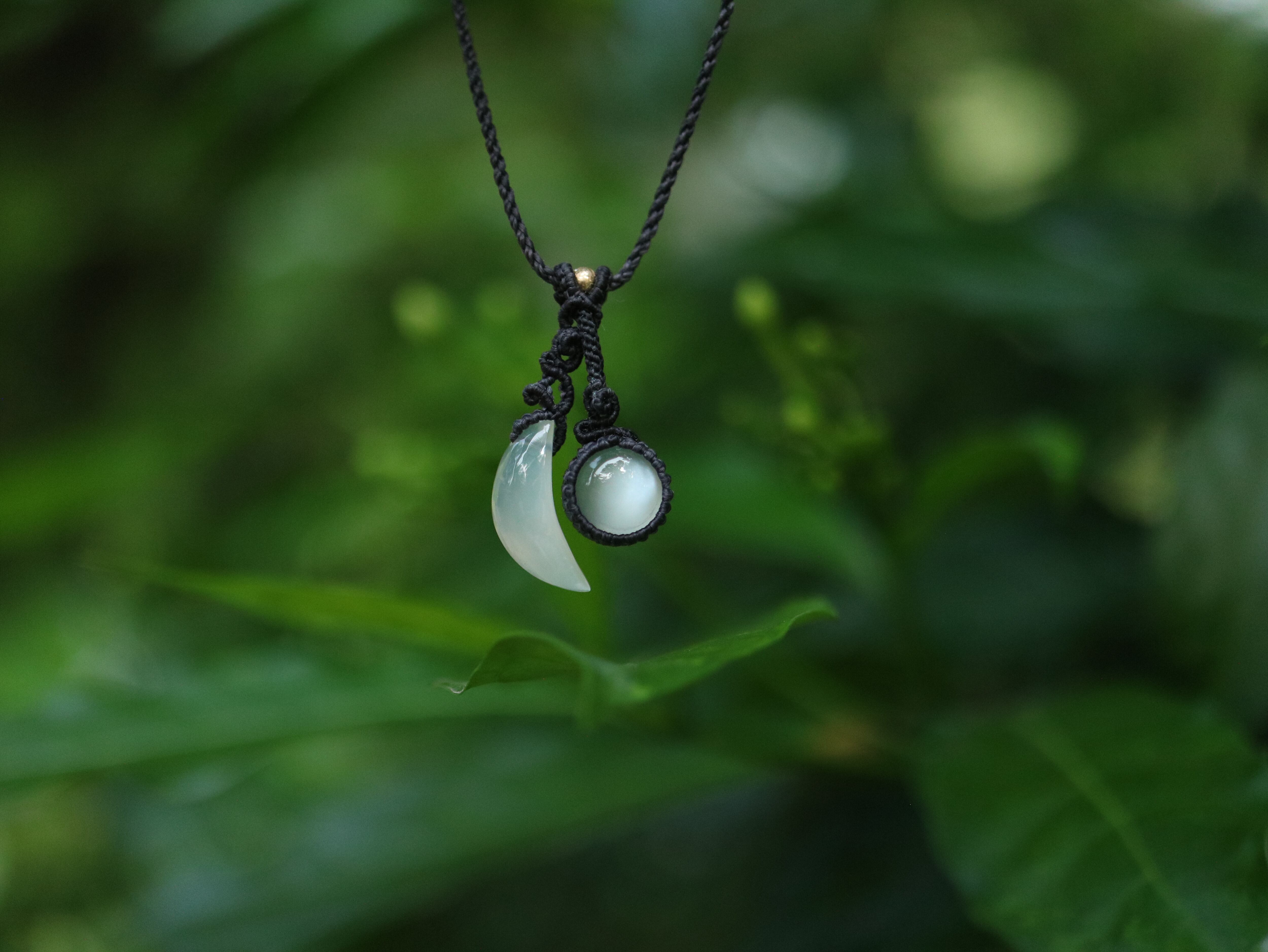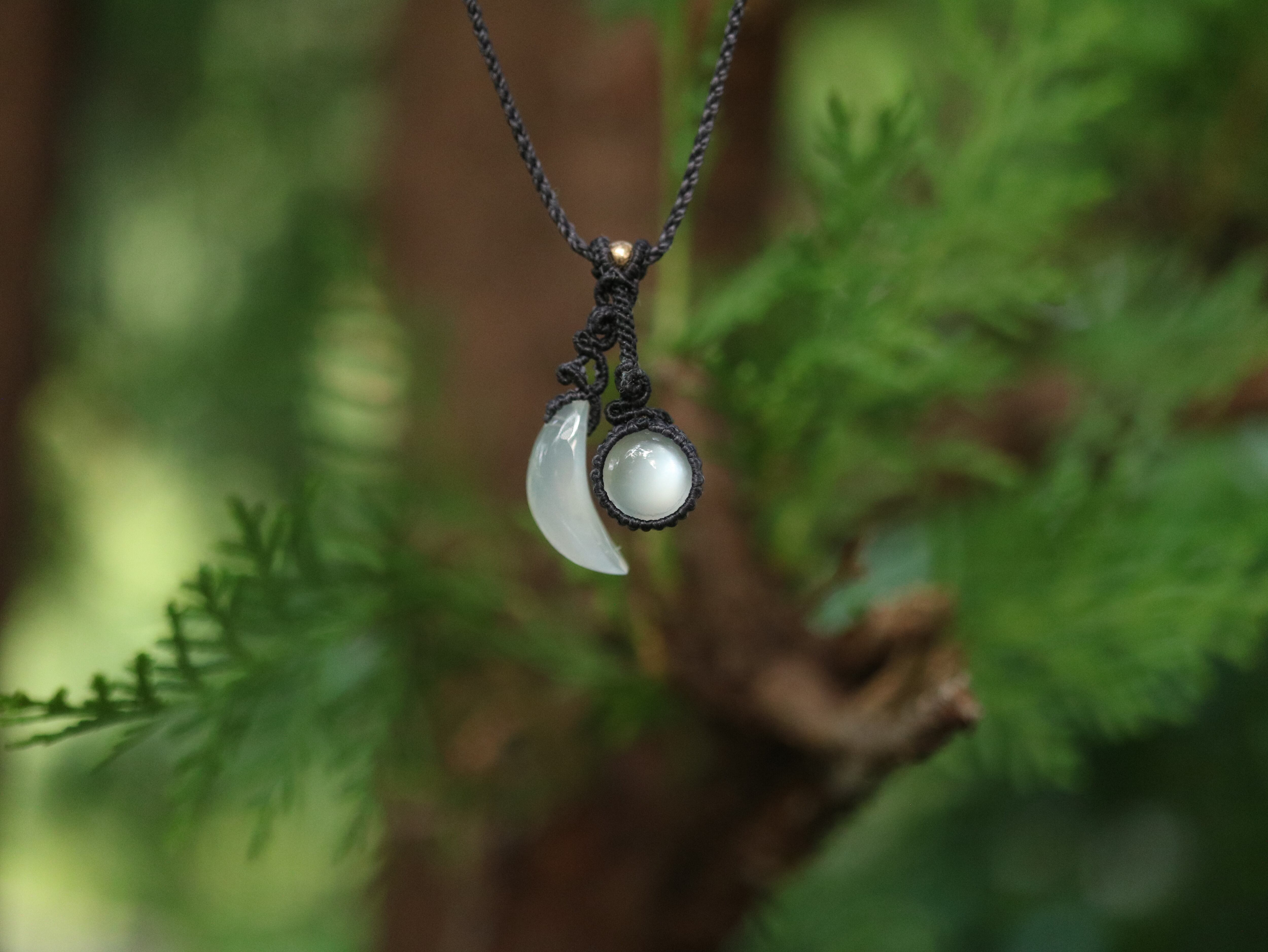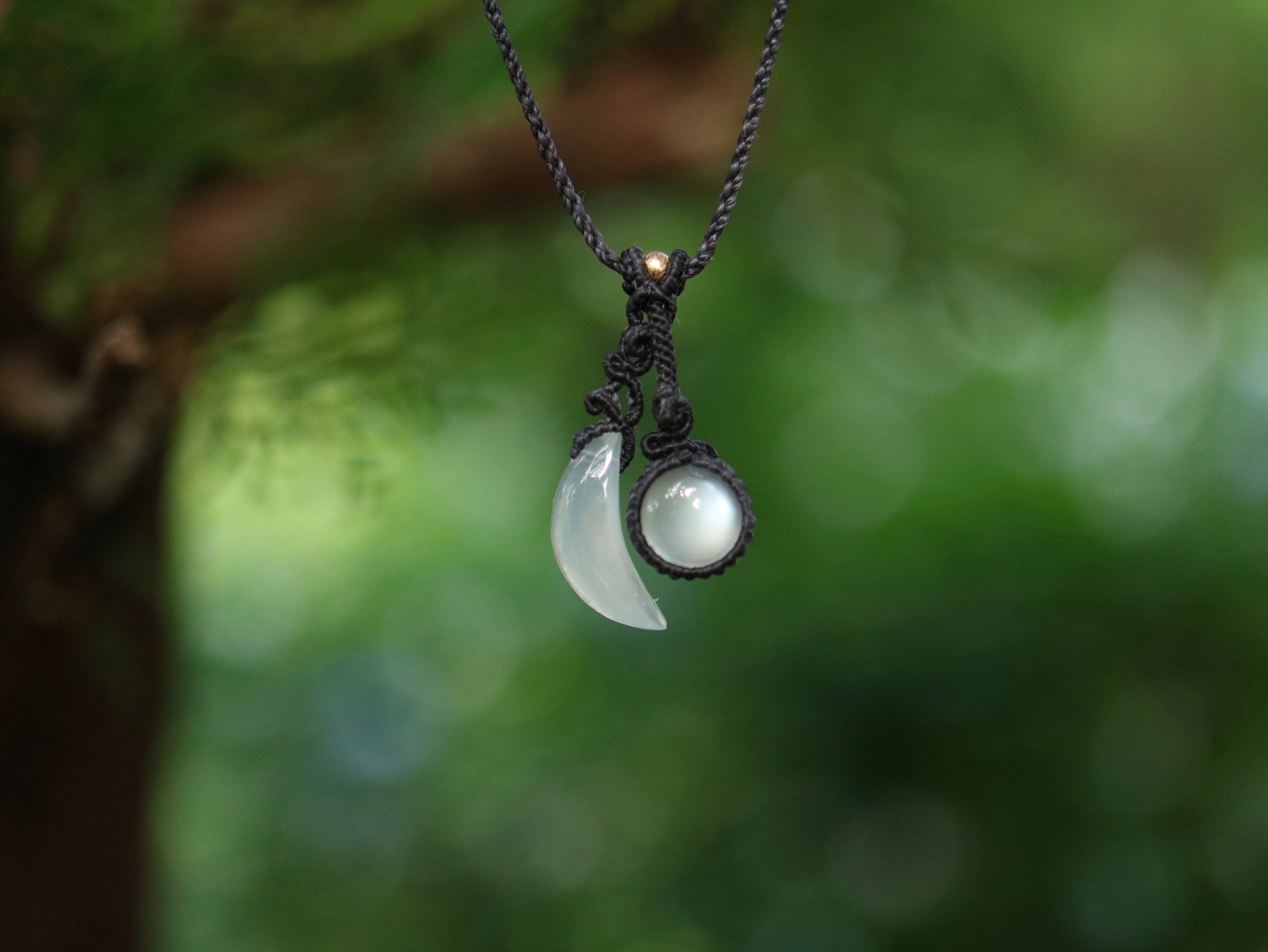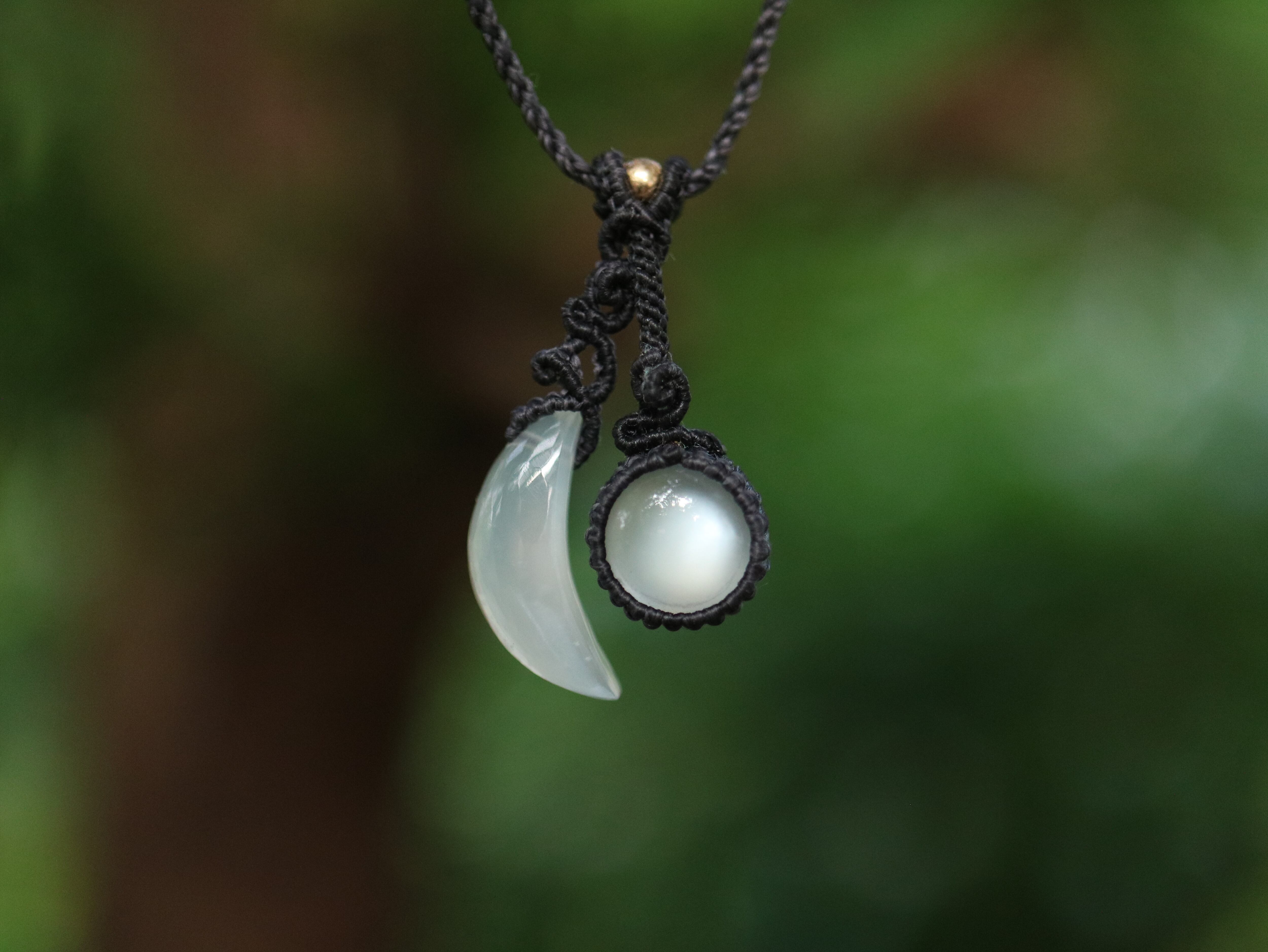 ムーンストーン 満月&三日月 ペンダント ダークネイビー